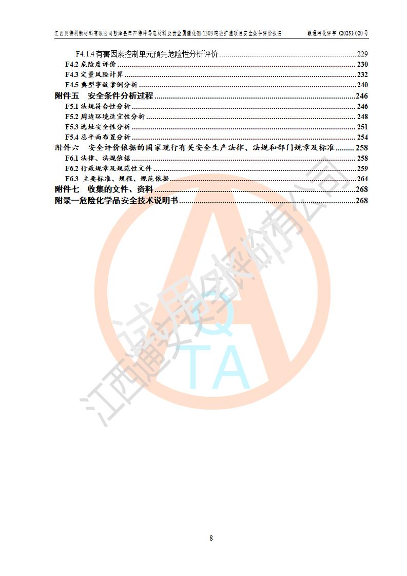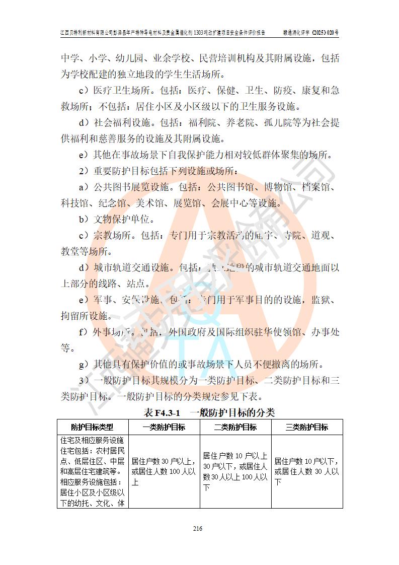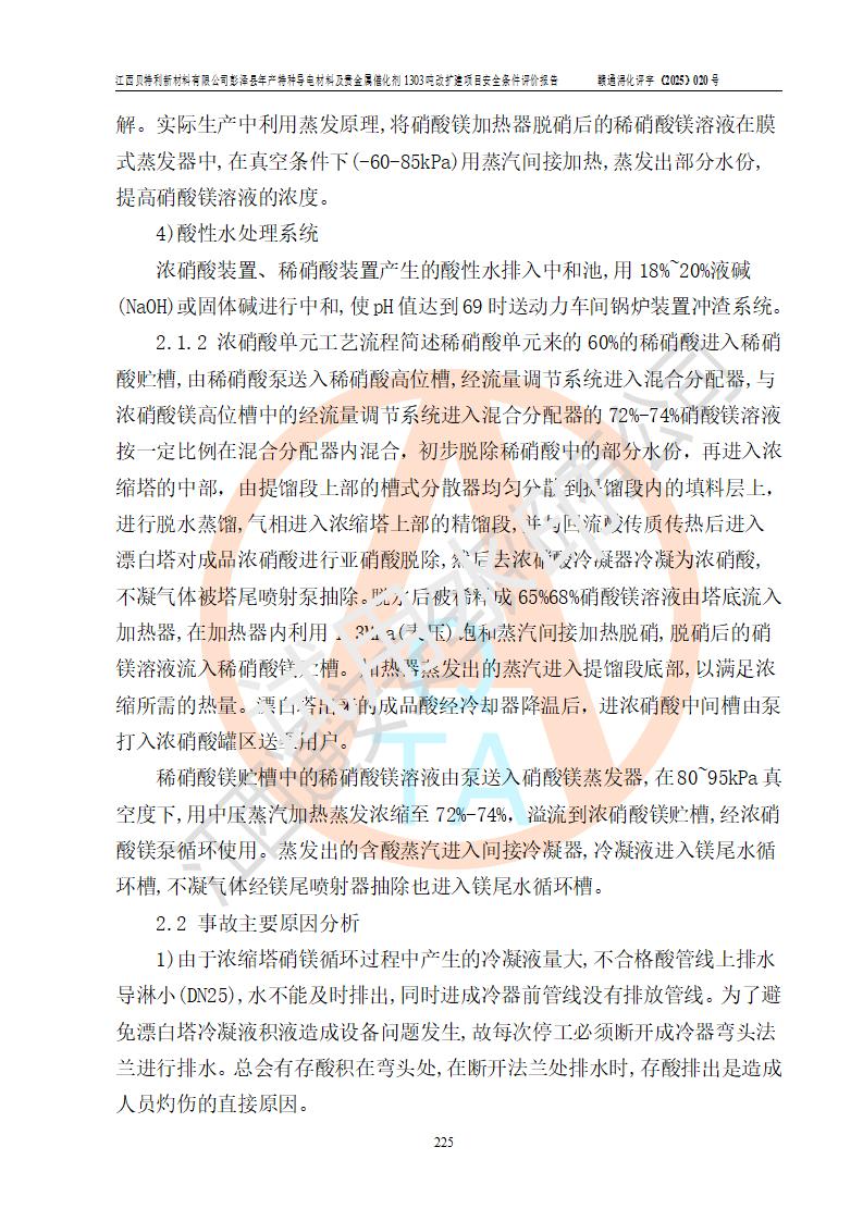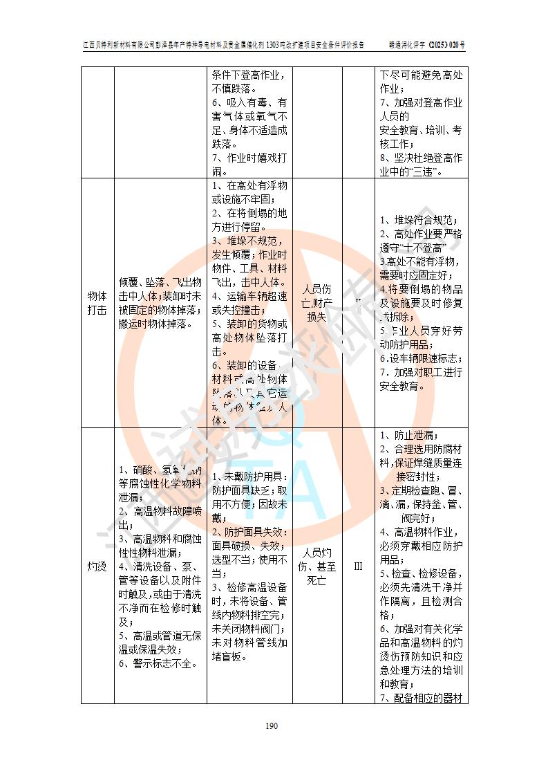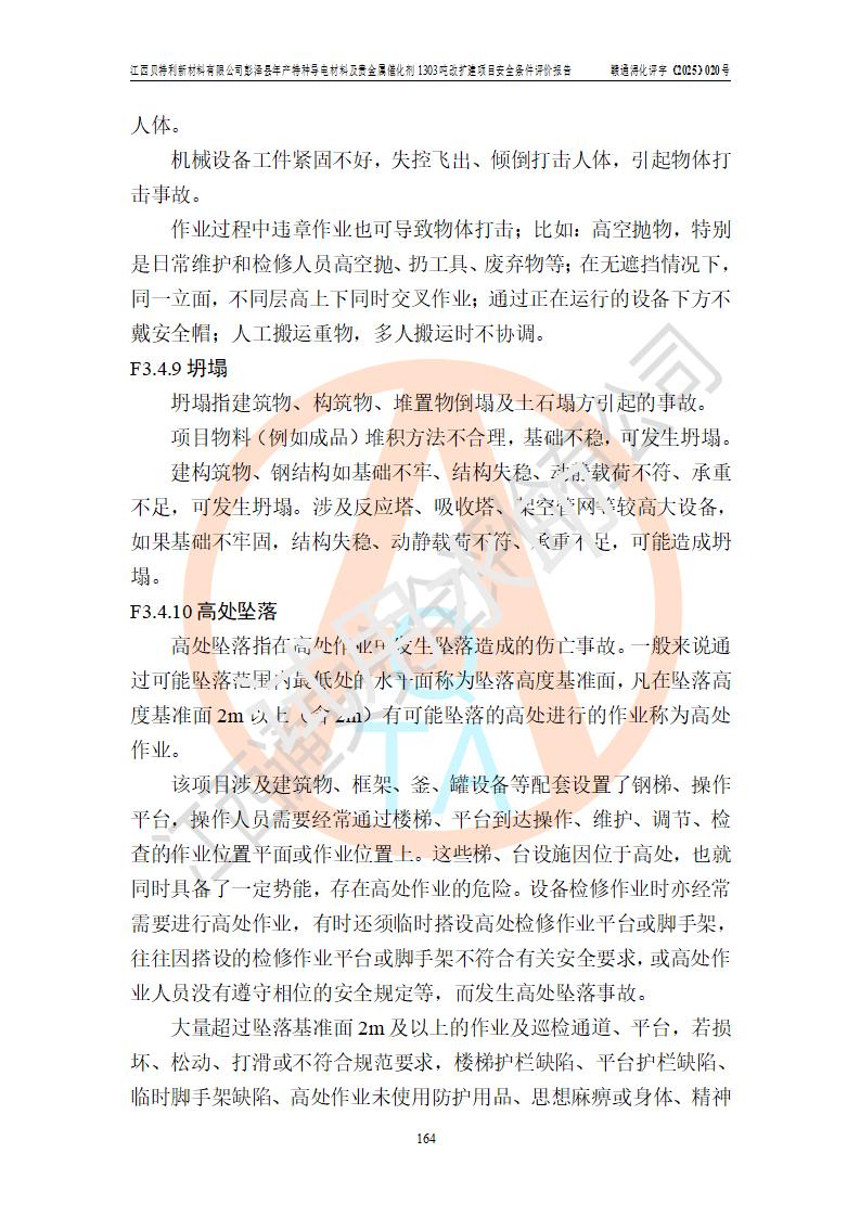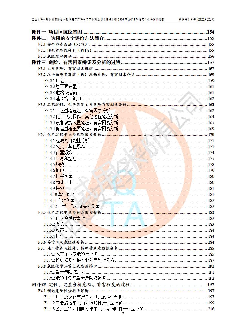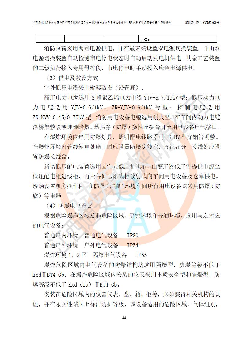 评价结论 | 江西贝特利新材料有限公司江西贝特利彭泽县年产特种导电材料及贵金属催化剂 1303吨改扩建项目的选址、总体布局、周边环境、自然环境能满足建设安全条件:项目选择的工艺过程及设备设施的安全可靠性能达到**法规、标准规定要求。 项目存在的危险有害因素可控,在落实本评价报告提出的有关安全对策措施后,其危险有害程度能达到可以接受的程度,项目建设能够实现安全运行的目标。 | |||||