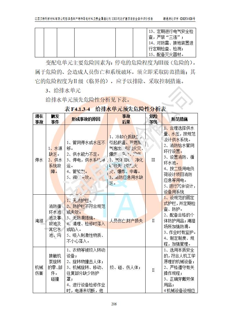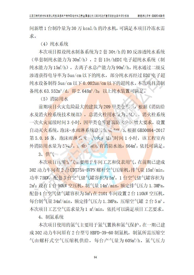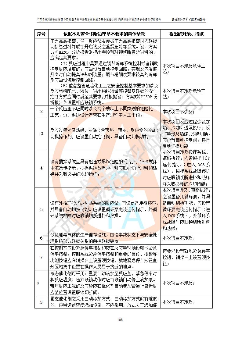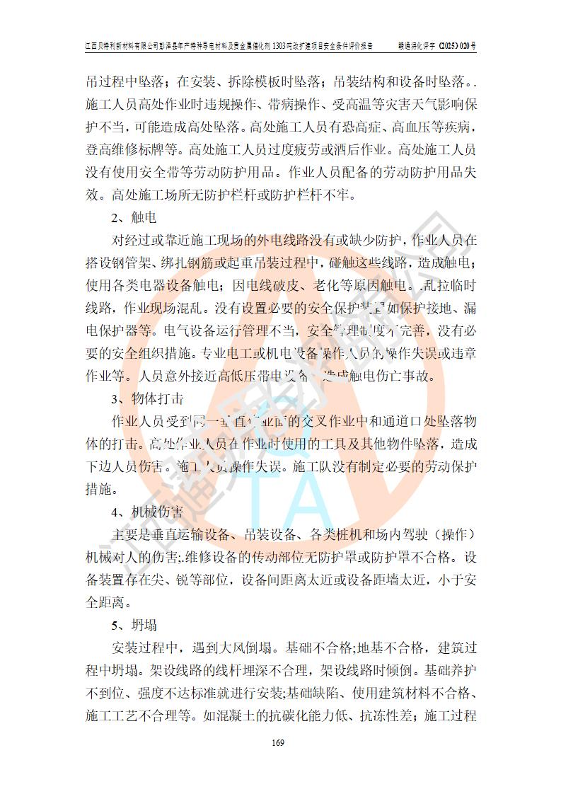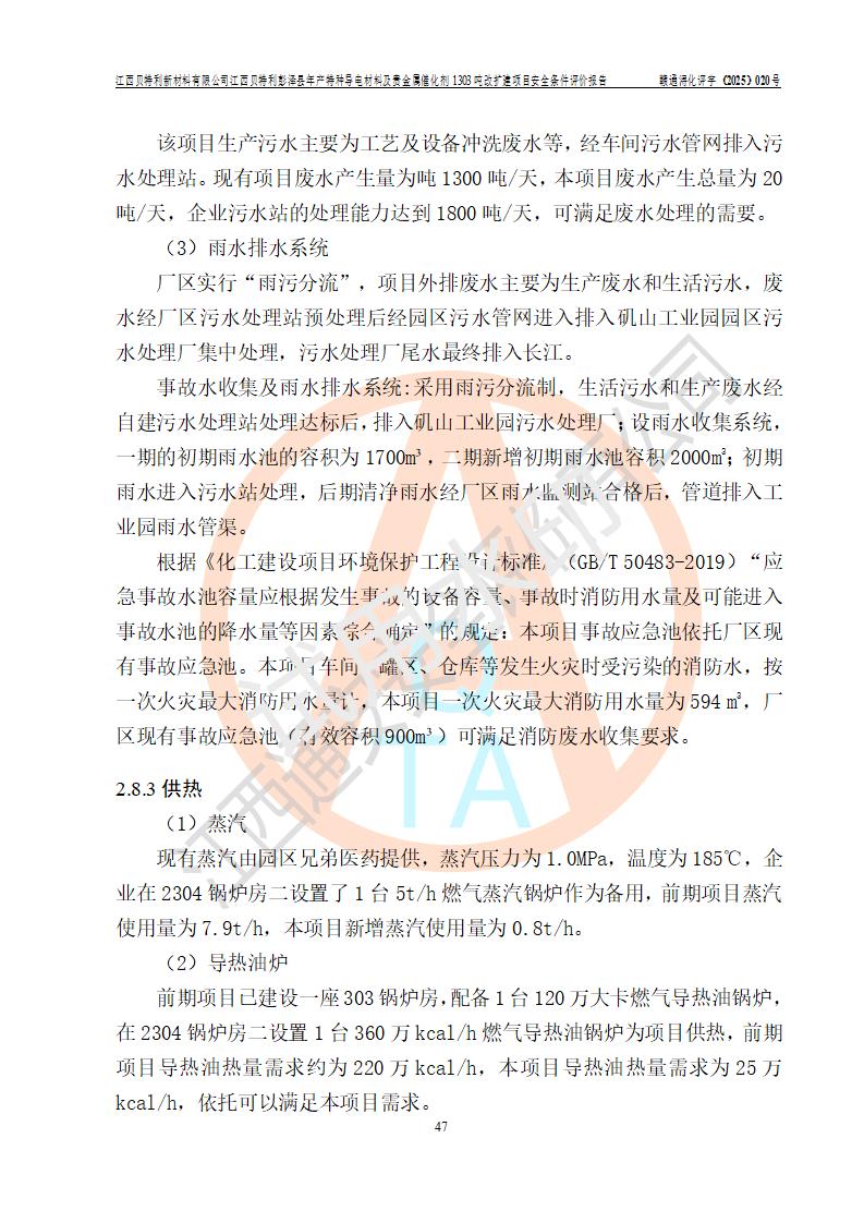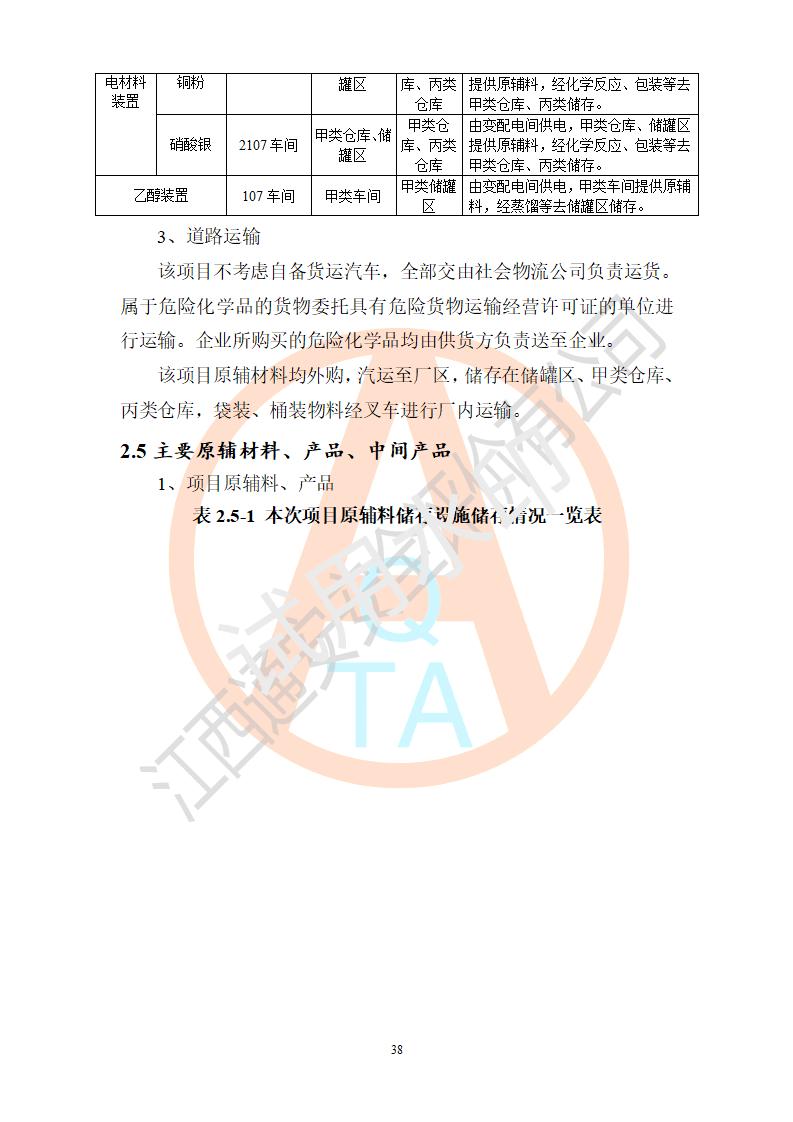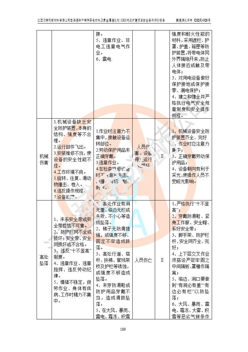 评价结论 | 江西贝特利新材料有限公司江西贝特利彭泽县年产特种导电材料及贵金属催化剂 1303吨改扩建项目的选址、总体布局、周边环境、自然环境能满足建设安全条件:项目选择的工艺过程及设备设施的安全可靠性能达到**法规、标准规定要求。 项目存在的危险有害因素可控,在落实本评价报告提出的有关安全对策措施后,其危险有害程度能达到可以接受的程度,项目建设能够实现安全运行的目标。 | |||||