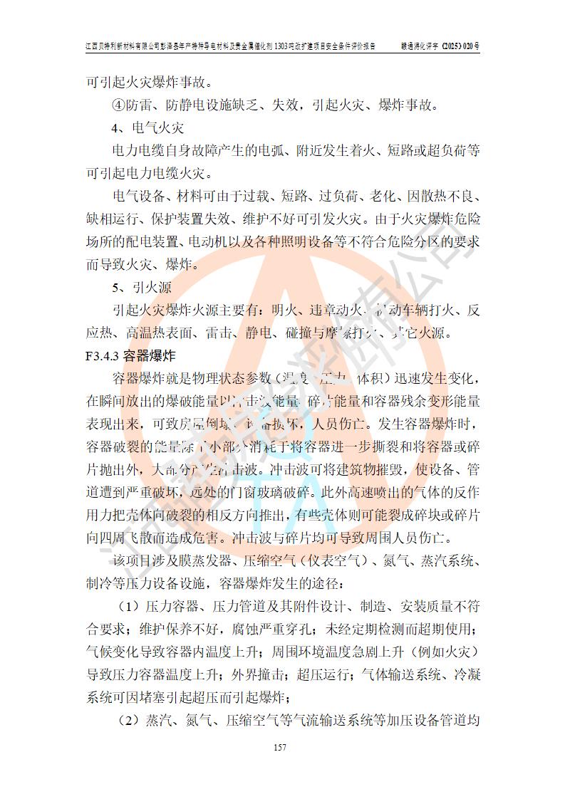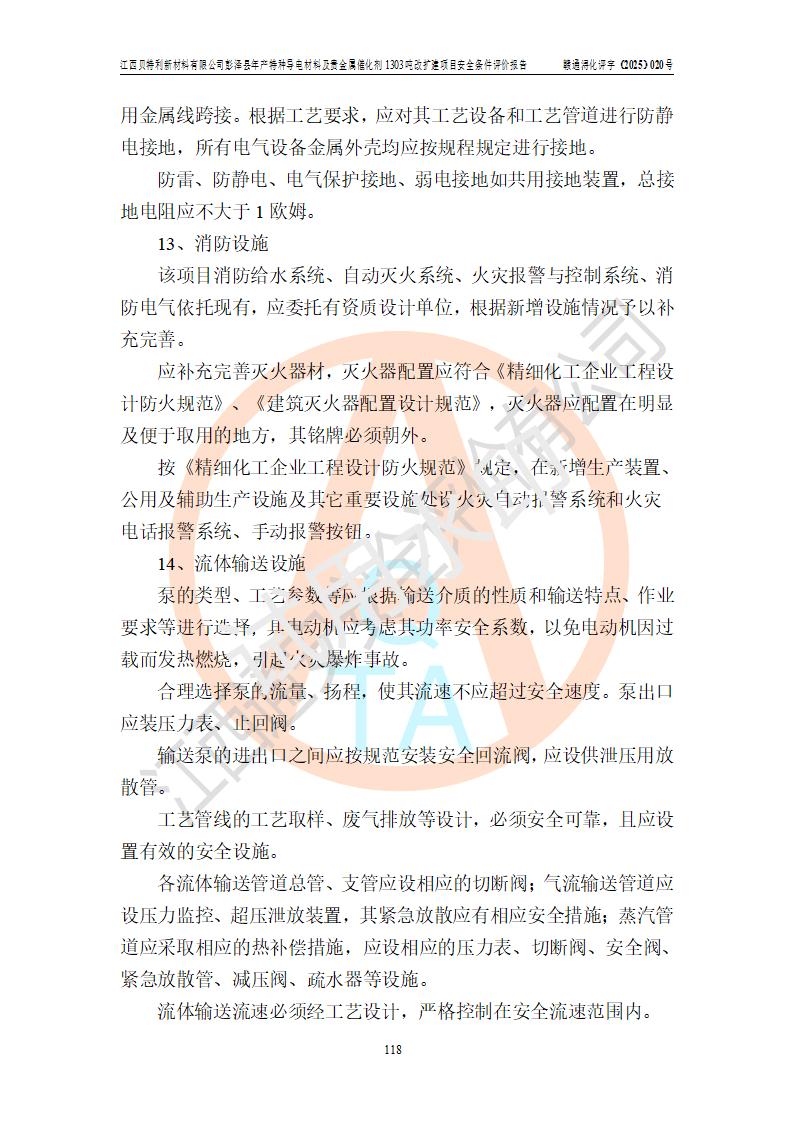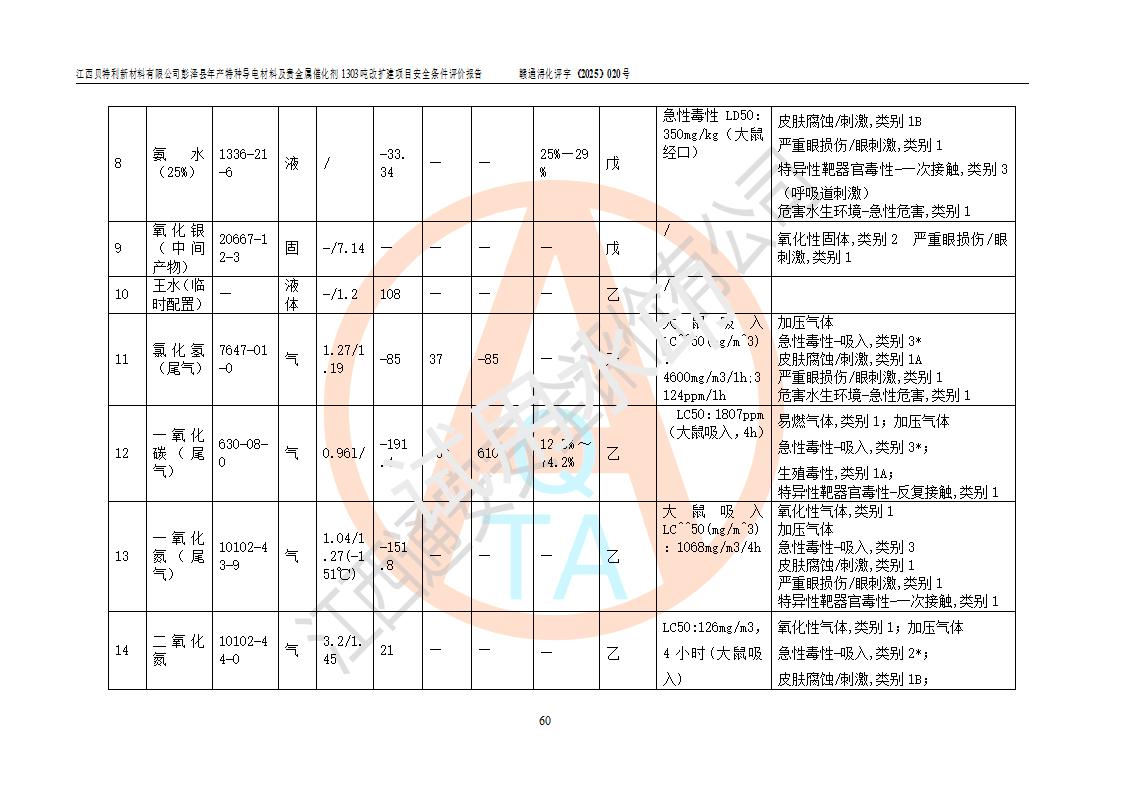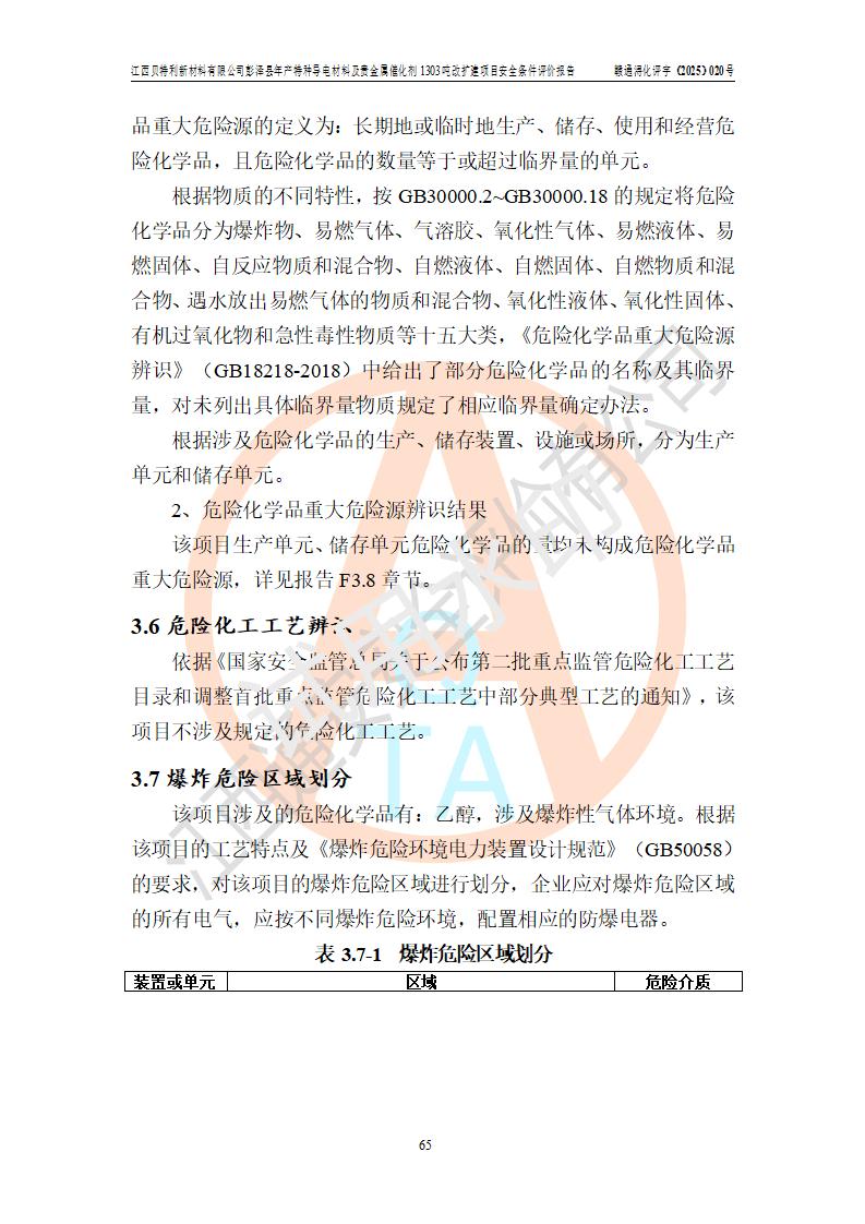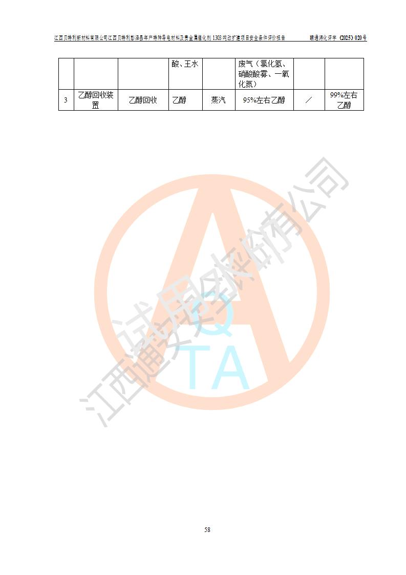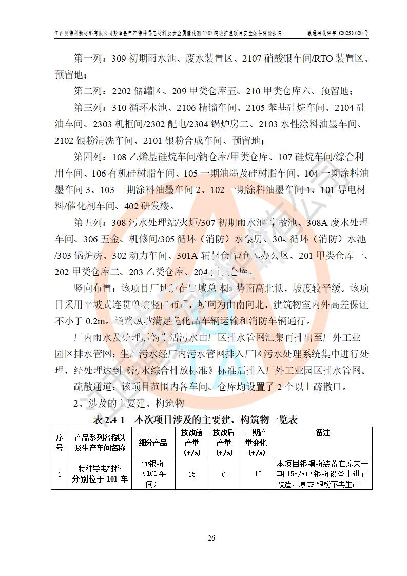 评价报告名称 | 江西贝特利新材料有限公司彭泽县年产特种导电材料及贵金属催化剂1303吨改扩建项目安全条件评价报告 | |||||