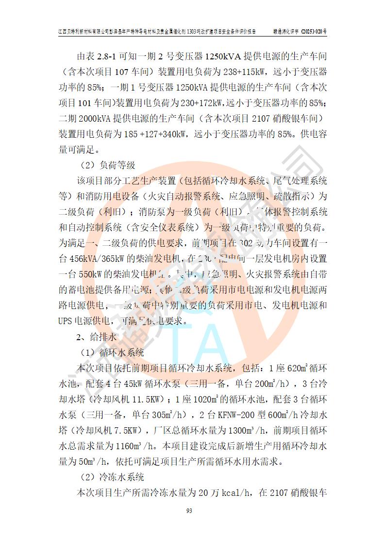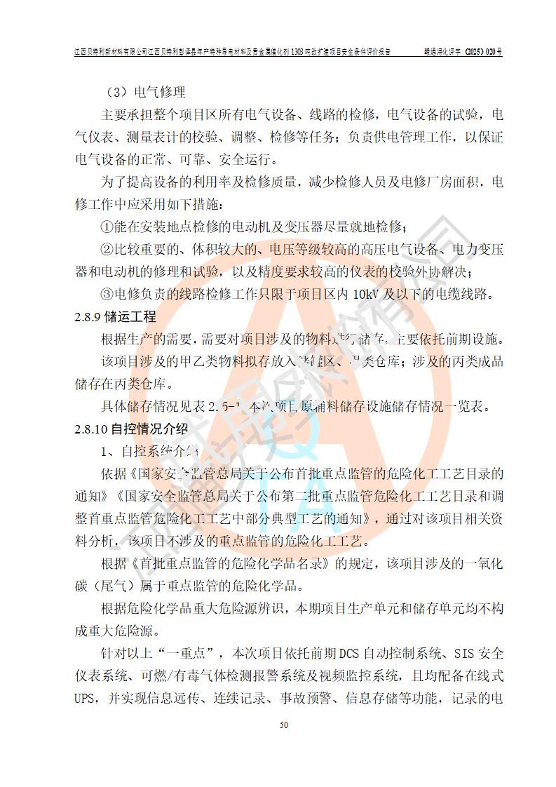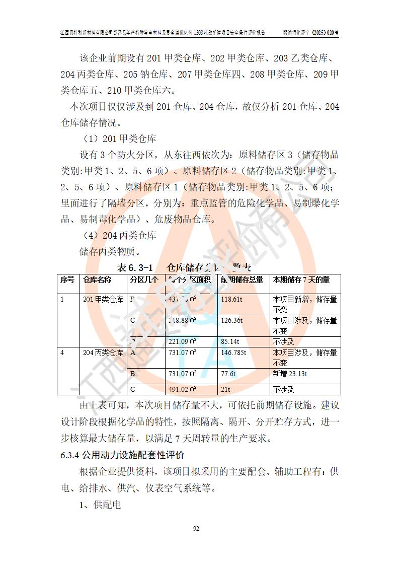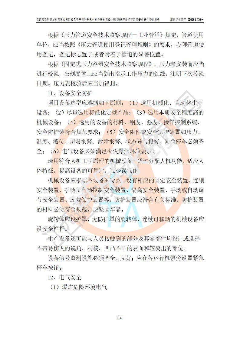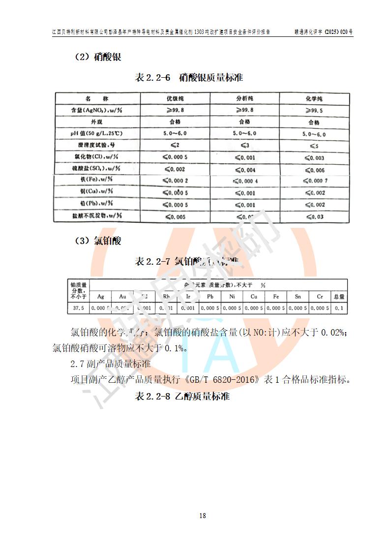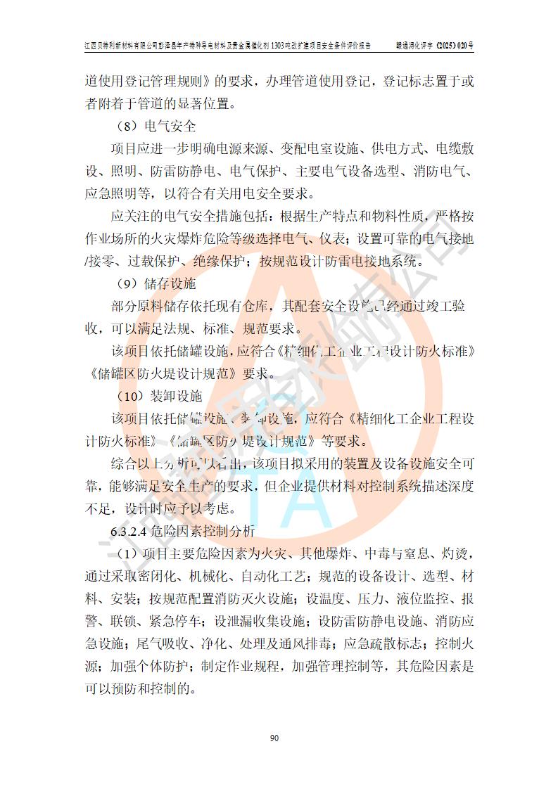 评价报告名称 | 江西贝特利新材料有限公司彭泽县年产特种导电材料及贵金属催化剂1303吨改扩建项目安全条件评价报告 | |||||