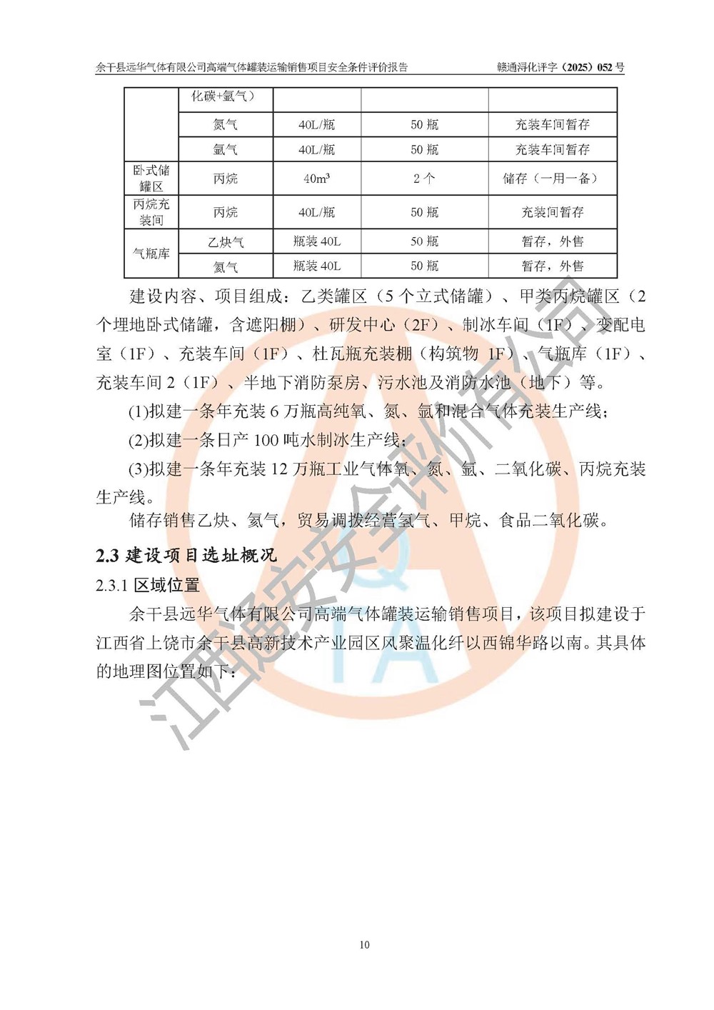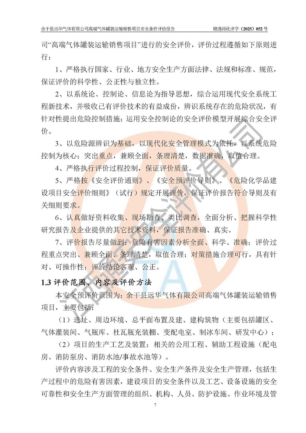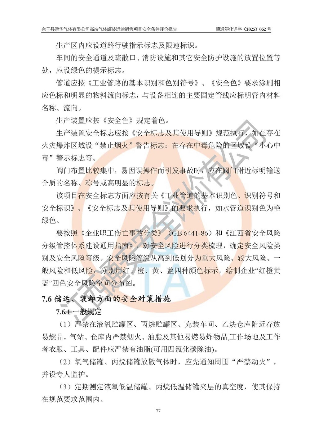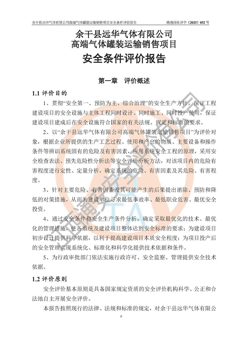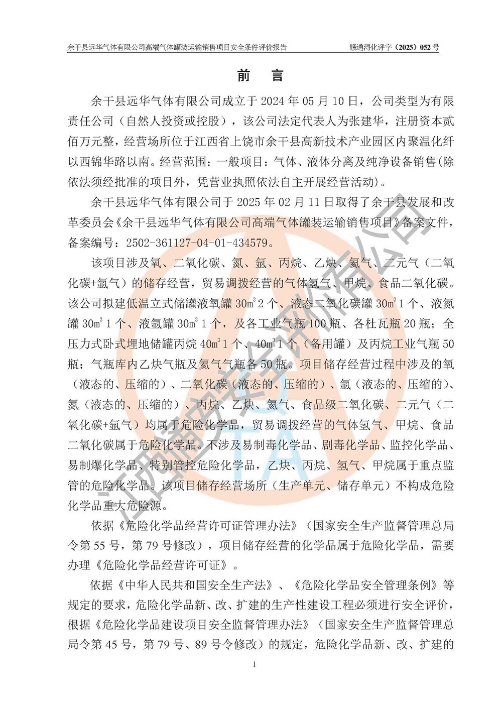 评价报告名称 | 余干县远华气体有限公司高端气体罐装运输销售项目安全条件评价报告 | ||||||