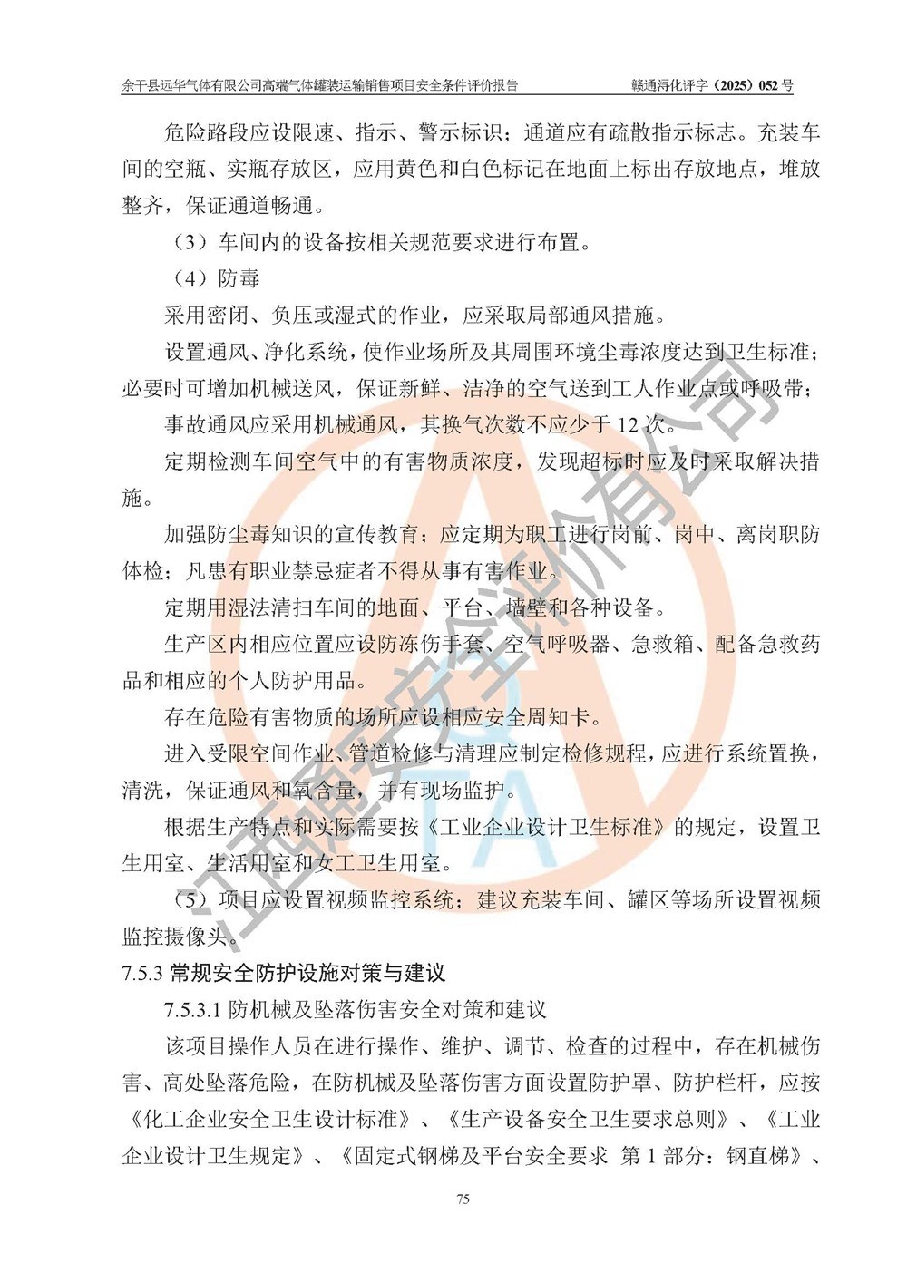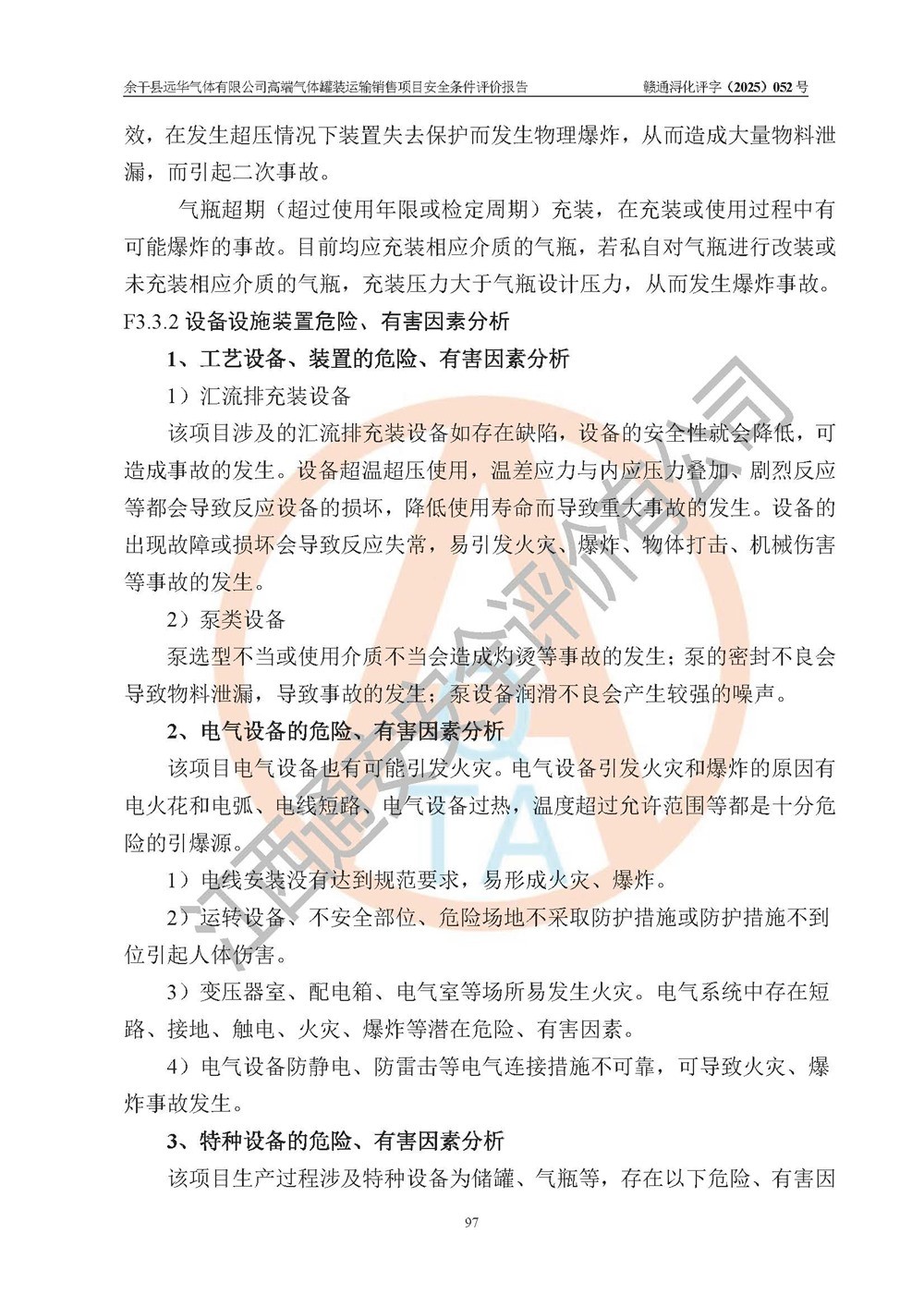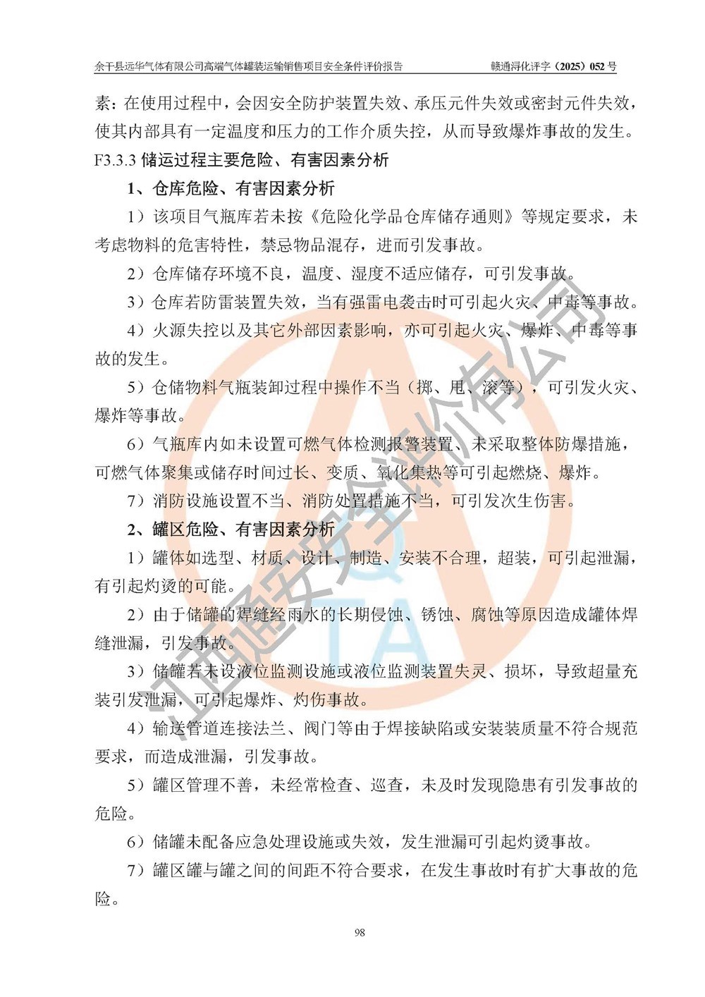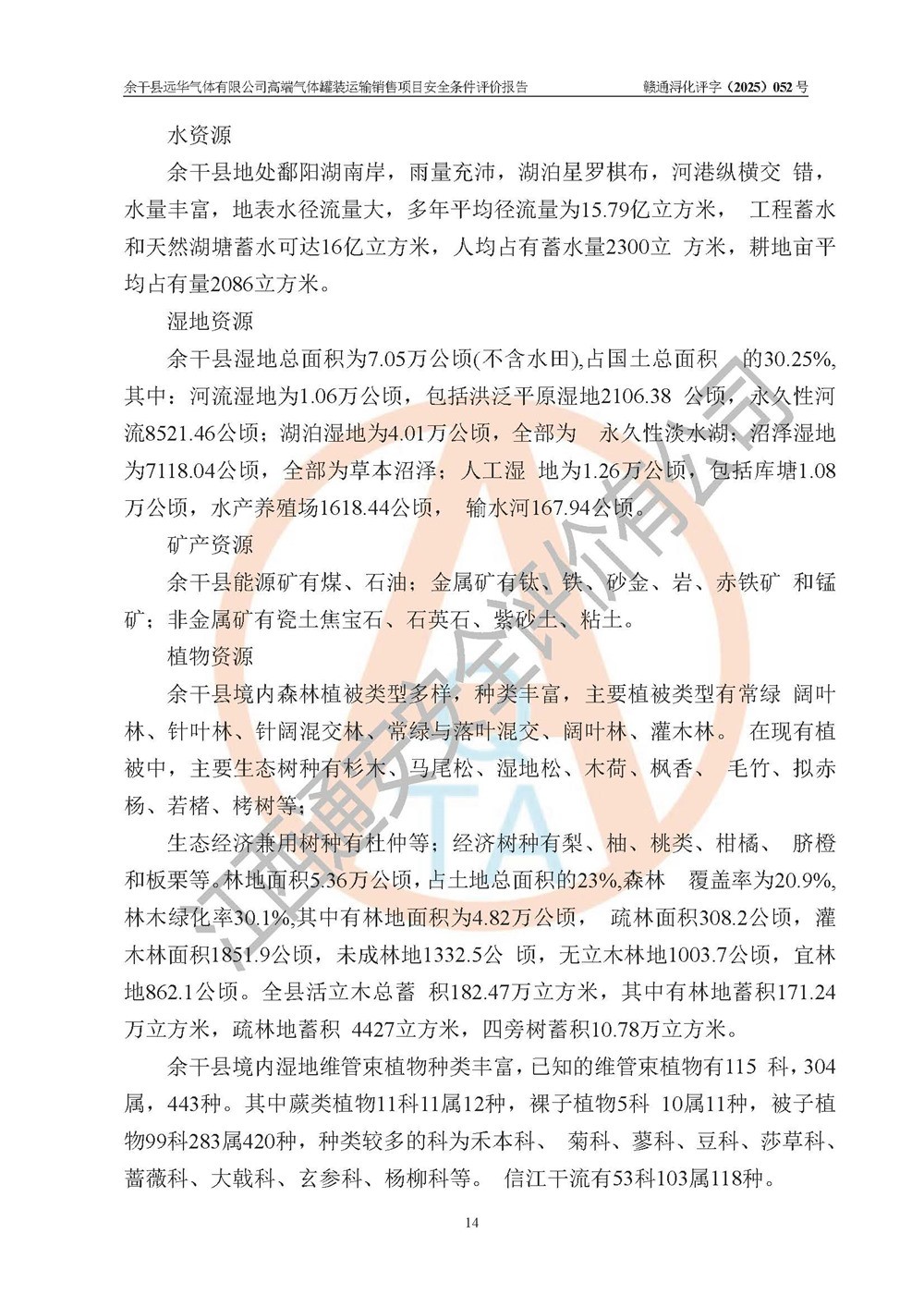 评价报告名称 | 余干县远华气体有限公司高端气体罐装运输销售项目安全条件评价报告 | ||||||