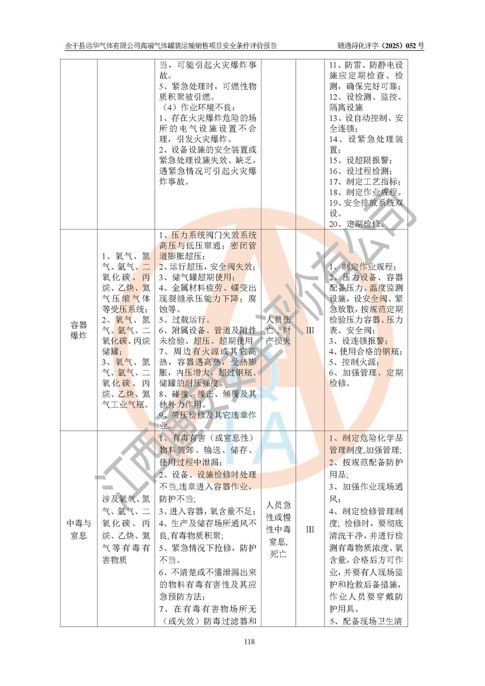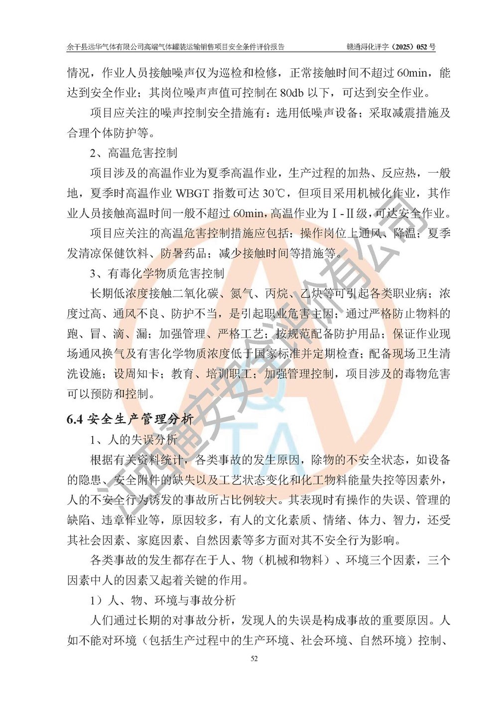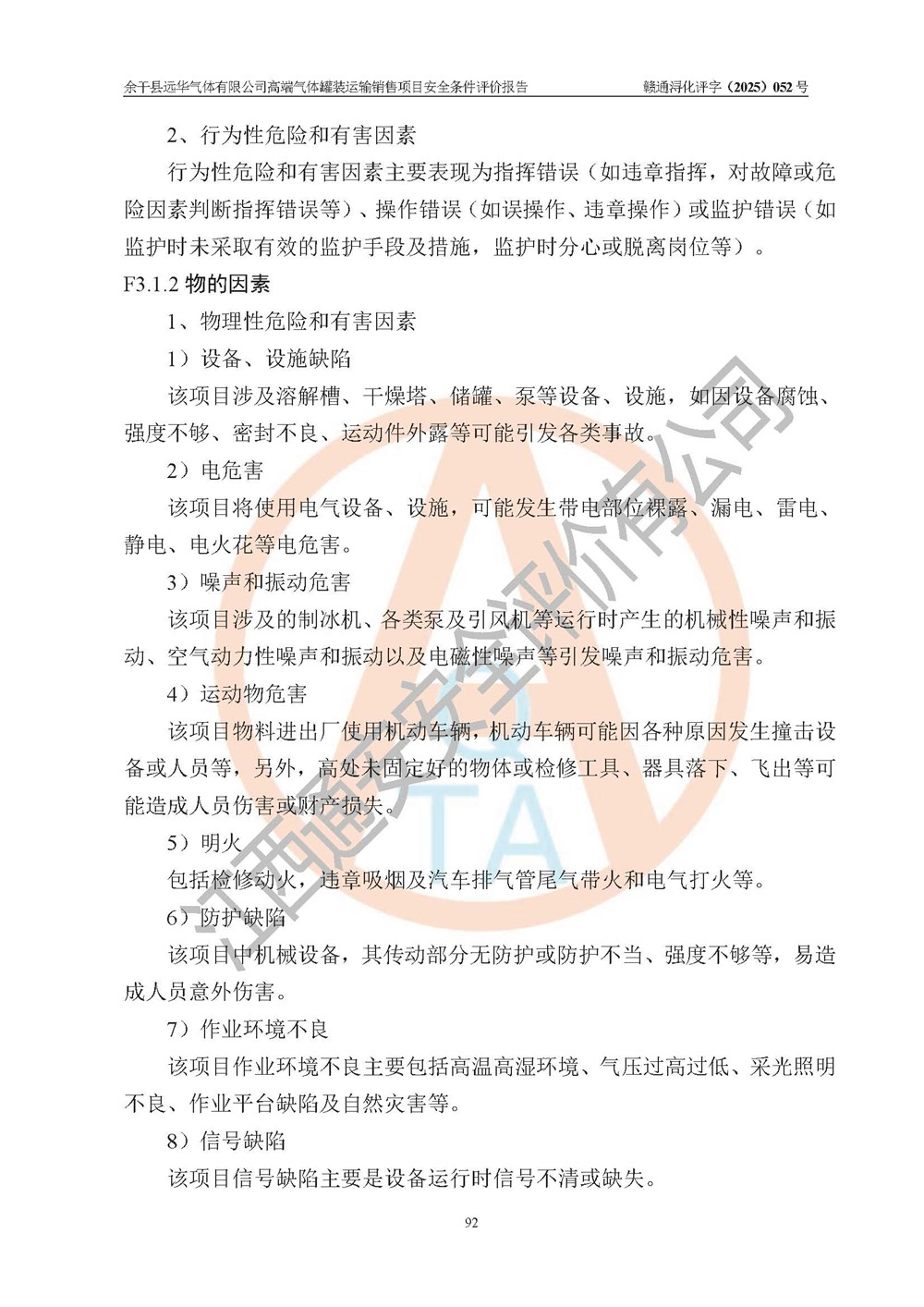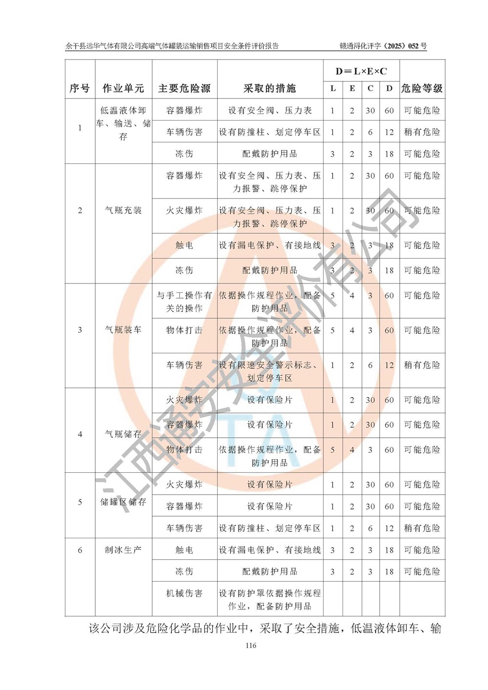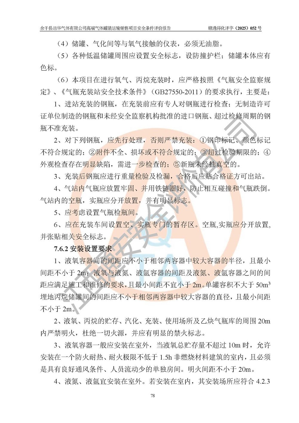评价报告名称 | 余干县远华气体有限公司高端气体罐装运输销售项目安全条件评价报告 | ||||||