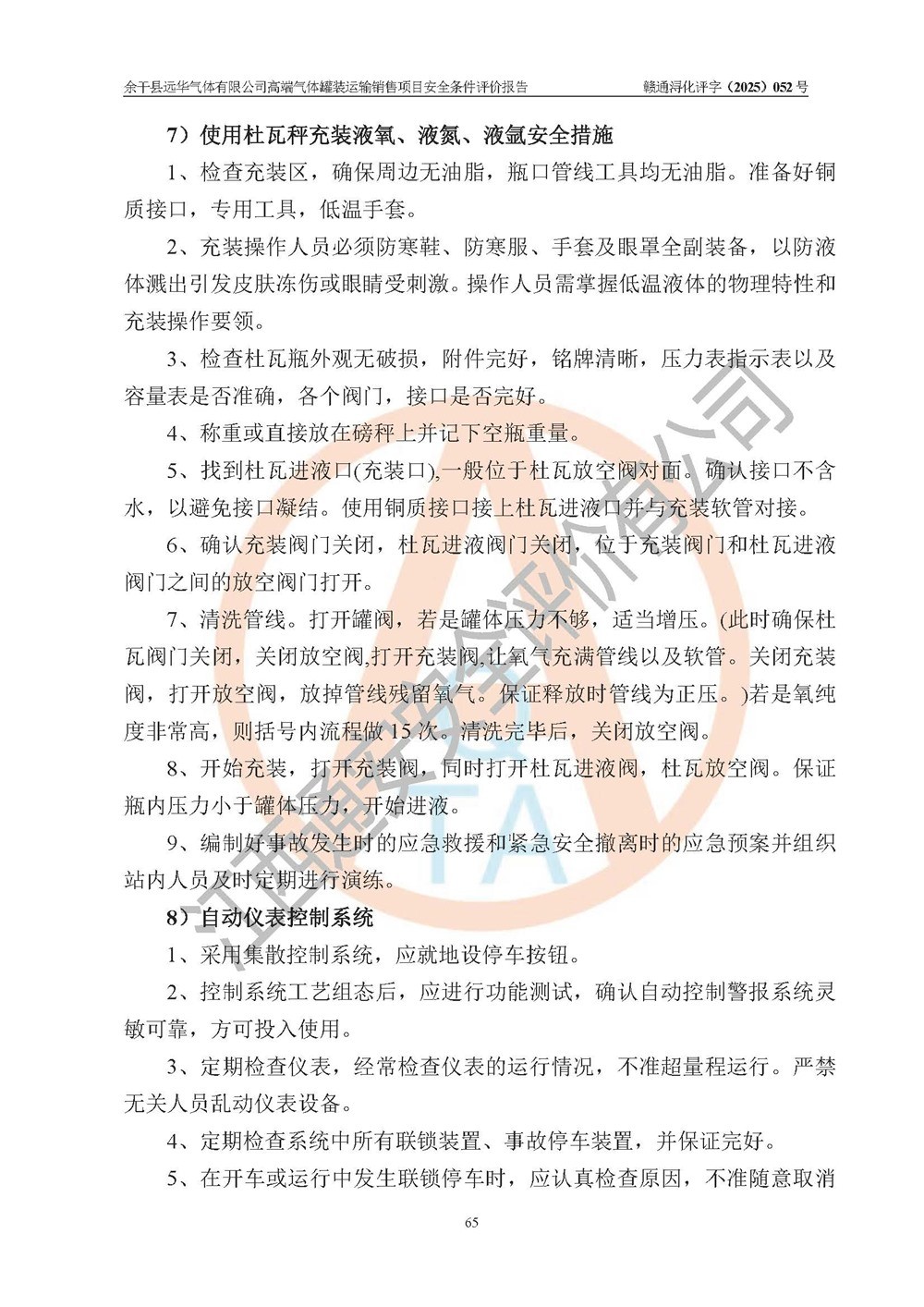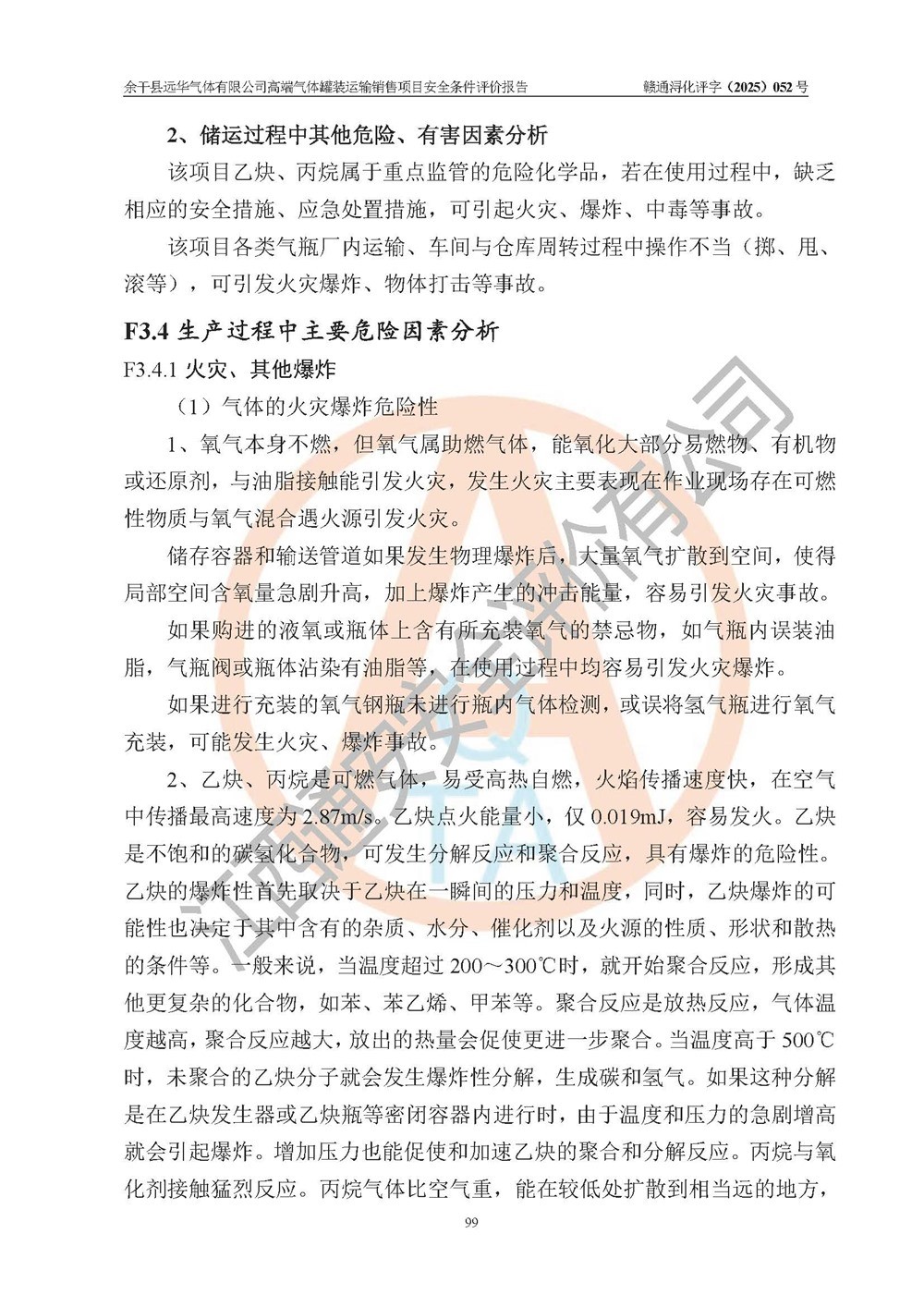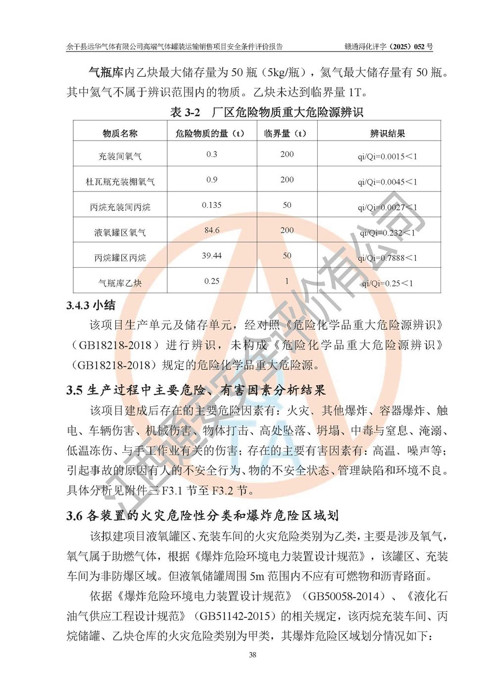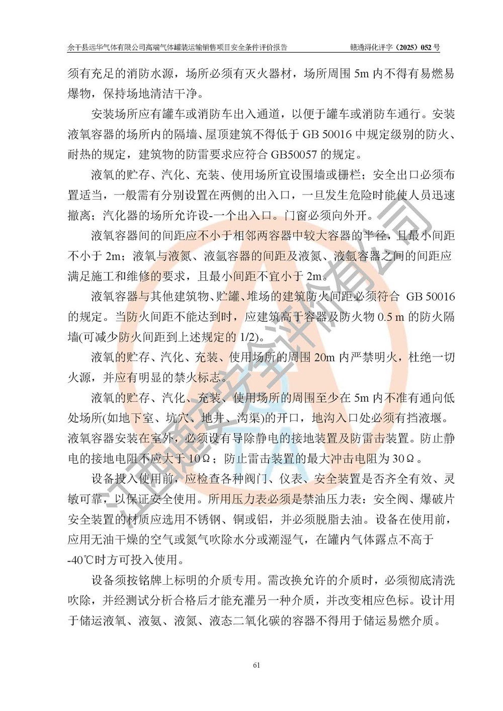 评价报告名称 | 余干县远华气体有限公司高端气体罐装运输销售项目安全条件评价报告 | ||||||