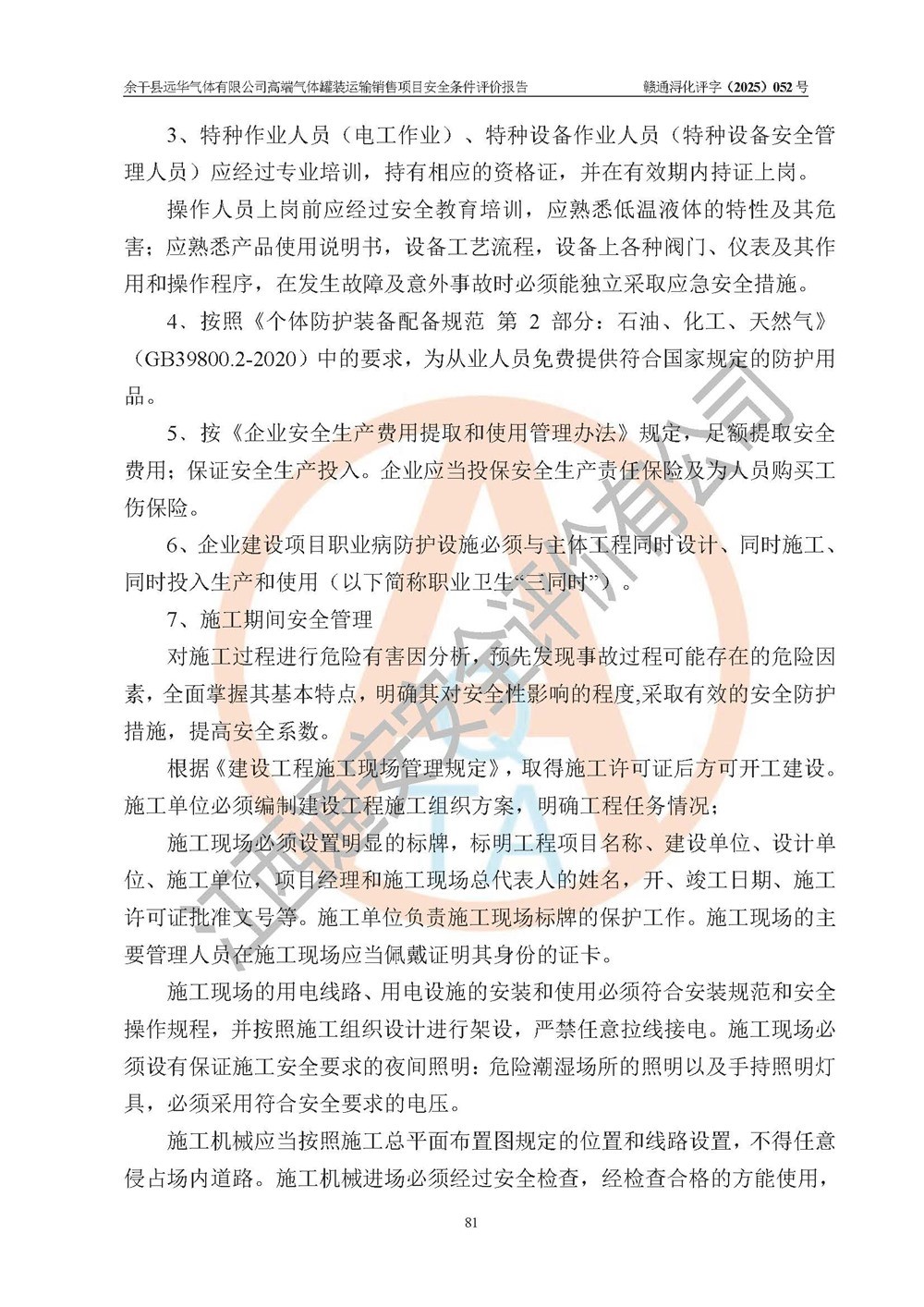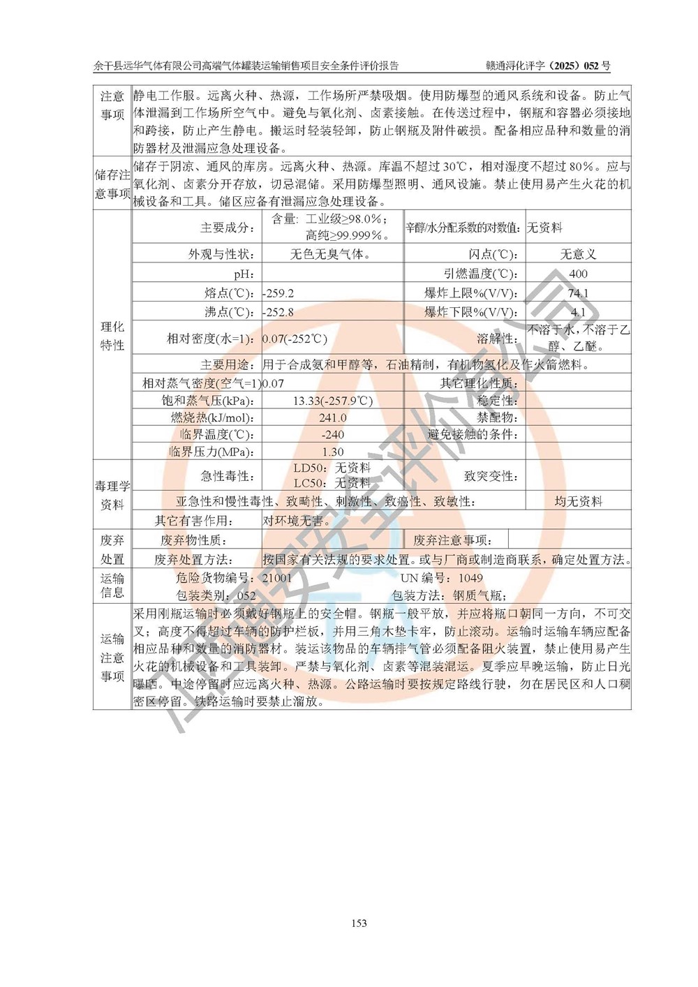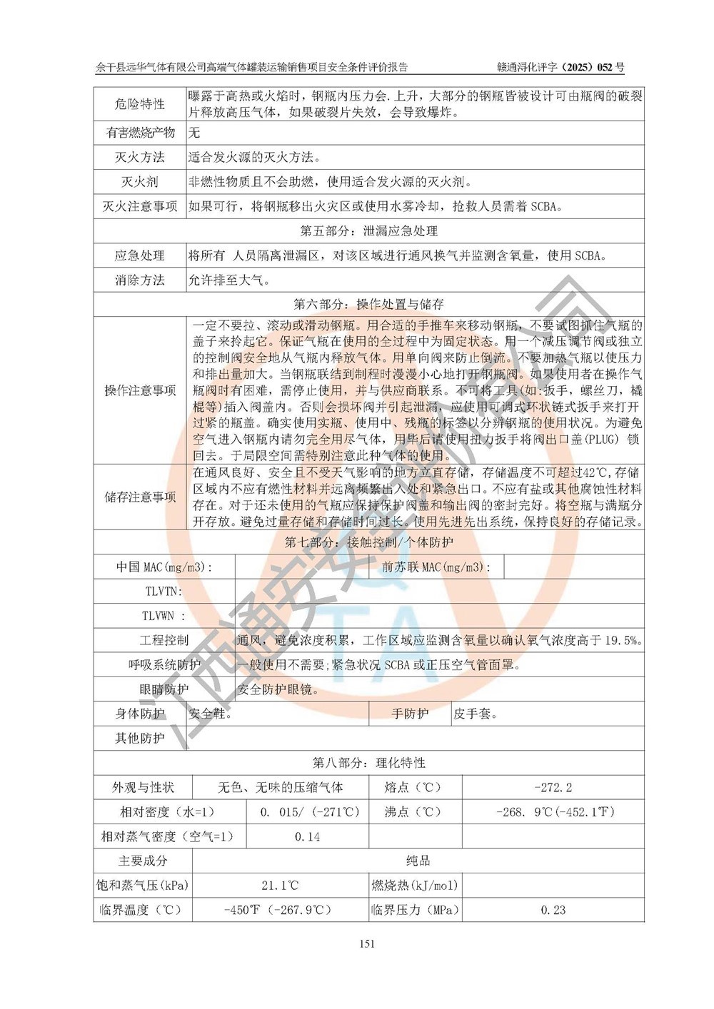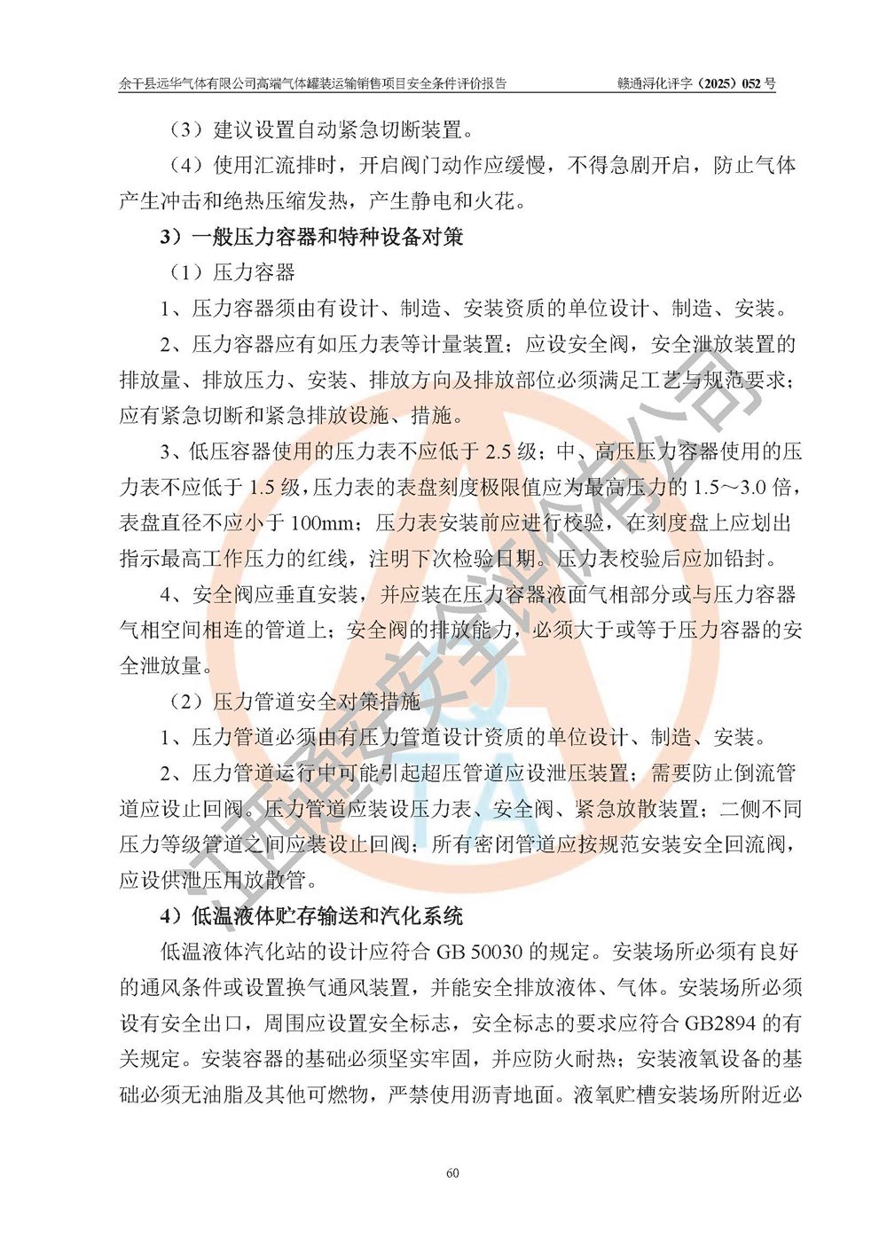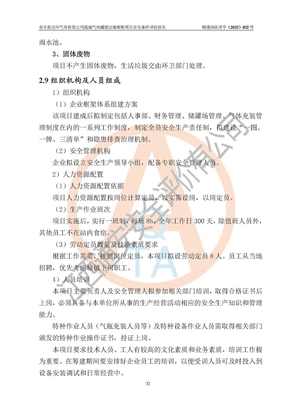 评价报告名称 | 余干县远华气体有限公司高端气体罐装运输销售项目安全条件评价报告 | ||||||