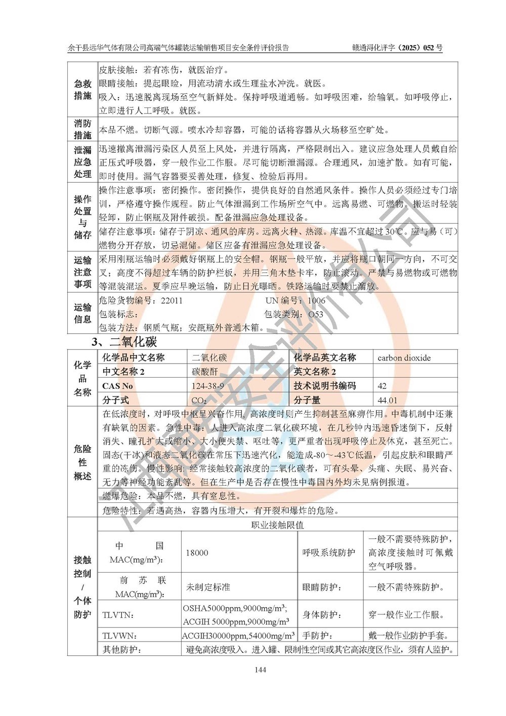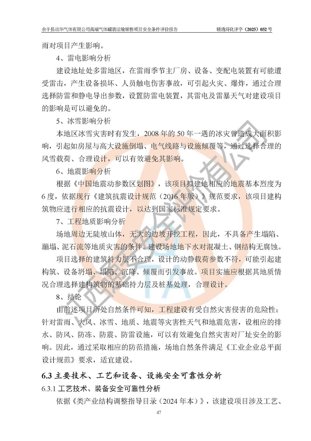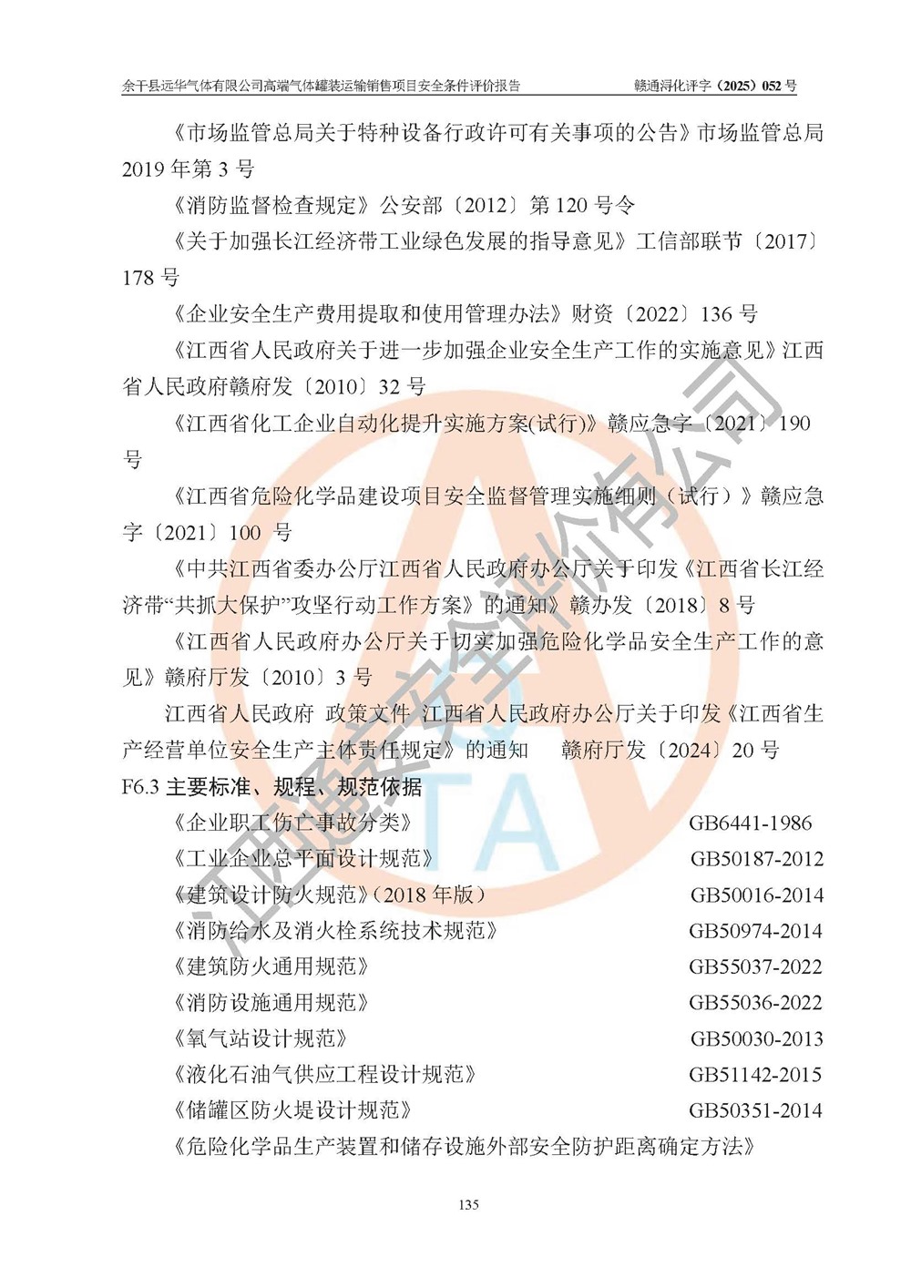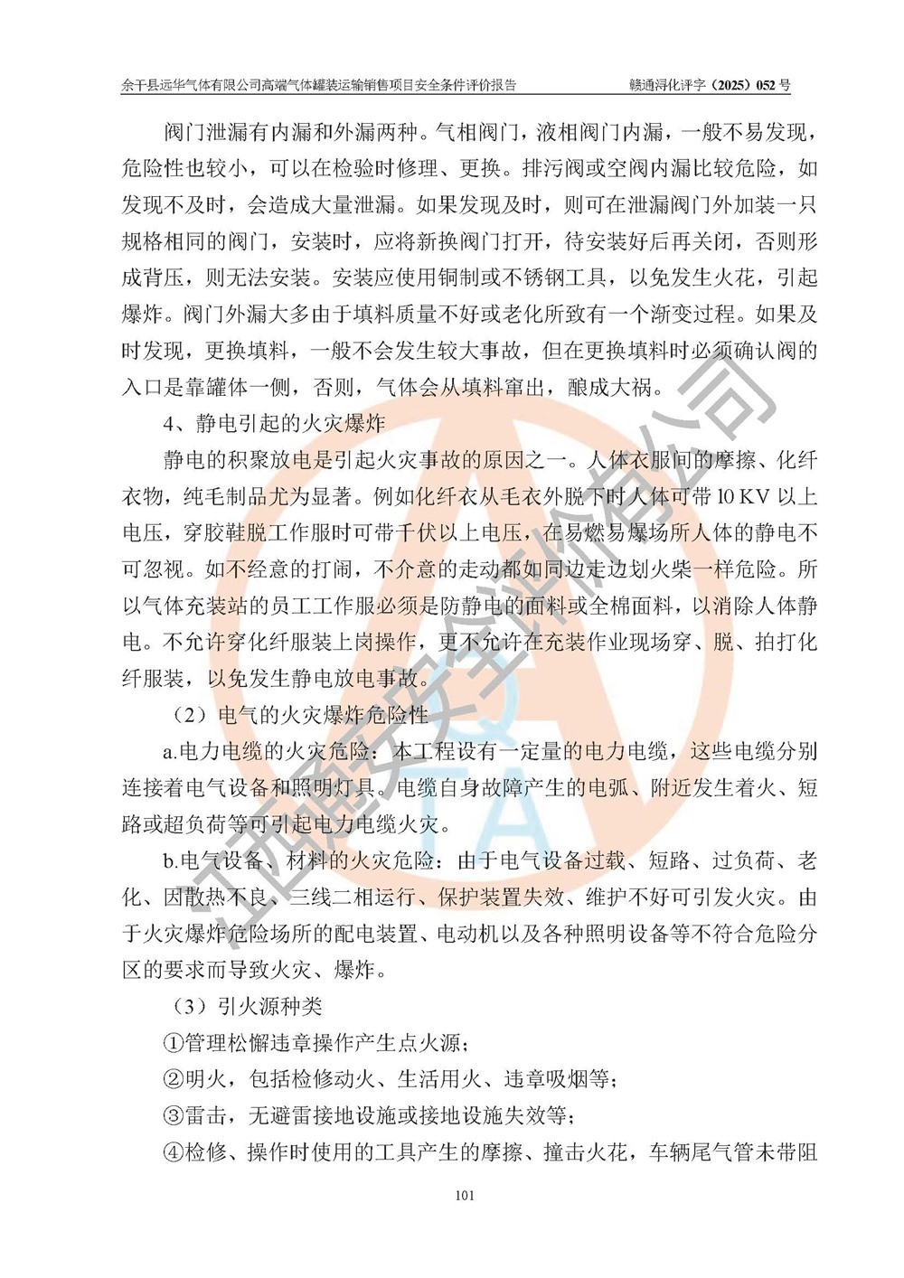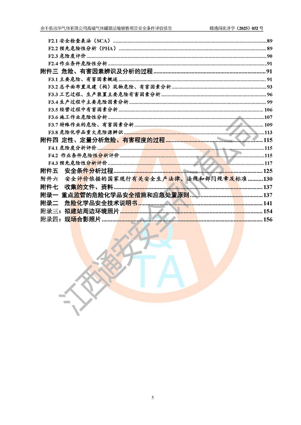 项目简介 | 余干县远华气体有限公司成立于2024年05月10日,公司类型为有限责任公司(自然人投资或控股),该公司法定**人为张建华,注册资本贰佰万元整,经营场所位于江西省上饶市余干县****产业园区内聚温化纤以西锦华路以南。经营范围:一般项目:气体、液体分离及纯净设备销售(除依法须经批准的项目外,凭营业执照依法自主开展经营活动)。 余干县远华气体有限公司于2025年02月11日取得了余干县发展和改革委员会《余干县远华气体有限公司高端气体罐装运输销售项目》备案文件,备案编号:2502-361127-04-01-434579。 该项目涉及氧、二氧化碳、氮、氩、丙烷、乙炔、氦气、二元气(二氧化碳+氩气)的储存经营,贸易调拨经营的气体氢气、甲烷、食品二氧化碳。该公司拟建低温立式储罐液氧罐30m3 2个、液态二氧化碳罐30m3 1个、液氮罐30m3 1个、液氩罐30m3 1个,及各工业气瓶100瓶、各杜瓦瓶20瓶;全压力式卧式埋地储罐丙烷40m3 1个、40m3 1个(备用罐)及丙烷工业气瓶50瓶;气瓶库内乙炔气瓶及氦气气瓶各50瓶。项目储存经营过程中涉及的氧(液态的、压缩的)、二氧化碳(液态的、压缩的)、氩(液态的、压缩的)、氮(液态的、压缩的)、丙烷、乙炔、氦气、食品级二氧化碳、二元气(二氧化碳+氩气)均属于危险化学品,贸易调拨经营的气体氢气、甲烷、食品二氧化碳属于危险化学品。不涉及易制毒化学品、剧毒化学品、监控化学品、易制爆化学品、特别管控危险化学品,乙炔、丙烷、氢气、甲烷属于重点监管的危险化学品。该项目储存经营场所(生产单元、储存单元)不构成危险化学品重大危险源。 依据《危险化学品经营许可证管理办法》(**安全生产监督管理总局令第55号,第79号修改),项目储存经营的化学品属于危险化学品,需要办理《危险化学品经营许可证》。 依据《中华人民共和国安全生产法》、《危险化学品安全管理条例》等规定的要求,危险化学品新、改、扩建的生产性建设工程**进行安全评价,根据《危险化学品建设项目安全监督管理办法》(**安全生产监督管理总局令第45号,第79号、89号令修改)的规定,危险化学品新、改、扩建的生产性建设工程**进行建设项目安全条件评价,以使工程项目的设立满足安全生产条件,项目的安全设施与主体工程同时设计、同时施工、同时投入使用,项目在安全生产及安全管理方面符合**及行业有关法律法规及标准。因此余干县远华气体有限公司委托江西通安安全评价有限公司承担该项目的安全条件评价。 江西通安安全评价有限公司接受委托后,参照现行的法律、法规和标准,按照《安全评价通则》、《安全预评价导则》、江西省应急管理厅关于印发《江西省危险化学品建设项目安全监督管理实施细则》(试行)的通知等规范规定的要求,成立评价组。评价组完成风险分析、资料收集、现场勘查和类比调查等前期准备工作,并制定评价实施计划。评价组在前期准备工作的基础上,根据企业提供的资料,分析了该项目中可能存在的主要危险、有害因素,在危险、有害因素分析基础上,根据该项目的生产工艺、功能区域特点,划分了评价单元,并针对划分的评价单元选择了相应的安全评价方法进行了逐项分析、评价,提出了相应的预防和控制对策措施。 本报告可作为余干县远华气体有限公司高端气体罐装运输销售项目安全生产技术、安全生产管理决策及办理相关安全生产行政许可事项的技术依据。 本次安全评价范围:余干县远华气体有限公司高端气体罐装运输销售项目,主要包括: (1)选址、周边环境、总平面布置及建、建构筑物(主要包括罐区、气体灌装间、气瓶库、杜瓦瓶充装棚、变配电室、制冰车间、研发中心); (2)项目的生产工艺及装置;相关的公用工程、辅助工程设施(配电房、消防泵房、消防水池/事故水池等)。 评价内容涉及工程的安全条件、安全生产条件及安全生产管理,包括生产过程中的危险有害因素,建设项目的安全条件以及工艺、设备设施的安全可靠性和安全生产方面管理的组织、机构、人员、防护设施、作业环境及管理制度等。本项目不涉及城镇燃气经营。 项目厂外运输及其运输工具不在评价范围内。涉及该项目的环境、消防、职业卫生、产品质量及施工安全等问题则应执行**的有关法规规定及相关标准;本评价引用到的**、消防、职业卫生方面的法规标准与安全评价有**的关联,环境保护、职业卫生与消防应以其主管部门审核意见为准。 | ||||||
