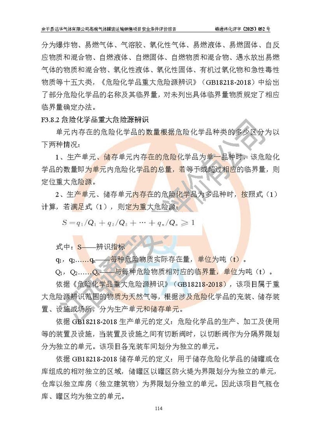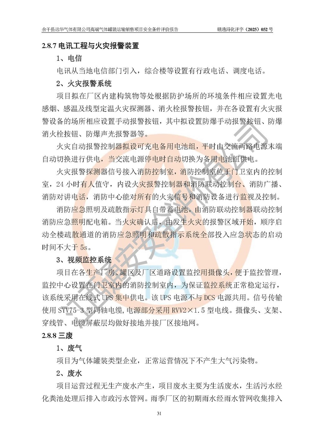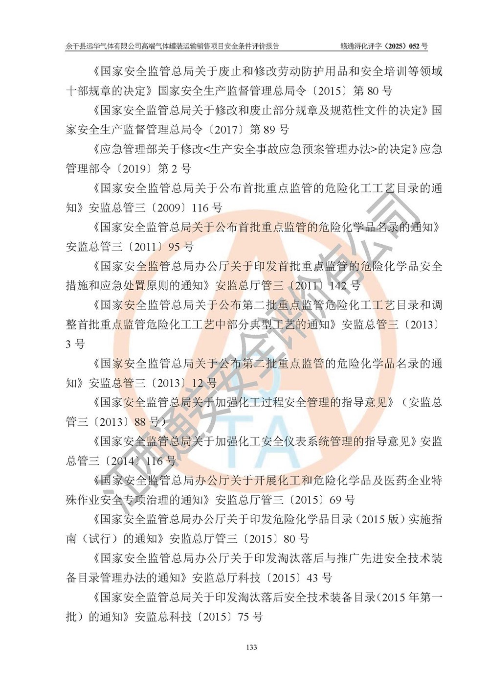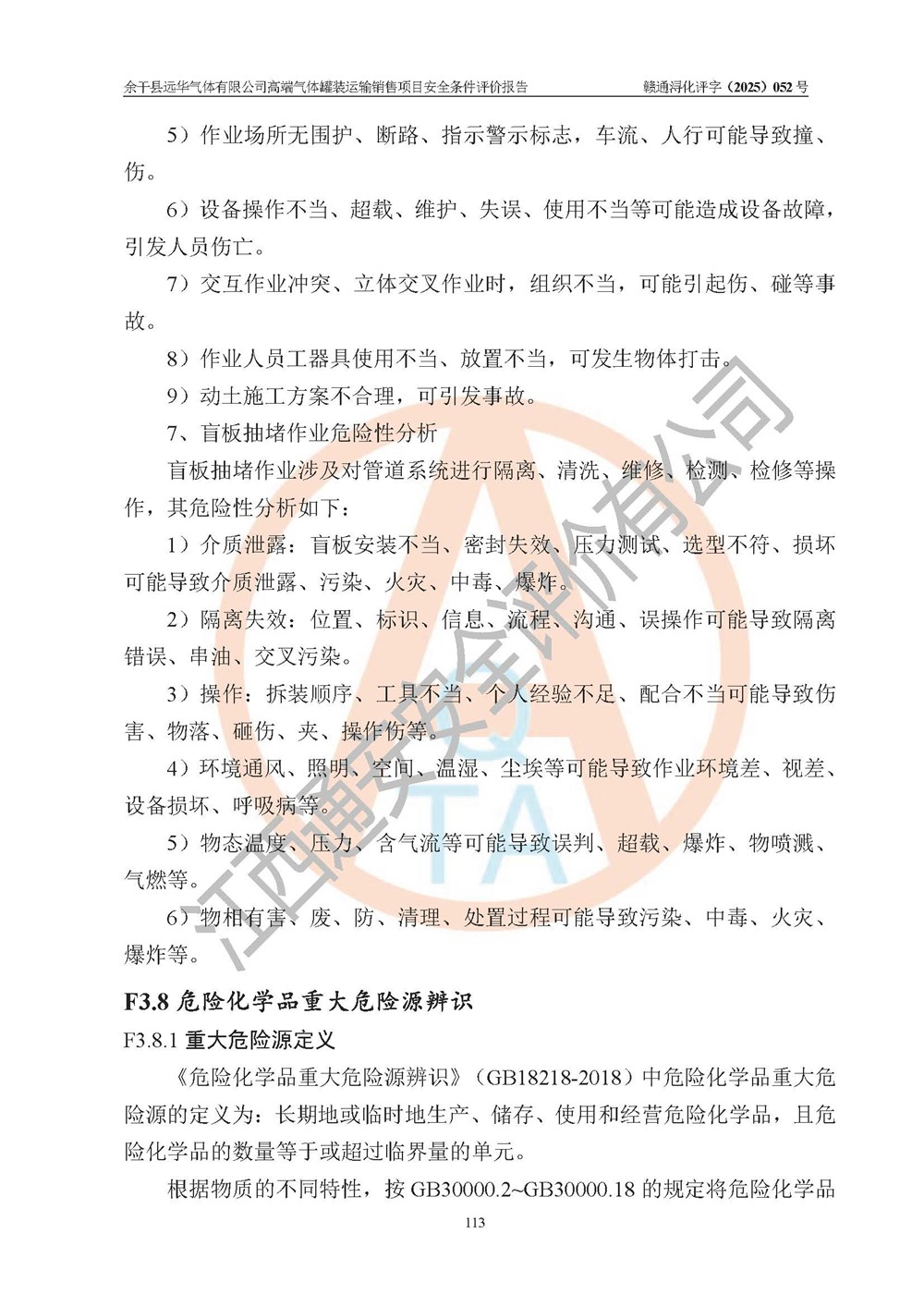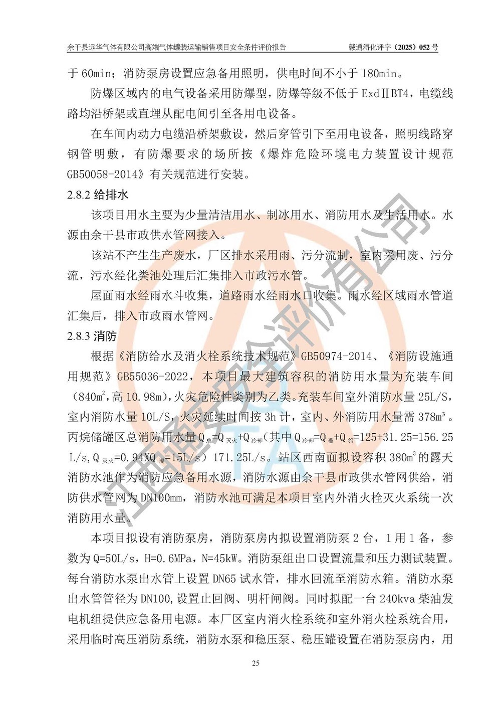 项目简介 | 余干县远华气体有限公司成立于2024年05月10日,公司类型为有限责任公司(自然人投资或控股),该公司法定**人为张建华,注册资本贰佰万元整,经营场所位于江西省上饶市余干县****产业园区内聚温化纤以西锦华路以南。经营范围:一般项目:气体、液体分离及纯净设备销售(除依法须经批准的项目外,凭营业执照依法自主开展经营活动)。 余干县远华气体有限公司于2025年02月11日取得了余干县发展和改革委员会《余干县远华气体有限公司高端气体罐装运输销售项目》备案文件,备案编号:2502-361127-04-01-434579。 该项目涉及氧、二氧化碳、氮、氩、丙烷、乙炔、氦气、二元气(二氧化碳+氩气)的储存经营,贸易调拨经营的气体氢气、甲烷、食品二氧化碳。该公司拟建低温立式储罐液氧罐30m3 2个、液态二氧化碳罐30m3 1个、液氮罐30m3 1个、液氩罐30m3 1个,及各工业气瓶100瓶、各杜瓦瓶20瓶;全压力式卧式埋地储罐丙烷40m3 1个、40m3 1个(备用罐)及丙烷工业气瓶50瓶;气瓶库内乙炔气瓶及氦气气瓶各50瓶。项目储存经营过程中涉及的氧(液态的、压缩的)、二氧化碳(液态的、压缩的)、氩(液态的、压缩的)、氮(液态的、压缩的)、丙烷、乙炔、氦气、食品级二氧化碳、二元气(二氧化碳+氩气)均属于危险化学品,贸易调拨经营的气体氢气、甲烷、食品二氧化碳属于危险化学品。不涉及易制毒化学品、剧毒化学品、监控化学品、易制爆化学品、特别管控危险化学品,乙炔、丙烷、氢气、甲烷属于重点监管的危险化学品。该项目储存经营场所(生产单元、储存单元)不构成危险化学品重大危险源。 依据《危险化学品经营许可证管理办法》(**安全生产监督管理总局令第55号,第79号修改),项目储存经营的化学品属于危险化学品,需要办理《危险化学品经营许可证》。 依据《中华人民共和国安全生产法》、《危险化学品安全管理条例》等规定的要求,危险化学品新、改、扩建的生产性建设工程**进行安全评价,根据《危险化学品建设项目安全监督管理办法》(**安全生产监督管理总局令第45号,第79号、89号令修改)的规定,危险化学品新、改、扩建的生产性建设工程**进行建设项目安全条件评价,以使工程项目的设立满足安全生产条件,项目的安全设施与主体工程同时设计、同时施工、同时投入使用,项目在安全生产及安全管理方面符合**及行业有关法律法规及标准。因此余干县远华气体有限公司委托江西通安安全评价有限公司承担该项目的安全条件评价。 江西通安安全评价有限公司接受委托后,参照现行的法律、法规和标准,按照《安全评价通则》、《安全预评价导则》、江西省应急管理厅关于印发《江西省危险化学品建设项目安全监督管理实施细则》(试行)的通知等规范规定的要求,成立评价组。评价组完成风险分析、资料收集、现场勘查和类比调查等前期准备工作,并制定评价实施计划。评价组在前期准备工作的基础上,根据企业提供的资料,分析了该项目中可能存在的主要危险、有害因素,在危险、有害因素分析基础上,根据该项目的生产工艺、功能区域特点,划分了评价单元,并针对划分的评价单元选择了相应的安全评价方法进行了逐项分析、评价,提出了相应的预防和控制对策措施。 本报告可作为余干县远华气体有限公司高端气体罐装运输销售项目安全生产技术、安全生产管理决策及办理相关安全生产行政许可事项的技术依据。 本次安全评价范围:余干县远华气体有限公司高端气体罐装运输销售项目,主要包括: (1)选址、周边环境、总平面布置及建、建构筑物(主要包括罐区、气体灌装间、气瓶库、杜瓦瓶充装棚、变配电室、制冰车间、研发中心); (2)项目的生产工艺及装置;相关的公用工程、辅助工程设施(配电房、消防泵房、消防水池/事故水池等)。 评价内容涉及工程的安全条件、安全生产条件及安全生产管理,包括生产过程中的危险有害因素,建设项目的安全条件以及工艺、设备设施的安全可靠性和安全生产方面管理的组织、机构、人员、防护设施、作业环境及管理制度等。本项目不涉及城镇燃气经营。 项目厂外运输及其运输工具不在评价范围内。涉及该项目的环境、消防、职业卫生、产品质量及施工安全等问题则应执行**的有关法规规定及相关标准;本评价引用到的**、消防、职业卫生方面的法规标准与安全评价有**的关联,环境保护、职业卫生与消防应以其主管部门审核意见为准。 | ||||||