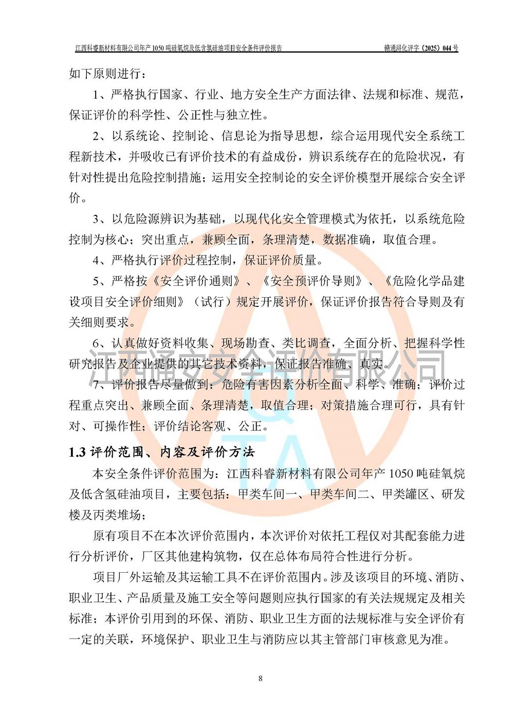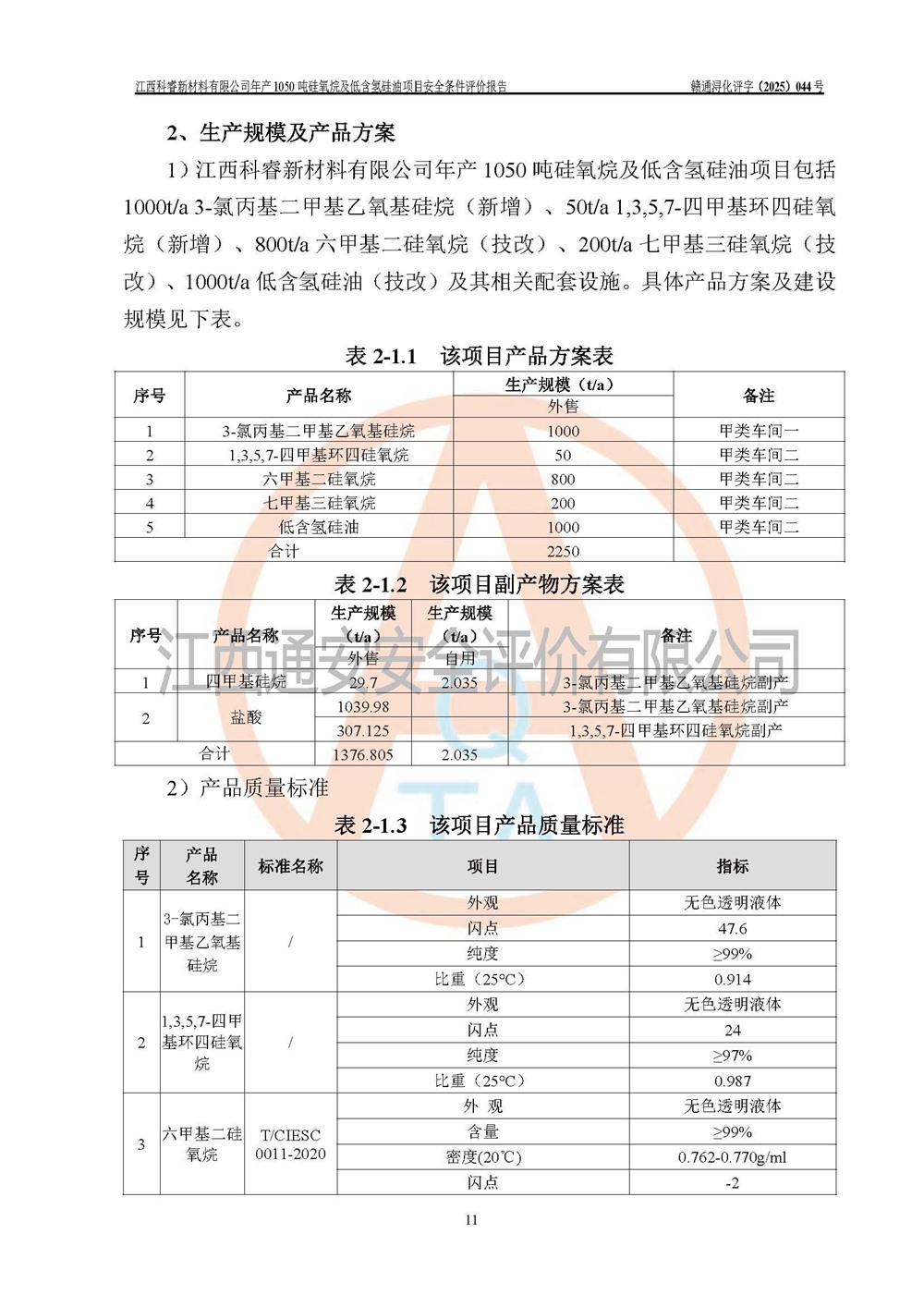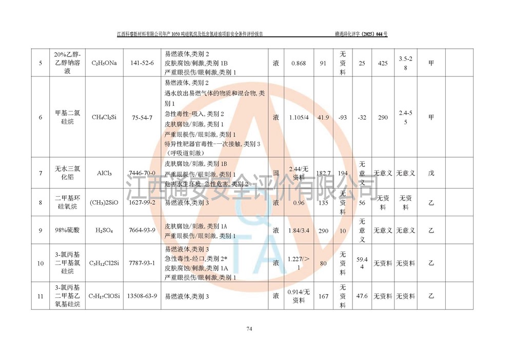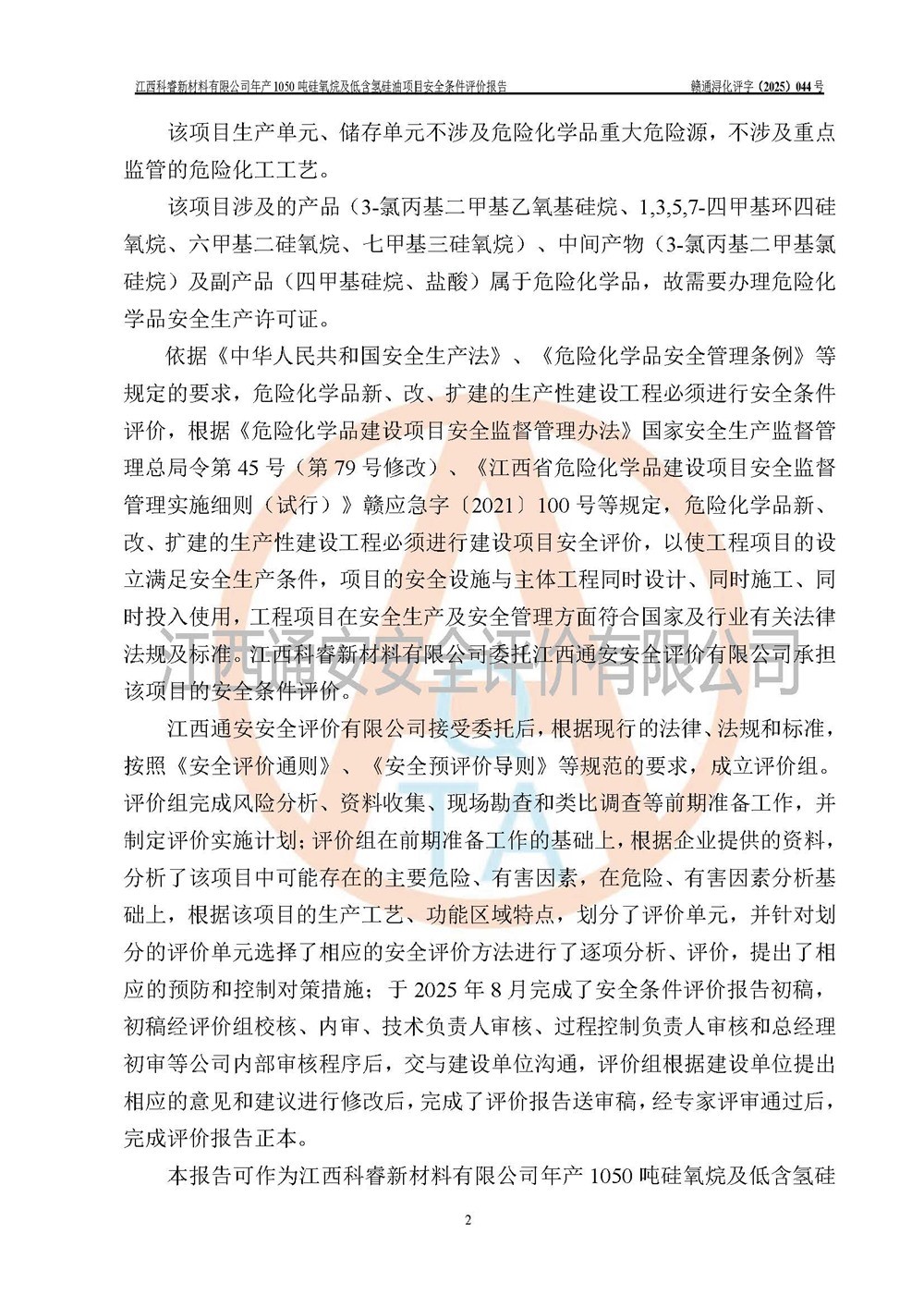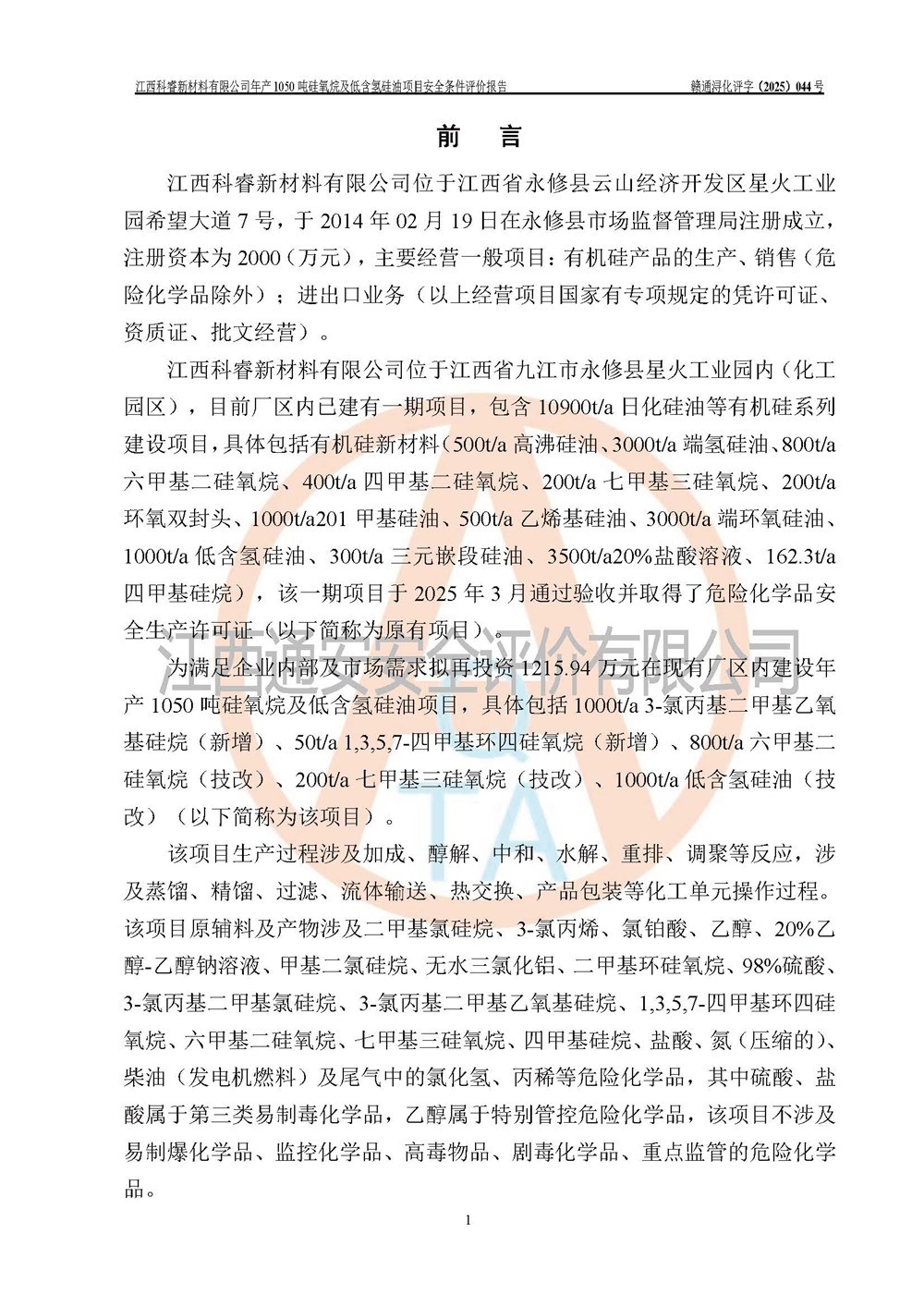评价报告名称 | 江西科睿新材料有限公司年产1050吨硅氧烷及低含氢硅油项目安全条件评价 | |||||