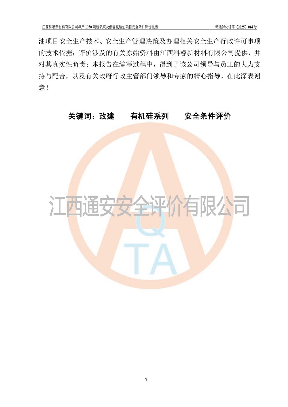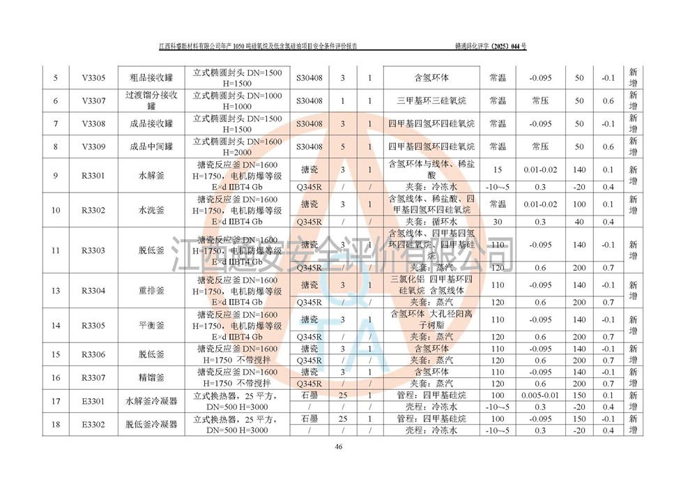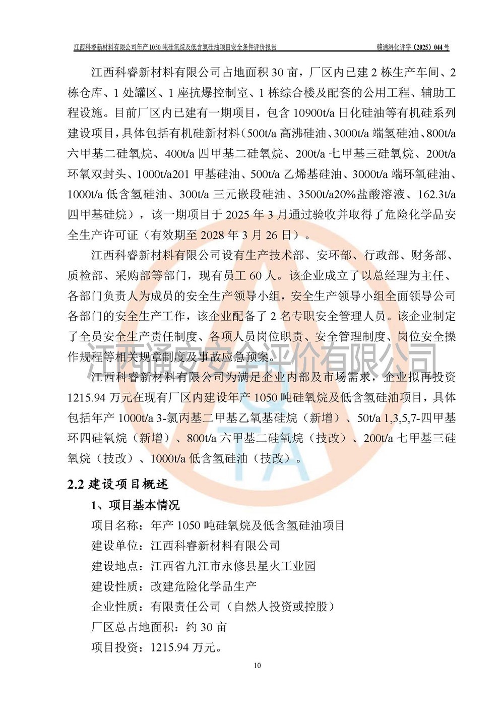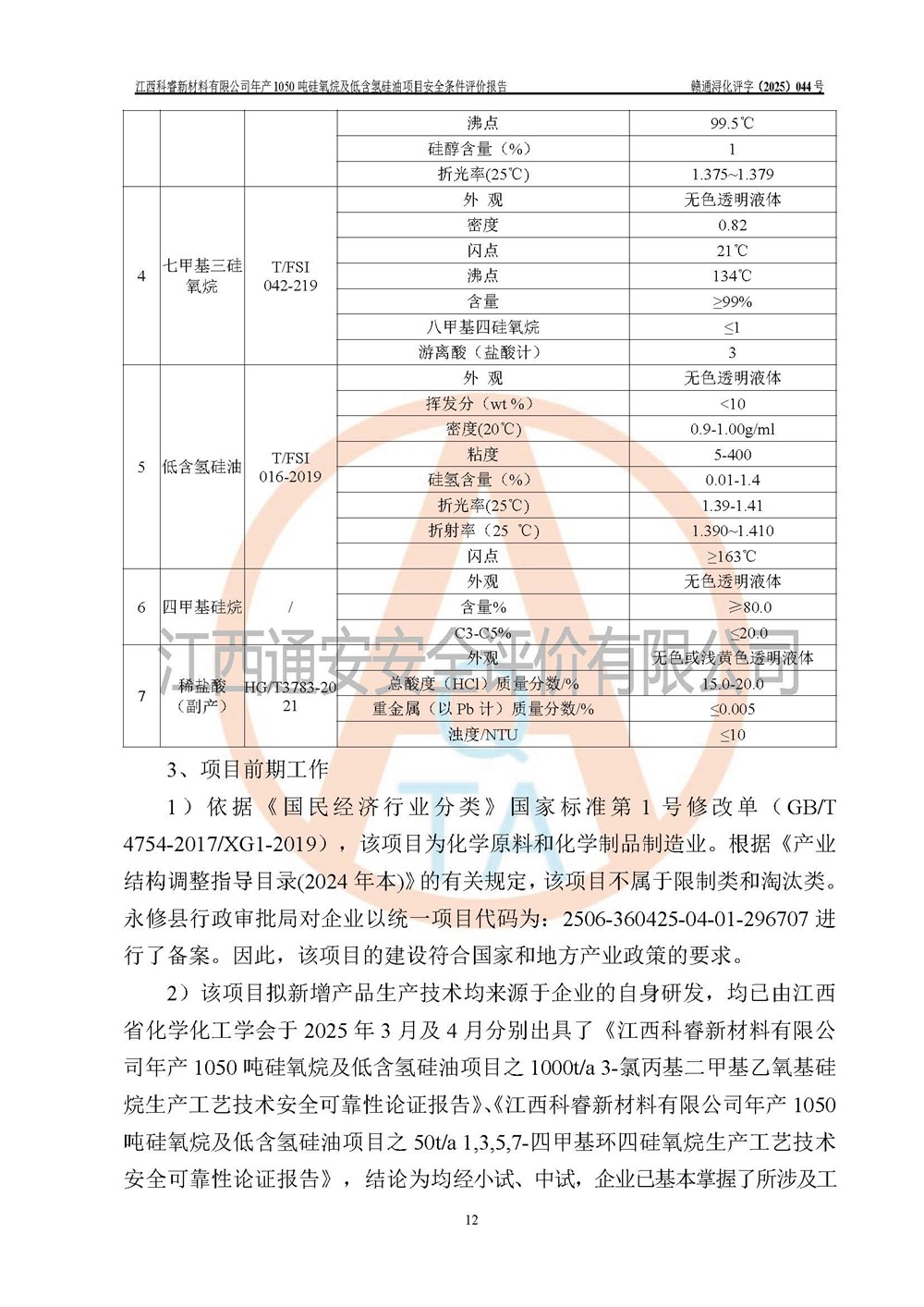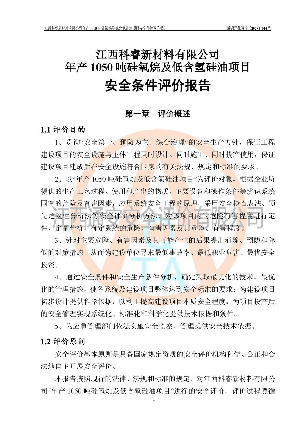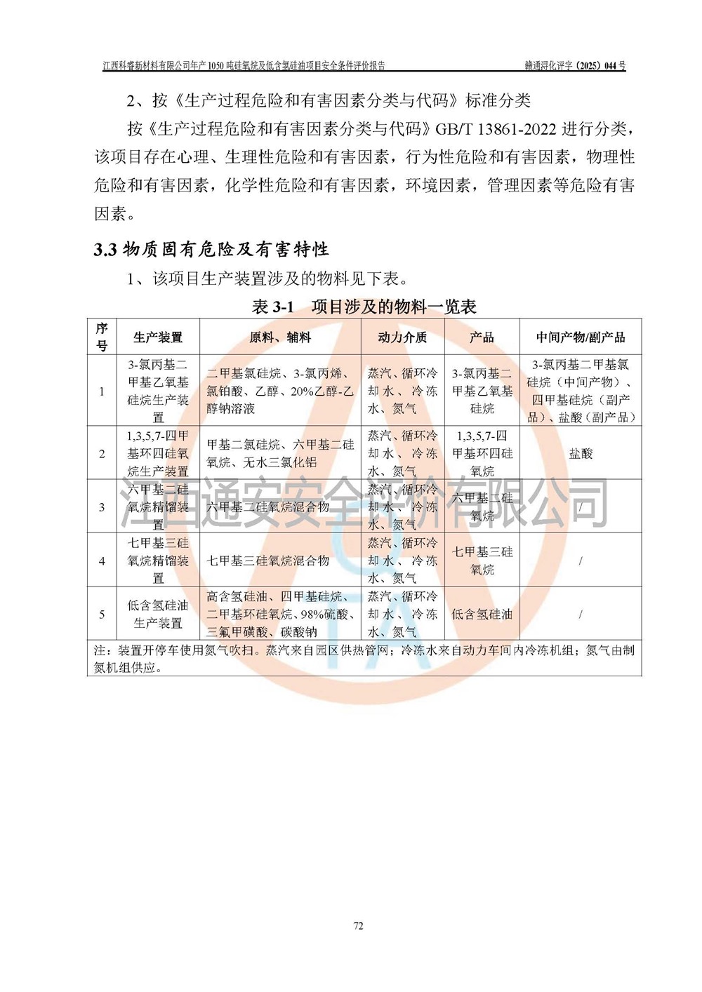 评价报告名称 | 江西科睿新材料有限公司年产1050吨硅氧烷及低含氢硅油项目安全条件评价 | |||||