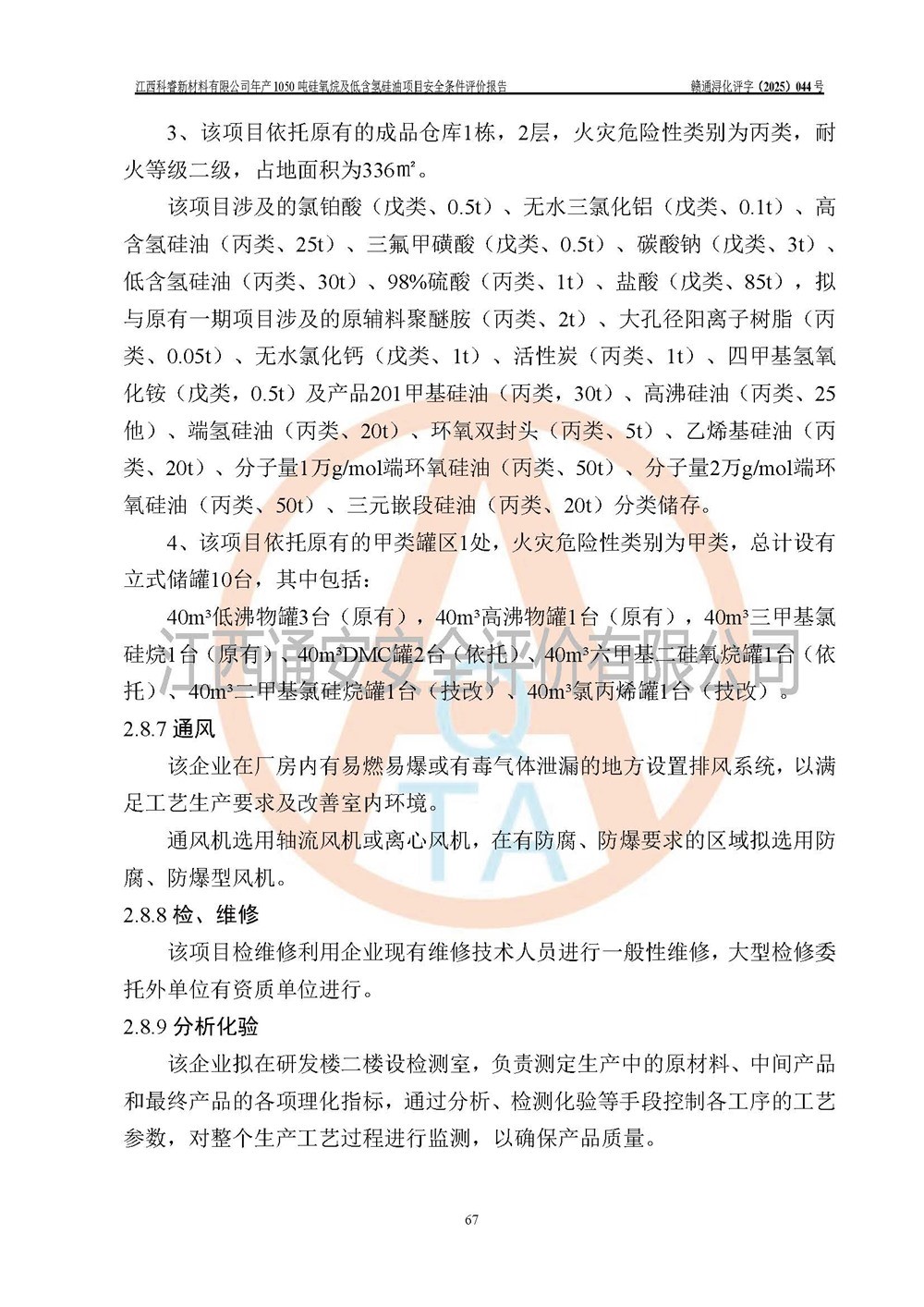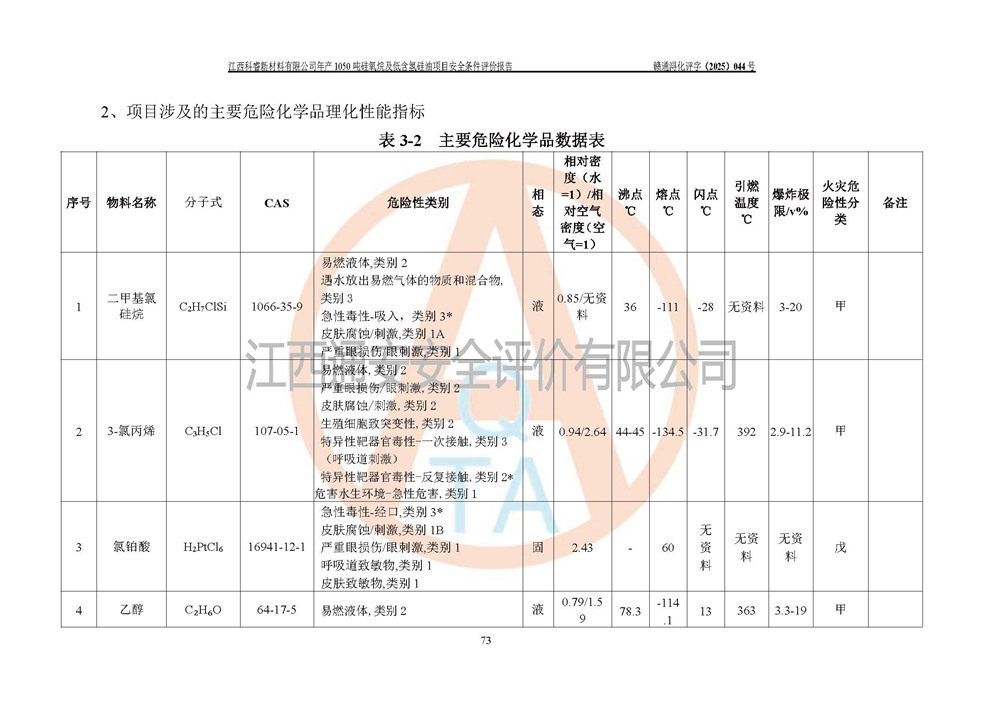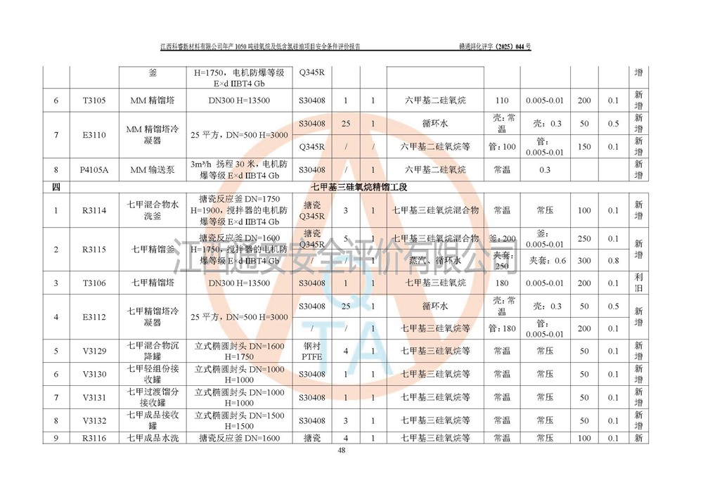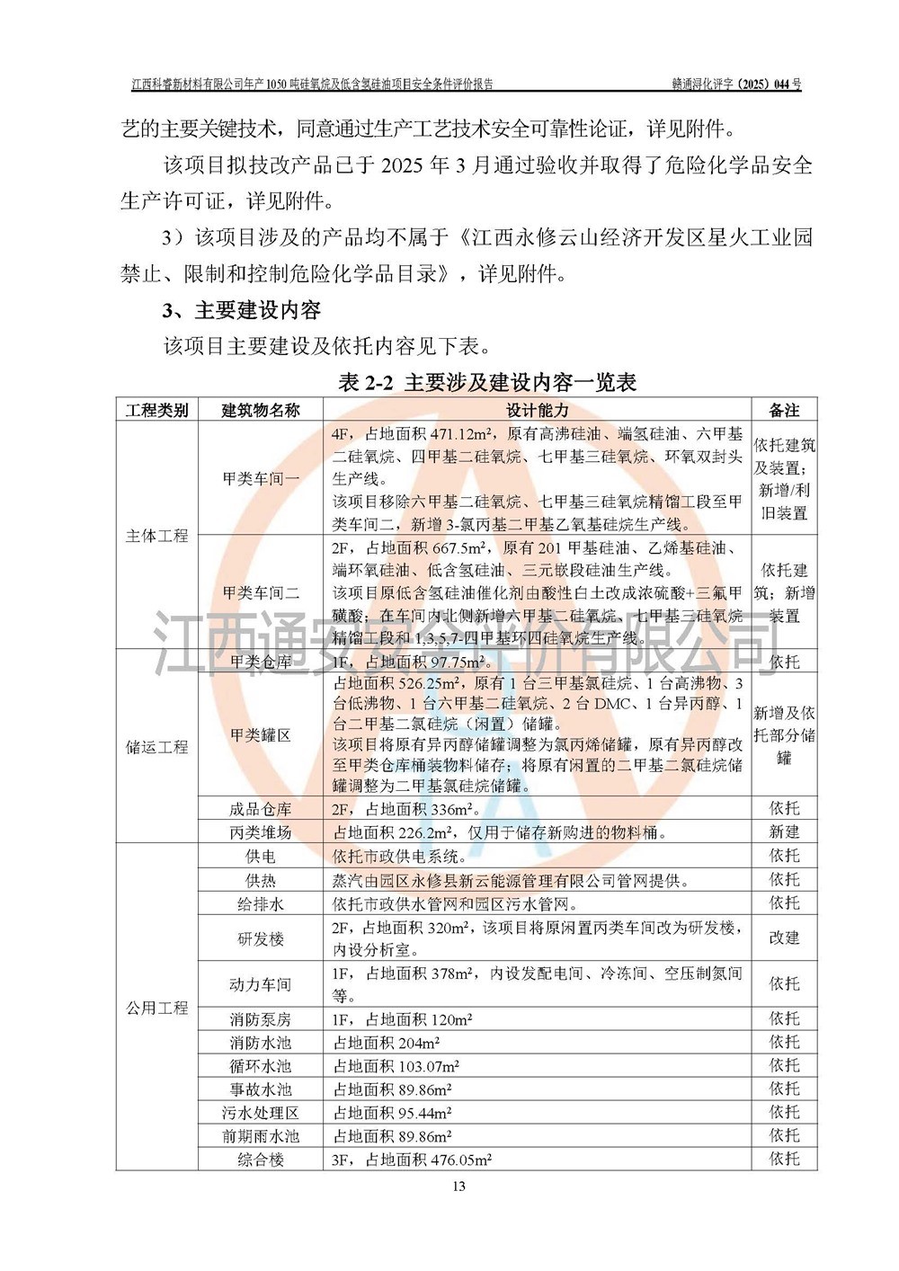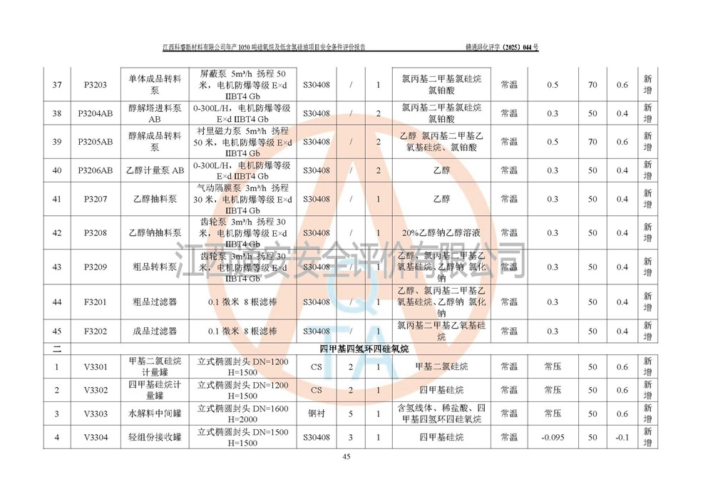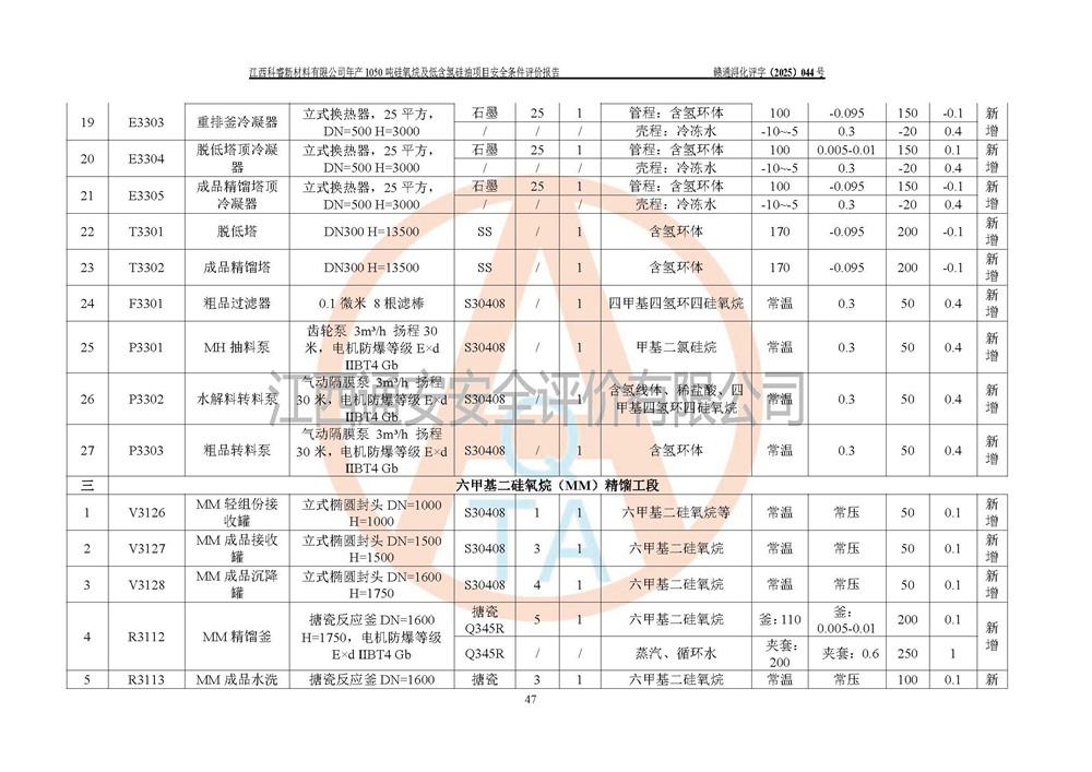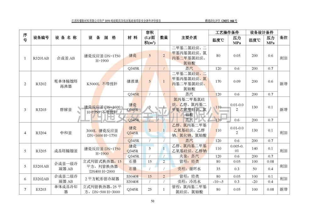 评价报告名称 | 江西科睿新材料有限公司年产1050吨硅氧烷及低含氢硅油项目安全条件评价 | |||||