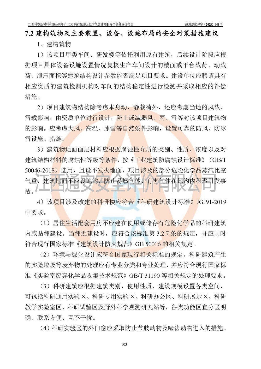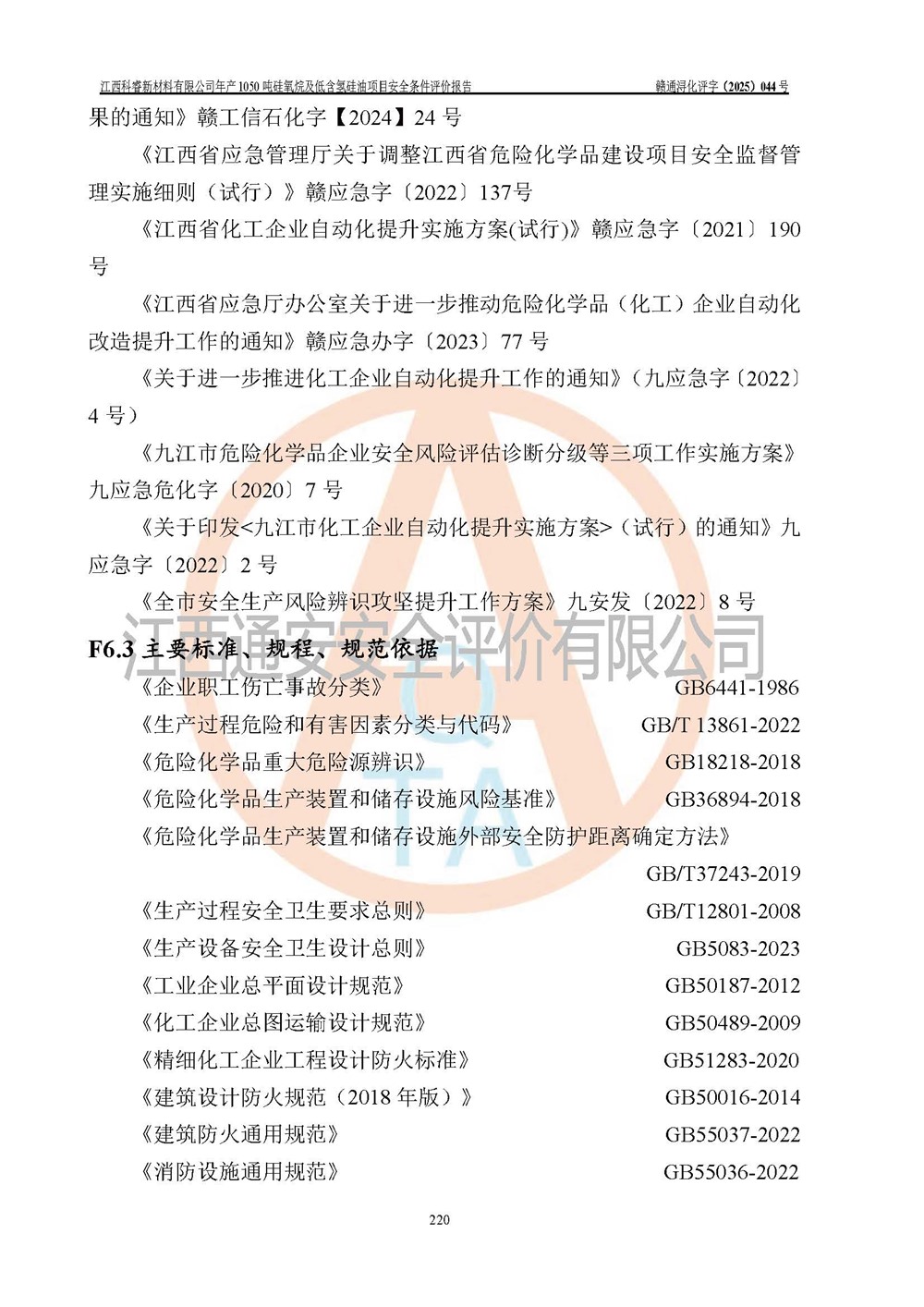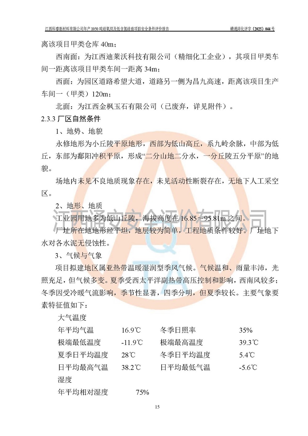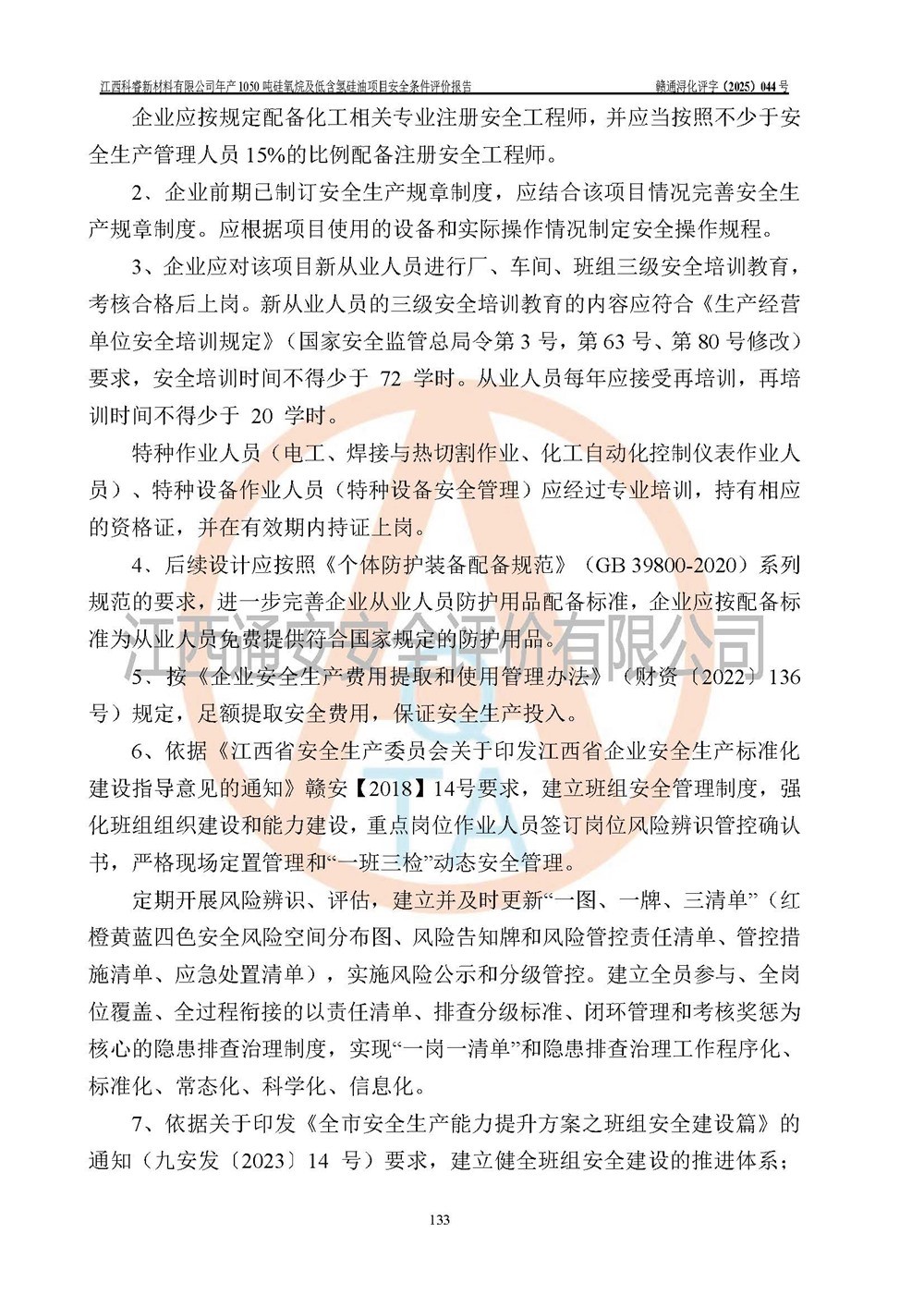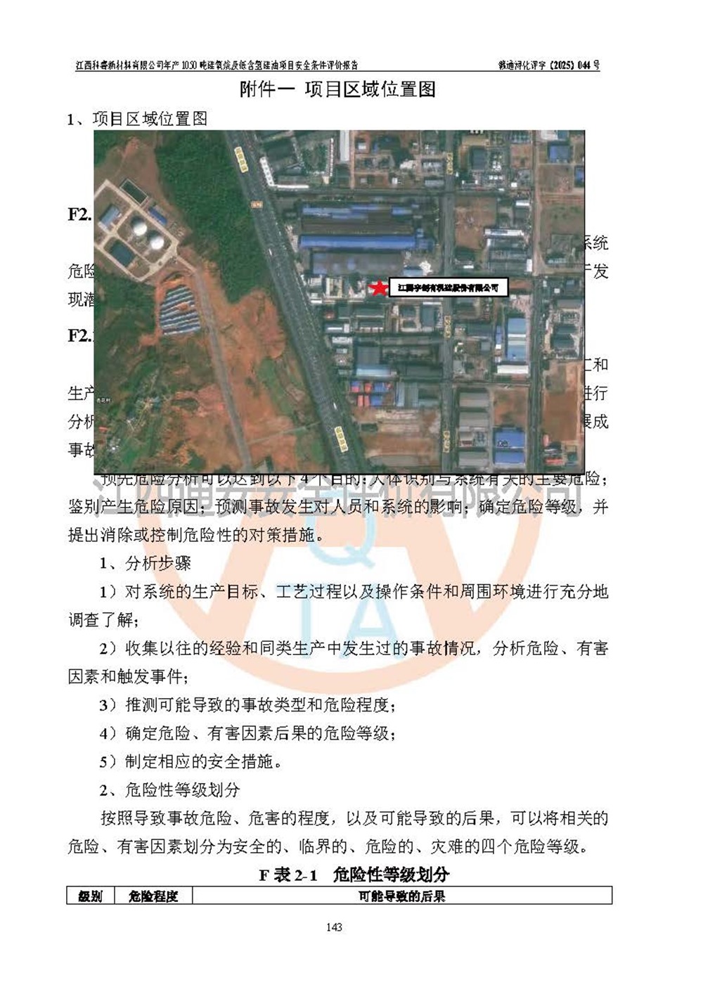 评价结论 | 江西科睿新材料有限公司年产1050吨硅氧烷及低含氢硅油项目的周边环境、总体布局、自然环境能满足建设安全条件;项目选择的工艺过程及设备设施的安全可靠性能达到**法规、标准规定要求;项目存在的危险有害因素可控,在落实本评价报告提出的有关安全对策措施后,其危险有害程度能达到可以接受的程度,项目建设能够实现安全运行的目标。 | |||||