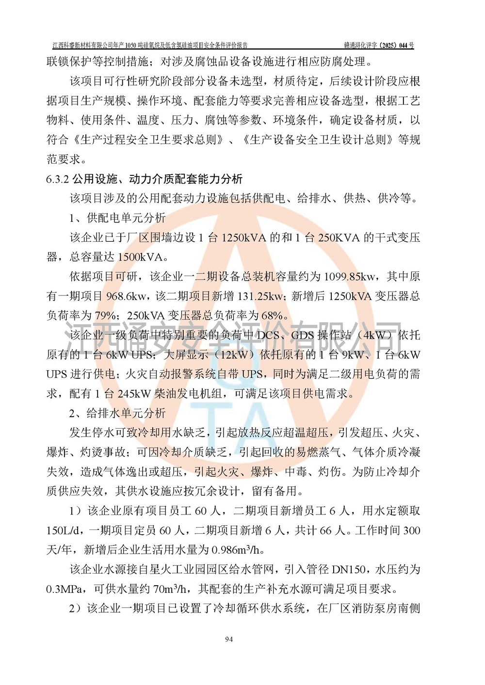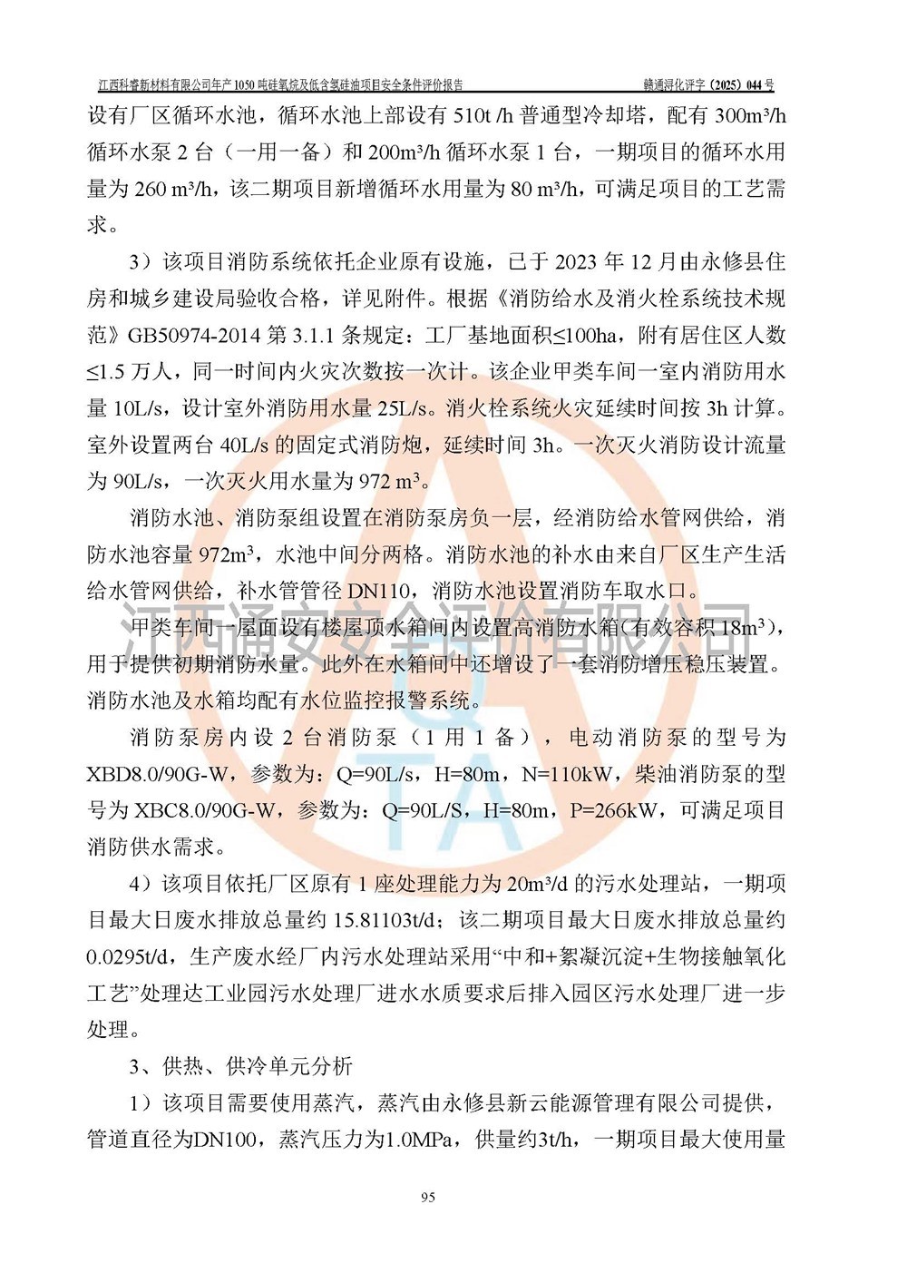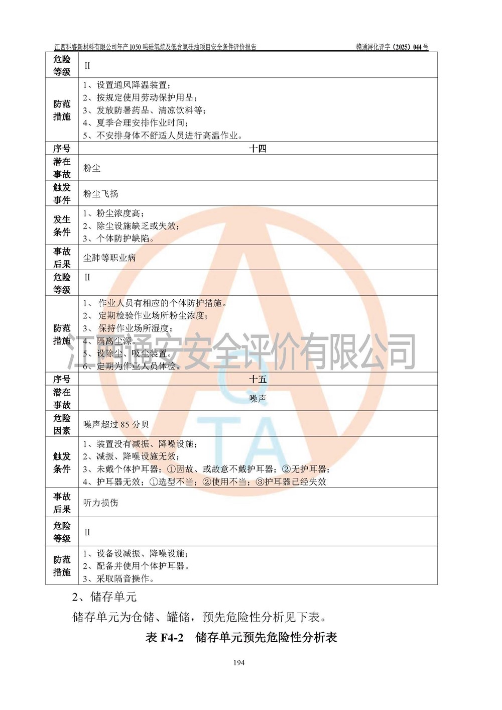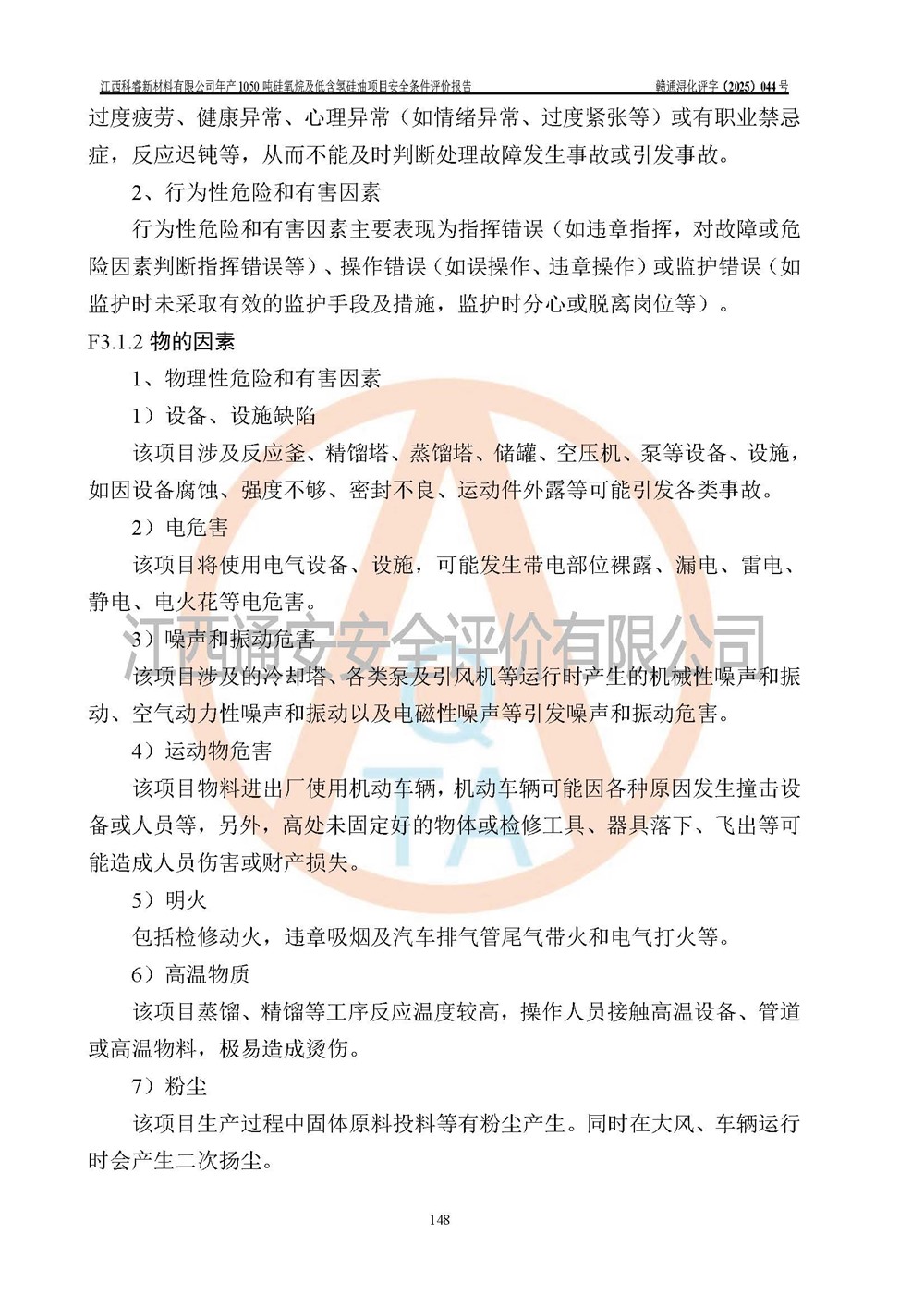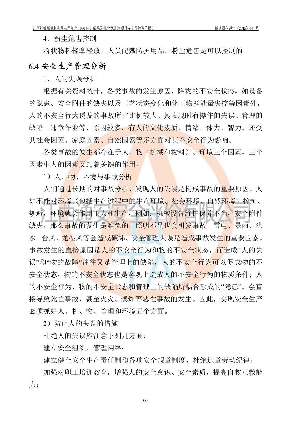 评价结论 | 江西科睿新材料有限公司年产1050吨硅氧烷及低含氢硅油项目的周边环境、总体布局、自然环境能满足建设安全条件;项目选择的工艺过程及设备设施的安全可靠性能达到**法规、标准规定要求;项目存在的危险有害因素可控,在落实本评价报告提出的有关安全对策措施后,其危险有害程度能达到可以接受的程度,项目建设能够实现安全运行的目标。 | |||||