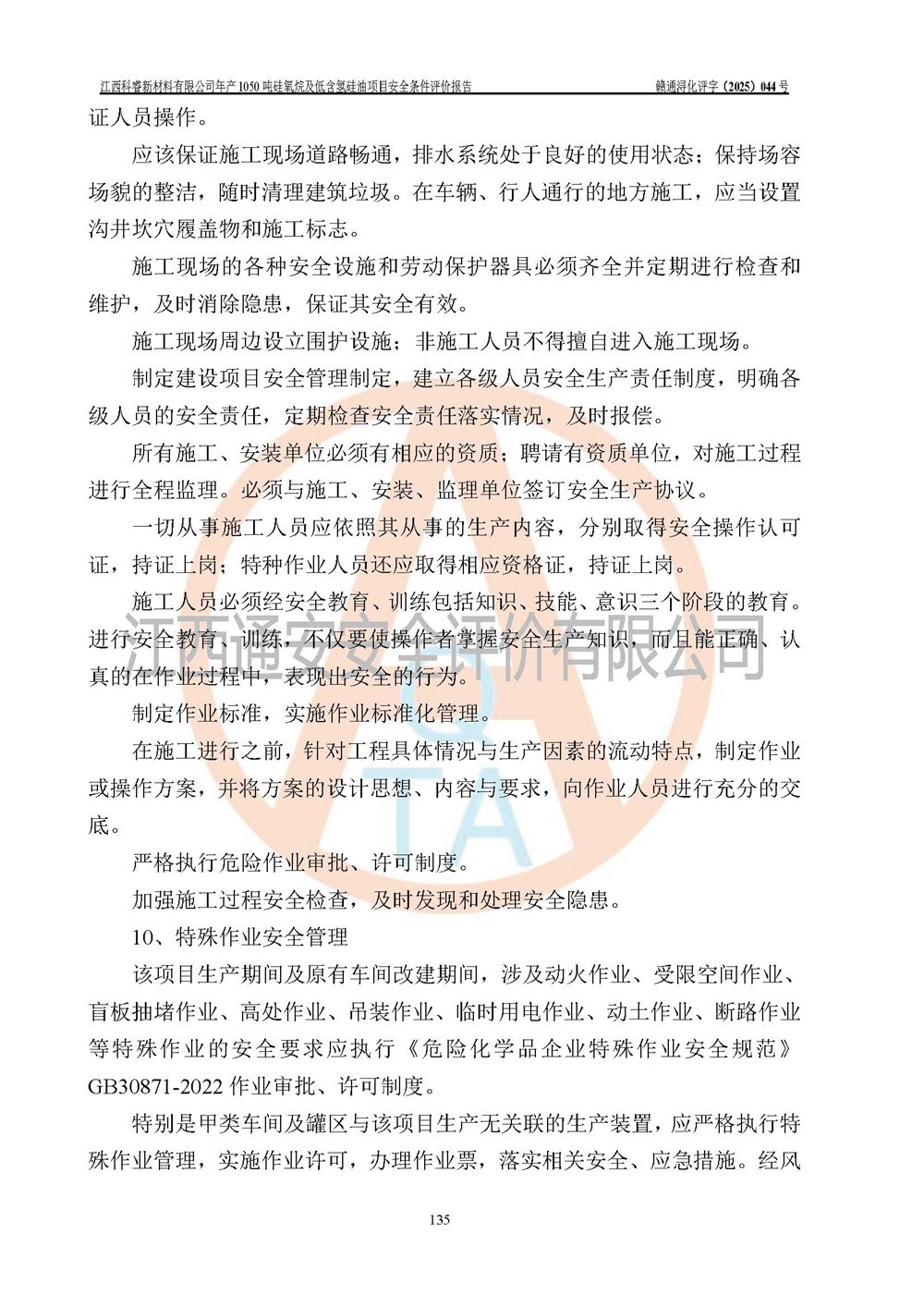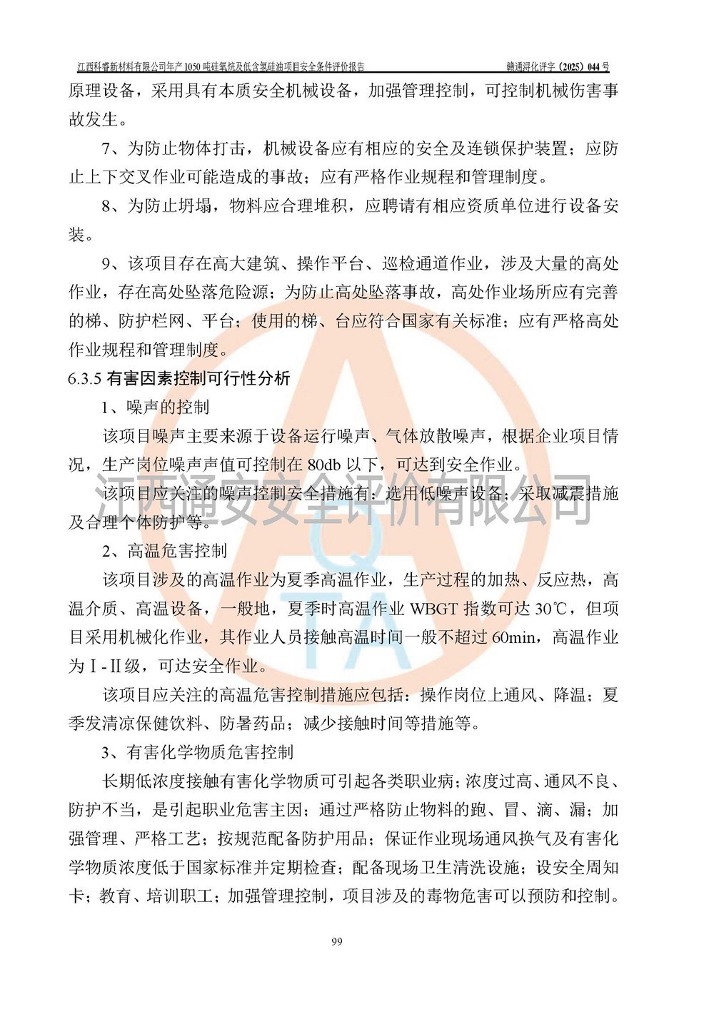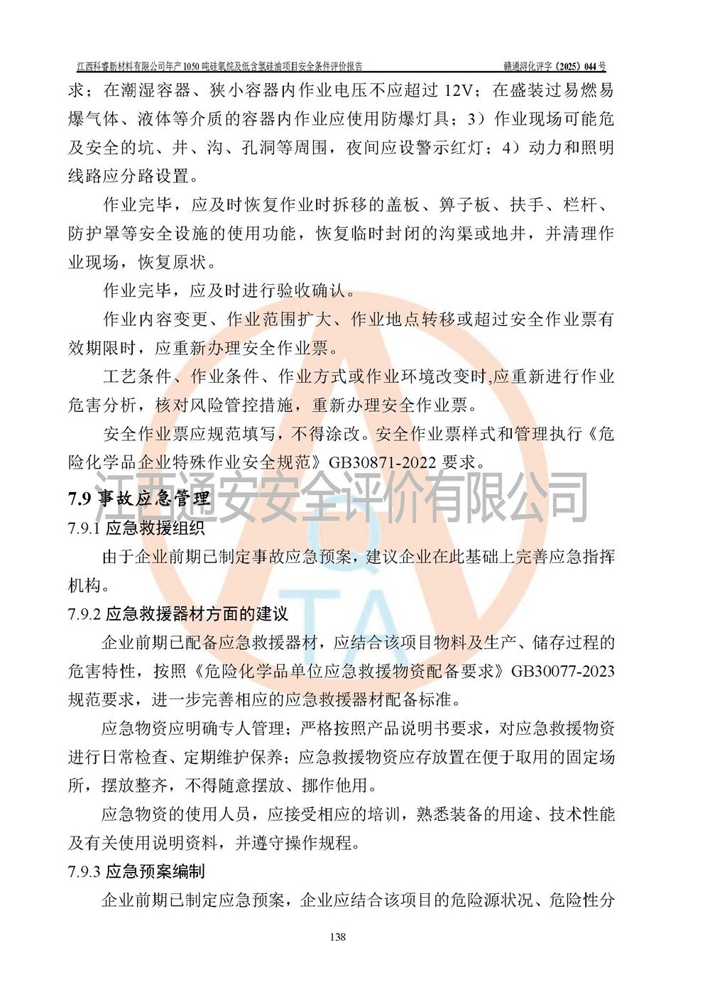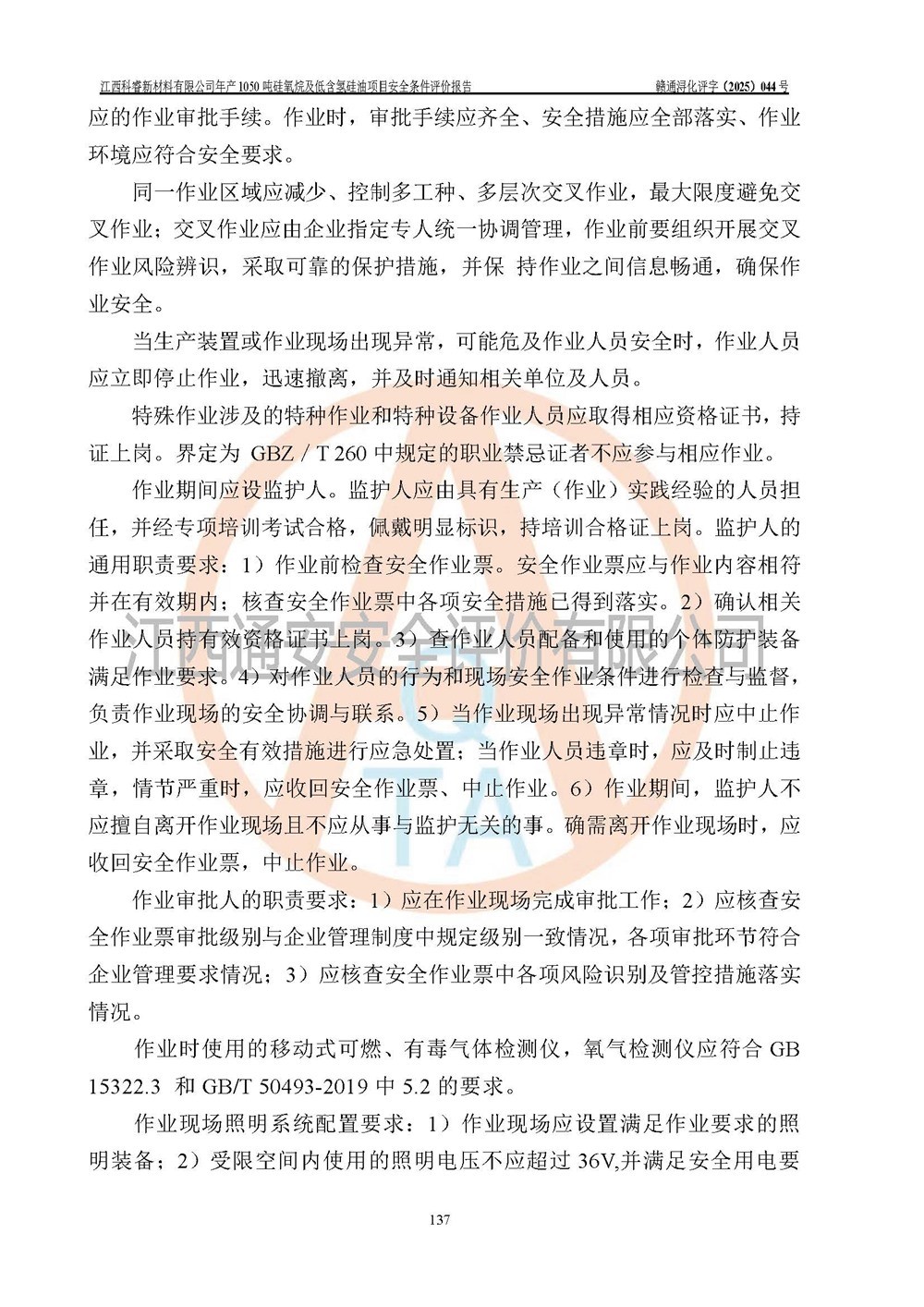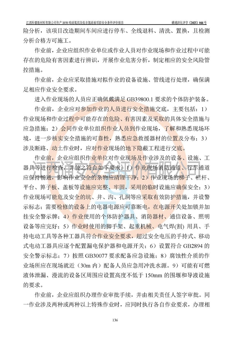 评价结论 | 江西科睿新材料有限公司年产1050吨硅氧烷及低含氢硅油项目的周边环境、总体布局、自然环境能满足建设安全条件;项目选择的工艺过程及设备设施的安全可靠性能达到**法规、标准规定要求;项目存在的危险有害因素可控,在落实本评价报告提出的有关安全对策措施后,其危险有害程度能达到可以接受的程度,项目建设能够实现安全运行的目标。 | |||||