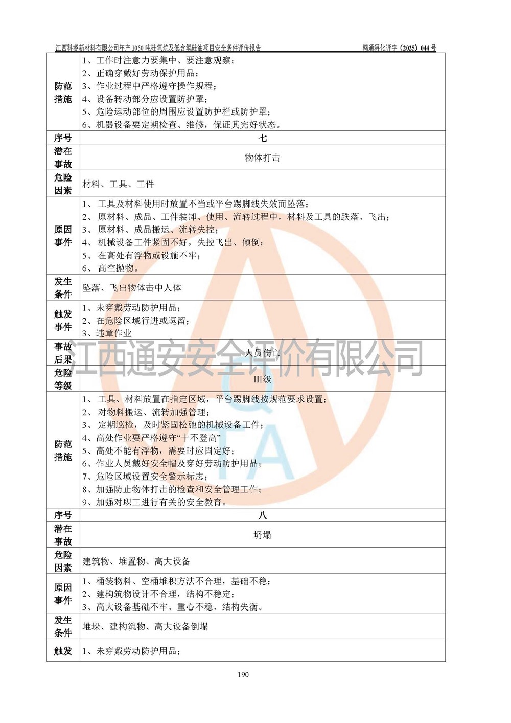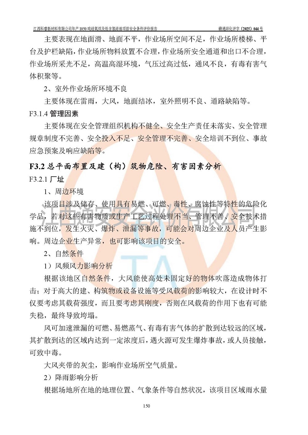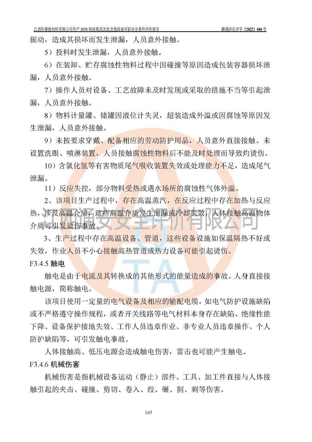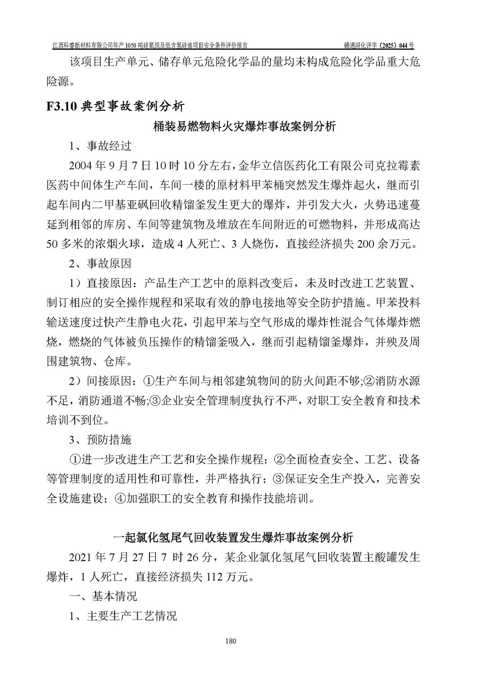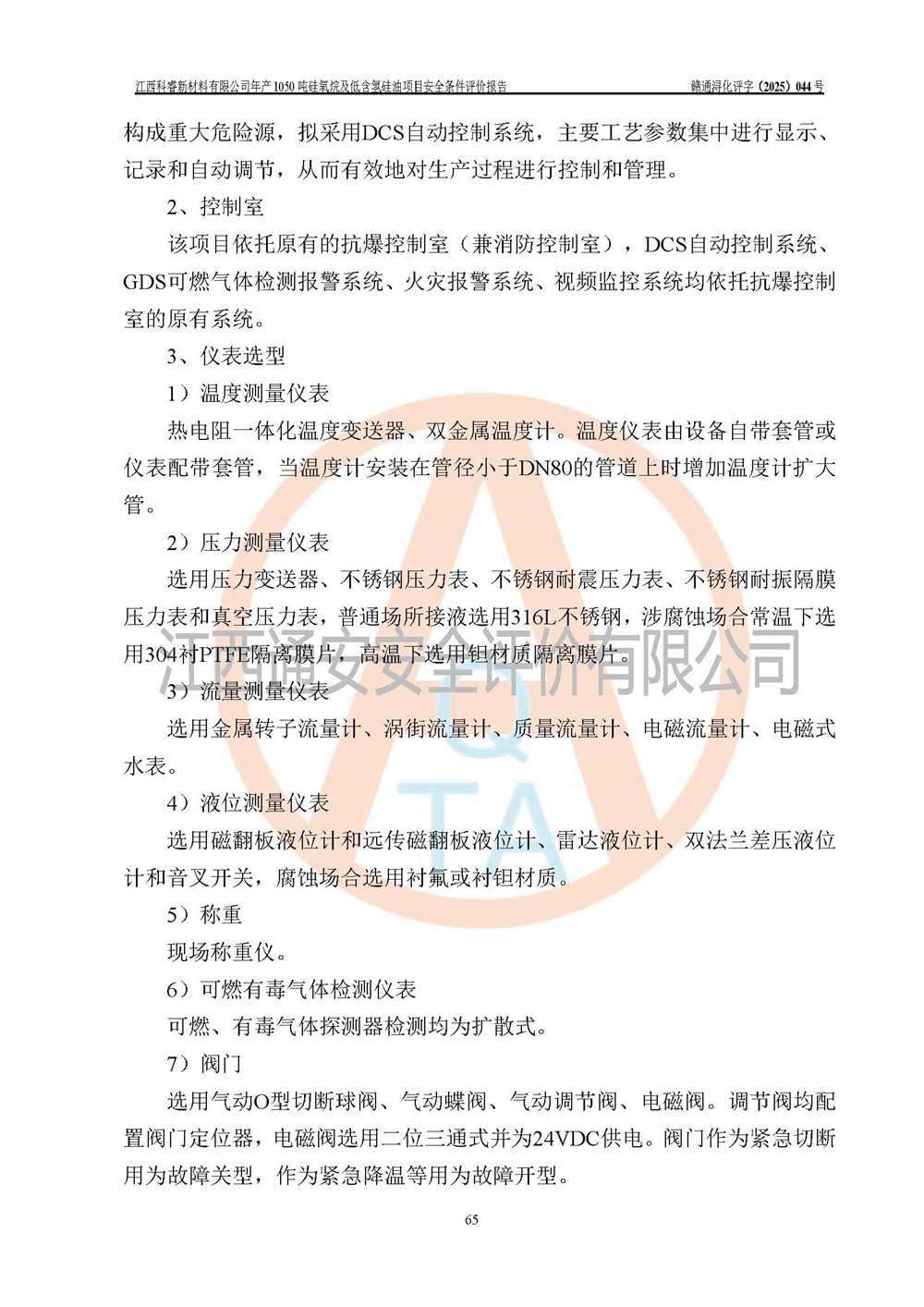 评价结论 | 江西科睿新材料有限公司年产1050吨硅氧烷及低含氢硅油项目的周边环境、总体布局、自然环境能满足建设安全条件;项目选择的工艺过程及设备设施的安全可靠性能达到**法规、标准规定要求;项目存在的危险有害因素可控,在落实本评价报告提出的有关安全对策措施后,其危险有害程度能达到可以接受的程度,项目建设能够实现安全运行的目标。 | |||||