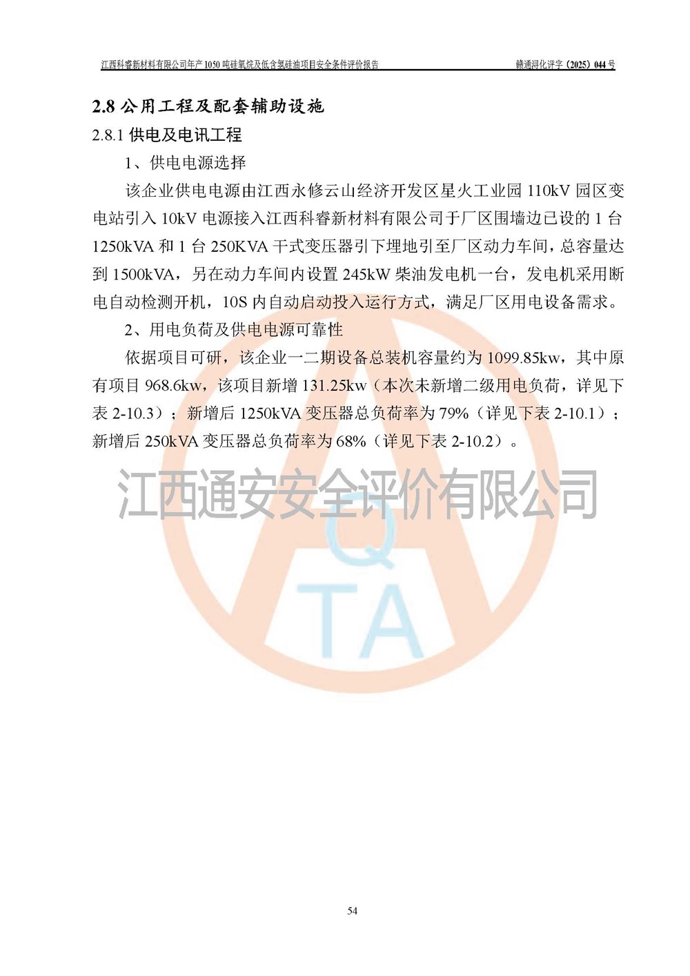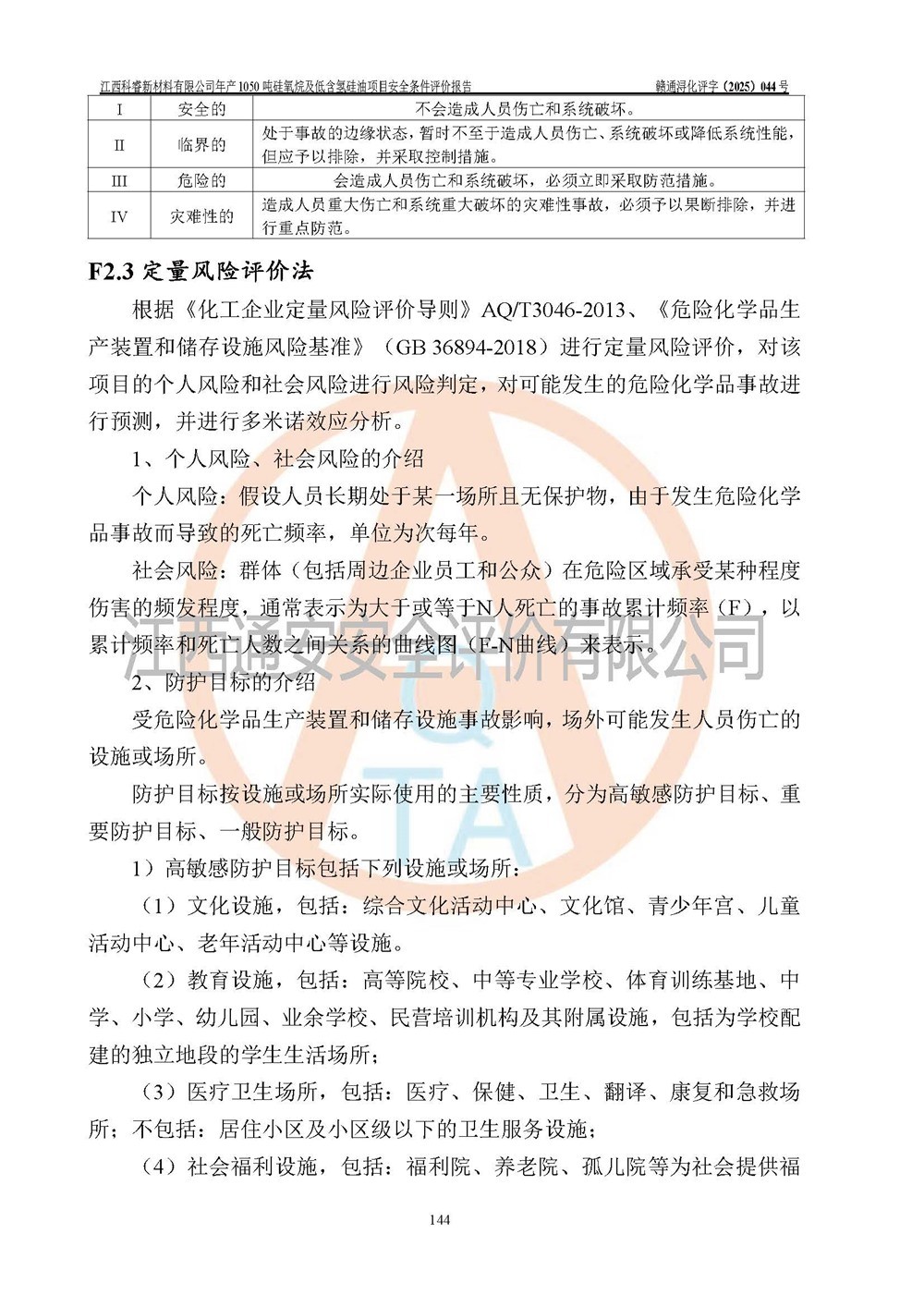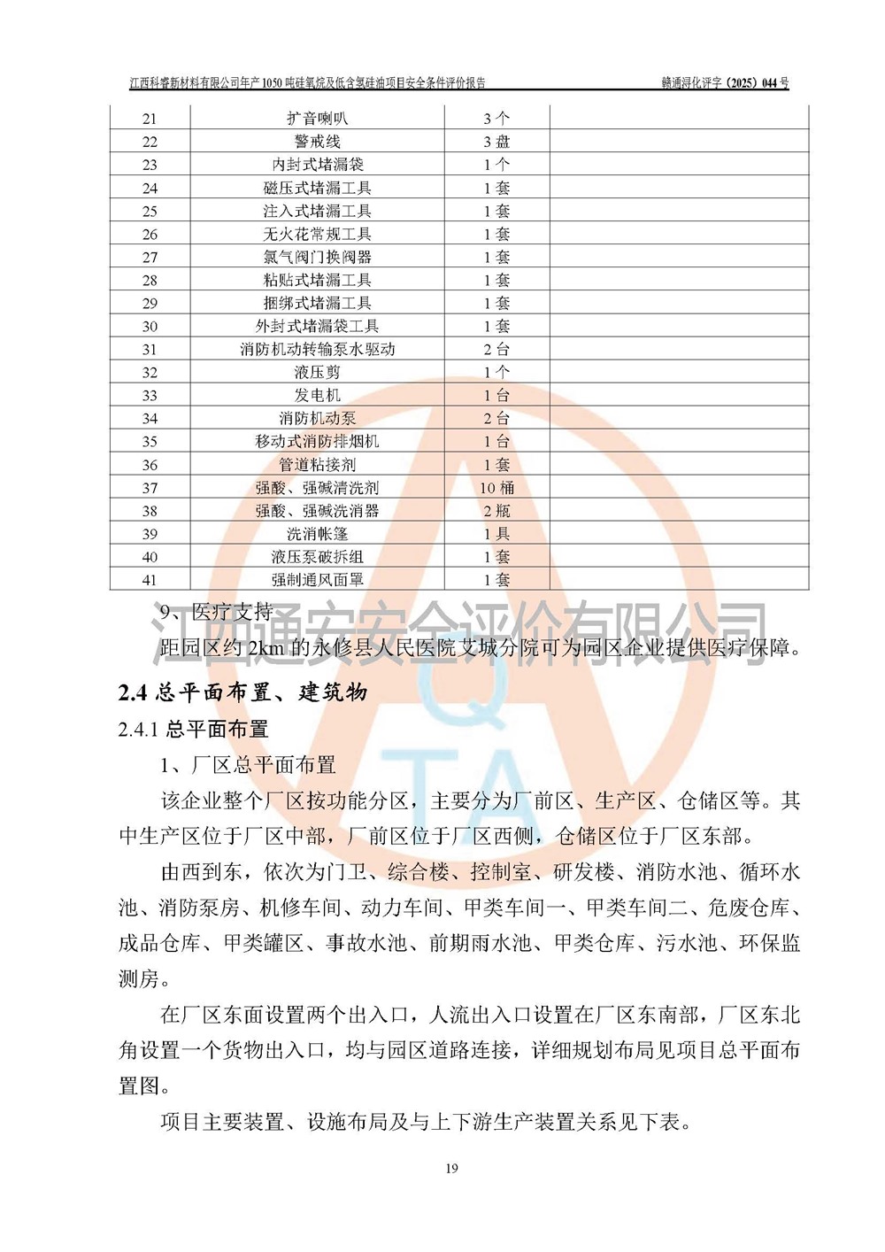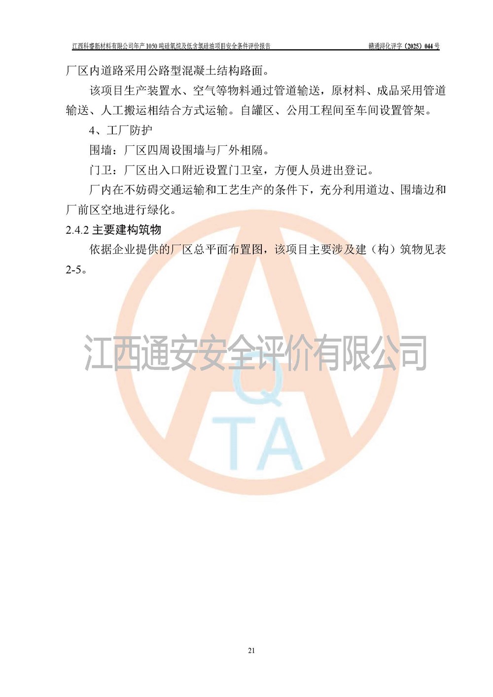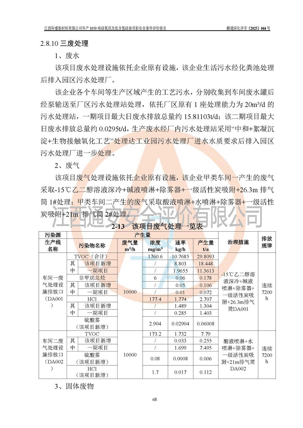 评价结论 | 江西科睿新材料有限公司年产1050吨硅氧烷及低含氢硅油项目的周边环境、总体布局、自然环境能满足建设安全条件;项目选择的工艺过程及设备设施的安全可靠性能达到**法规、标准规定要求;项目存在的危险有害因素可控,在落实本评价报告提出的有关安全对策措施后,其危险有害程度能达到可以接受的程度,项目建设能够实现安全运行的目标。 | |||||