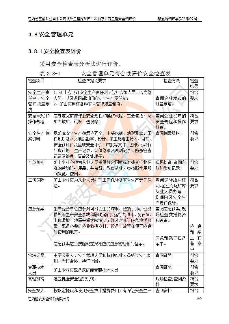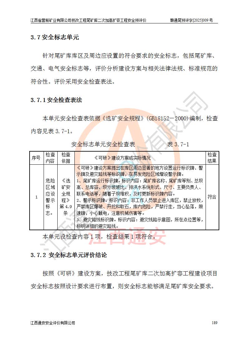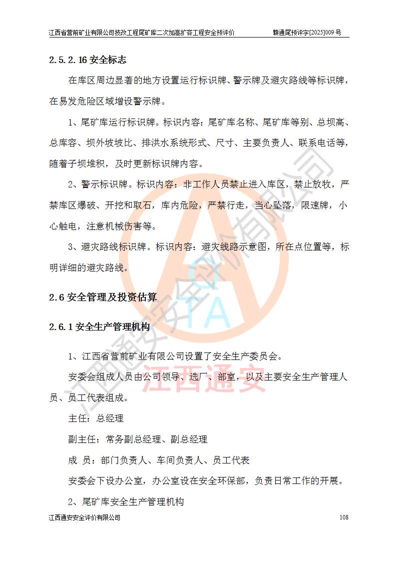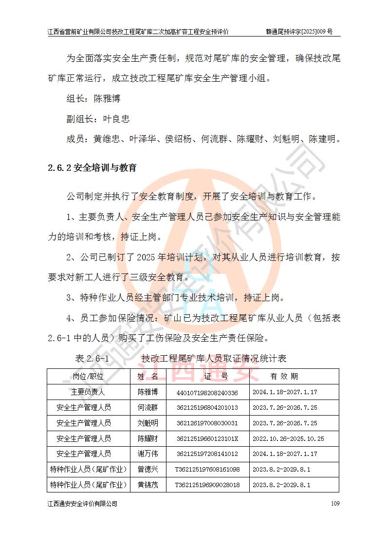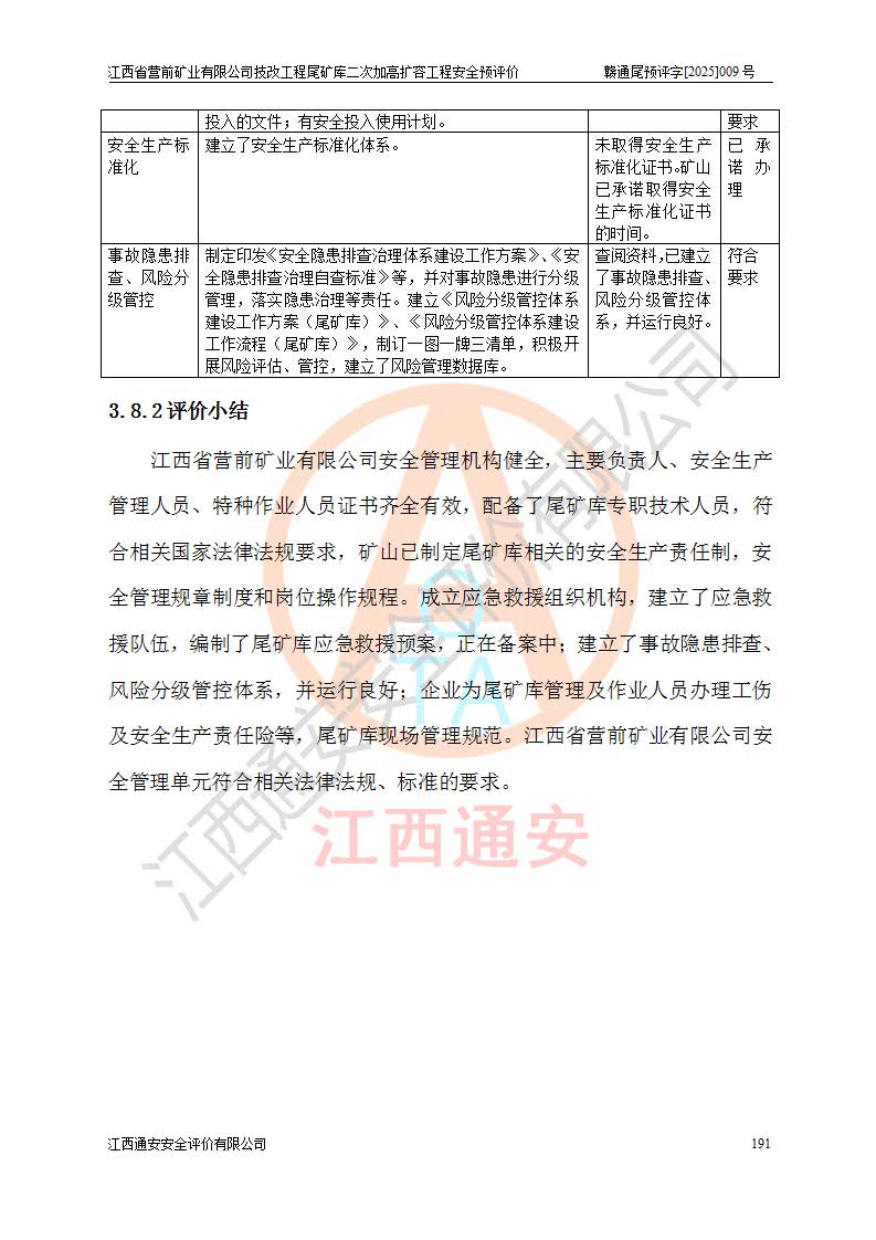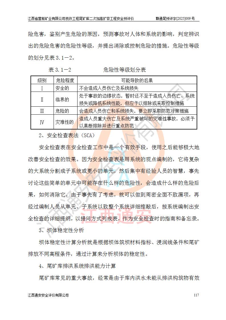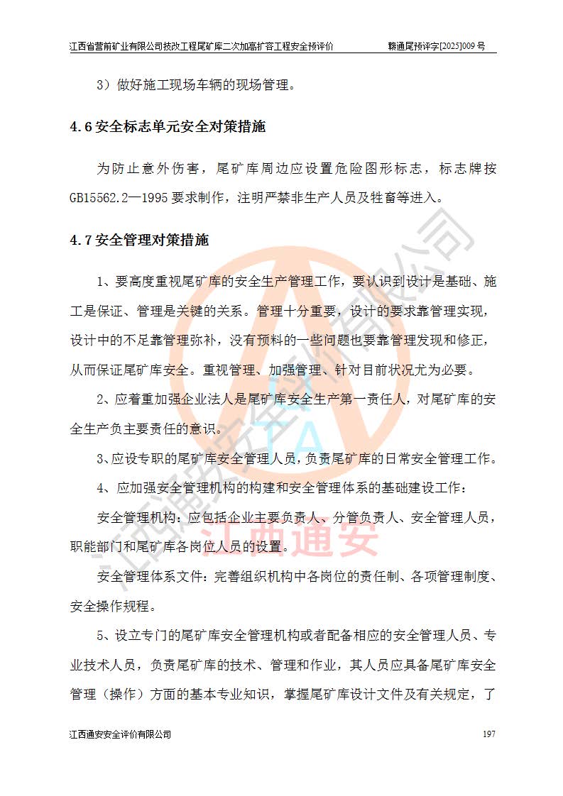 江西省营前矿业有限公司于2003年12月16日成立,位于赣州市上犹县营前镇焦里村境内,公司注册资本10000万元,法定**人陈雅博,矿区地理坐标:东经114°18′30″~114°19′00″,北纬25°52′35″~25°53′47″。公司经营范围包括:铅矿、锌、钨、银地下开采、销售。 江西省营前矿业有限公司技改工程尾矿库位于焦里钨银铅锌矿区,处于上犹县水岩乡井子村坑尾自然村境内,为山谷型尾矿库。 江西省营前矿业有限公司技改工程尾矿库于2013年由福建省冶金工业设计院设计,2014年8月开始施工建设,2015年4月竣工开始试运行,2015年11月完成竣工验收,2016年1月首次取得安全生产许可证,2019年1月完成延期换证,2020年8月委托金建工程设计有限公司进行尾矿库加高扩容工作,2020年10月21日取得了江西省应急管理厅下发的《关于江西省营前矿业有限公司技改工程尾矿库加高扩容工程安全设施设计的审查意见》(赣应急非煤项目设审〔2020〕46号),之后委托驻马店市黄淮建设工程有限公司负责施工,云南润滇工程技术有限公司负责监理,2021年12月完成加高扩容竣工验收工作,经过延期,现尾矿库安全生产许可证编号(赣)FM安许证字[2016]M1692号,**期为2025年01月18日至2028年01月17日。 江西省营前矿业有限公司技改工程尾矿库为山谷型尾矿库,初期坝为透水堆石坝,坝顶高程为330.0m,初期坝高25.0m,后期采用上游式尾矿堆积坝,加高扩容后*终坝顶高程为380.0m,堆积坝高50.0m,总坝高为75.0m,总库容为为503.14×104m3,尾矿库为三等库。尾矿库初期坝以上总汇水面积3.53km2,防洪标准取500年一遇。 目前尾矿库由初期坝、堆积坝、库内排洪系统(双格排水斜槽+连接井+排水涵洞+排洪隧洞+排水陡槽+消力池)、1#拦洪坝、1#分洪隧洞、2#拦洪坝、2#分洪隧洞和安全监测设施组成。根据建设单位提供的尾矿库平面布置图,截至2024年12月,现状尾矿库堆积坝顶高程为372.2m,现状总坝高67.2m,滩顶高程为369.8m,现状全库容387.51×104m3,现状尾矿库为三等库,原加高扩容设计*终堆积坝顶高程为380.0m,现剩余库容115.63×104m3,剩余**库容约92.5×104m3,剩余服务年限约4.5年;矿山现有储量较大,剩余库容及服务年限不满足矿山后期生产需要。 技改工程尾矿库尾矿坝下游1**范围无居民,不存在工矿企业等建构筑物,不属于“头顶库”;尾矿库不压矿;距赣江直线距离60**;不涉及保护区及生态红线;尾矿库所在沟谷较长,谷底平均纵坡9%,上游周边山体地形有利于尾矿库二次加高扩容工程的实施,因此为了增加尾矿库库容,延长服务年限,充分利用尾矿库所在沟谷地形,江西省营前矿业有限公司对技改尾矿库进行二次加高扩容。 2024年12月,江西省营前矿业有限公司委托地矿赣西地质工程勘察院编制了《江西省营前矿业有限公司技改工程尾矿库二次扩容工程(水文)地质勘察报告》,2025年4月,江西省营前矿业有限公司委托金建工程设计有限公司编制了《江西省营前矿业有限公司技改工程尾矿库二次加高扩容工程可行性研究报告》。 按照非煤矿山建设项目安全设施“三同时”的规定要求,技改工程尾矿库为二次加高扩容工程,**进行安全预评价;江西省营前矿业有限公司委托我公司承担技改工程尾矿库二次加高扩容工程建设项目的安全预评价工作。 |