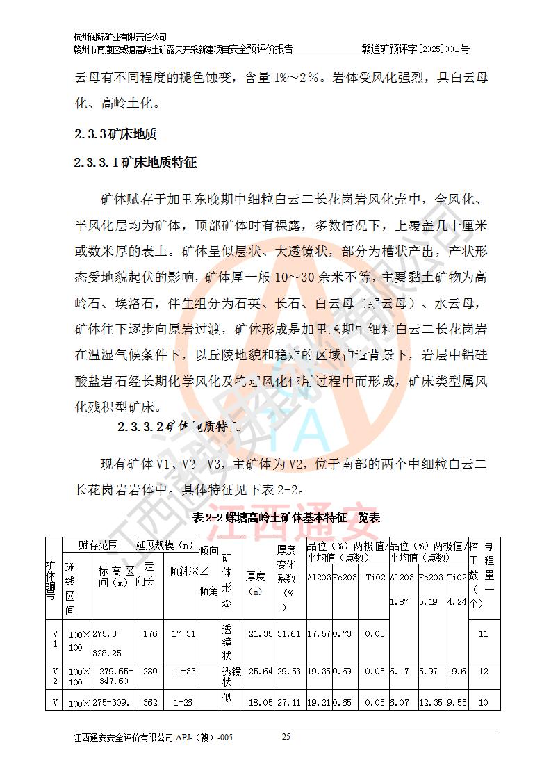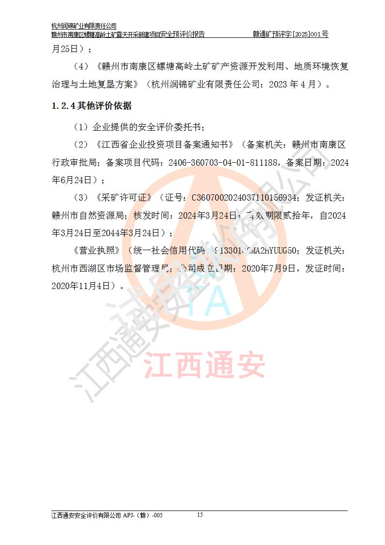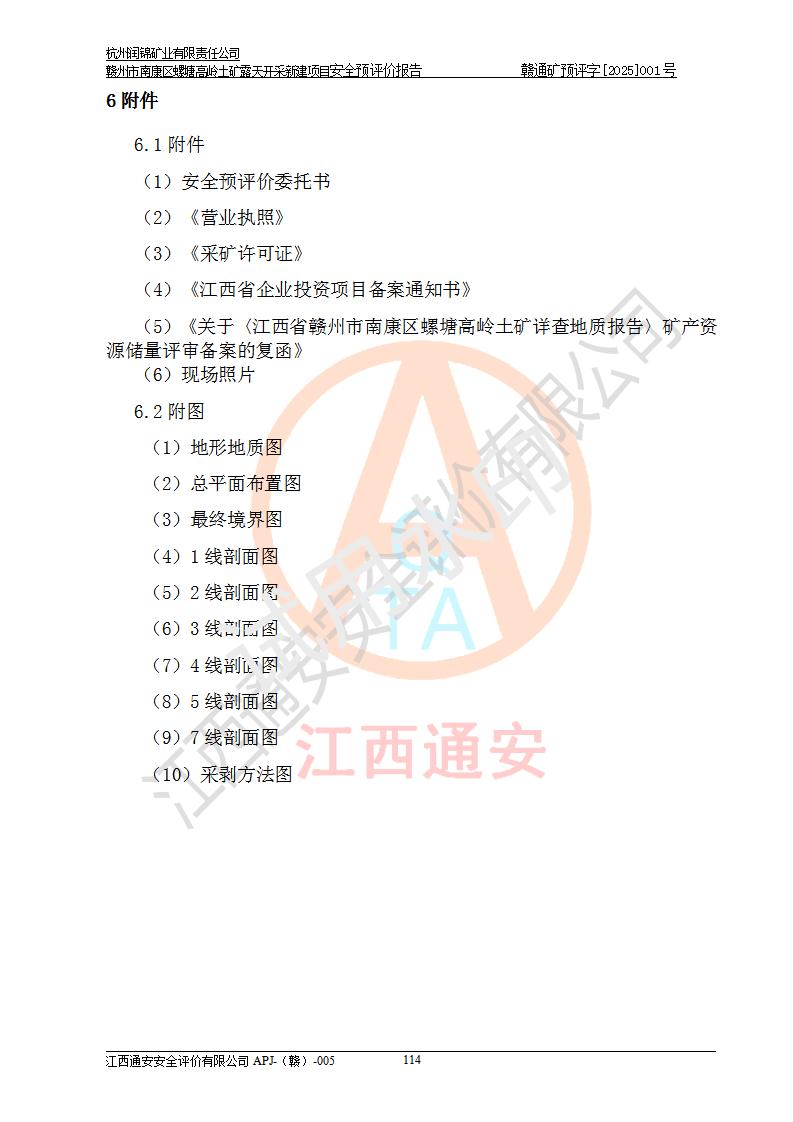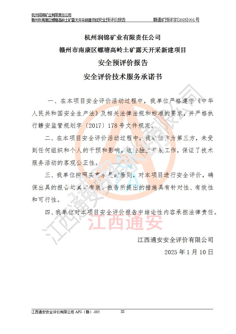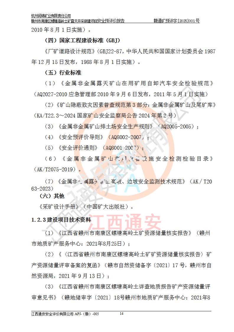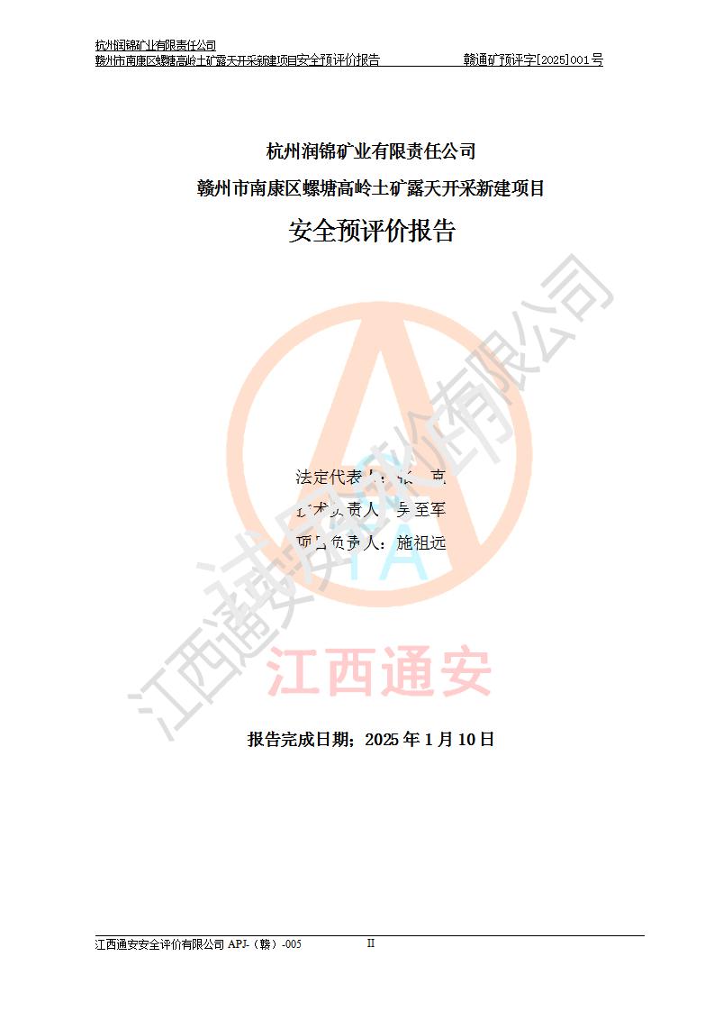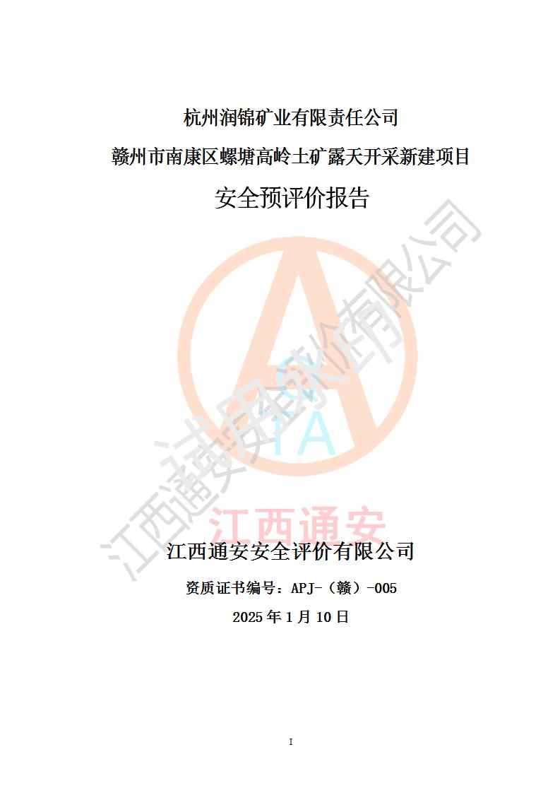 项目名称 | 赣州市南康区螺塘高岭土矿露天开采新建项目安全预评价报告 | ||||