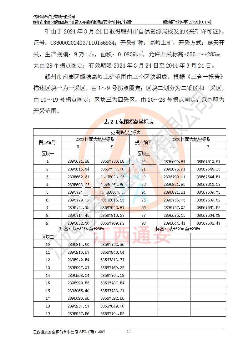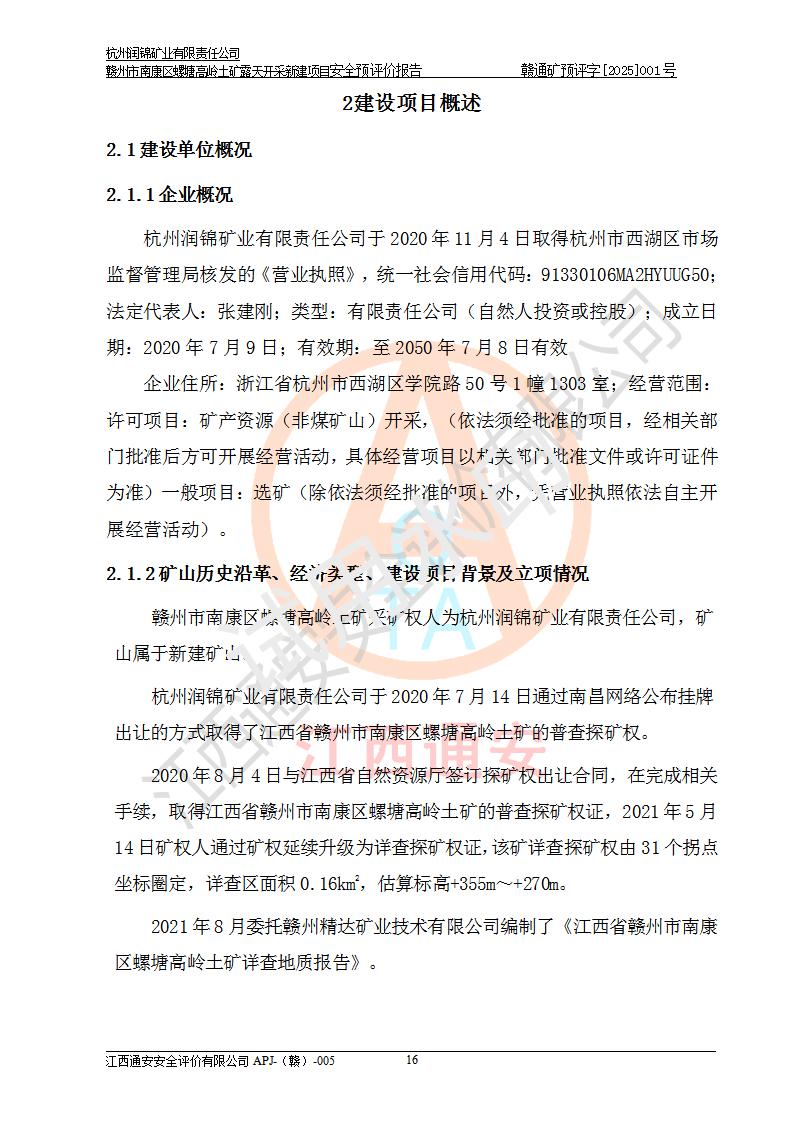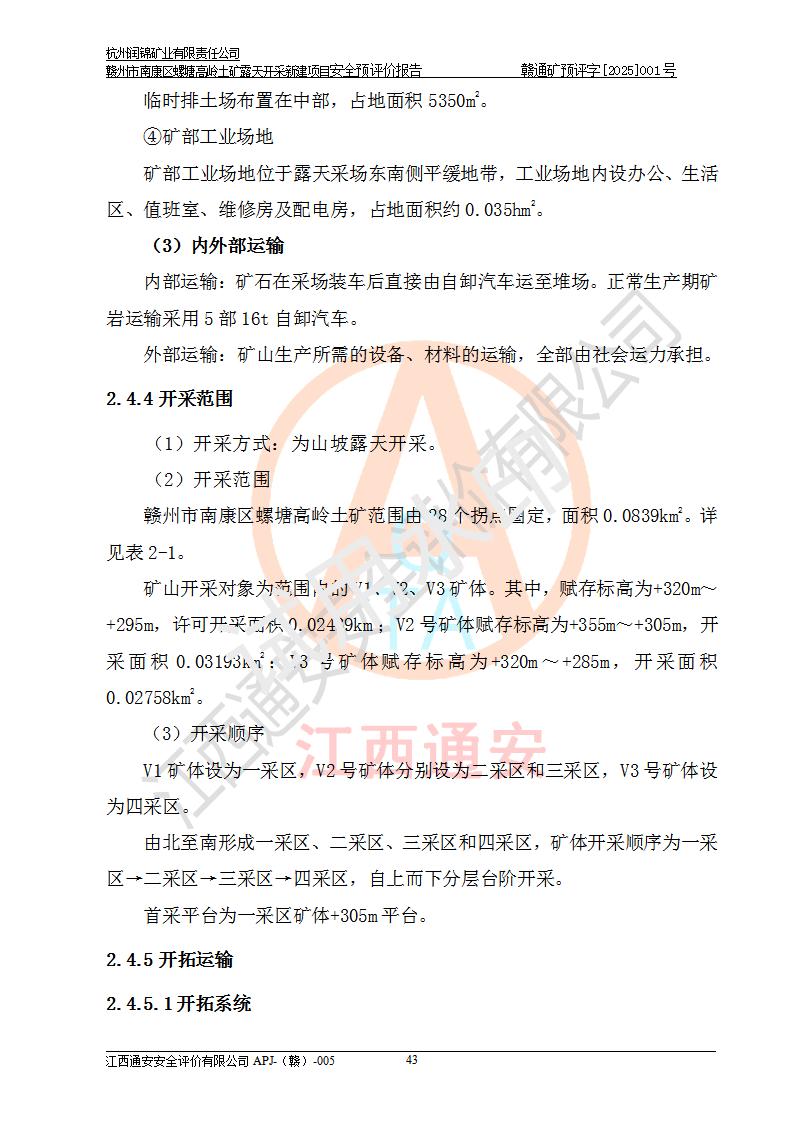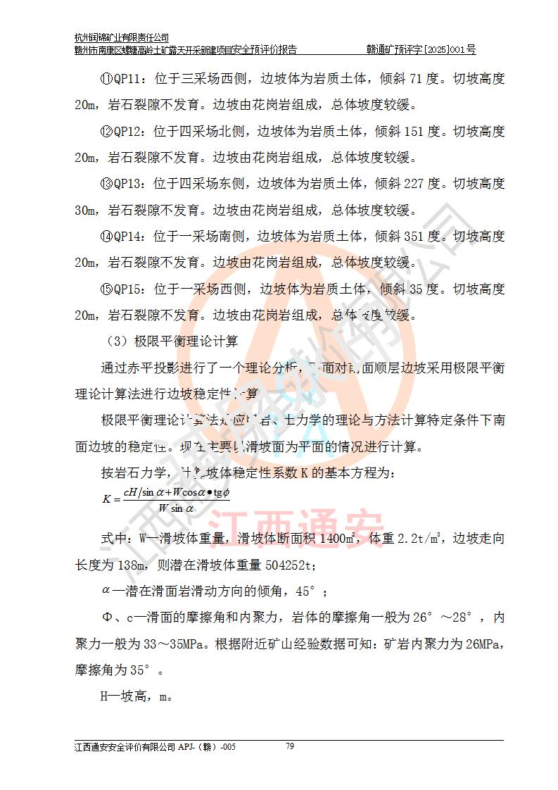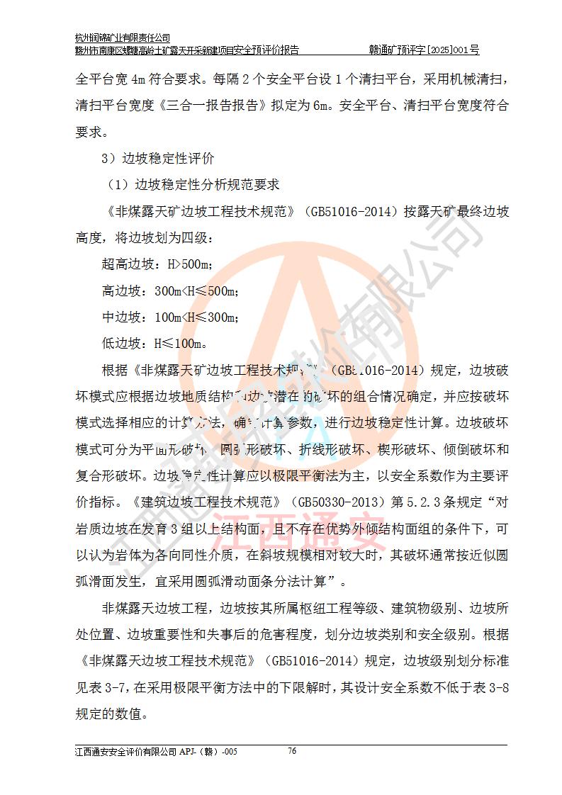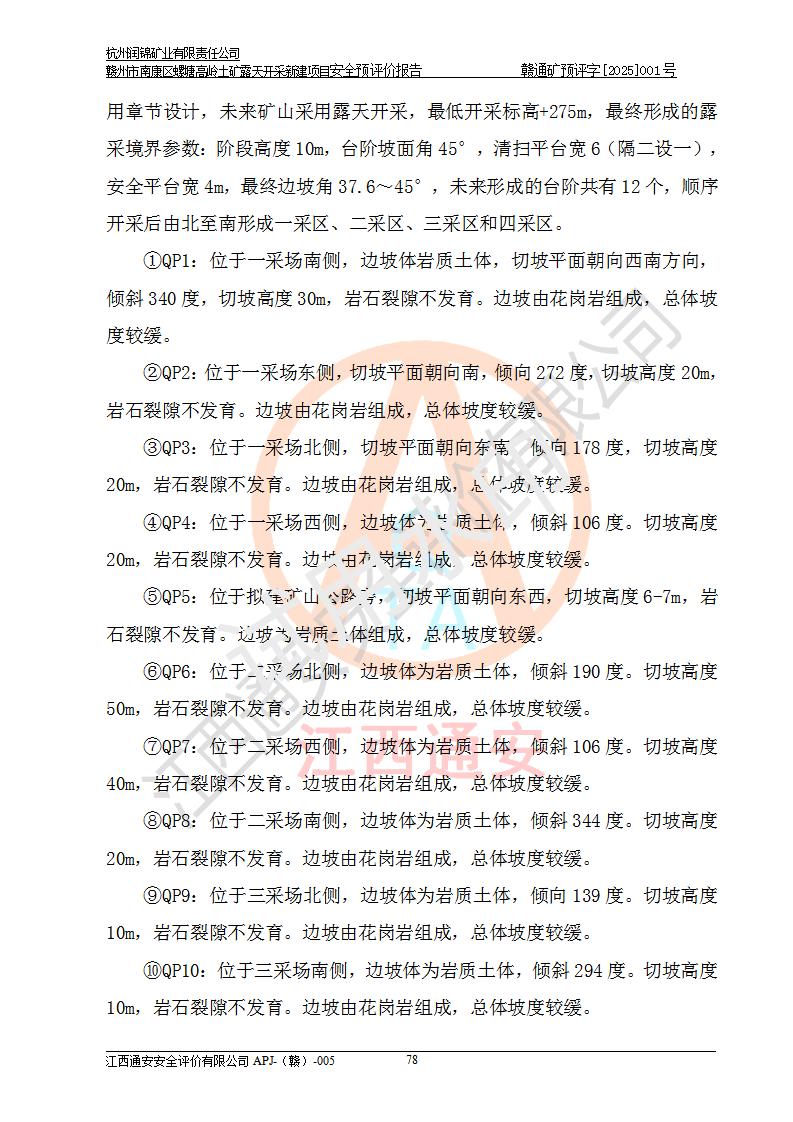 项目名称 | 赣州市南康区螺塘高岭土矿露天开采新建项目安全预评价报告 | ||||