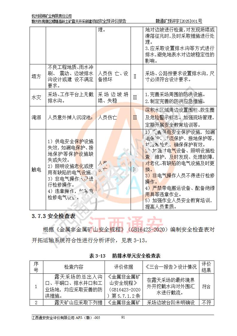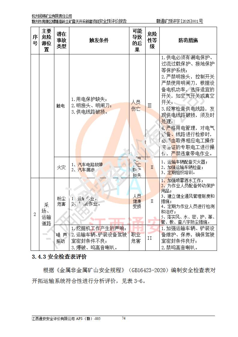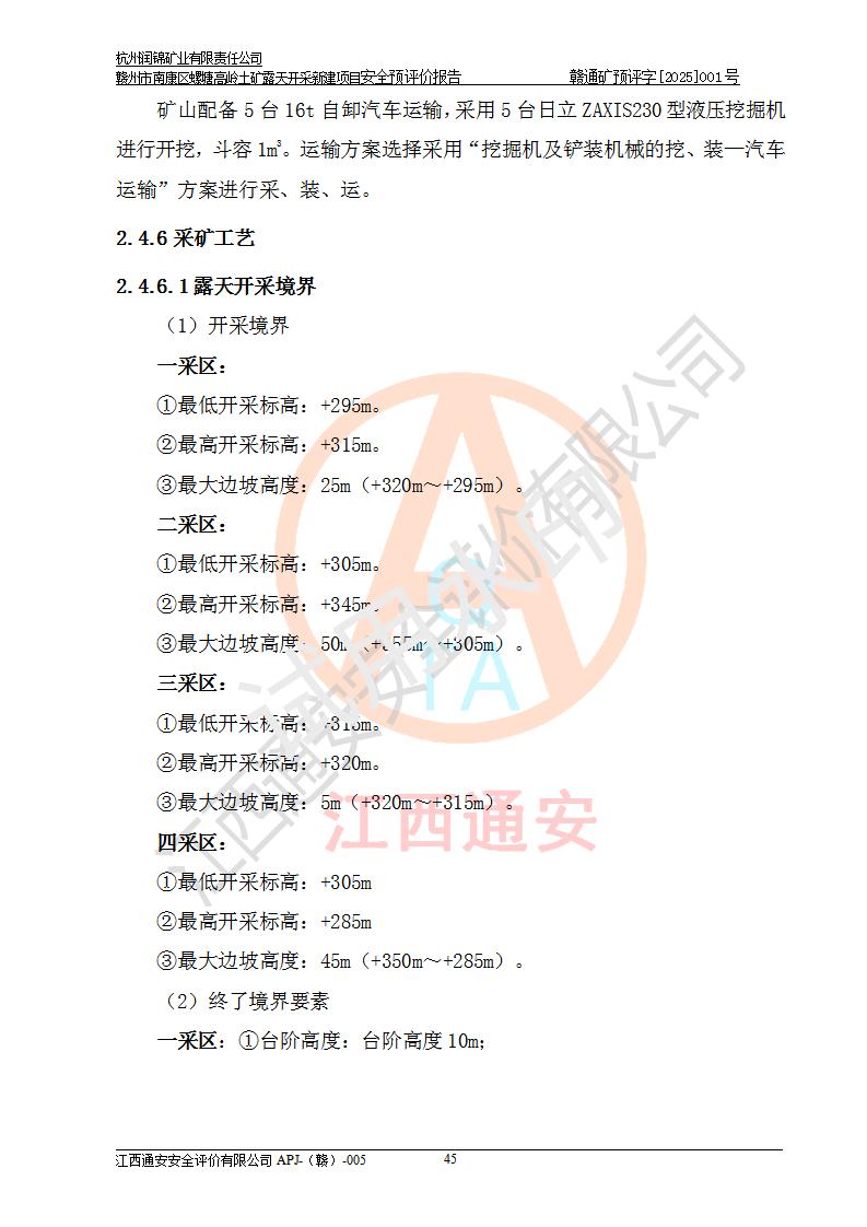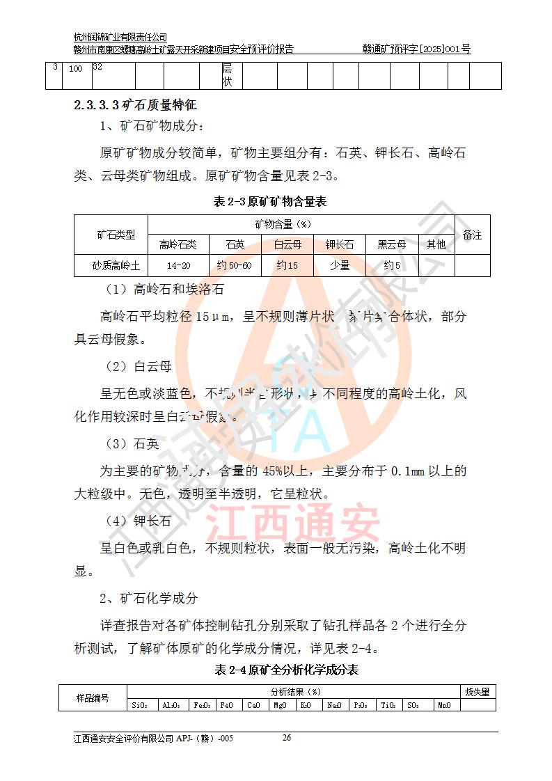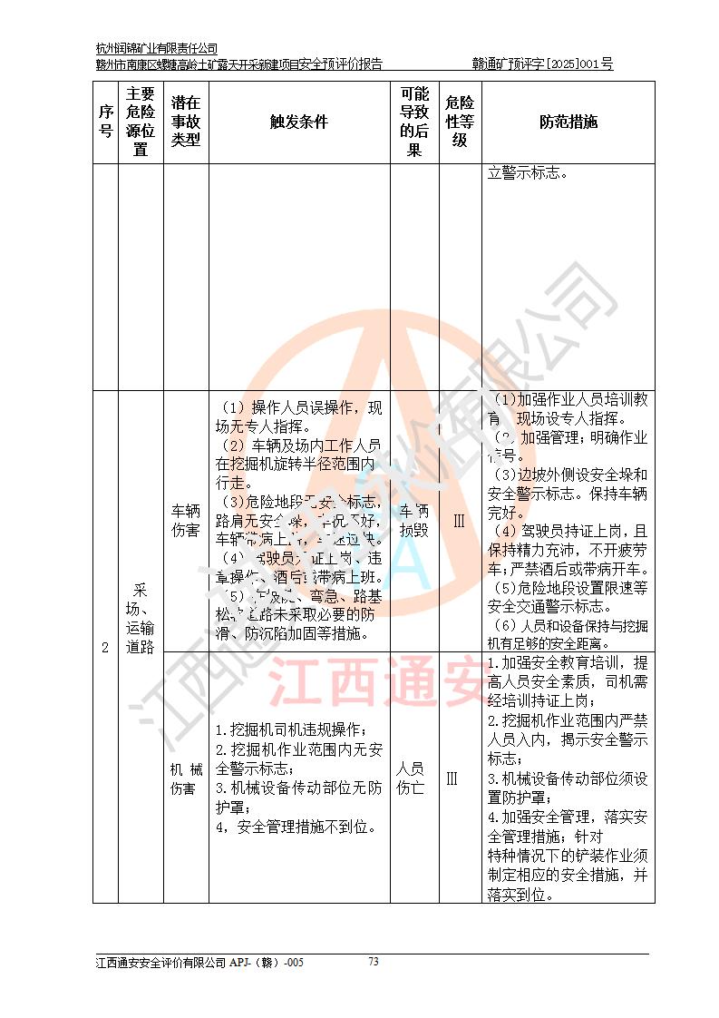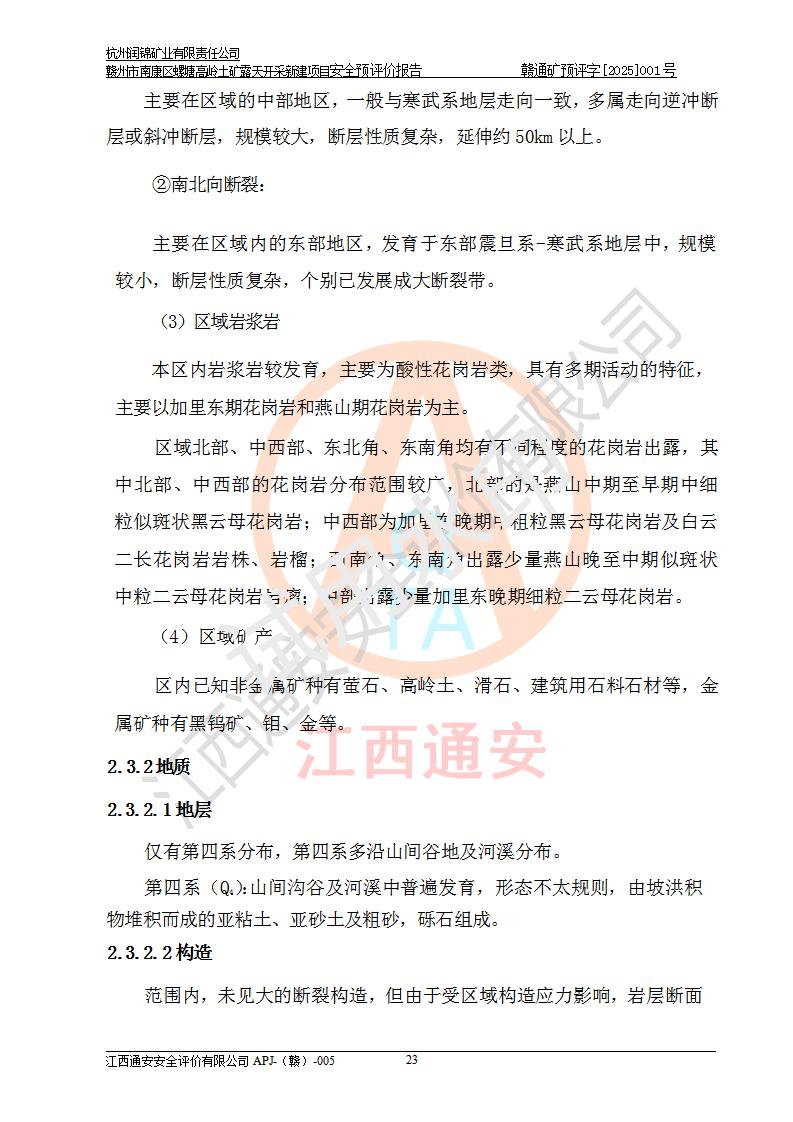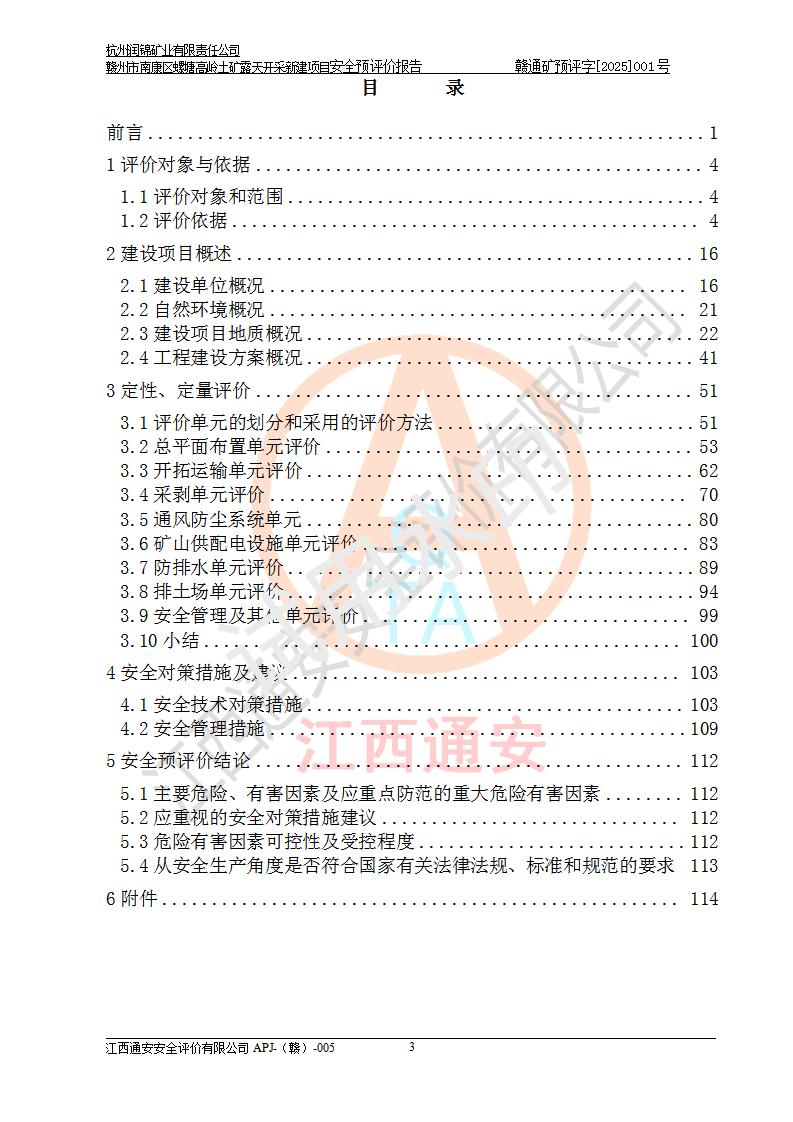 项目名称 | 赣州市南康区螺塘高岭土矿露天开采新建项目安全预评价报告 | ||||