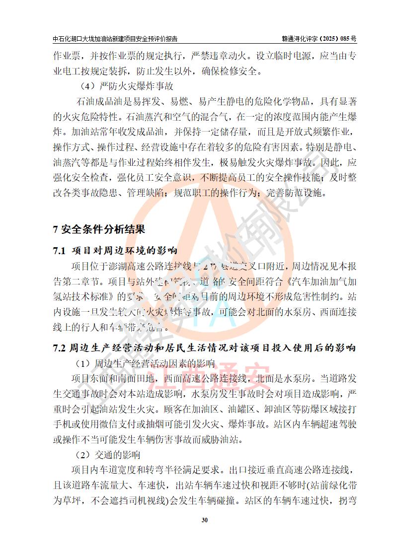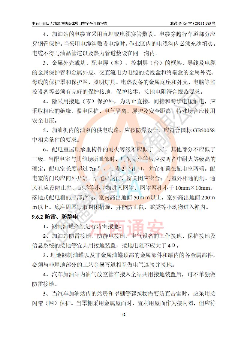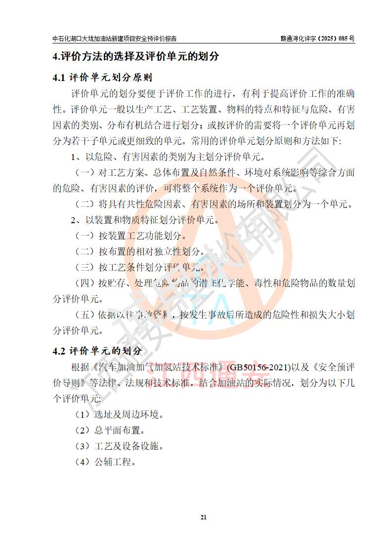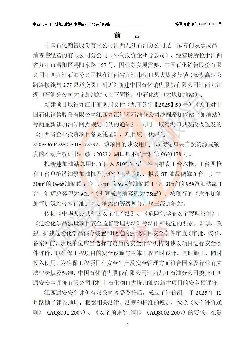 评价结论 | 中国石化销售股份有限公司江西九江石油分公司湖口大垅加油站新建项目的选址、自然条件适宜该项目工程的建设;项目规划设计中的总体布局方案可行,符合有关法规、标准要求;项目选择的工艺过程及设备设施的安全可靠性能达到**法规、标准规定要求;项目存在的危险有害因素可控,在落实项目建设方案及评价报告提出的有关安全对策措施后,其危险有害程度能达到可以接受的程度,项目建设能够实现安全运行的目标。 | |||