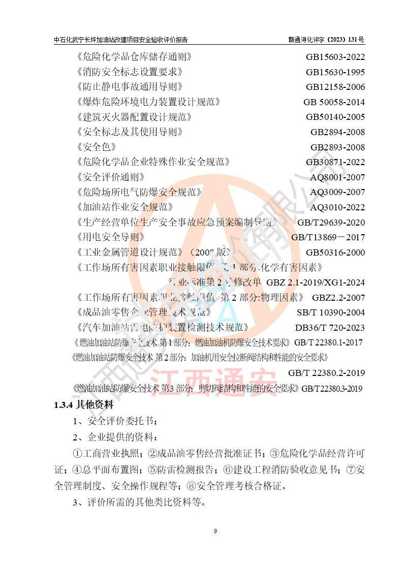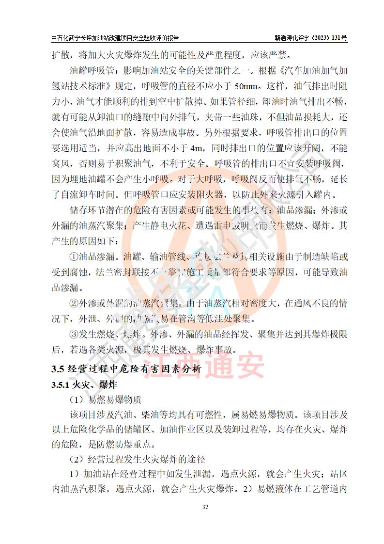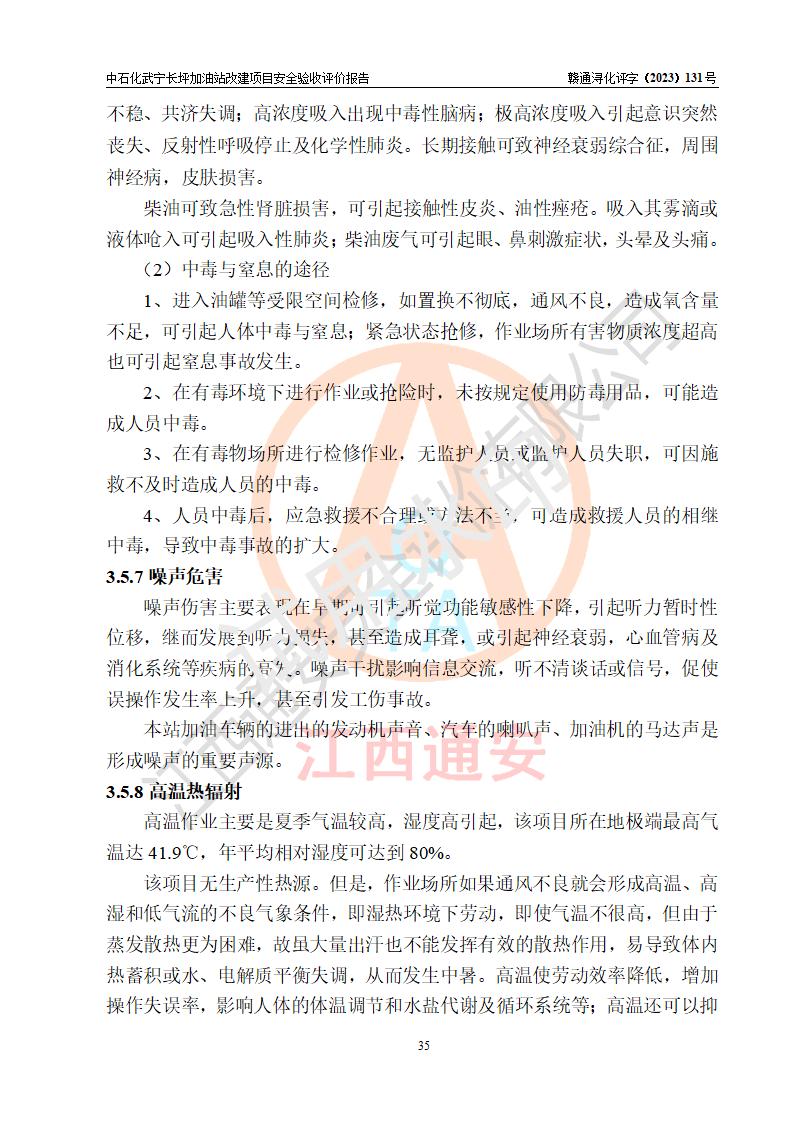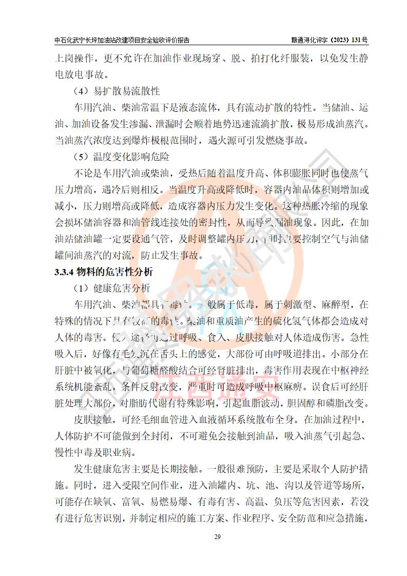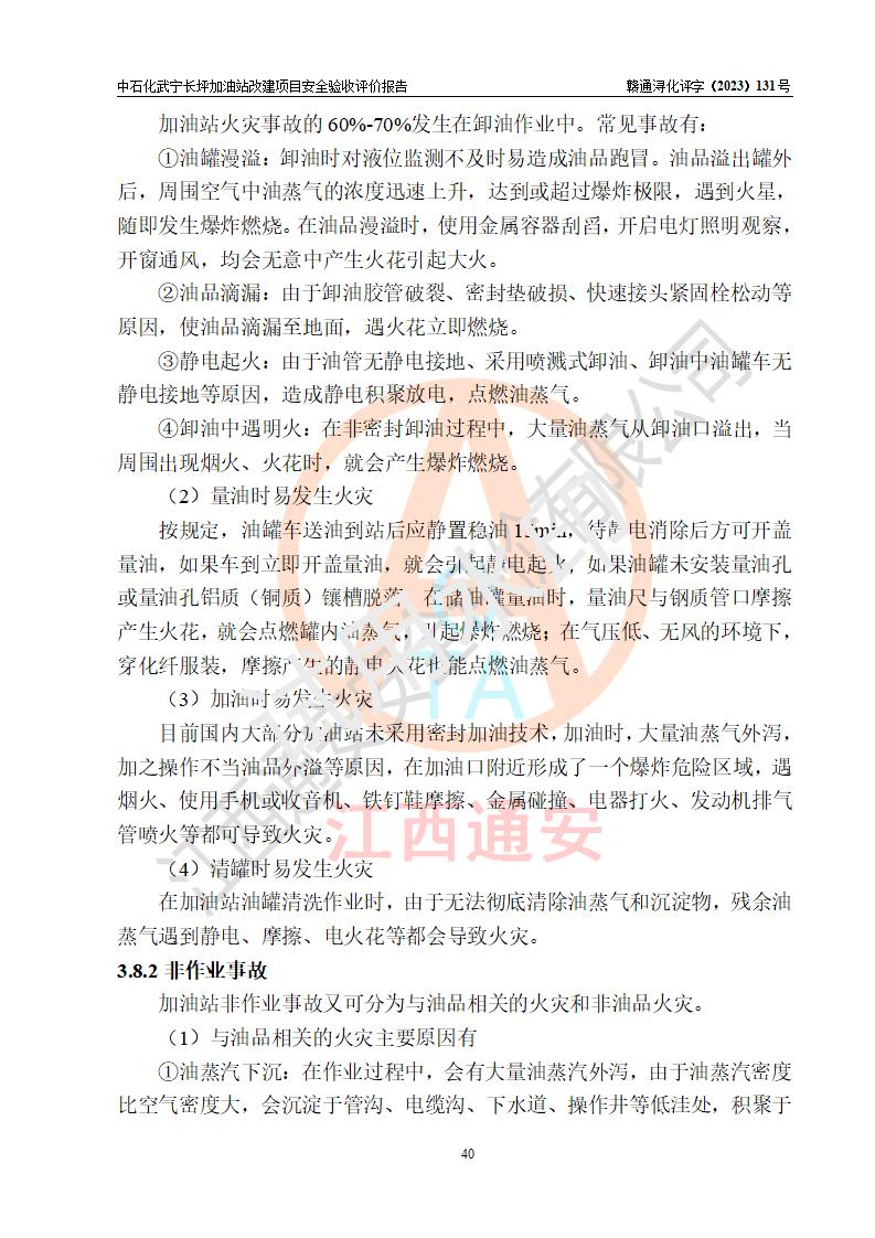 评价报告名称 | 中国石化销售股份有限公司江西九江武宁石油分公司长坪加油站改建项目安全验收评价报告 | |||