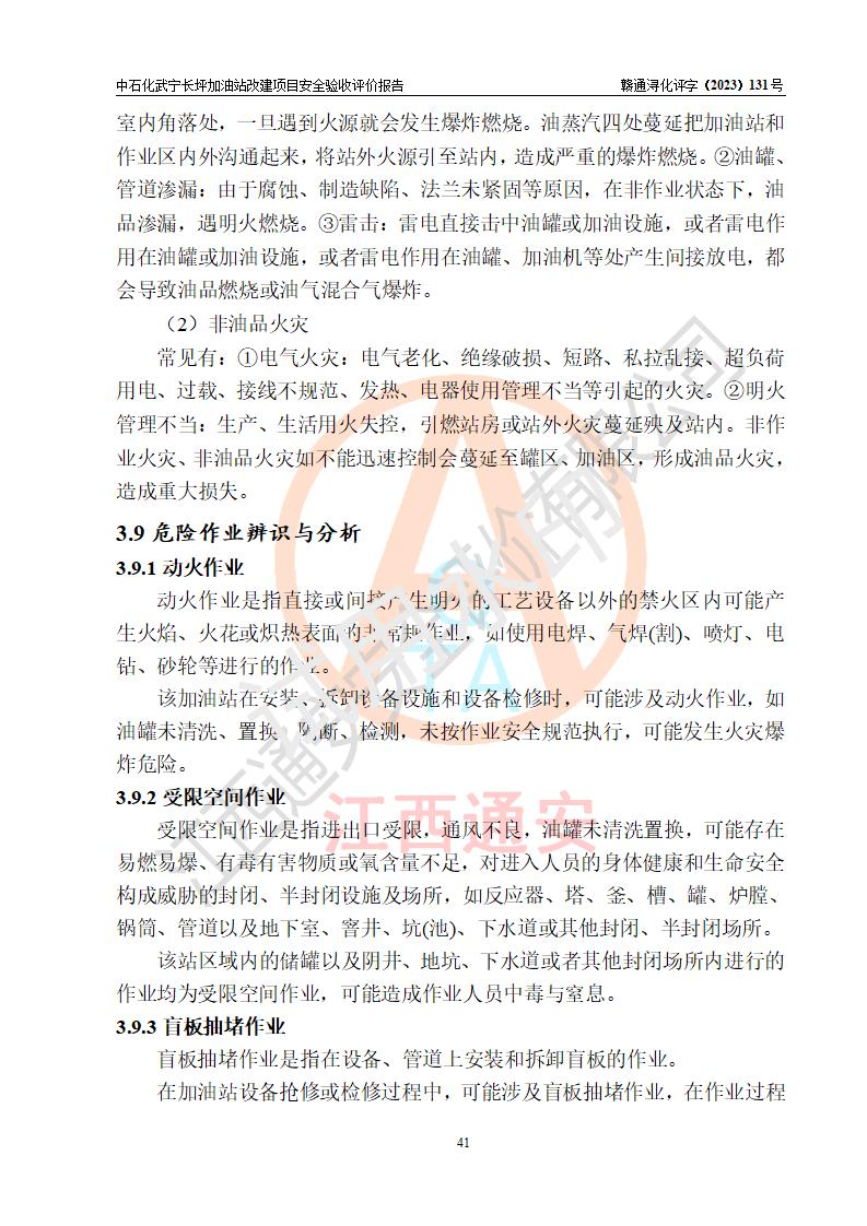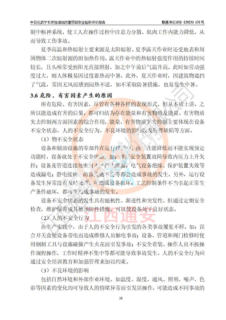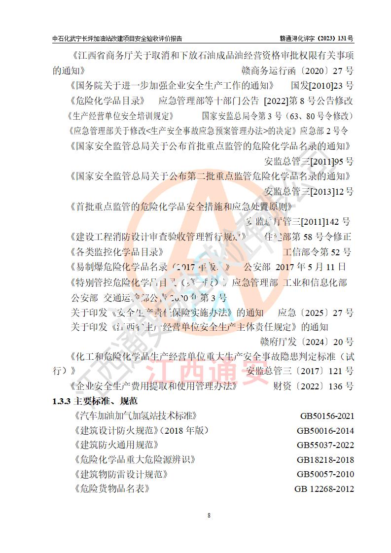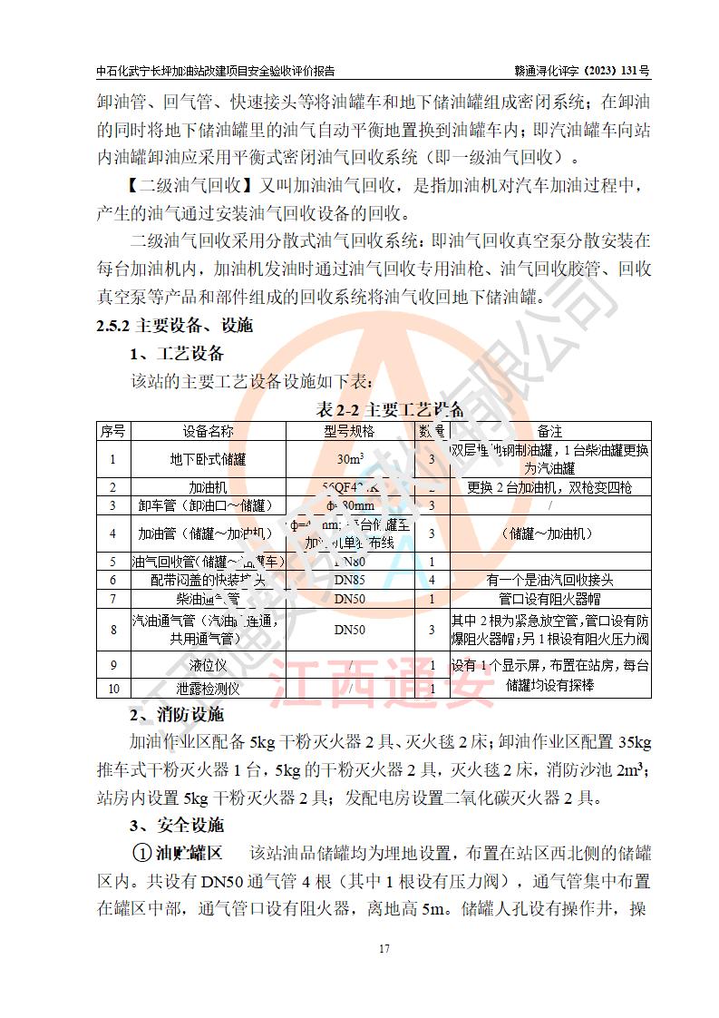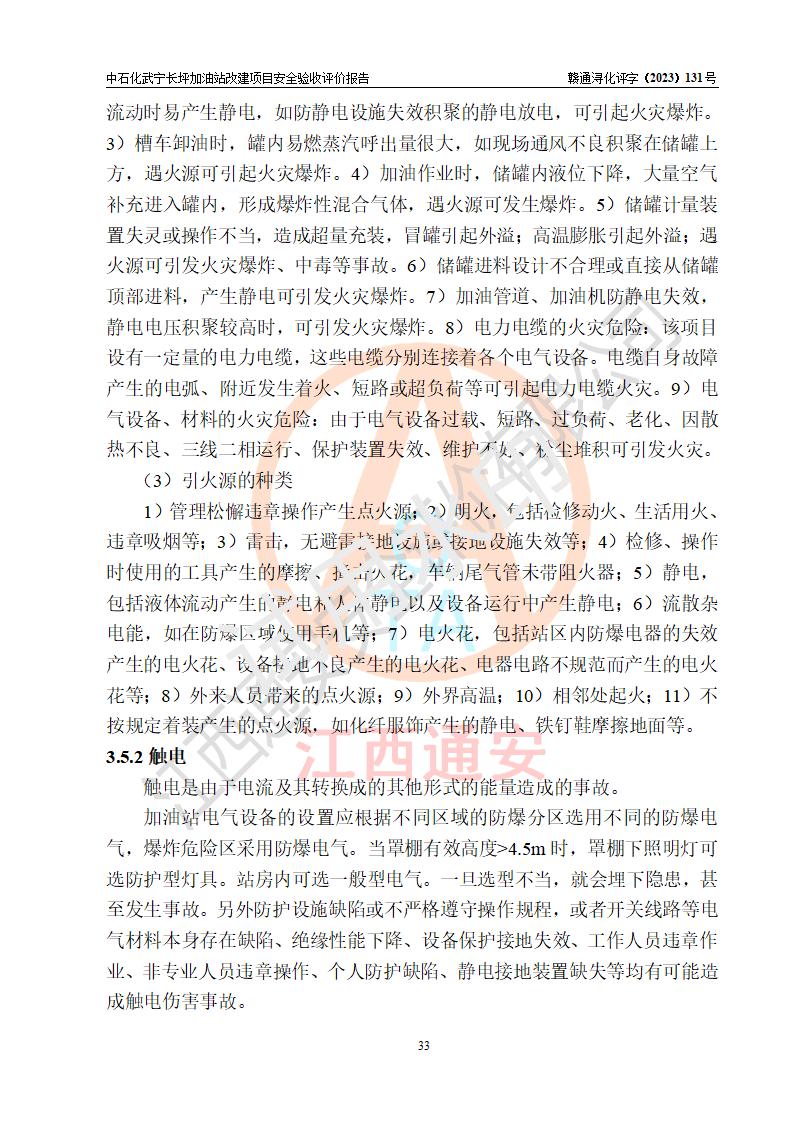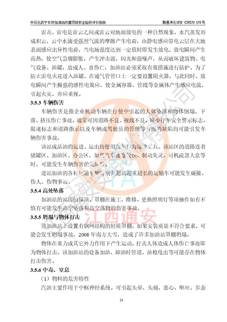 评价报告名称 | 中国石化销售股份有限公司江西九江武宁石油分公司长坪加油站改建项目安全验收评价报告 | |||