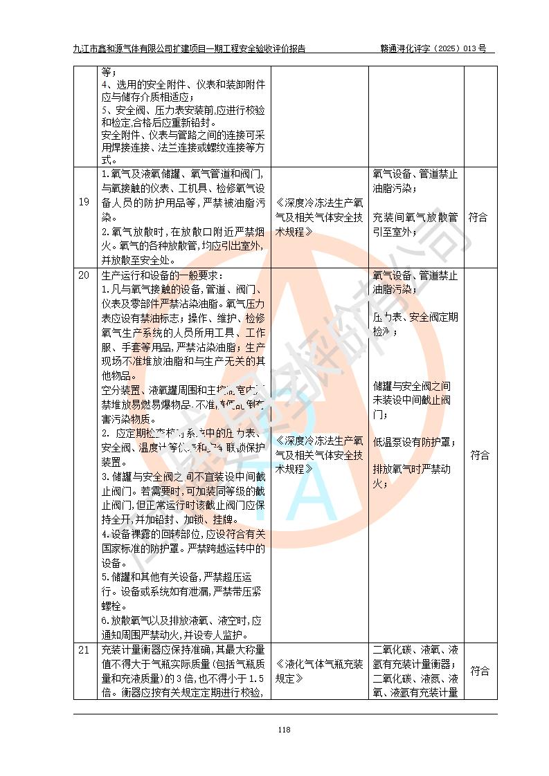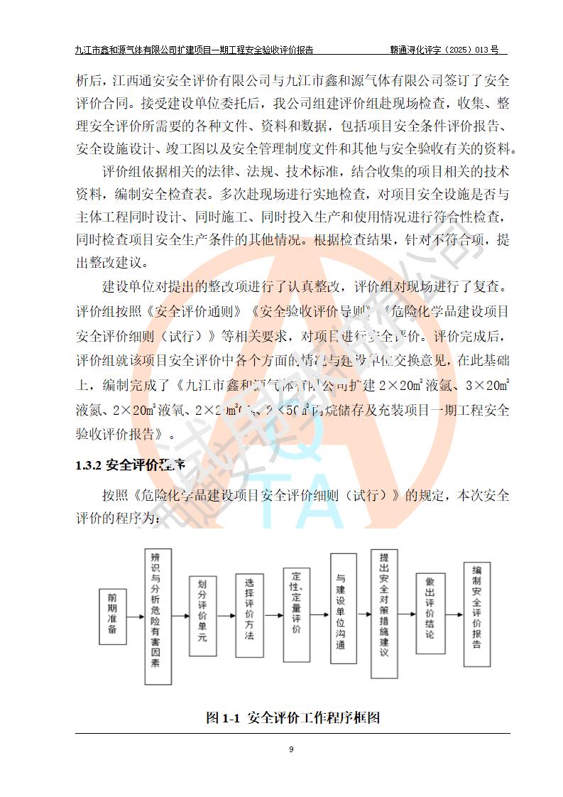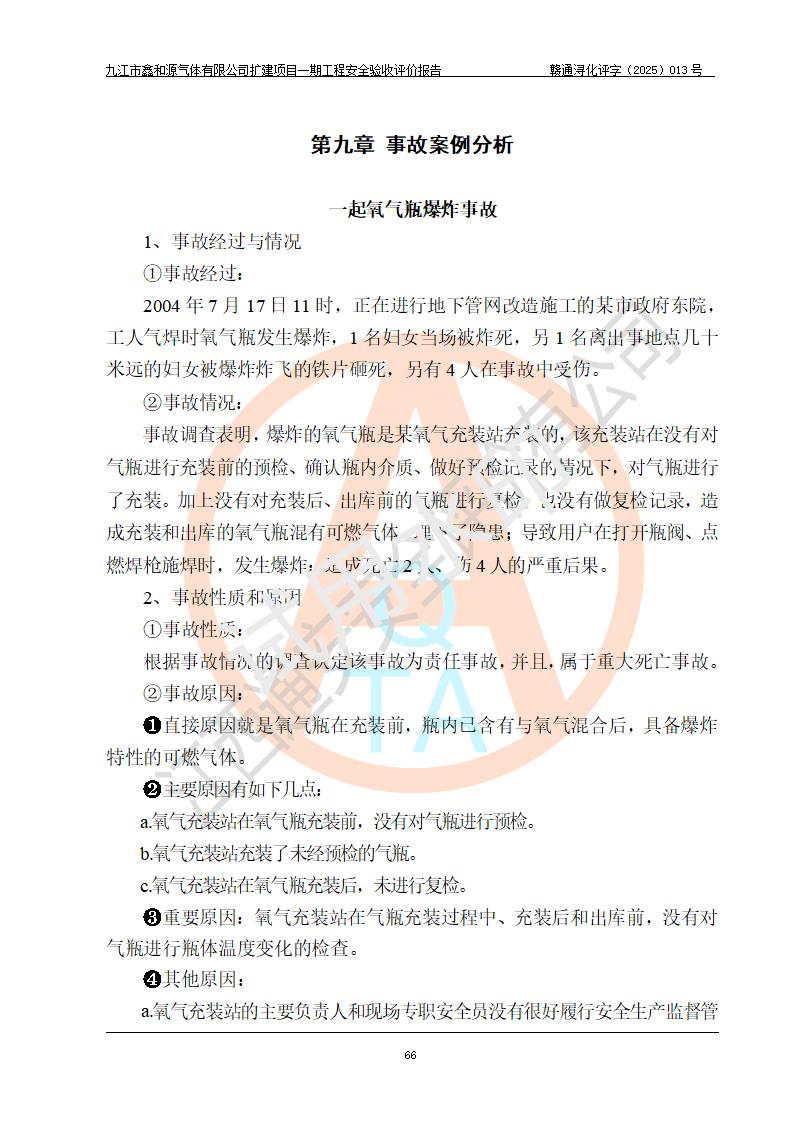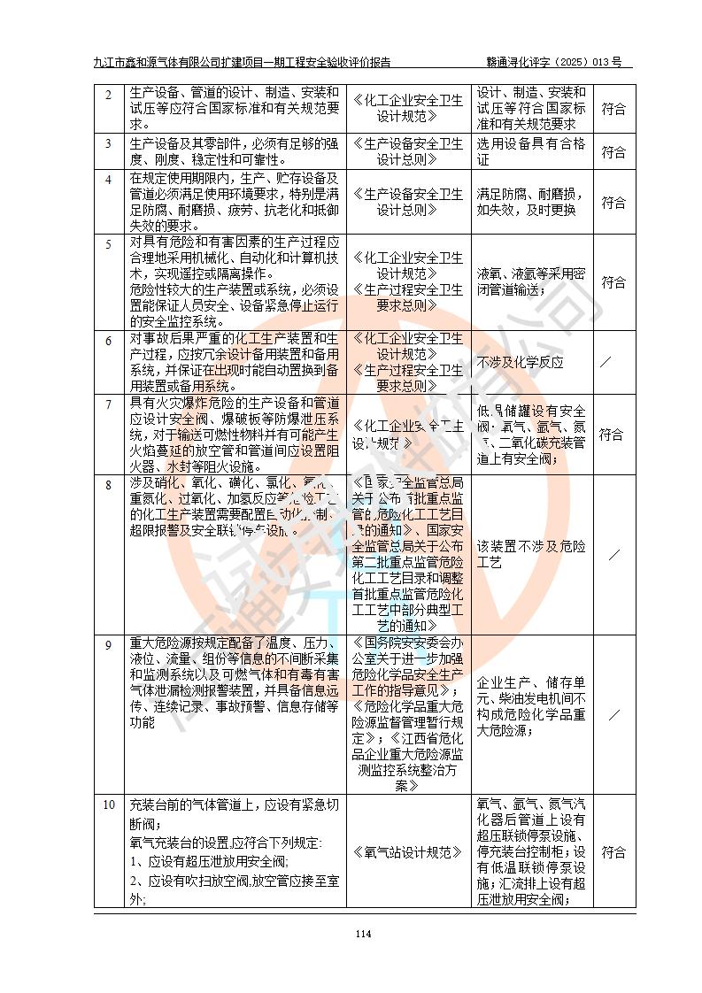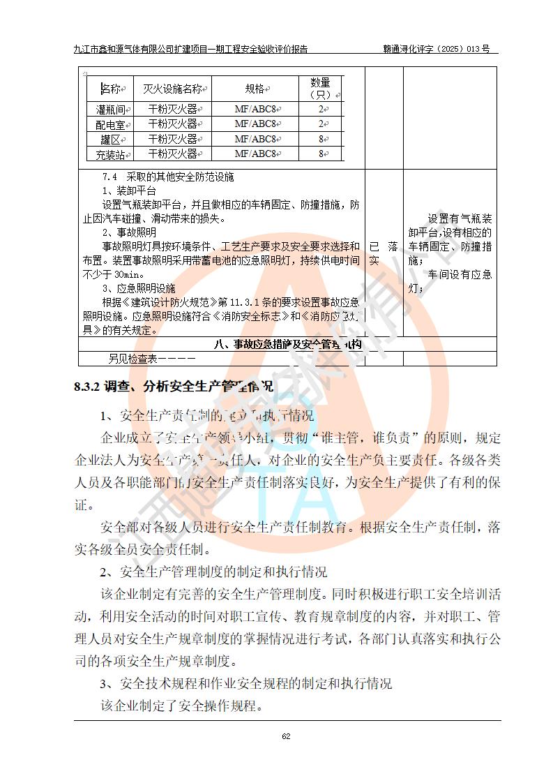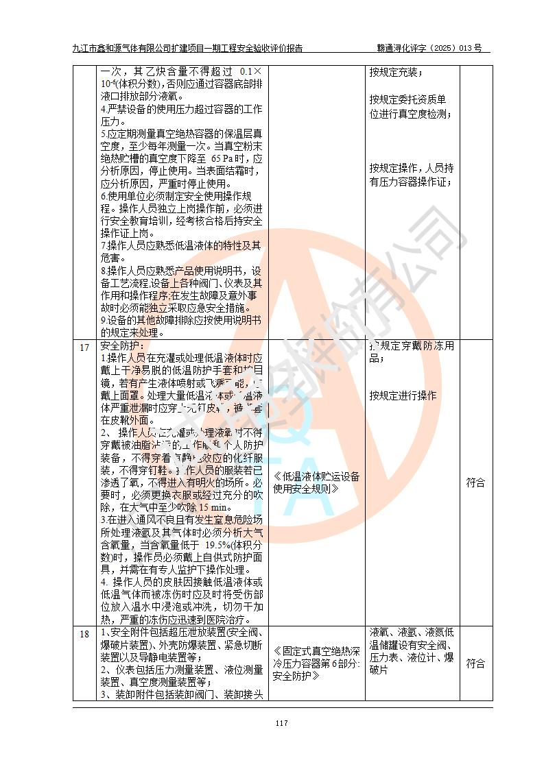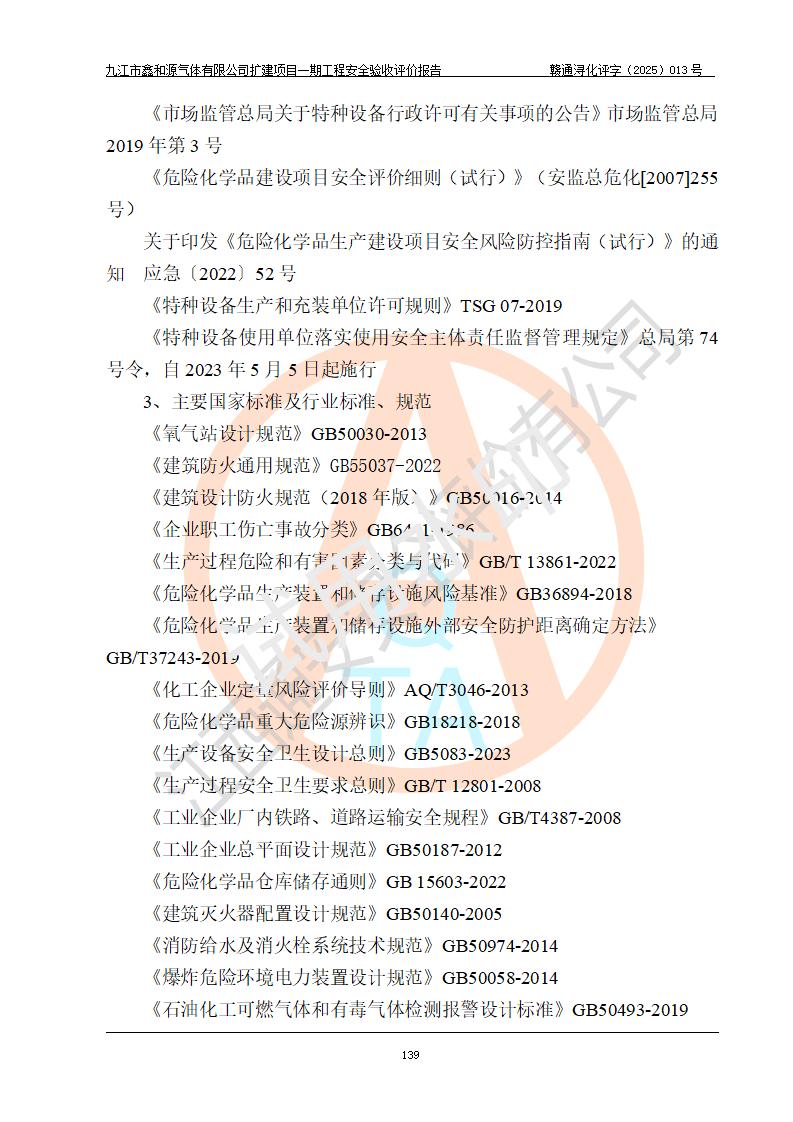 评价报告名称 | 九江市鑫和源气体有限公司扩建2×20m3液氩、3×20m3液氮、2×20m3液氧、2×20m3CO2、2×50m3丙烷储存及充装项目一期工程安全验收评价报告 | |||||