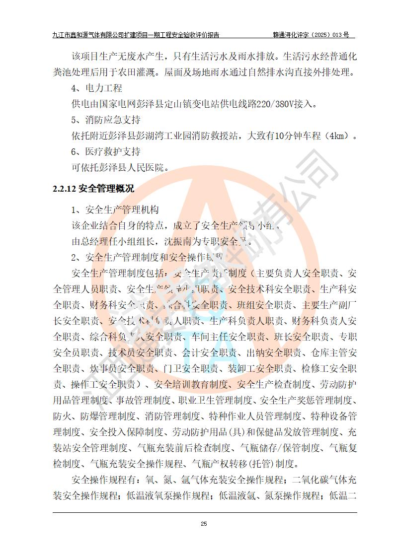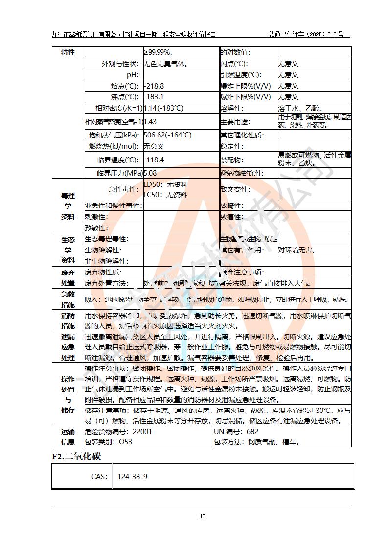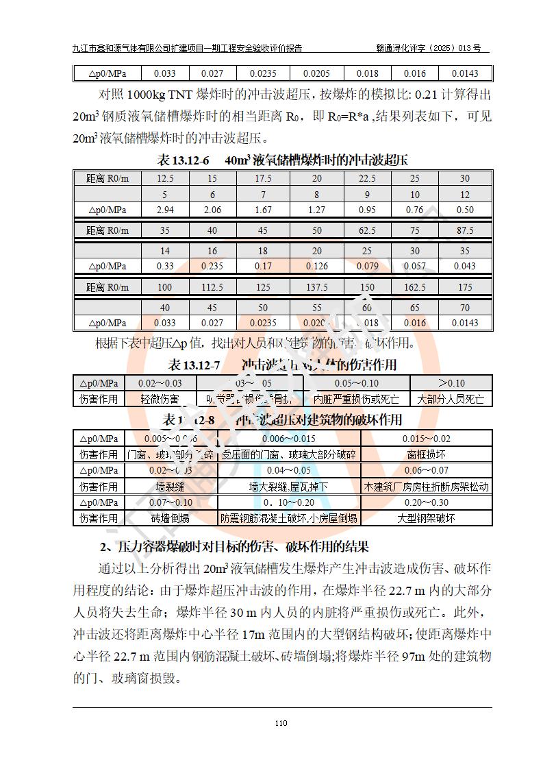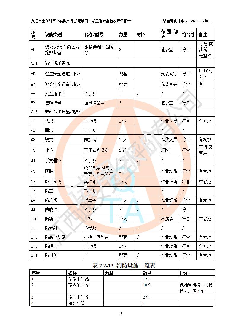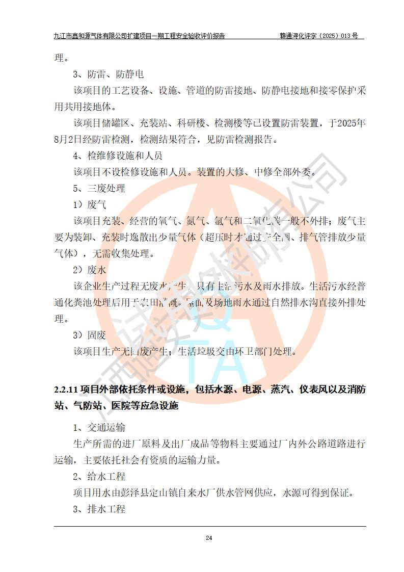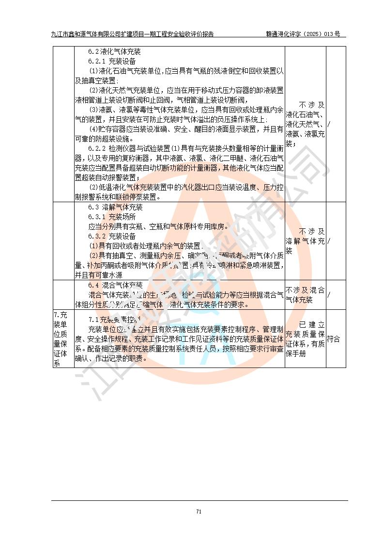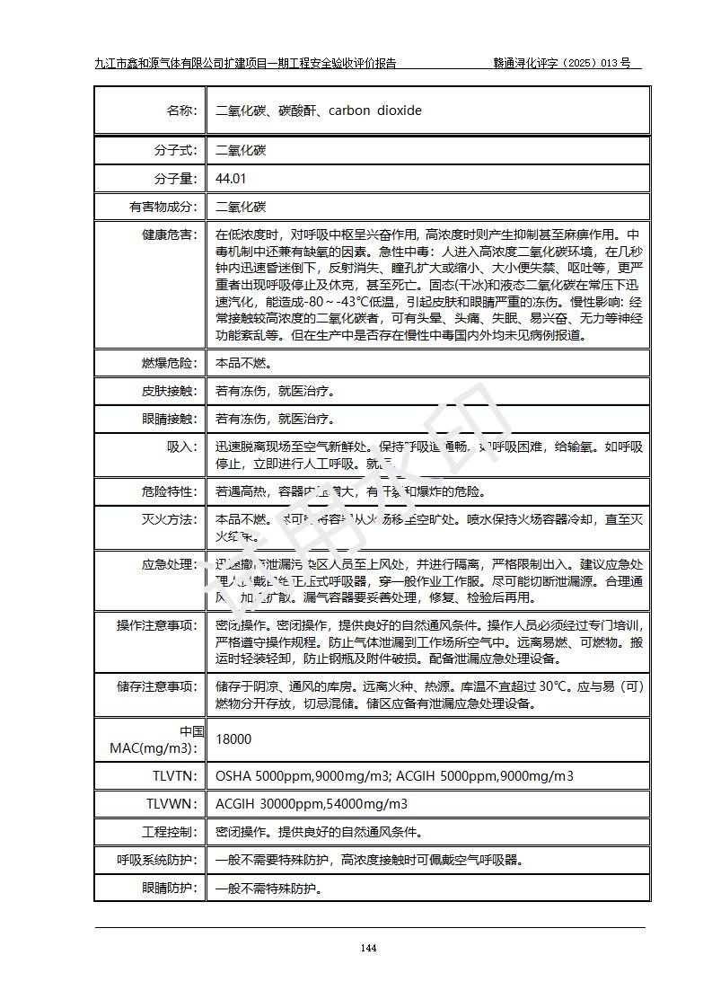 评价报告名称 | 九江市鑫和源气体有限公司扩建2×20m3液氩、3×20m3液氮、2×20m3液氧、2×20m3CO2、2×50m3丙烷储存及充装项目一期工程安全验收评价报告 | |||||