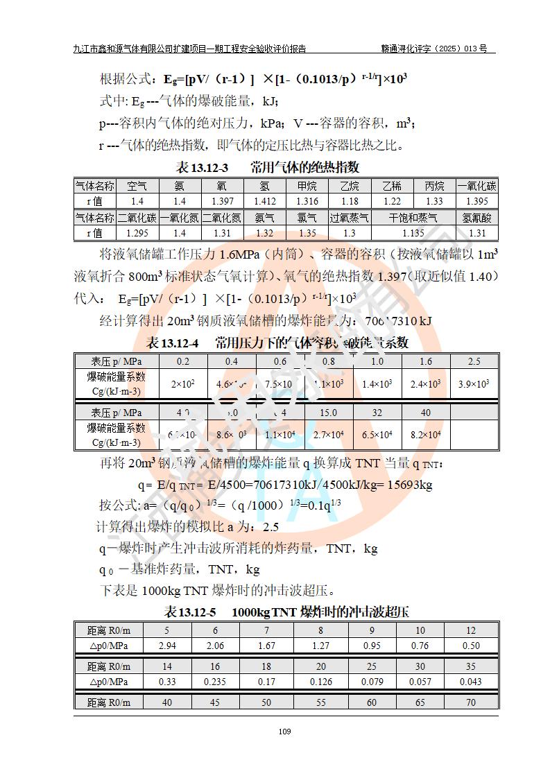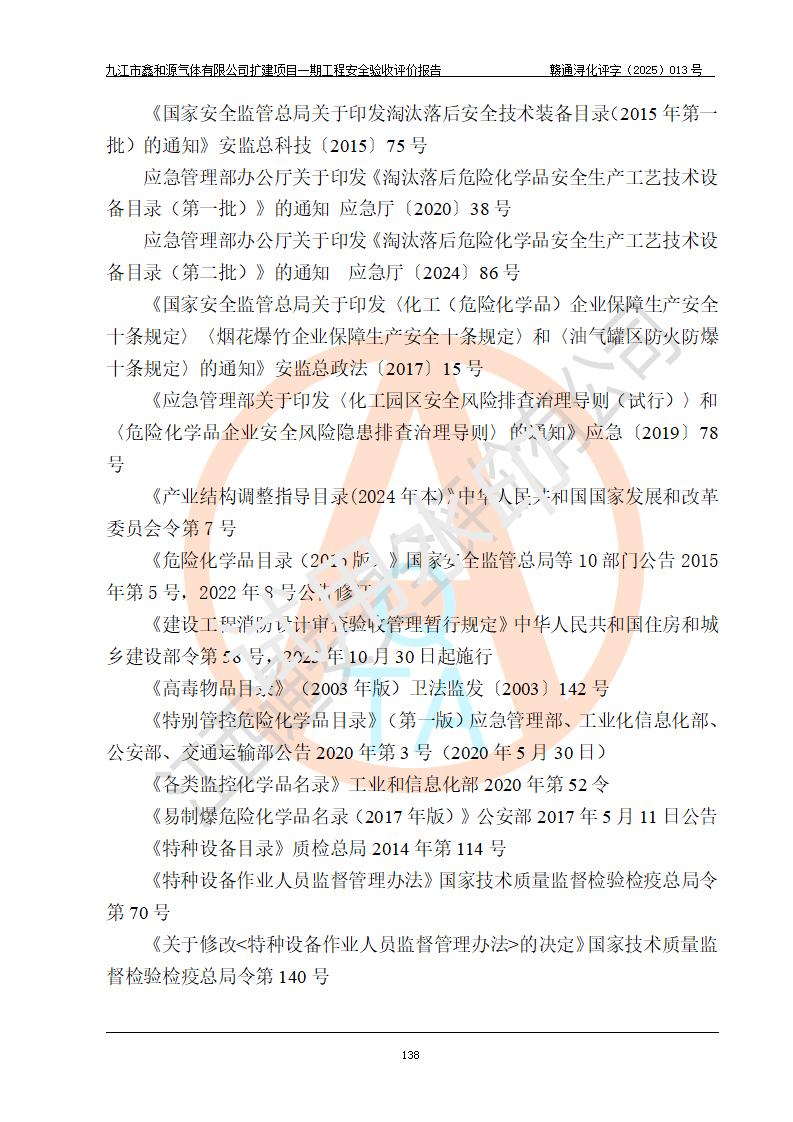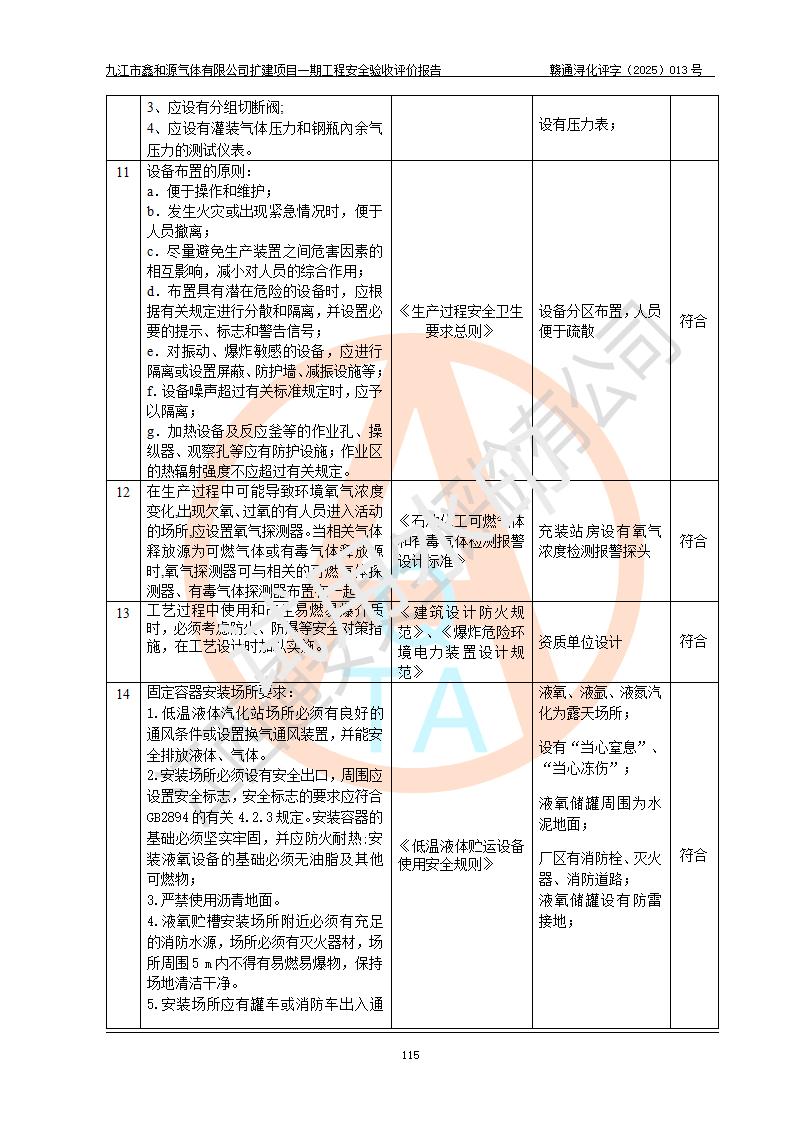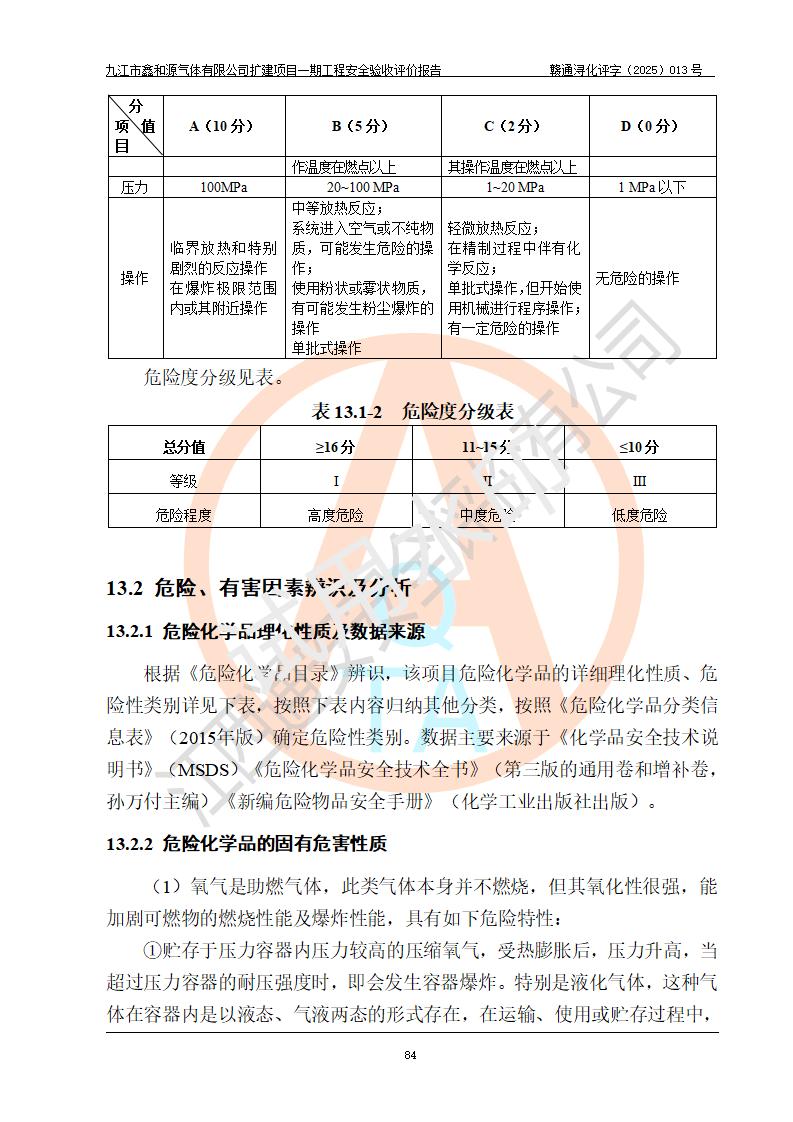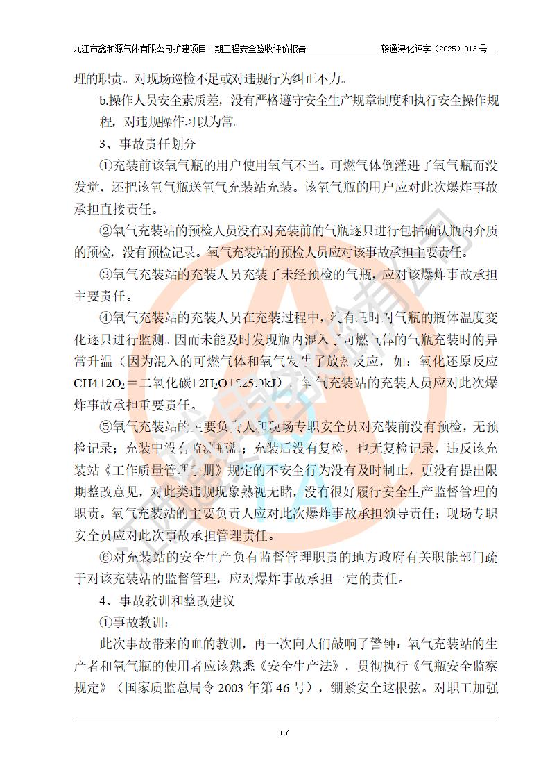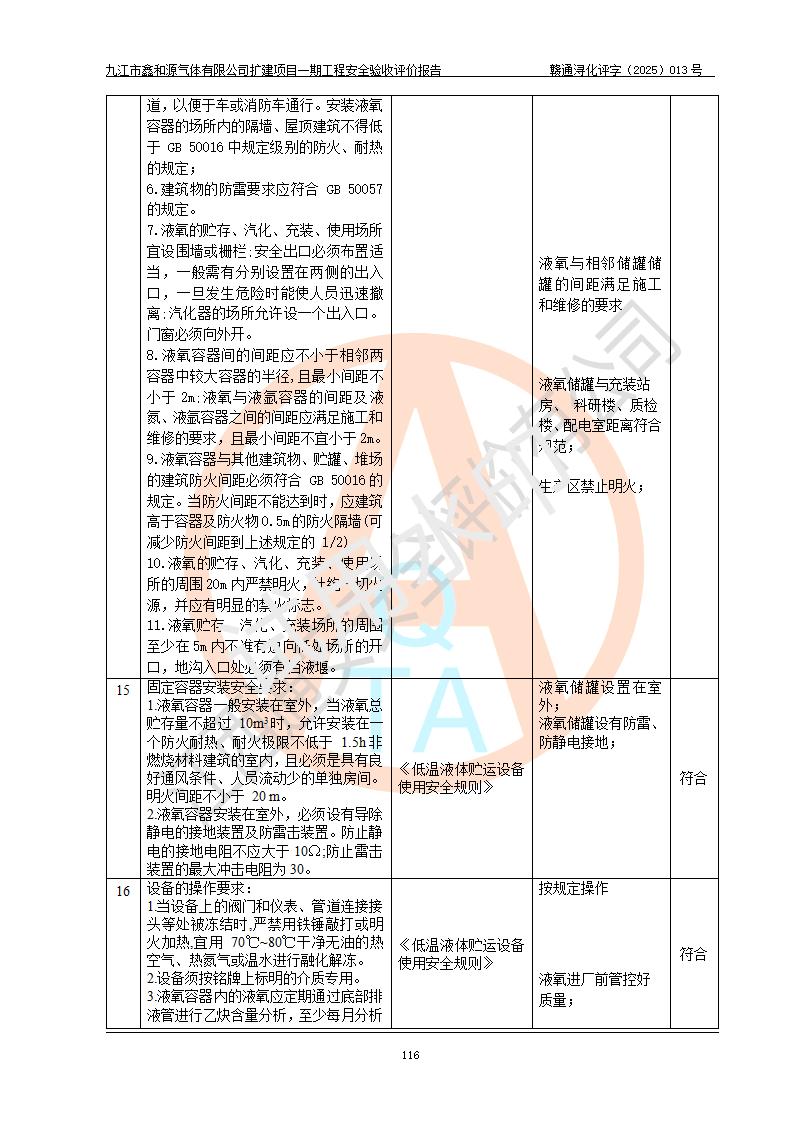 评价报告名称 | 九江市鑫和源气体有限公司扩建2×20m3液氩、3×20m3液氮、2×20m3液氧、2×20m3CO2、2×50m3丙烷储存及充装项目一期工程安全验收评价报告 | |||||