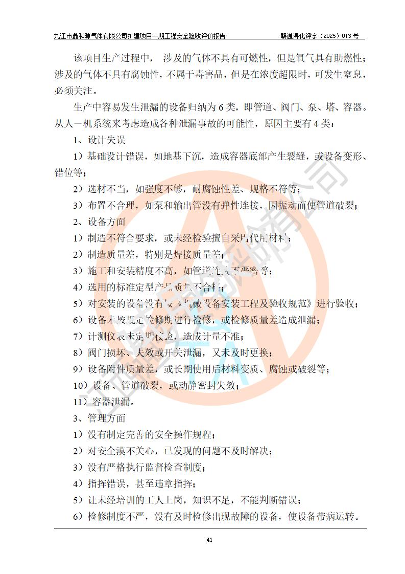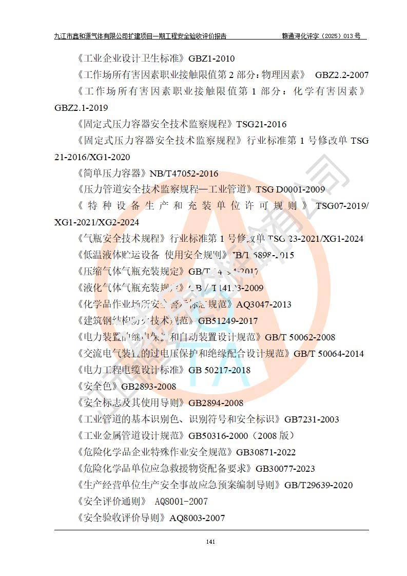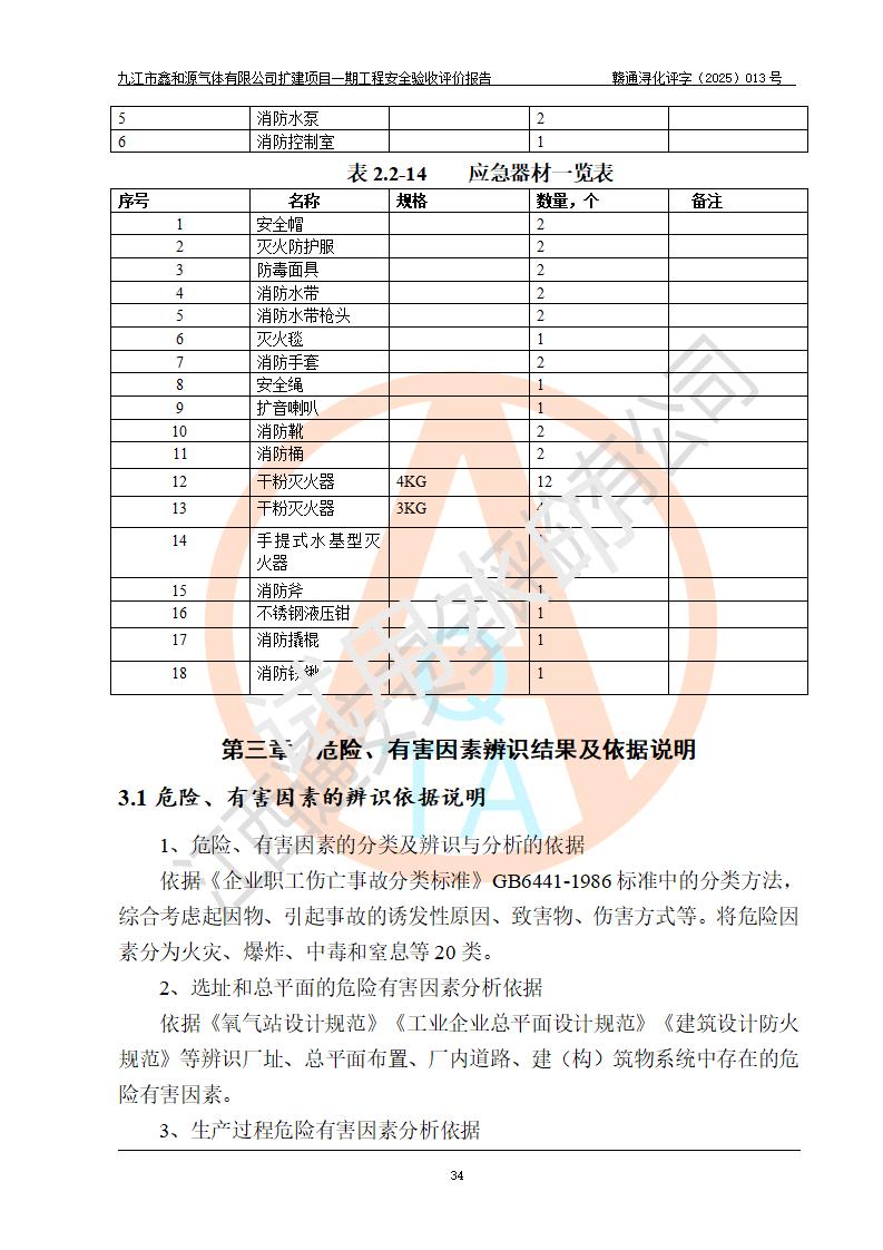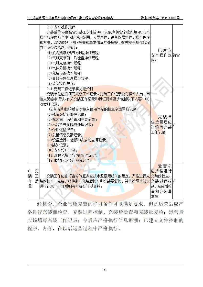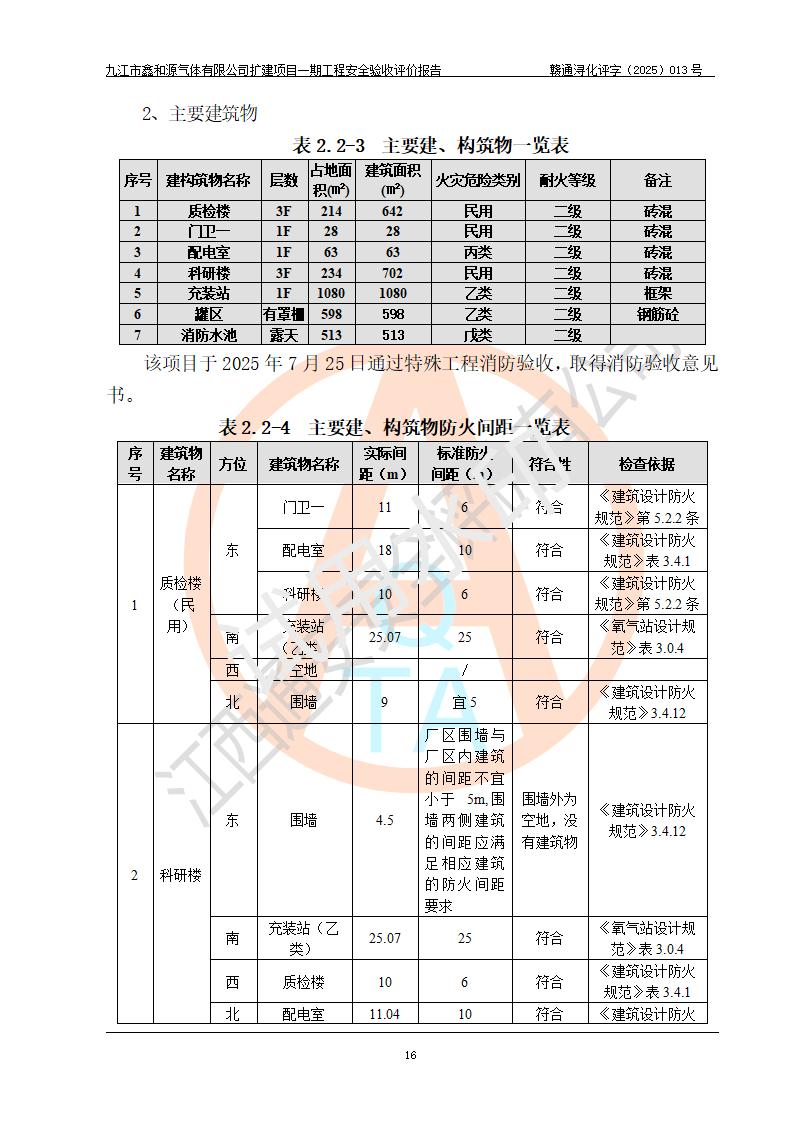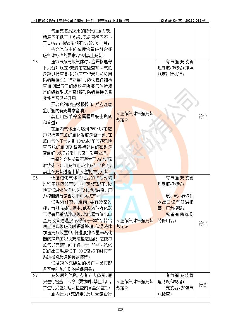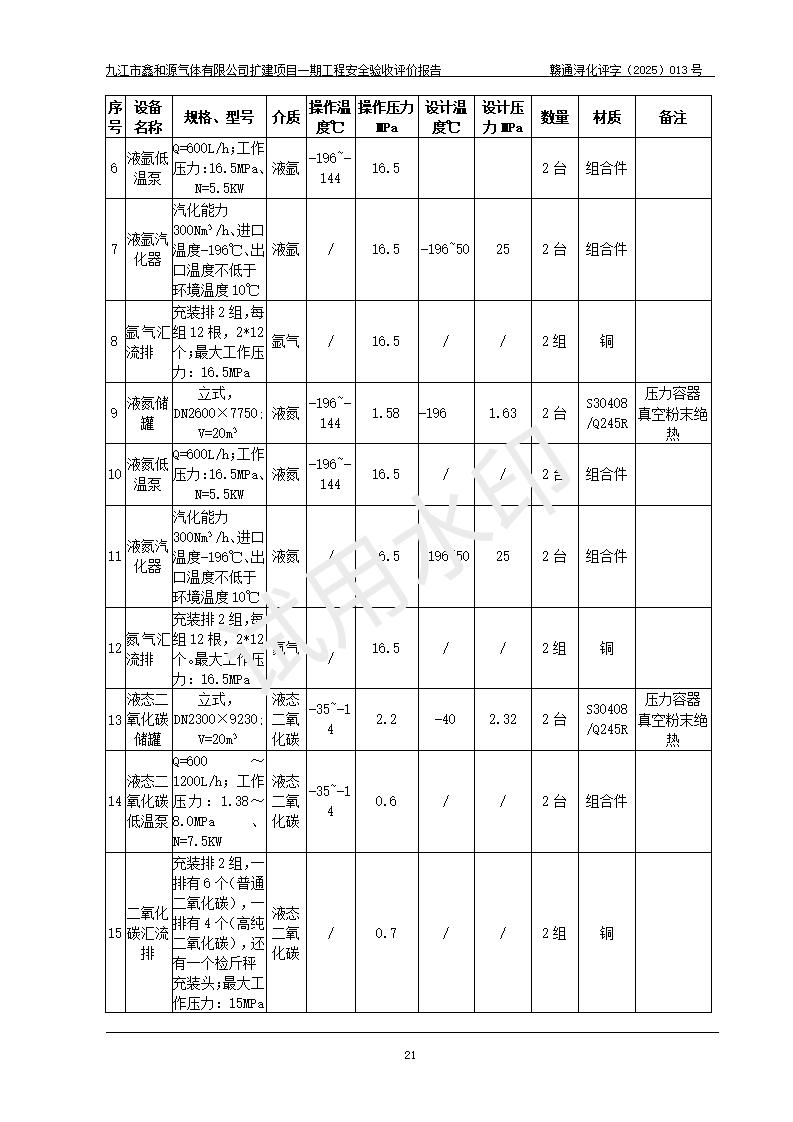 评价报告名称 | 九江市鑫和源气体有限公司扩建2×20m3液氩、3×20m3液氮、2×20m3液氧、2×20m3CO2、2×50m3丙烷储存及充装项目一期工程安全验收评价报告 | |||||
