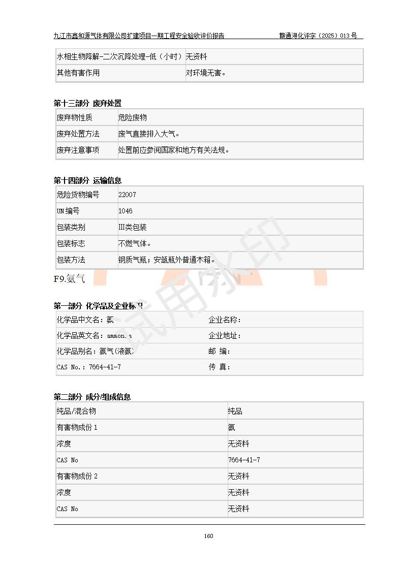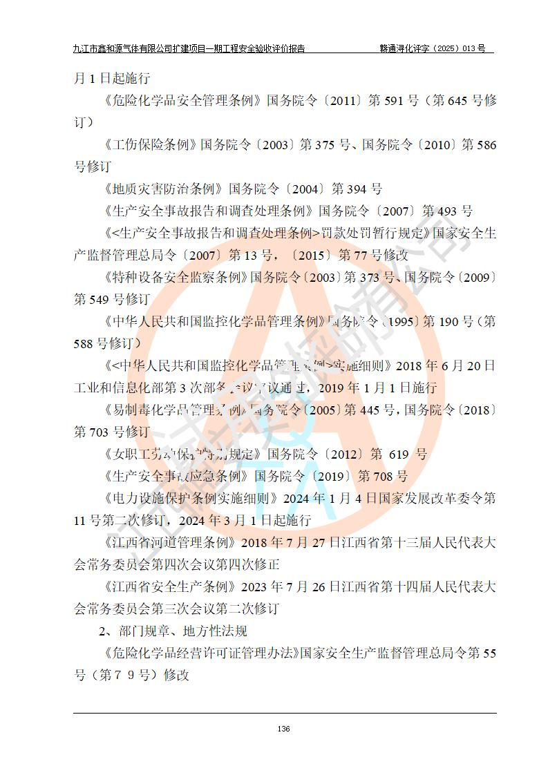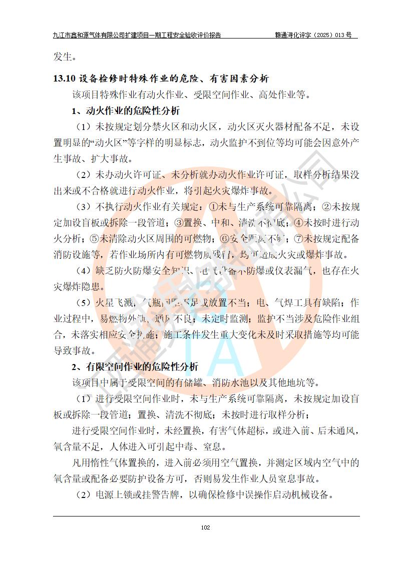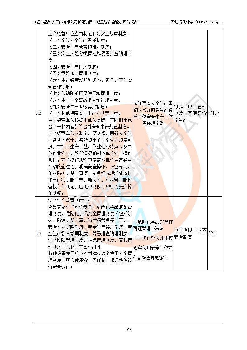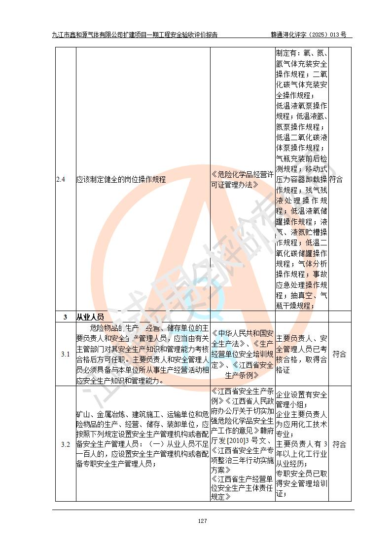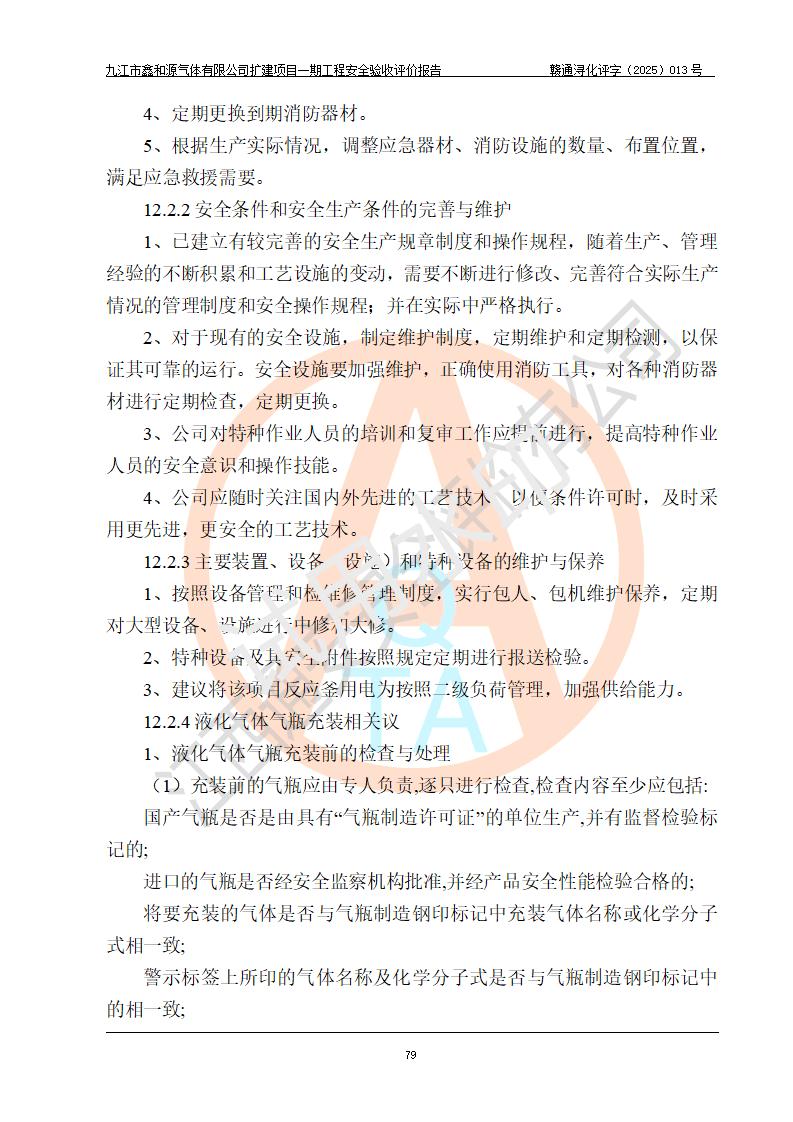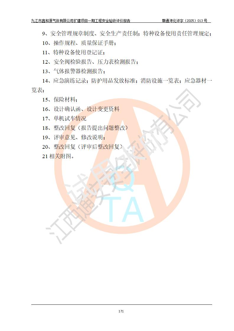 评价报告名称 | 九江市鑫和源气体有限公司扩建2×20m3液氩、3×20m3液氮、2×20m3液氧、2×20m3CO2、2×50m3丙烷储存及充装项目一期工程安全验收评价报告 | |||||