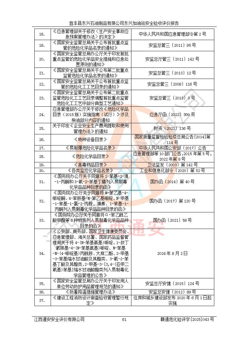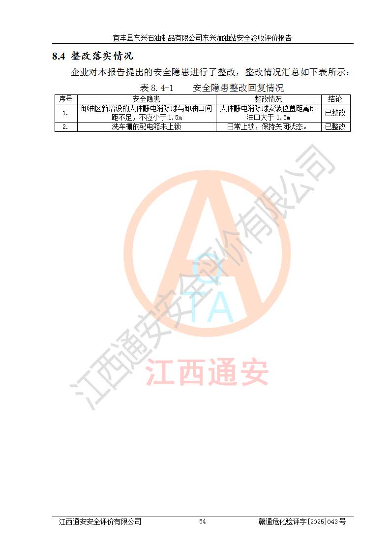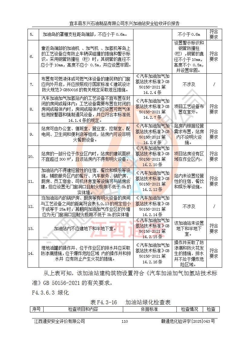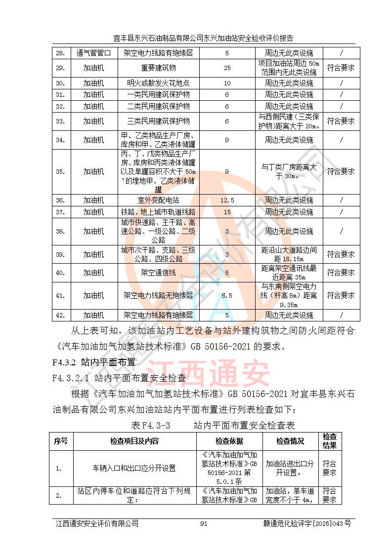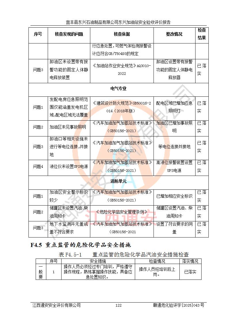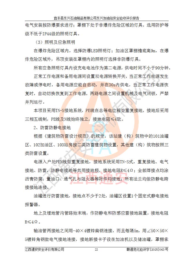 项目简介 | 宜丰县东兴石油制品有限公司东兴加油站(以下简称“该加油站”)成立于2013年10月23日,营业场所位于宜丰县沿山大道以北流源村元形组村民建房点以东,法定**人为张凯军。该加油站统一社会信用代码为91360924MA35HD1D8P,属于有限责任制公司分公司(自然人投资或控股)。经营范围:汽油、柴油、润滑油零售,洗车,烟、预包装食品零售。 该加油站油罐区设有4个埋地卧式储罐,其中1台50m3的0#柴油储罐,1台50m3的92#汽油储罐,1台30m3的92#汽油储罐,1台30m3的95#汽油储罐,柴油罐容积折半计入油罐总容积,折算后总容积为135m3,属于二级加油站,站内设有油气回收系统。油罐采用直埋铺设,并设抗浮基础。加油区设4个加油岛,采用2台四枪加油机,2台双枪加油机。该加油站于2023年2月9日经宜丰县应急管理局核准,换发了新的《危险化学品经营许可证》,证书编号:赣宜安经油字[2022]36092401号,许可范围:汽油、柴油。**期限为2022年9月12日至2025年9月11日。 根据《危险化学品安全管理条例》(经***令第344号发布,***令第591号、***令第645号修改),《危险化学品经营许可证管理办法》(2012年7月17日**安全生产监督管理总局令第55号公布,自2012年9月1日起施行;根据2015年5月27日**安全生产监督管理总局令第79号修正)等法律法规及文件要求,该加油站的危险化学品经营许可证三年**期即将到期,需要重新进行安全现状评价。由于该加油站2013年建成投运,安全设施“三同时”资料不全,根据《江西省应急管理厅办公室关于规范危险化学品经营许可工作的通知》(赣应急办字〔2025〕58号)等要求,危险化学品经营企业应在一个延期换证周期内进行安全设计诊断,并根据诊断结论开展安全设施设计整改,验收通过后方可延期换证。该加油站于2025年6月委托黑龙江龙维化学工程设计有限公司(具有化工石化医药行业专业**工程设计资质)编制了《宜丰县东兴石油制品有限公司东兴加油站安全设计诊断报告》,并通过了专家评审。根据该安全设计诊断报告提出的安全隐患及整改建议,该加油站及时进行了整改,目前已整改到位,具备安全设施验收条件。 | ||||