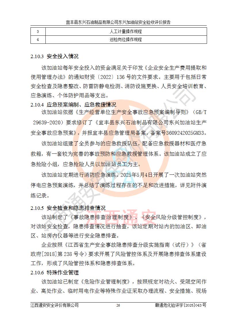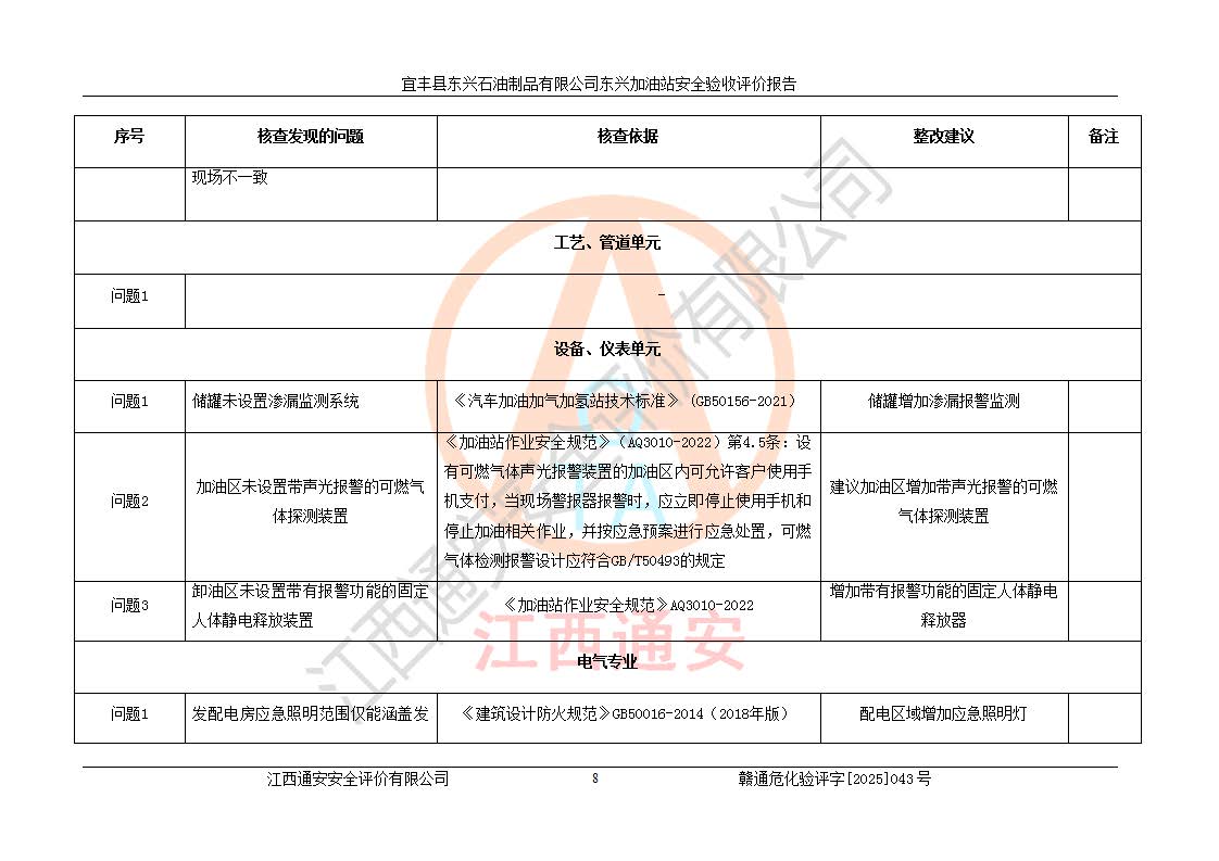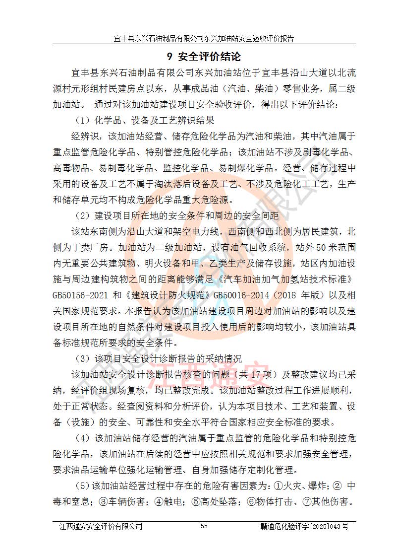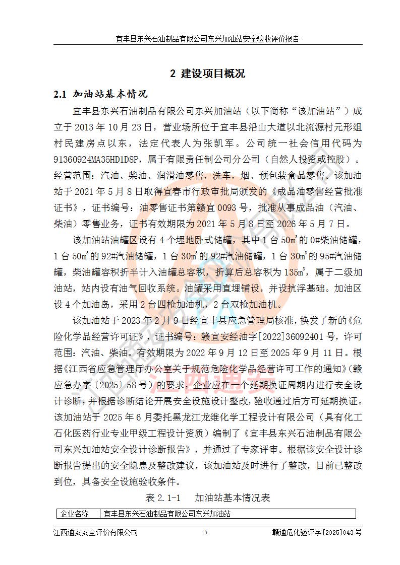 项目名称 | 宜丰县东兴石油制品有限公司东兴加油站安全验收评价 | ||||