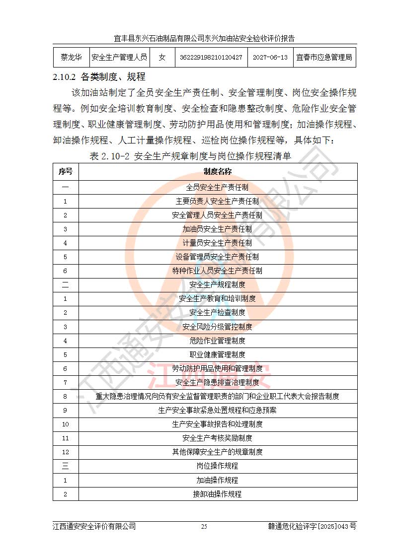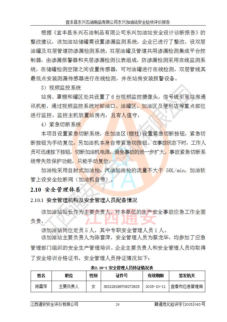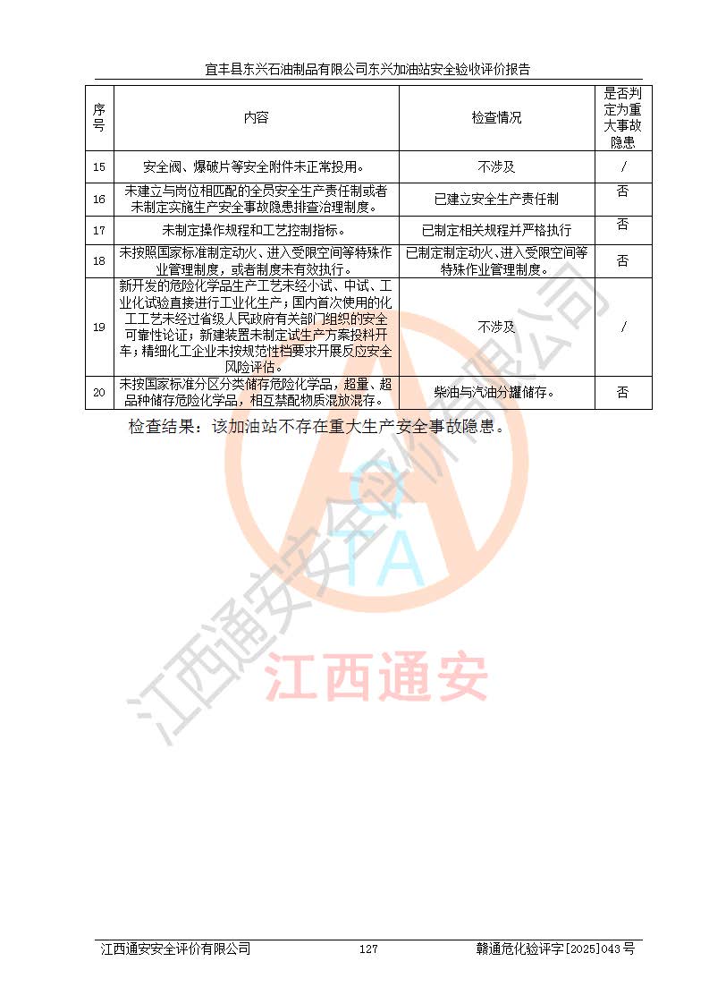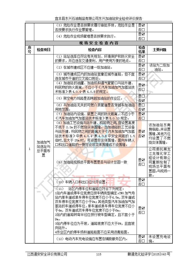 项目名称 | 宜丰县东兴石油制品有限公司东兴加油站安全验收评价 | ||||