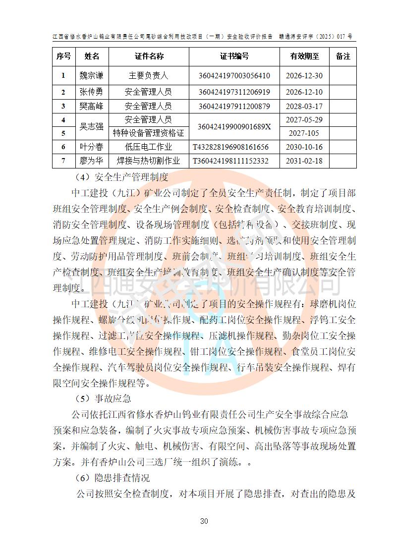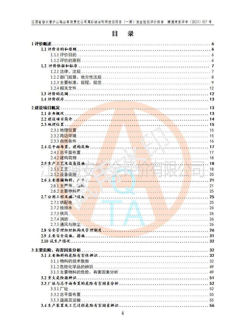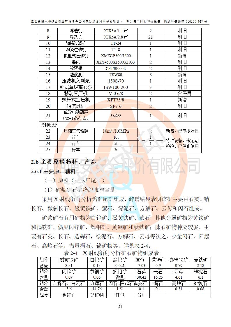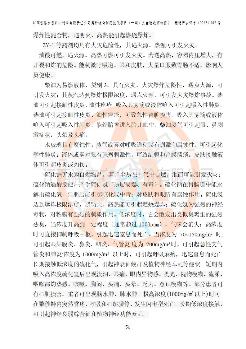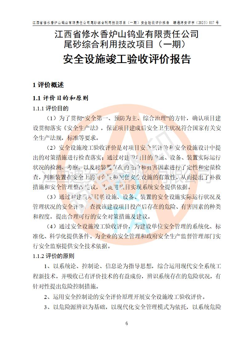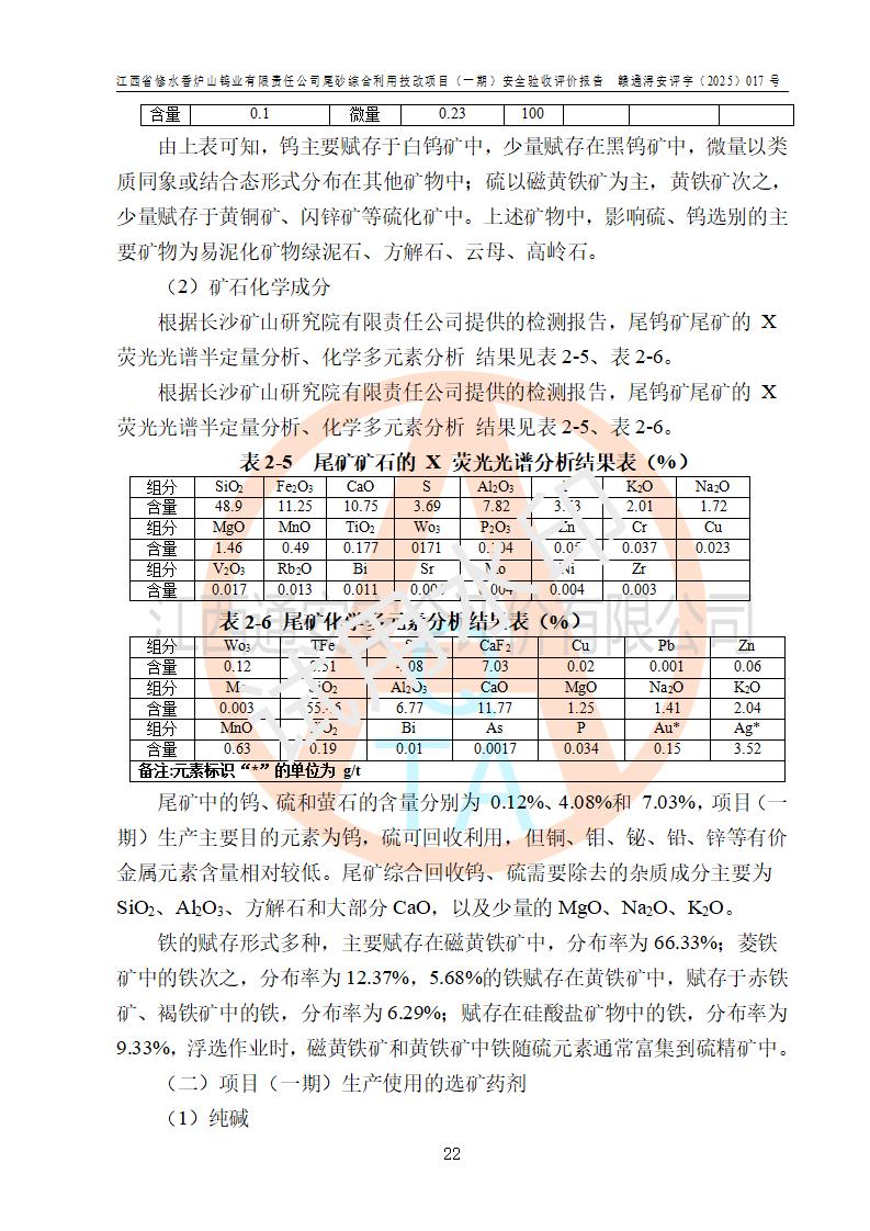 评价报告名称 | 江西省修水香炉山钨业有限责任公司尾砂综合利用技改项目(一期)安全验收评价报告 | |||||