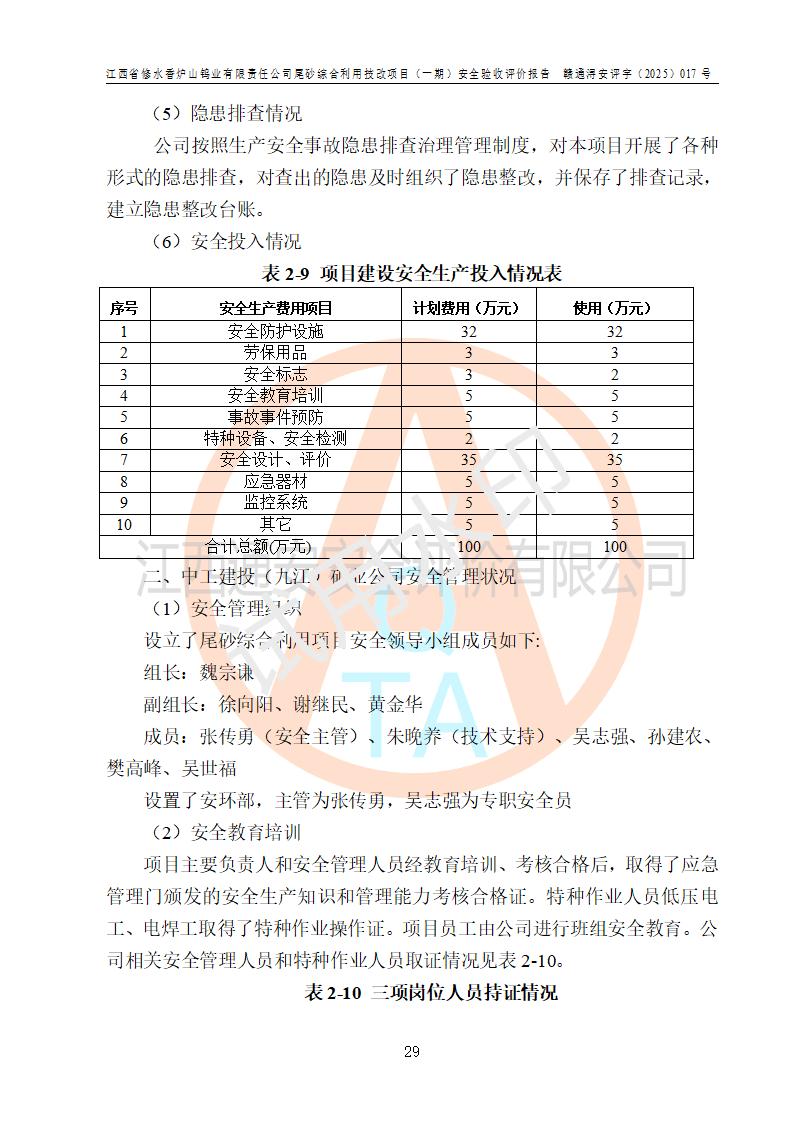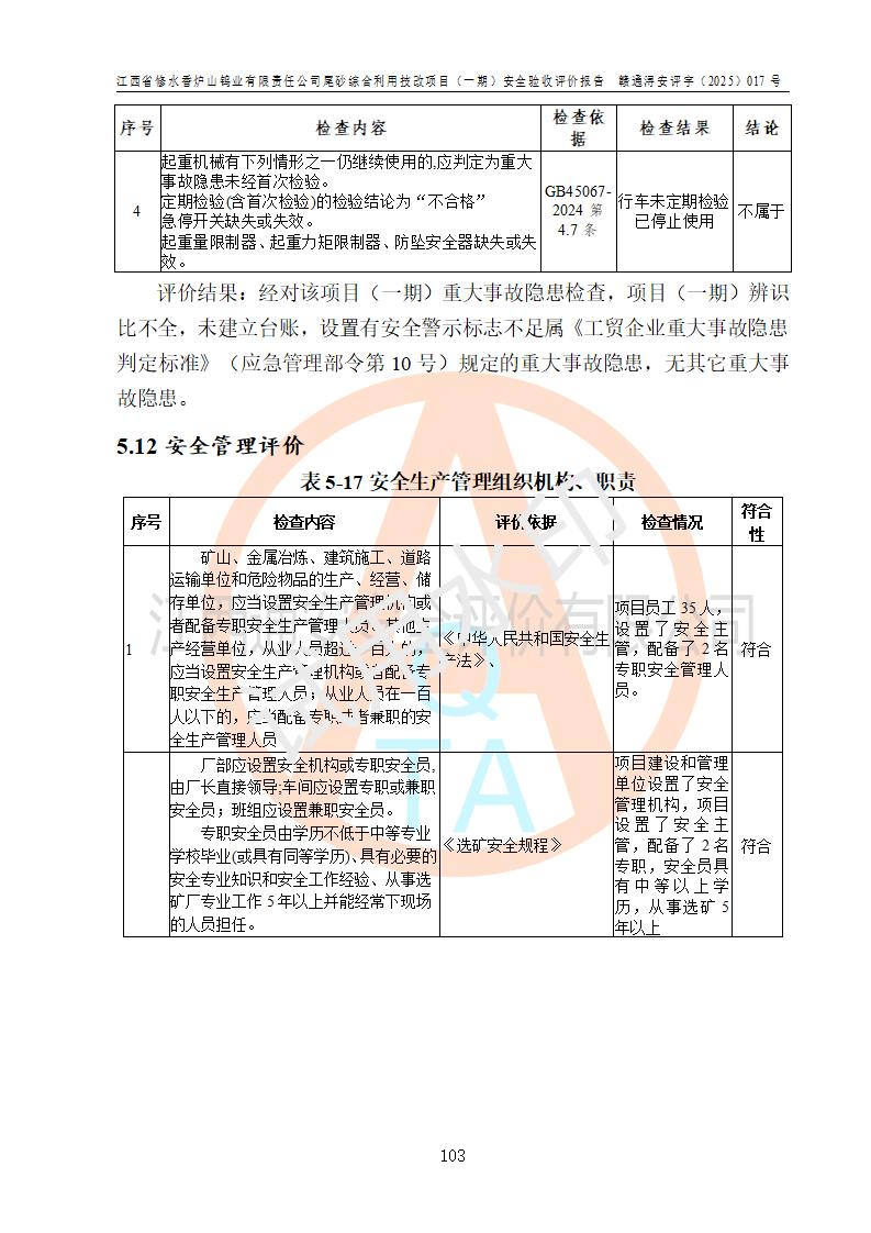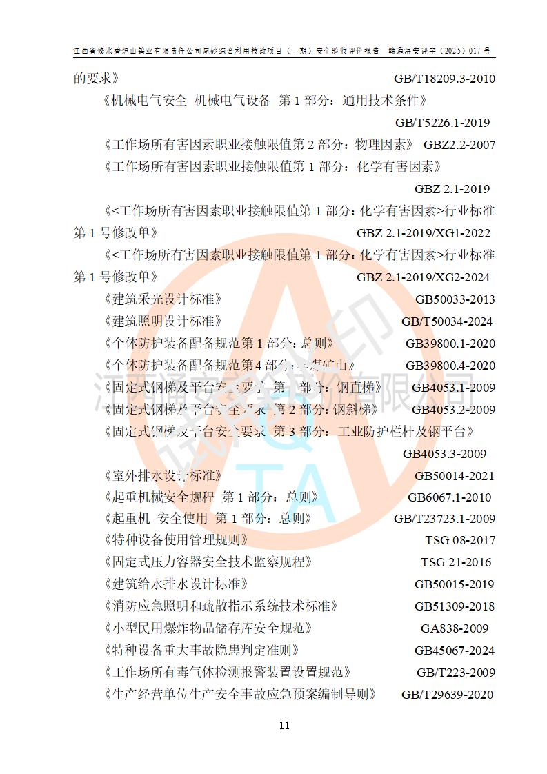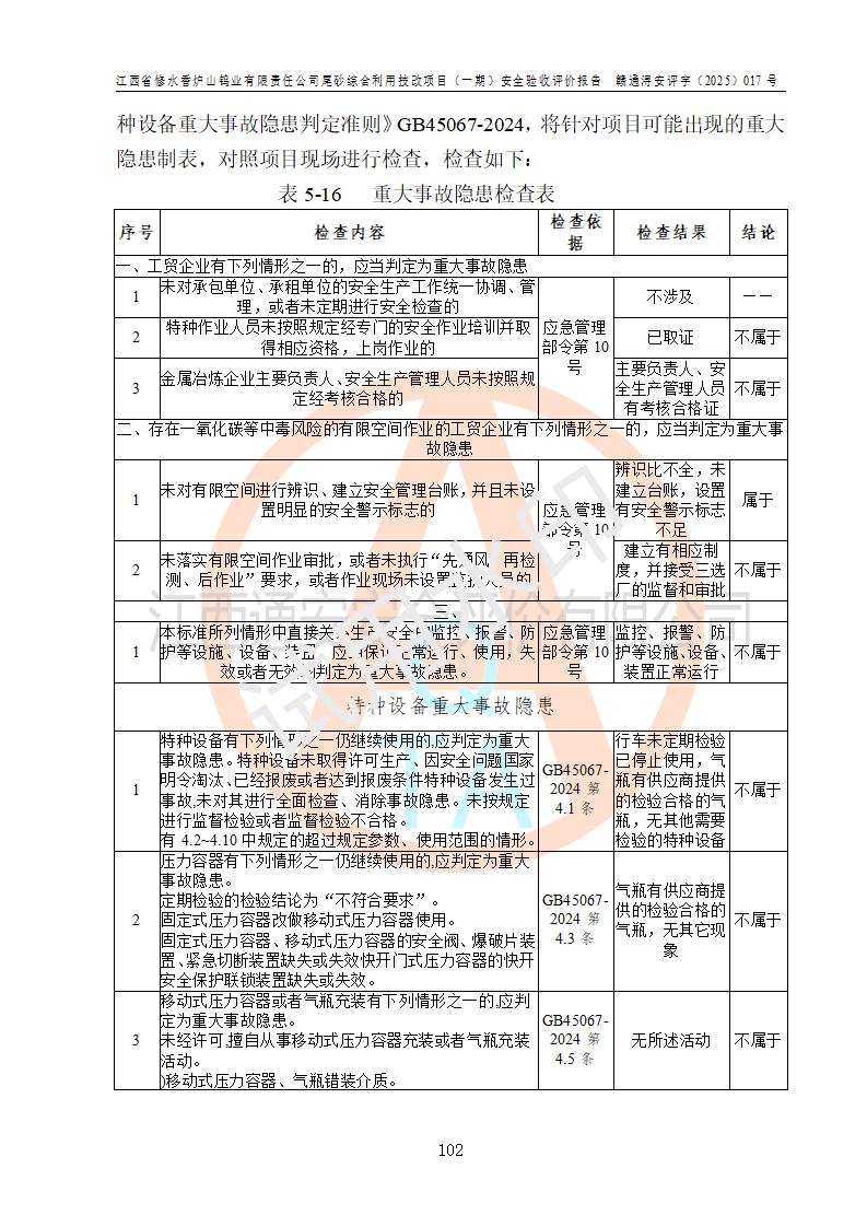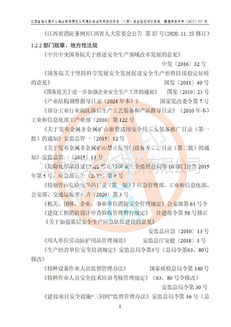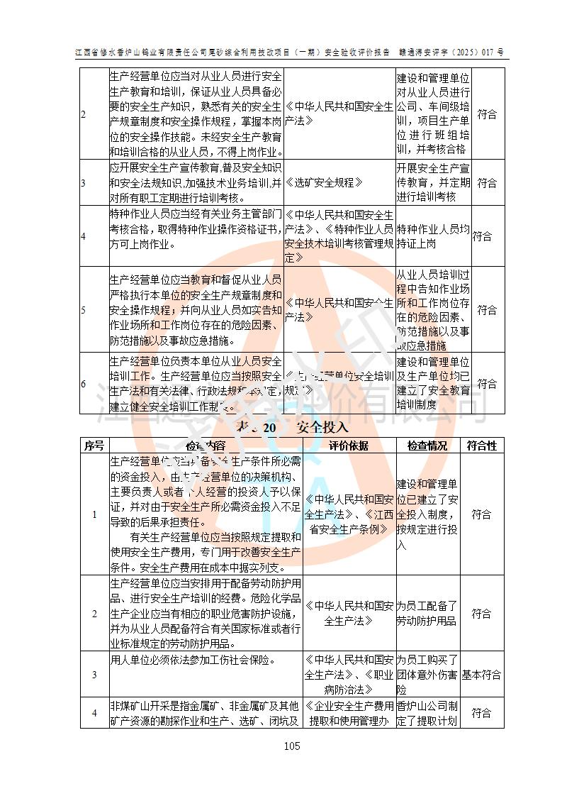 评价报告名称 | 江西省修水香炉山钨业有限责任公司尾砂综合利用技改项目(一期)安全验收评价报告 | |||||