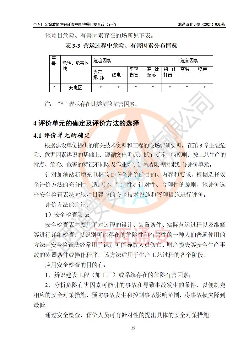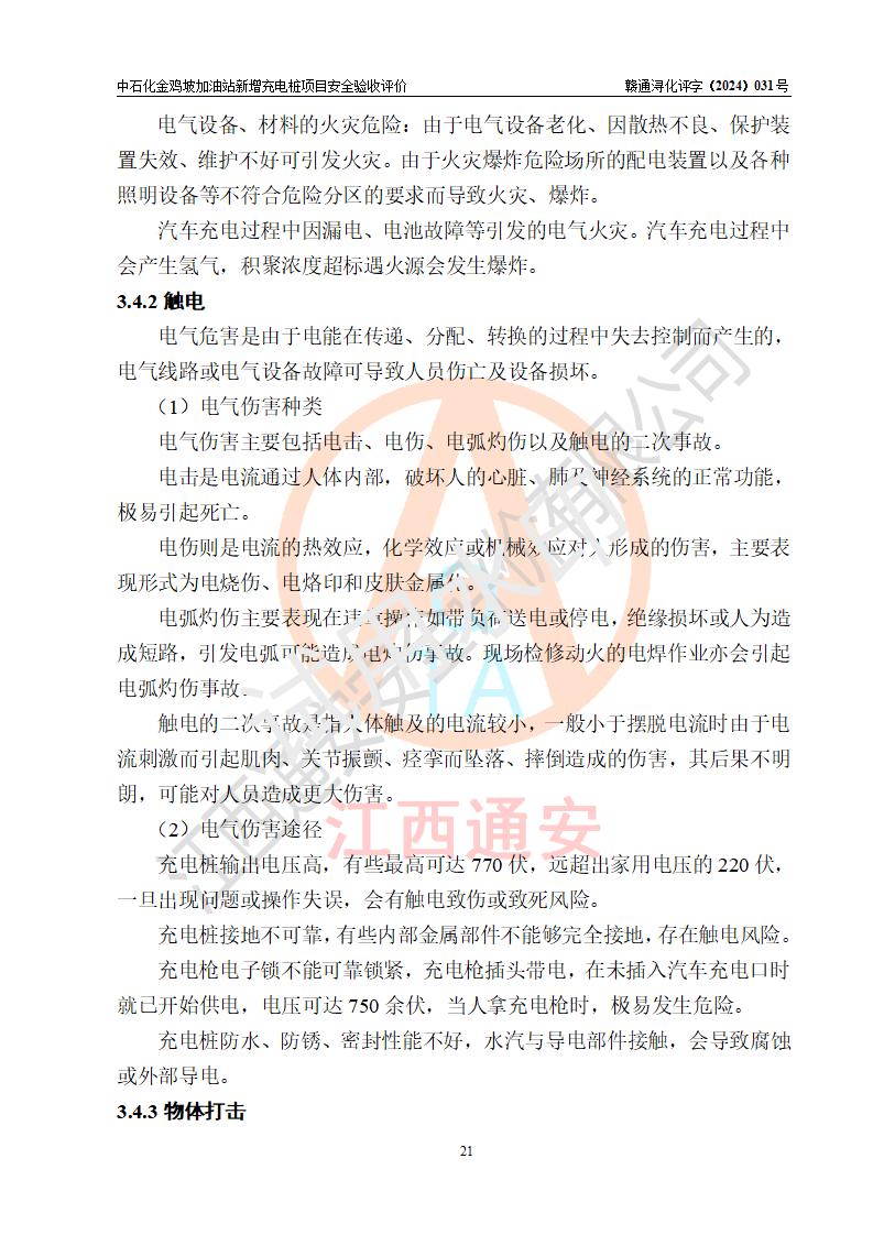 评价报告名称 | 中国石化销售股份有限公司江西九江浔阳石油分公司金鸡坡加油站新增充电桩项目安全验收评价报告 | |||