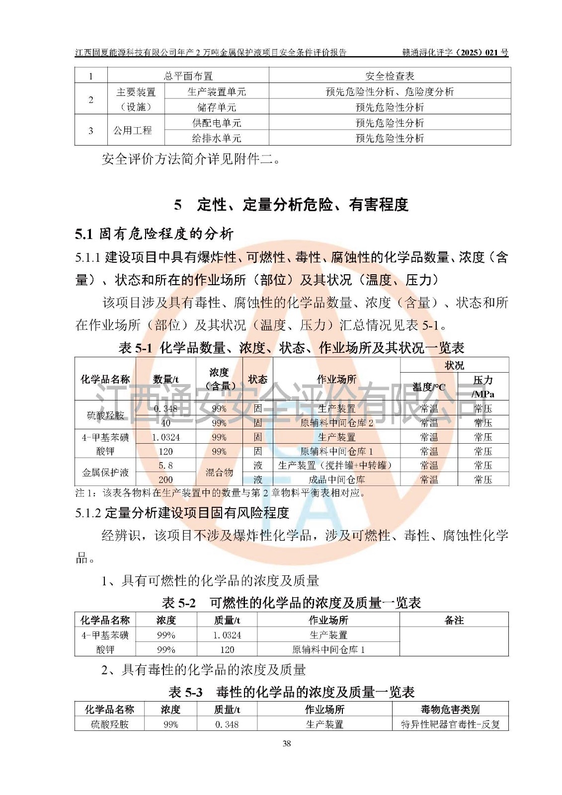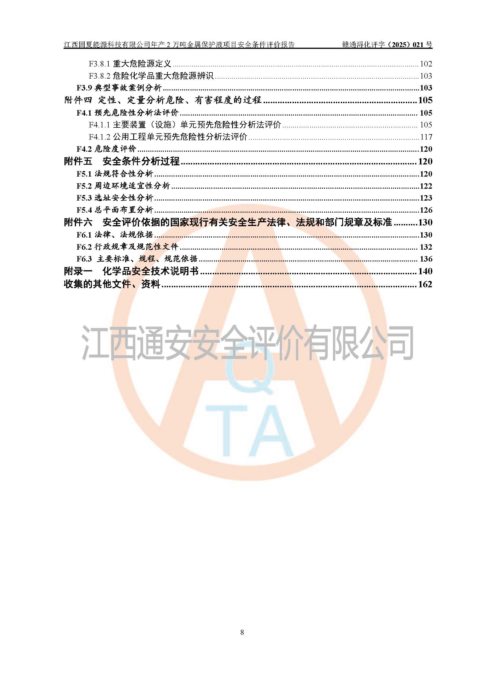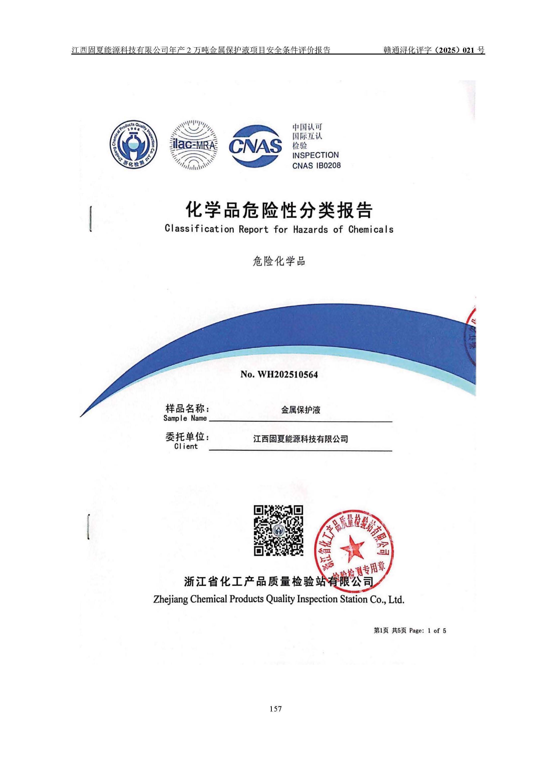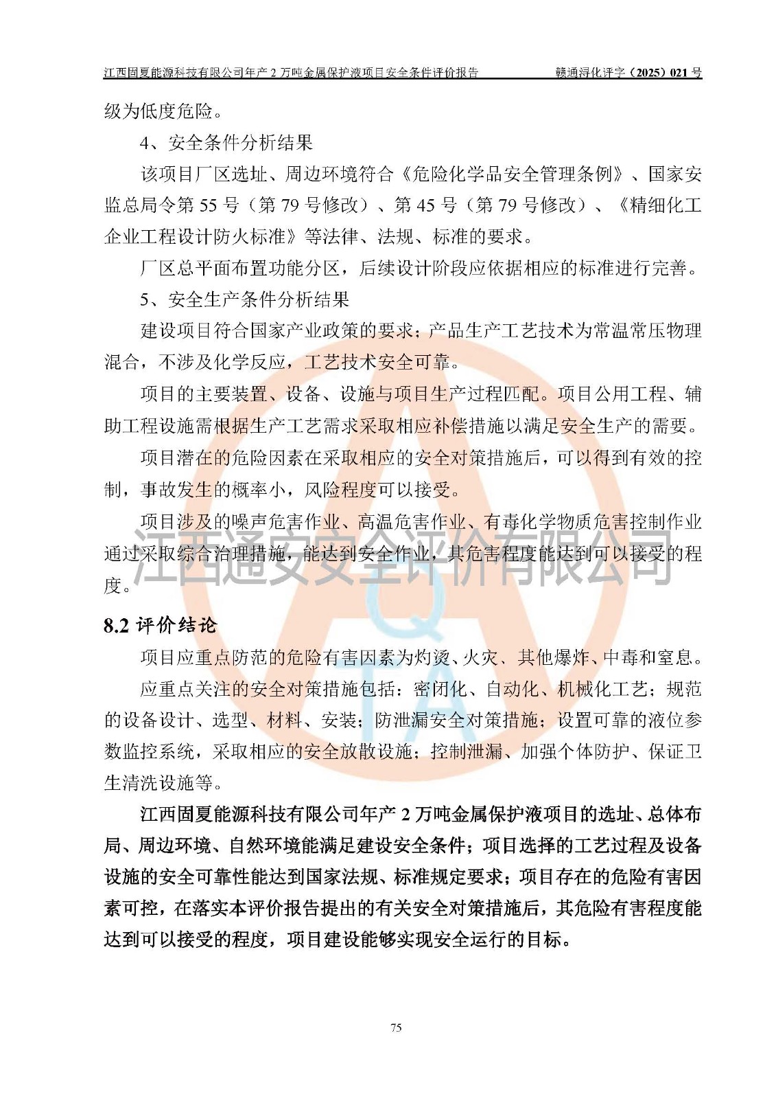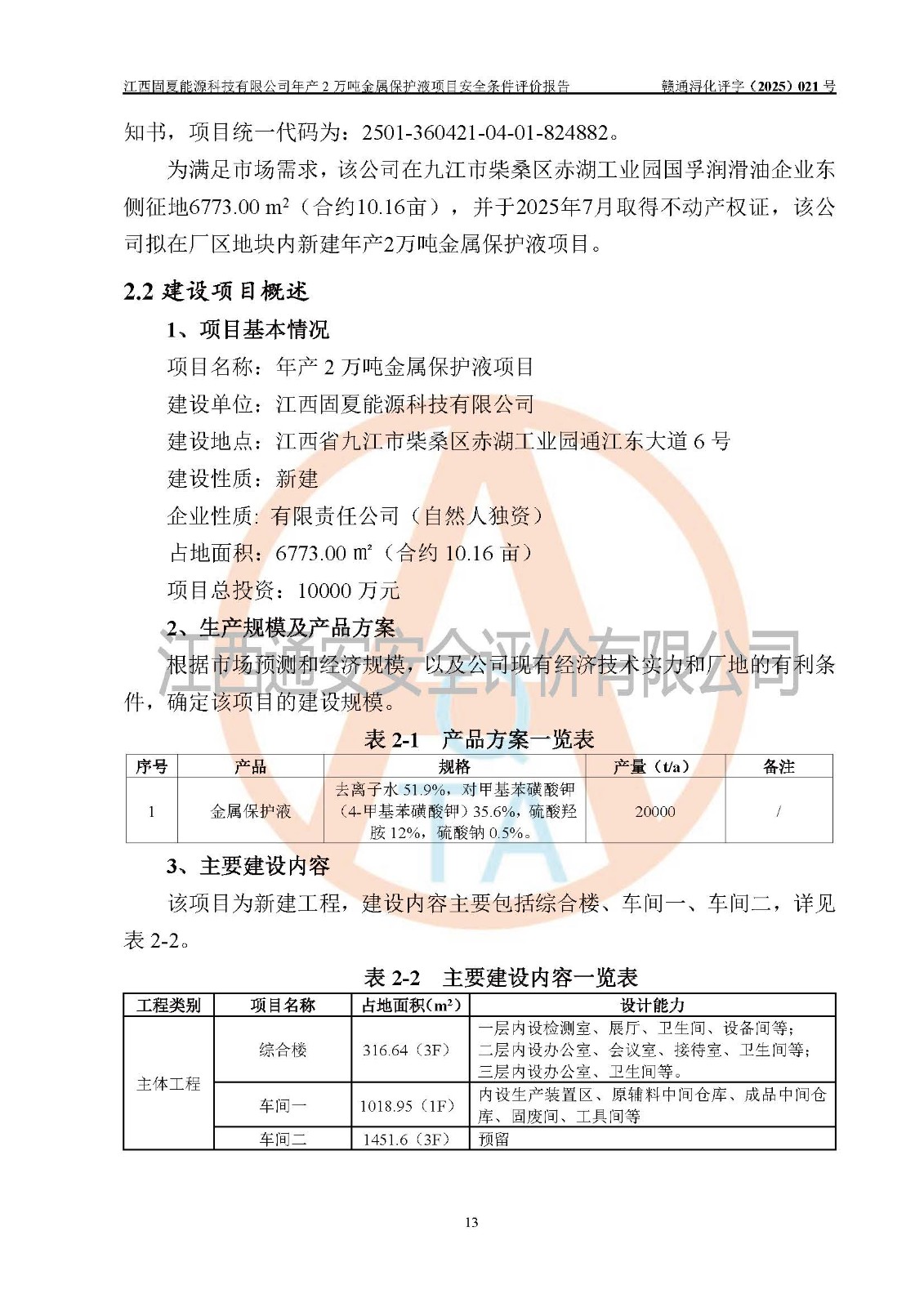 评价报告名称 | 江西固夏能源科技有限公司年产2万吨金属保护液项目安全条件评价报告 | |||
