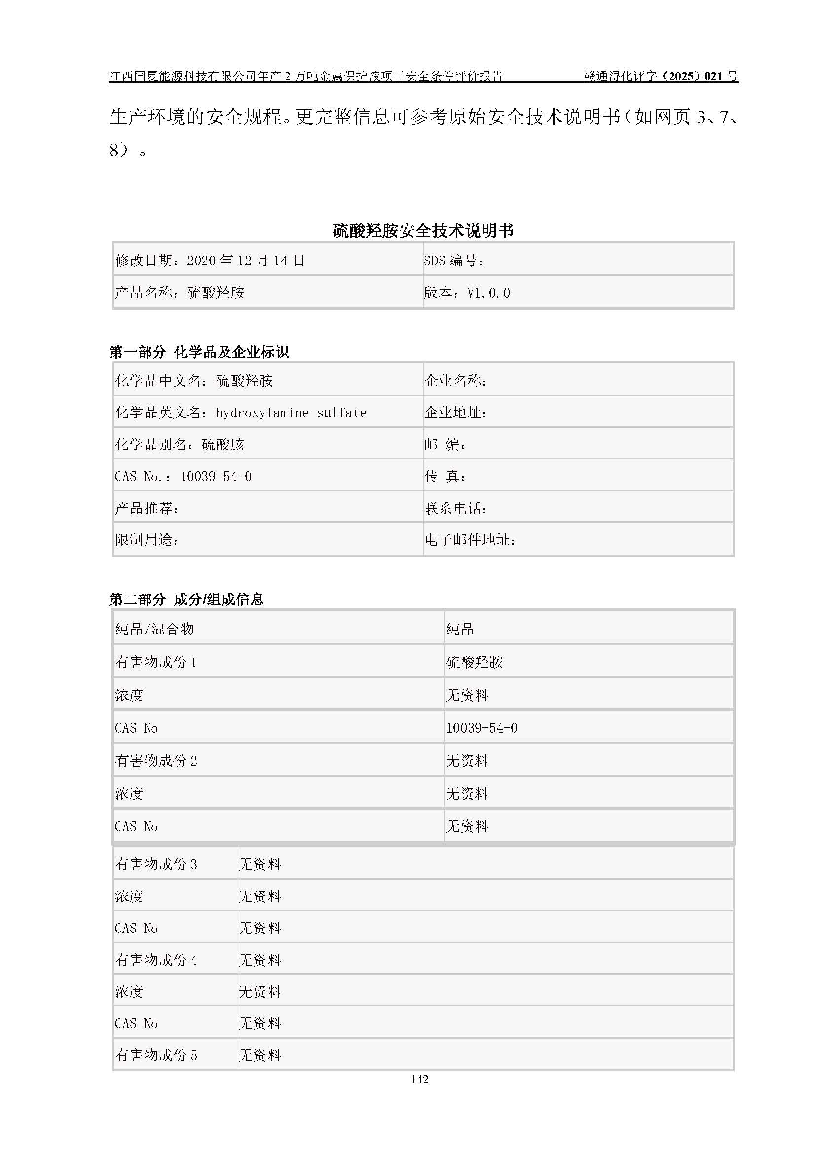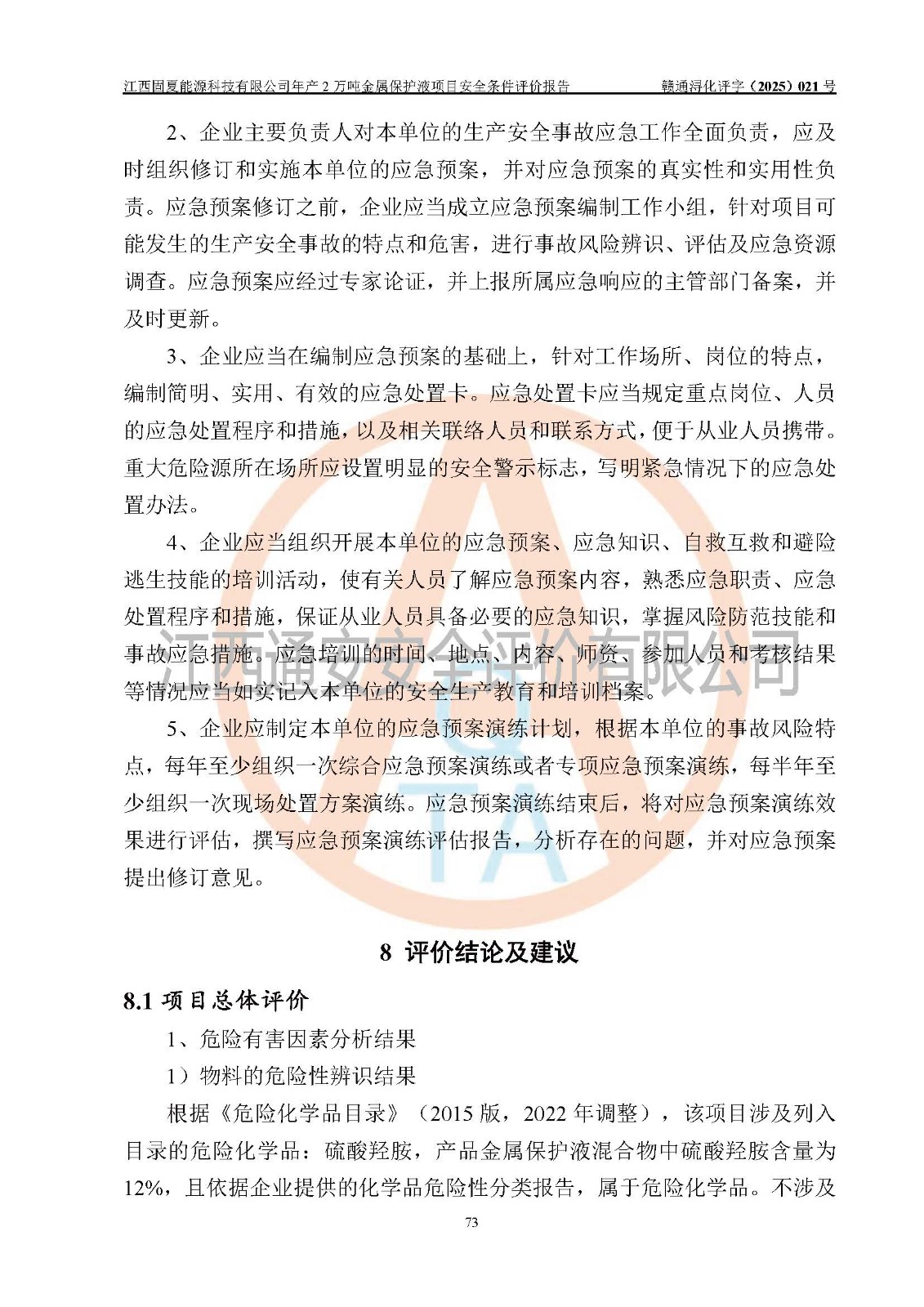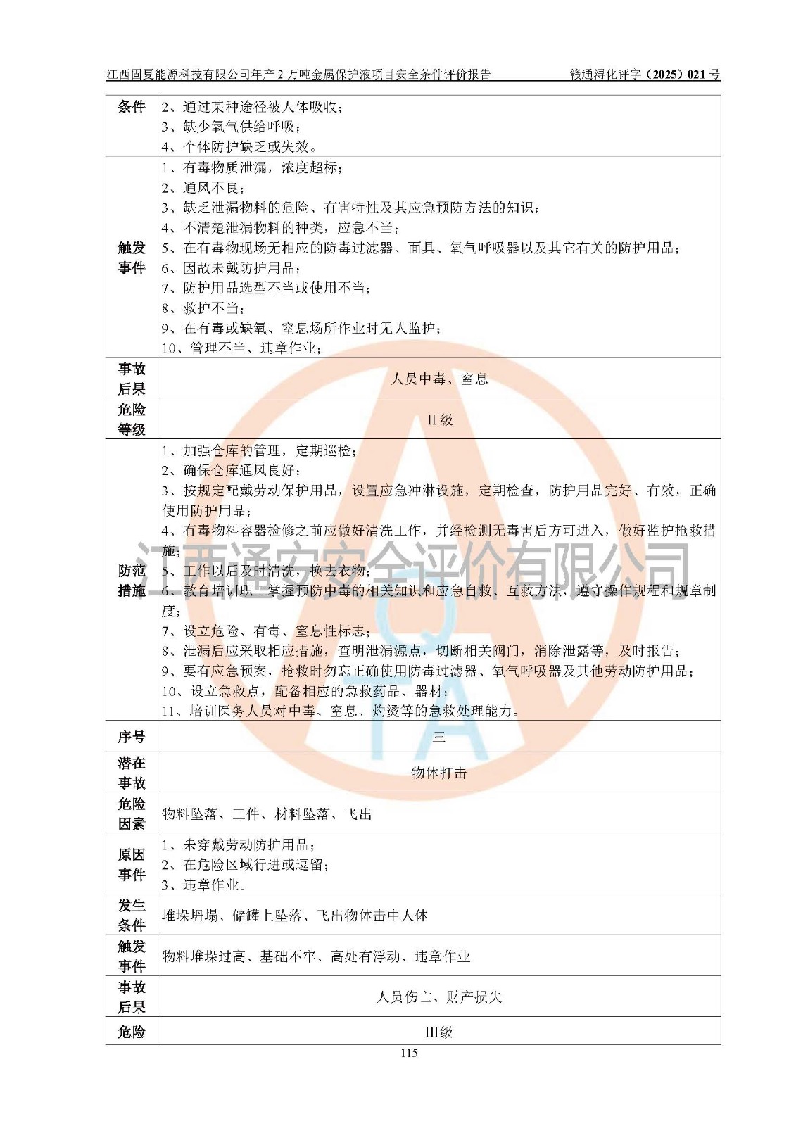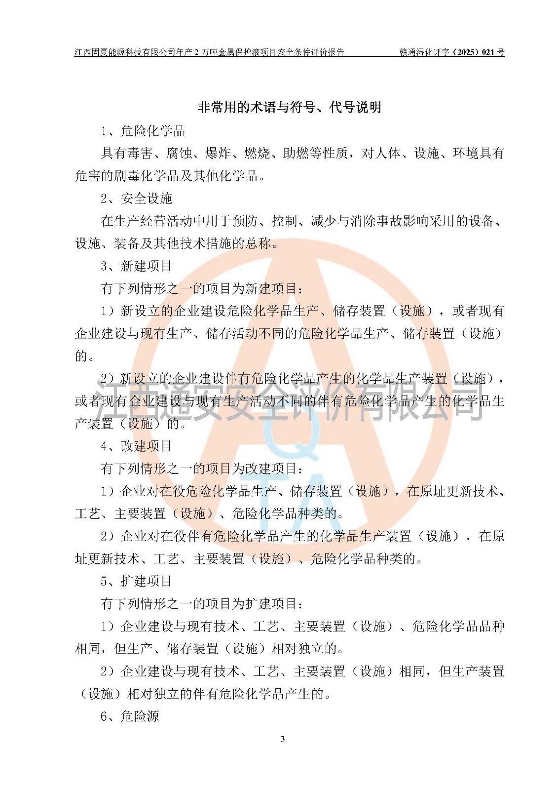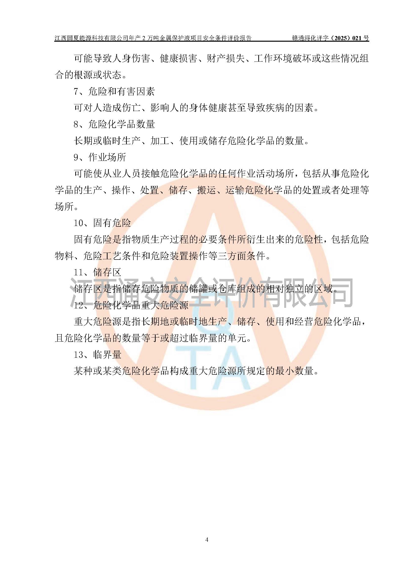 评价报告名称 | 江西固夏能源科技有限公司年产2万吨金属保护液项目安全条件评价报告 | |||