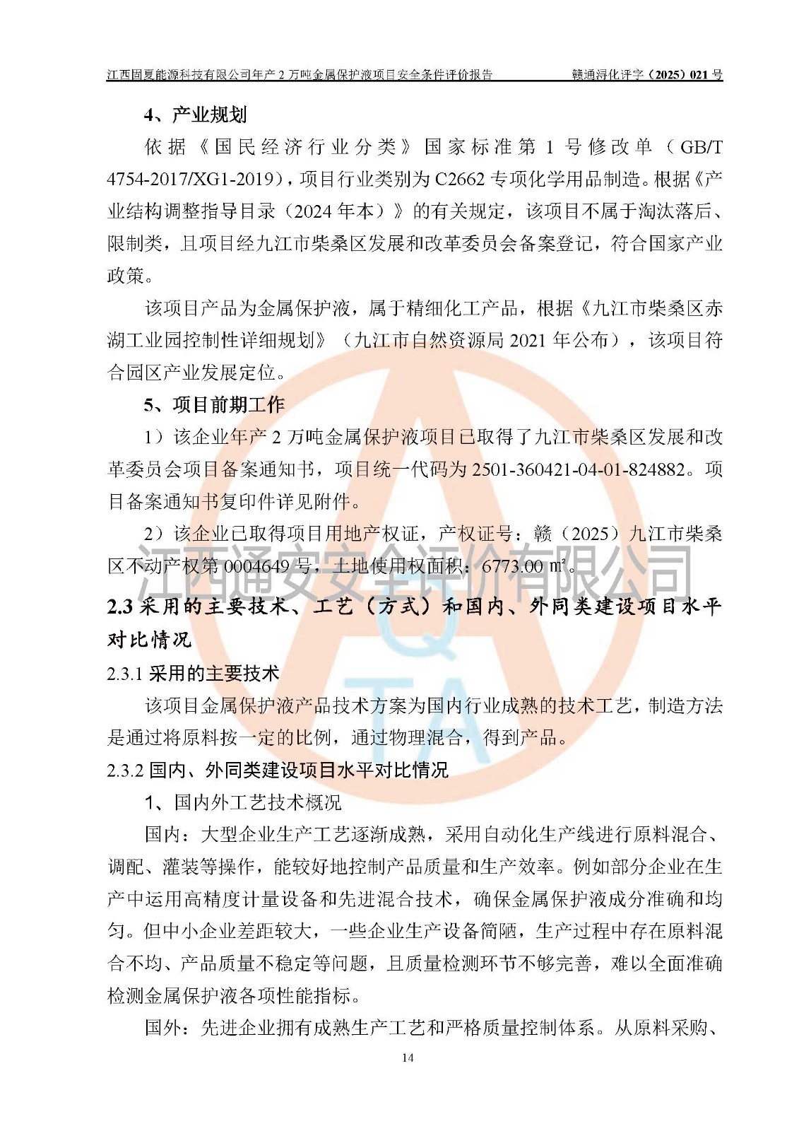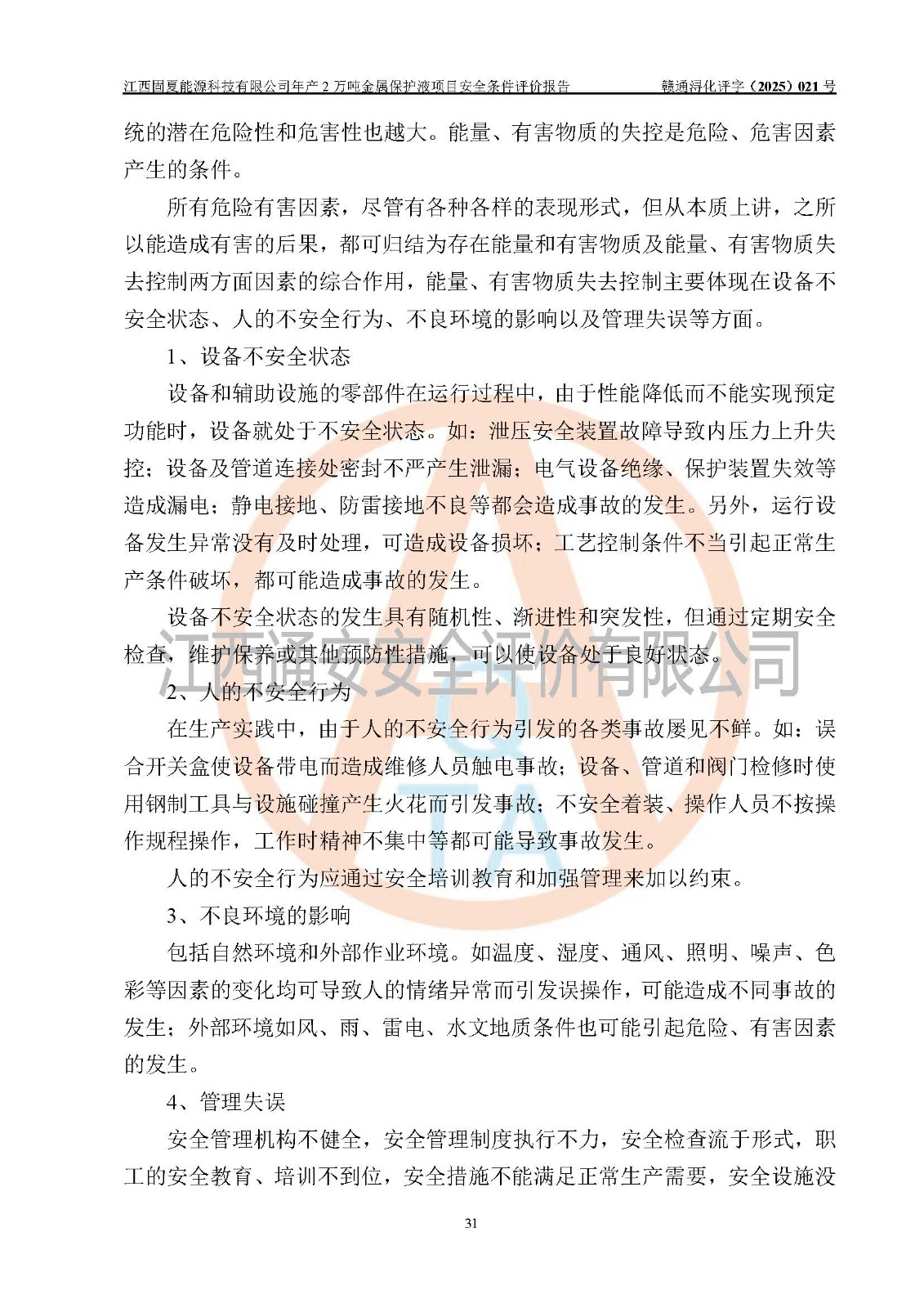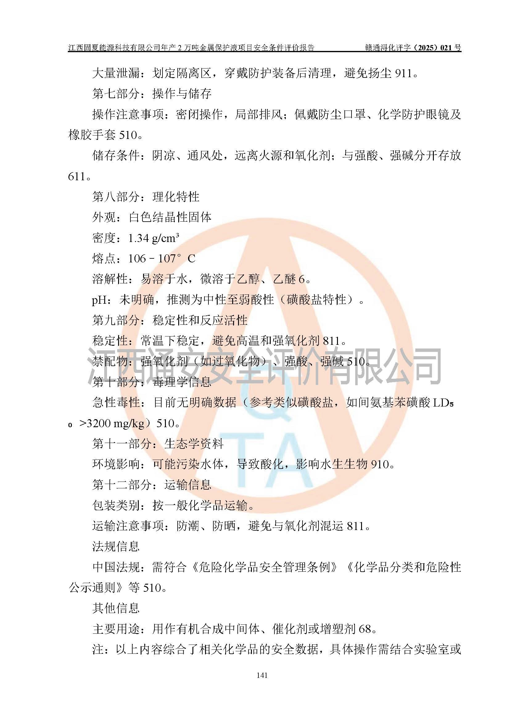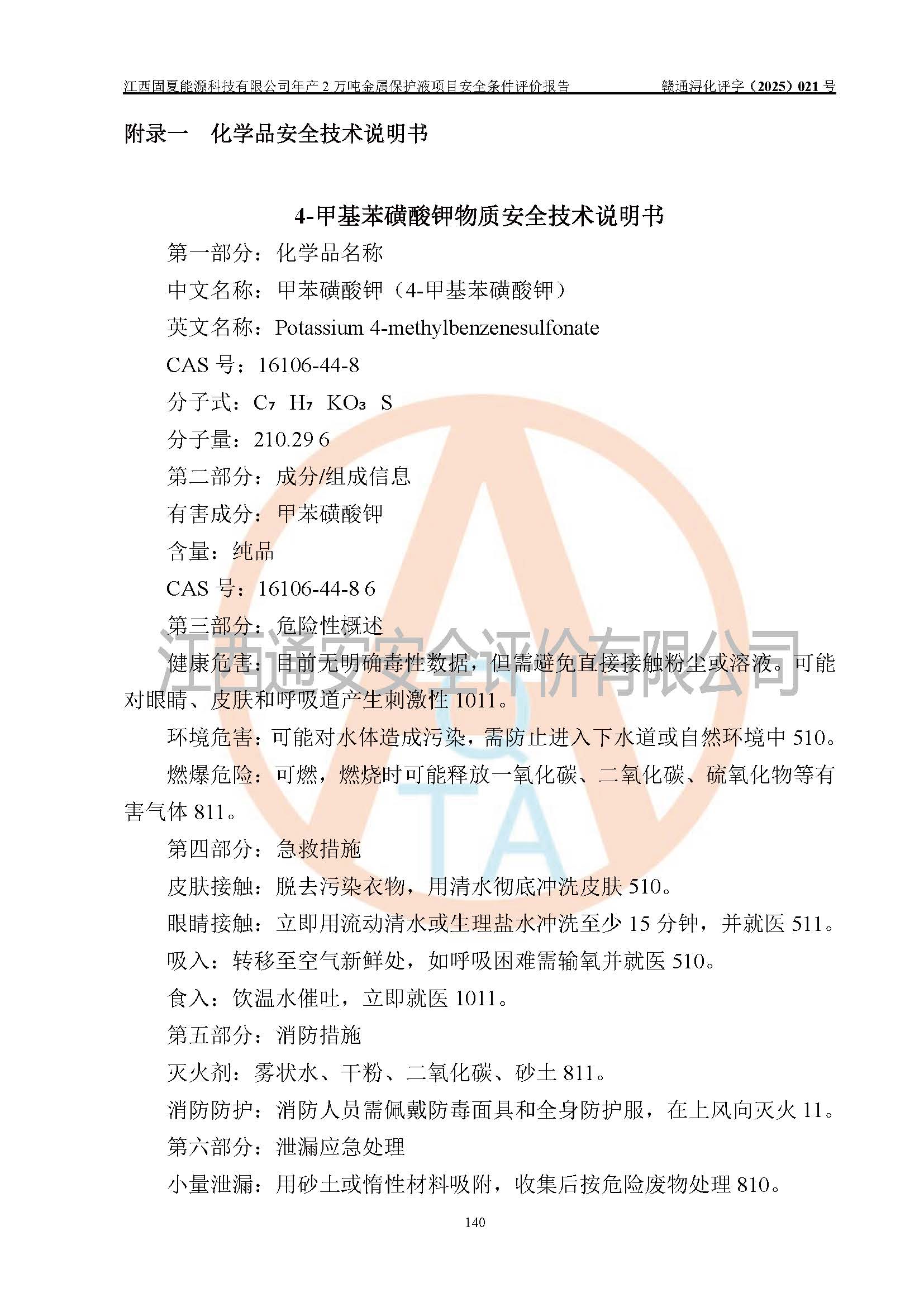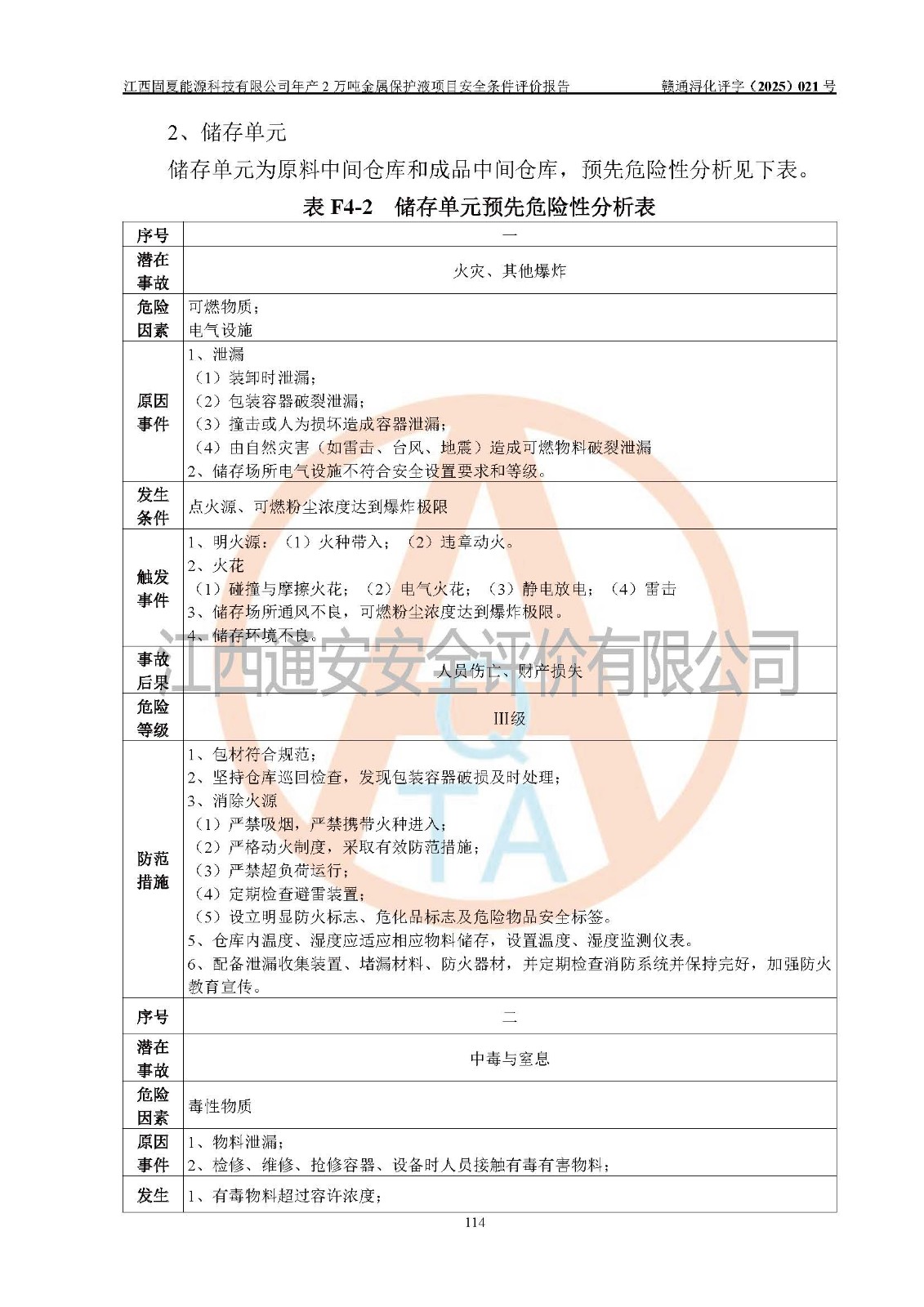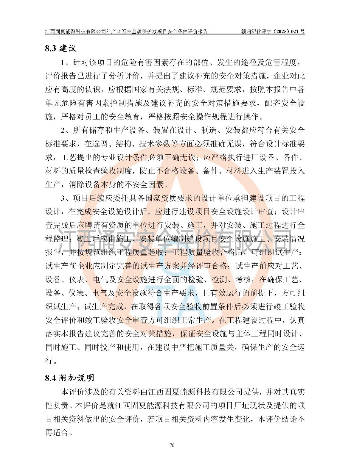评价报告名称 | 江西固夏能源科技有限公司年产2万吨金属保护液项目安全条件评价报告 | |||