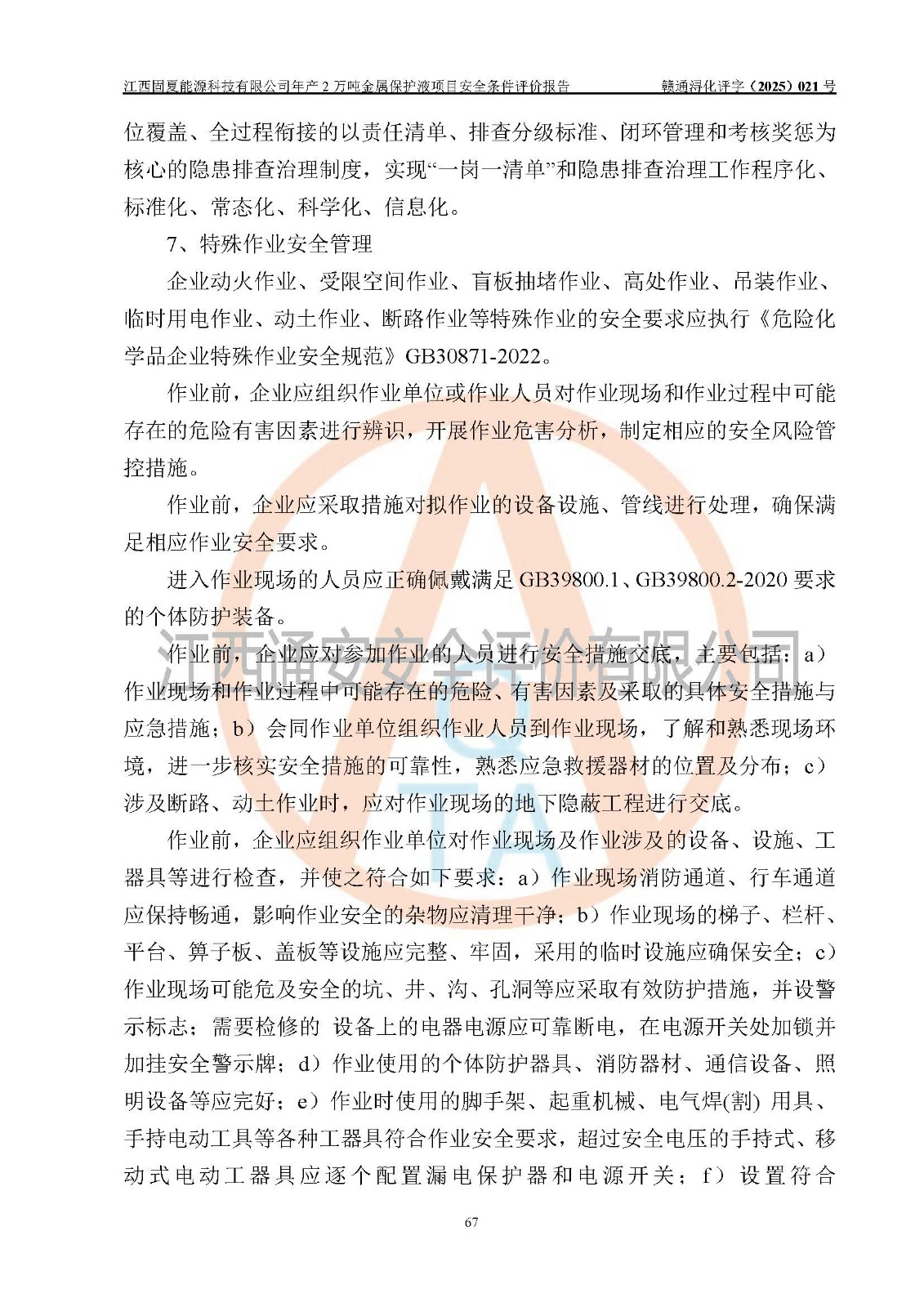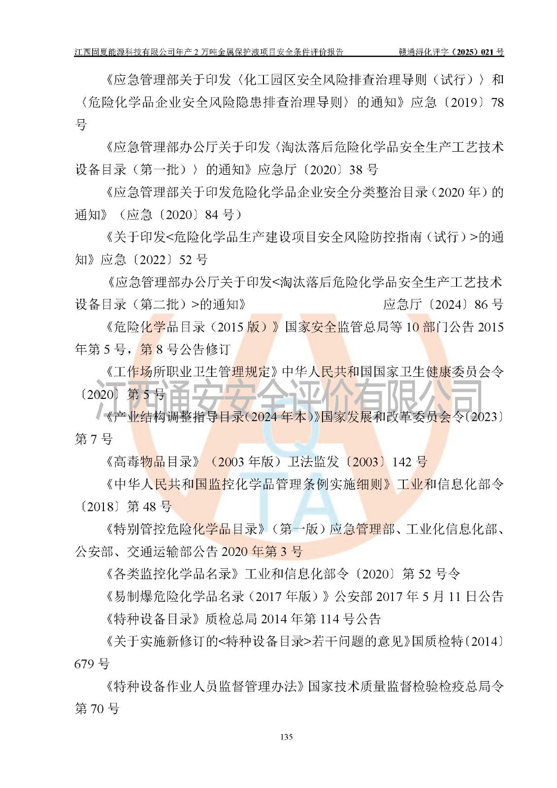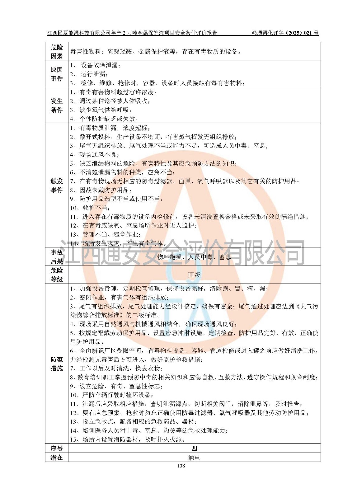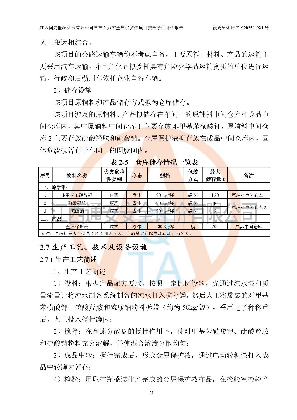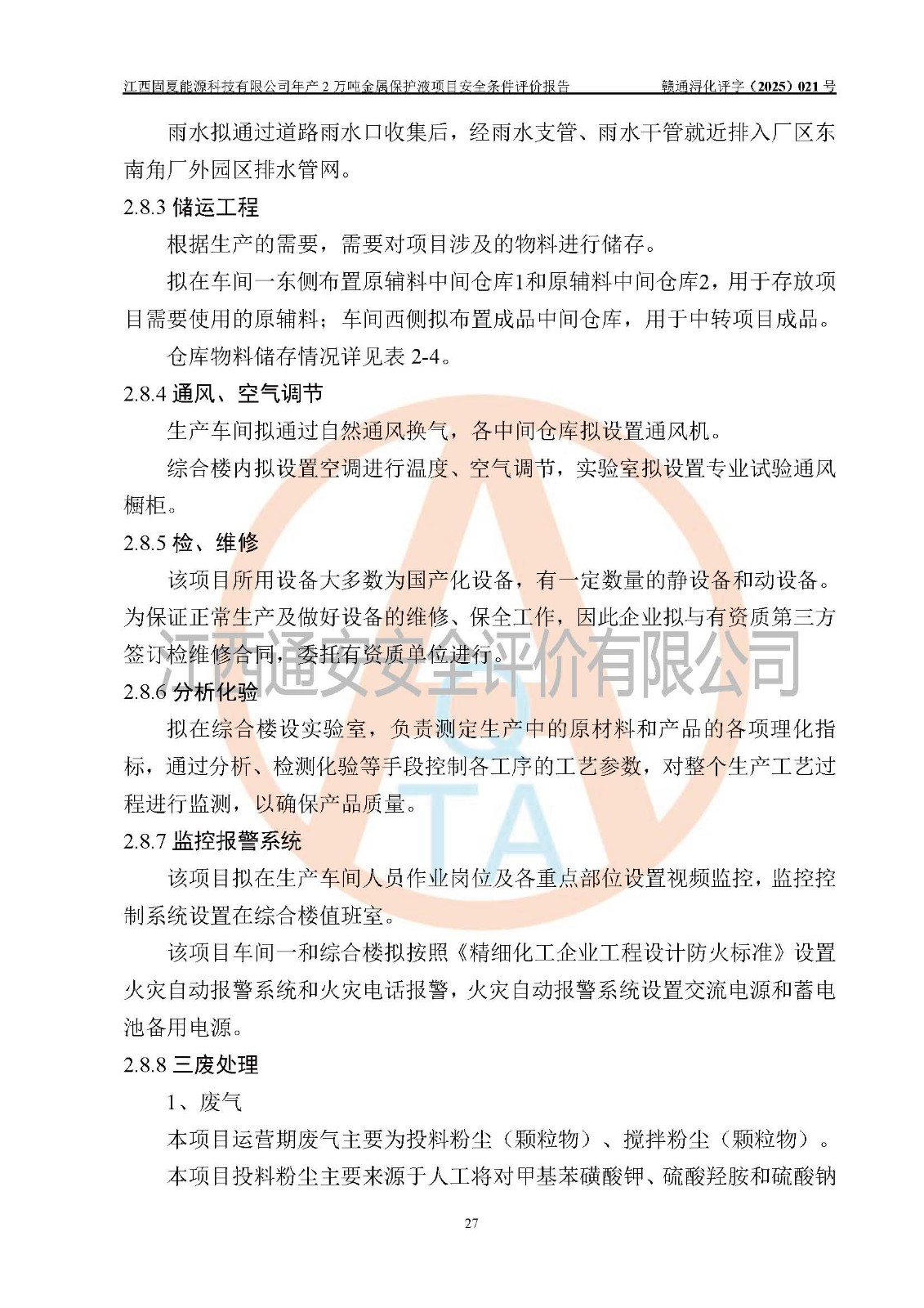 评价报告名称 | 江西固夏能源科技有限公司年产2万吨金属保护液项目安全条件评价报告 | |||