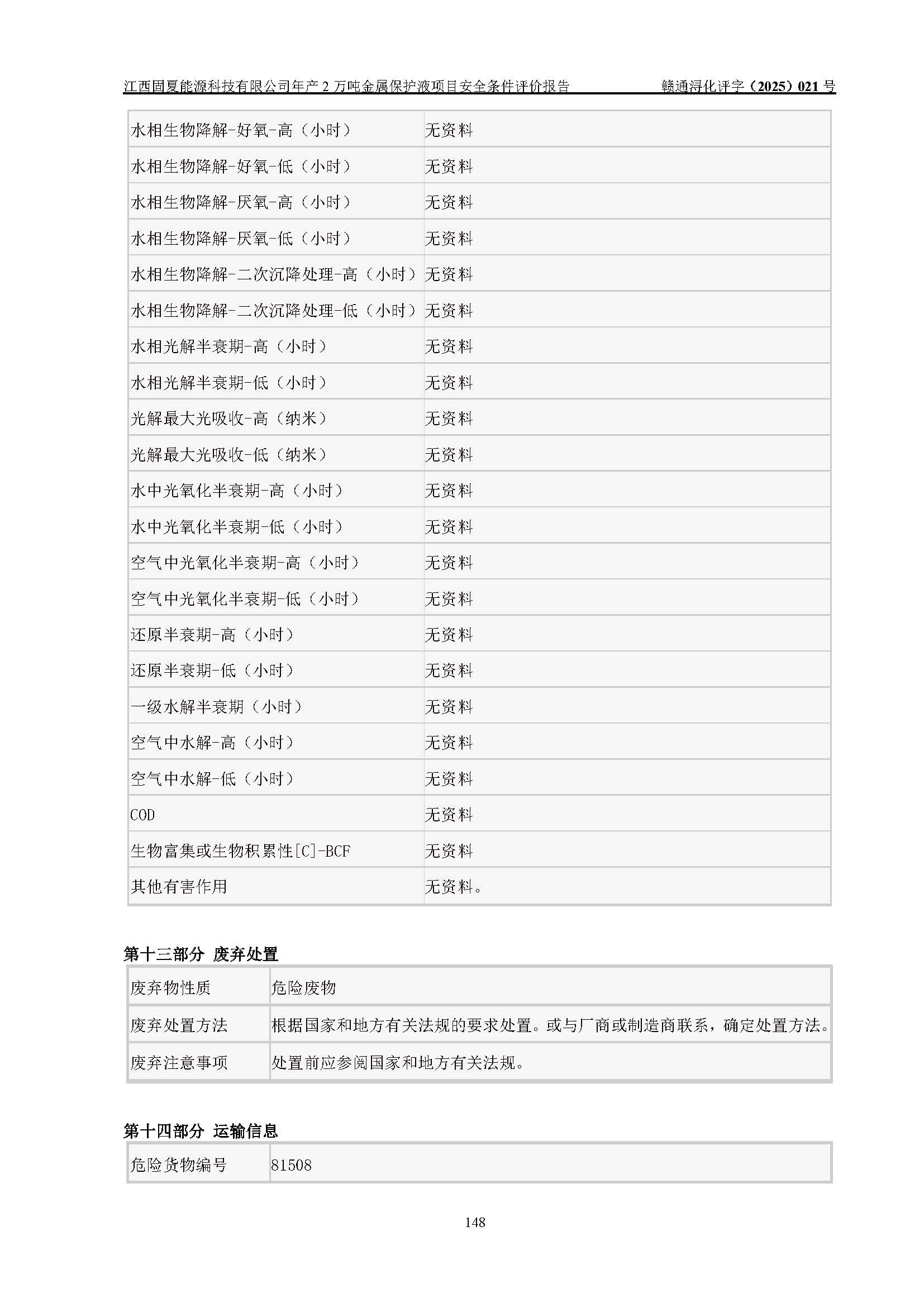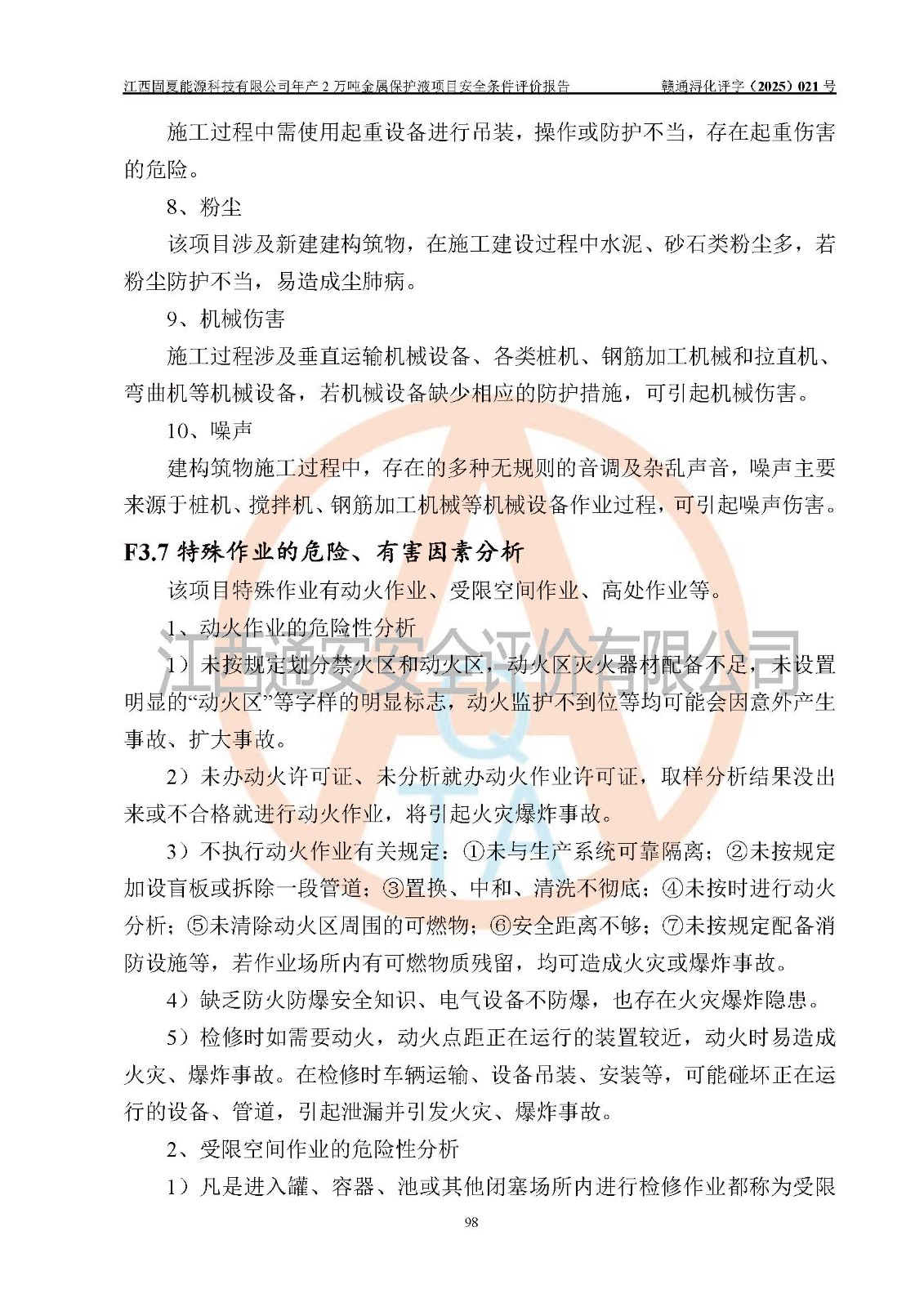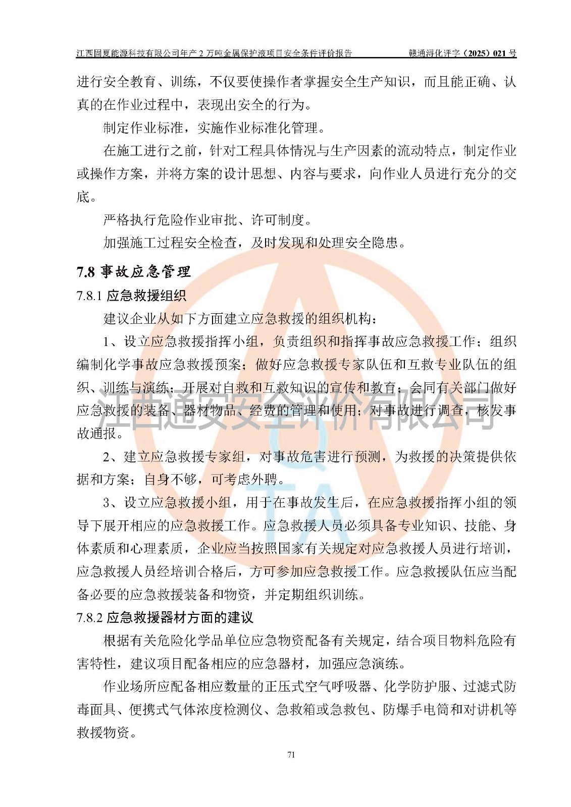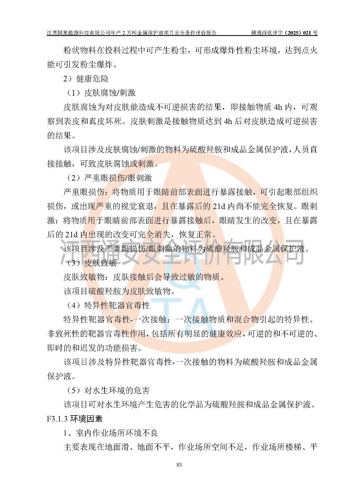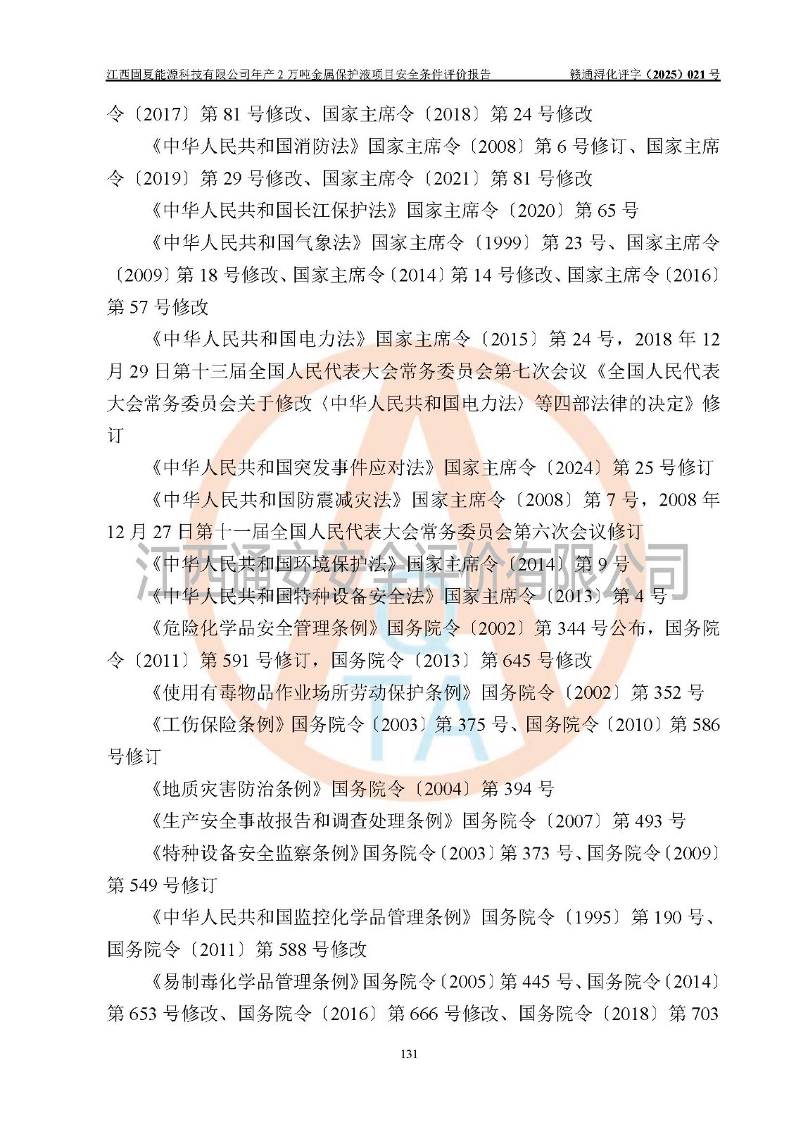 评价报告名称 | 江西固夏能源科技有限公司年产2万吨金属保护液项目安全条件评价报告 | |||