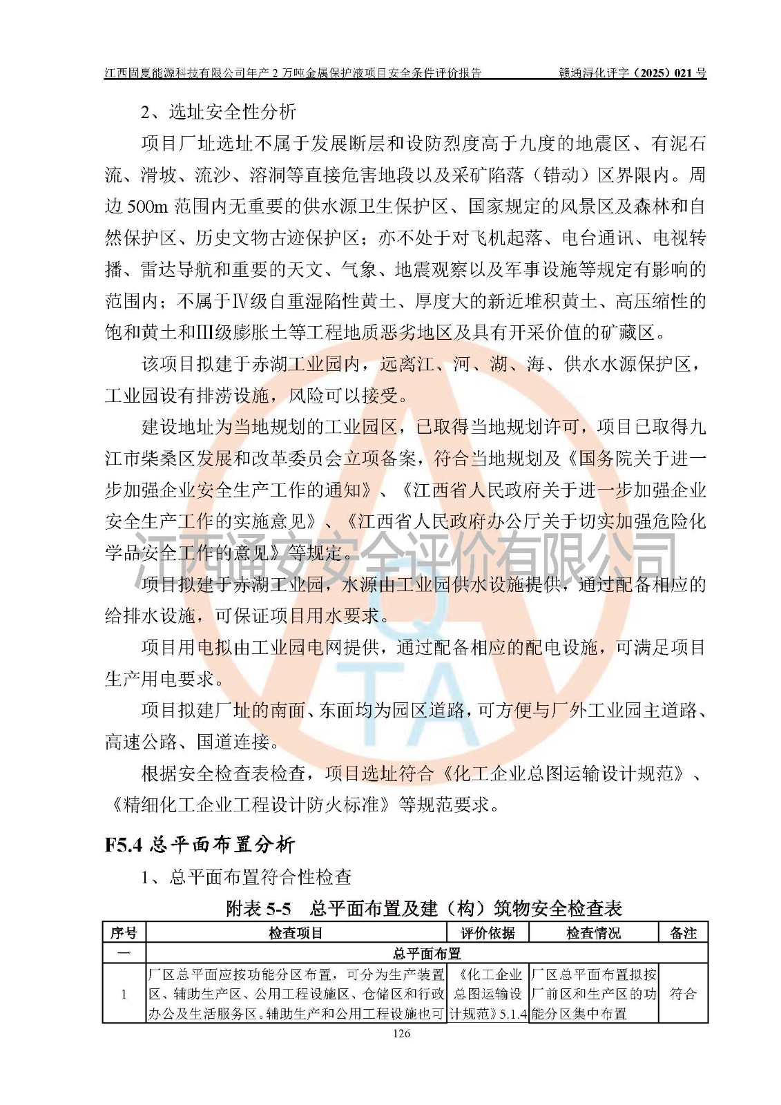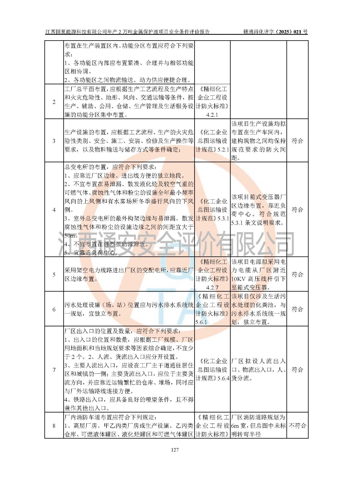 评价结论 | 江西固夏能源科技有限公司年产2万吨金属保护液项目的选址、总体布局、周边环境、自然环境能满足建设安全条件;项目选择的工艺过程及设备设施的安全可靠性能达到**法规、标准规定要求;项目存在的危险有害因素可控,在落实本评价报告提出的有关安全对策措施后,其危险有害程度能达到可以接受的程度,项目建设能够实现安全运行的目标。 | |||