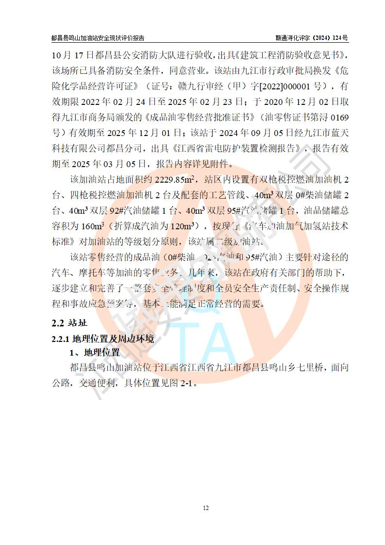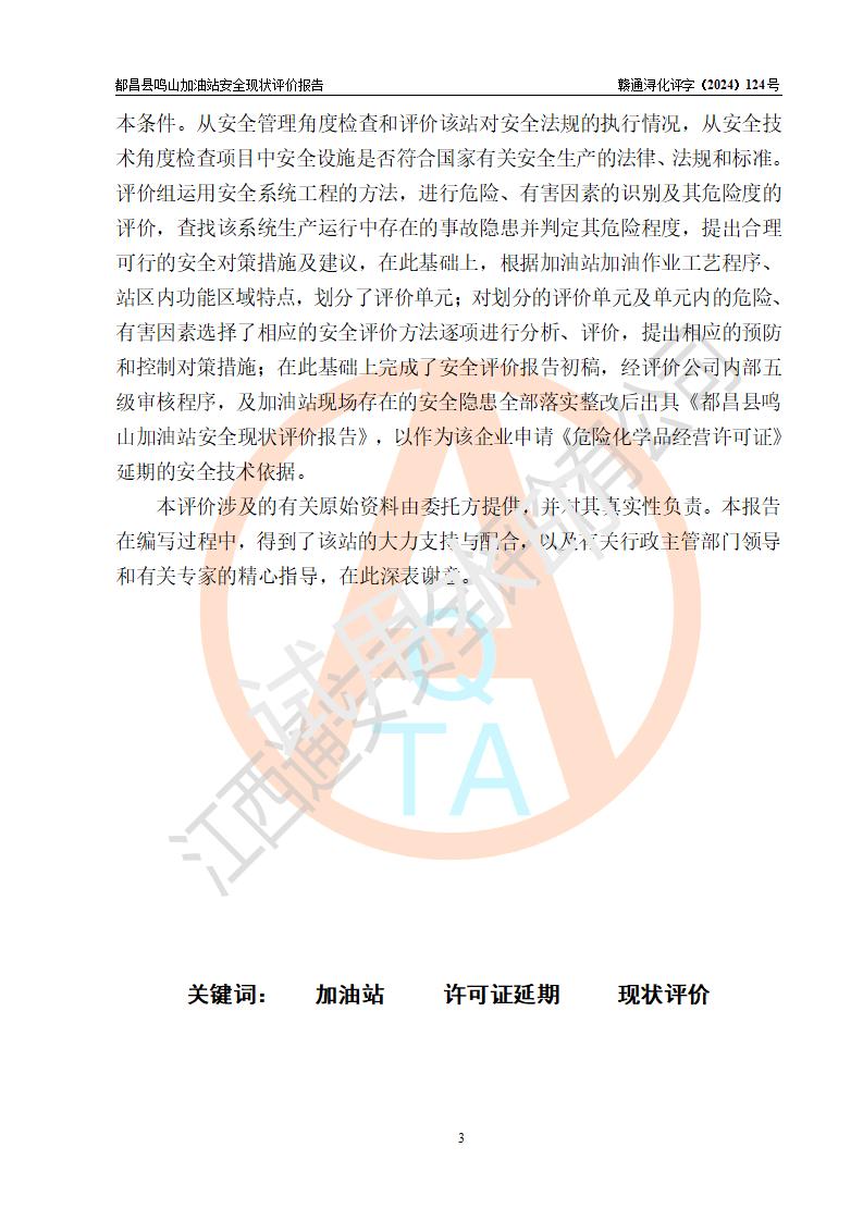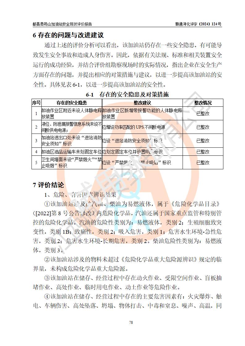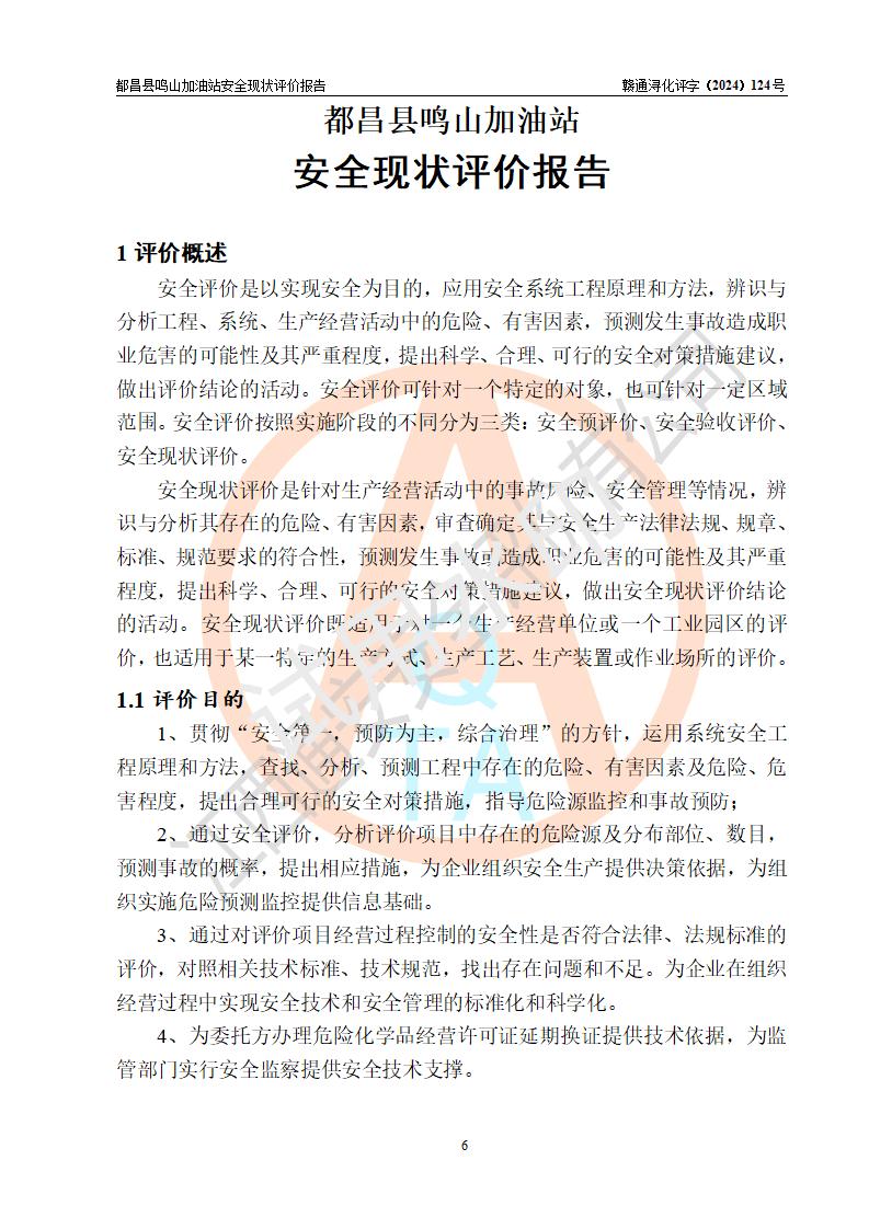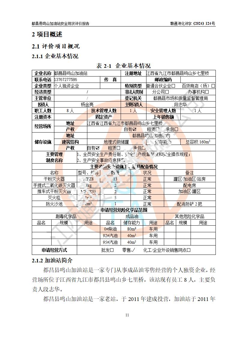 评价报告名称 | 都昌县鸣山加油站安全现状评价报告 | |||