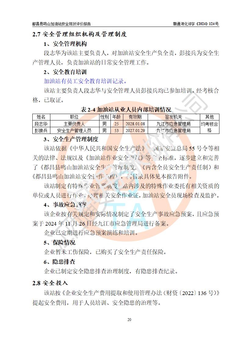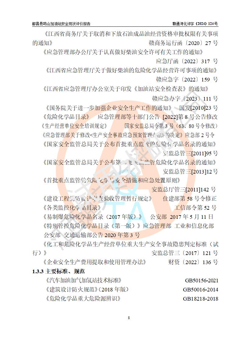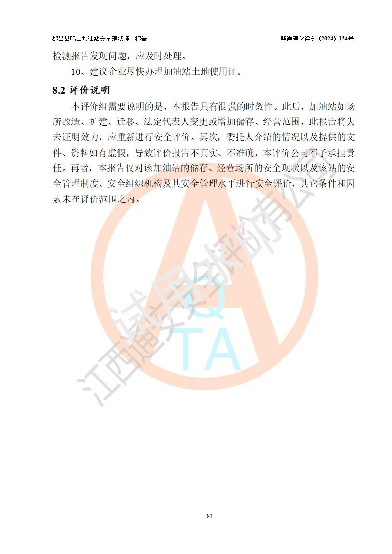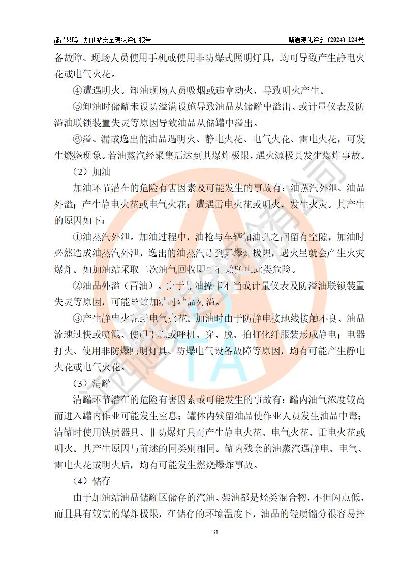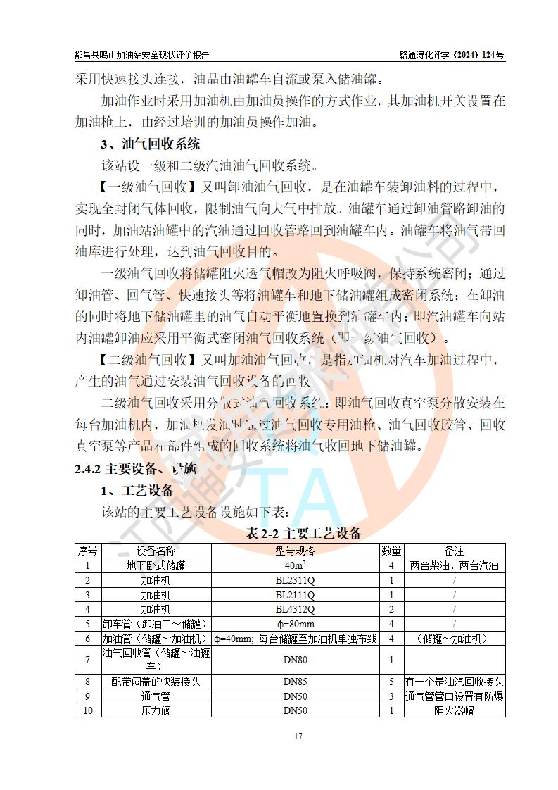 评价报告名称 | 都昌县鸣山加油站安全现状评价报告 | |||