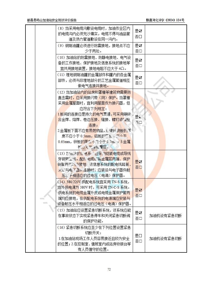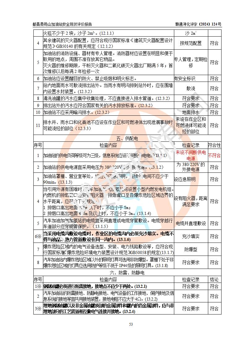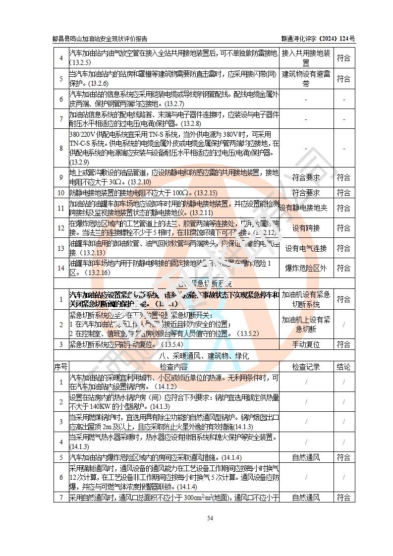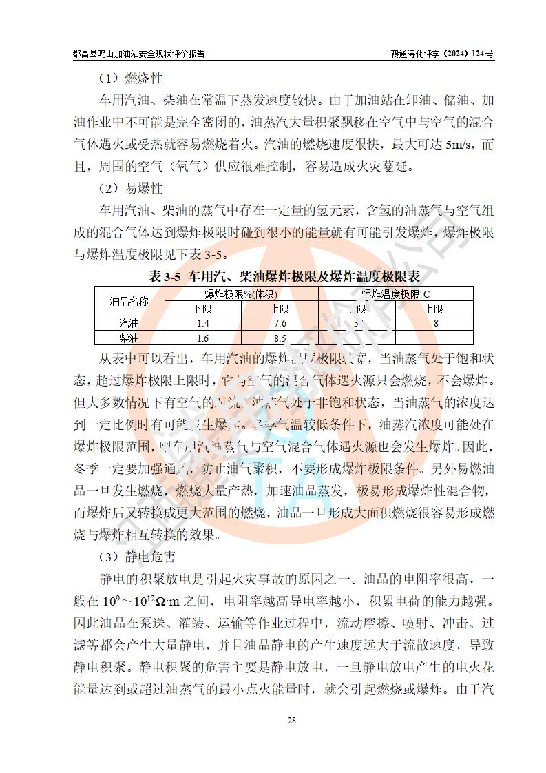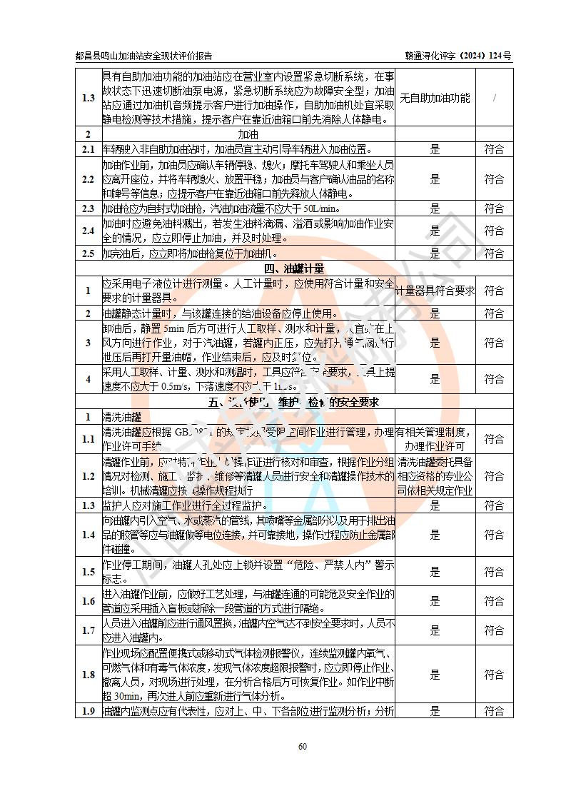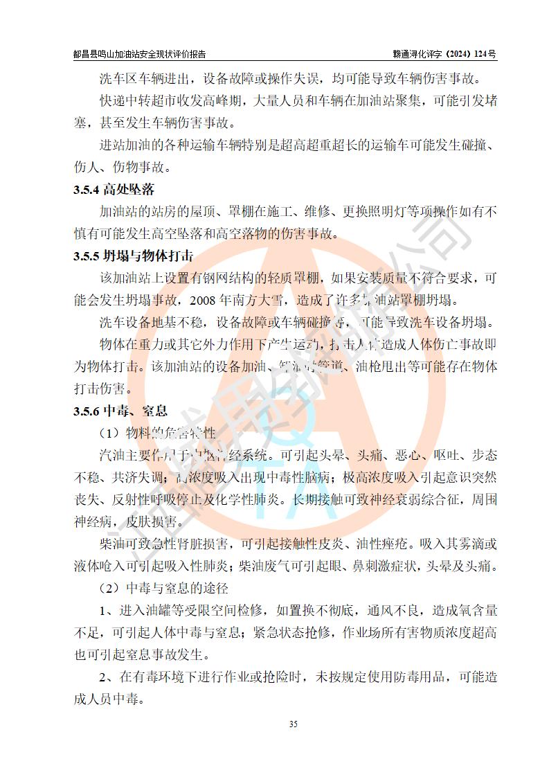 评价结论 | 都昌县鸣山加油站涉及的安全条件、安全经营条件、安全生产管理符合《危险化学品经营许可证管理办法》、《汽车加油加气加氢站技术标准》等**有关法规、标准、规范要求,能满足危险化学品经营安全条件。 | |||