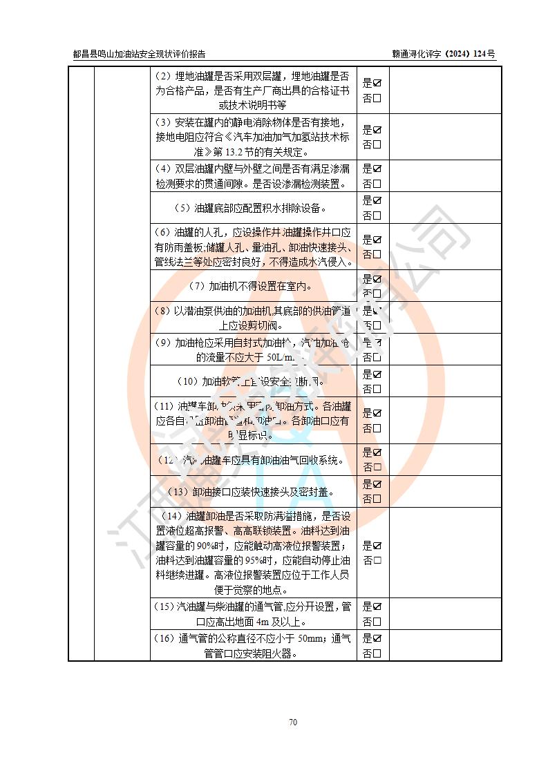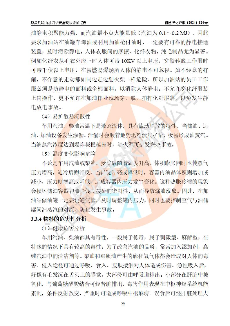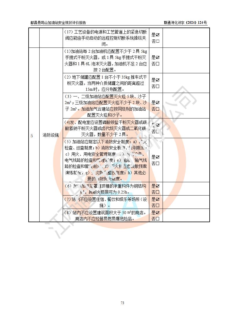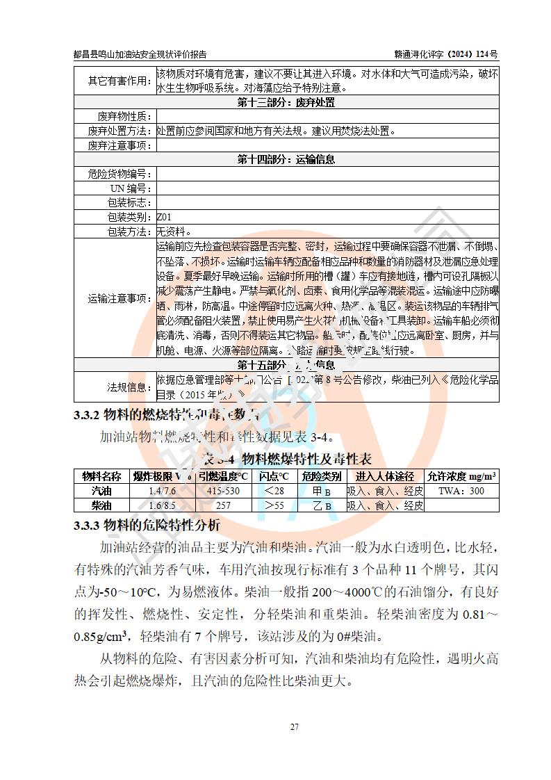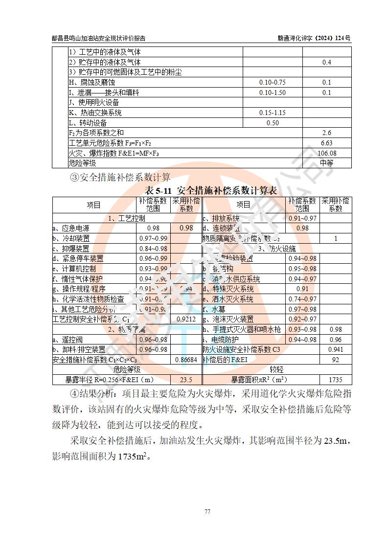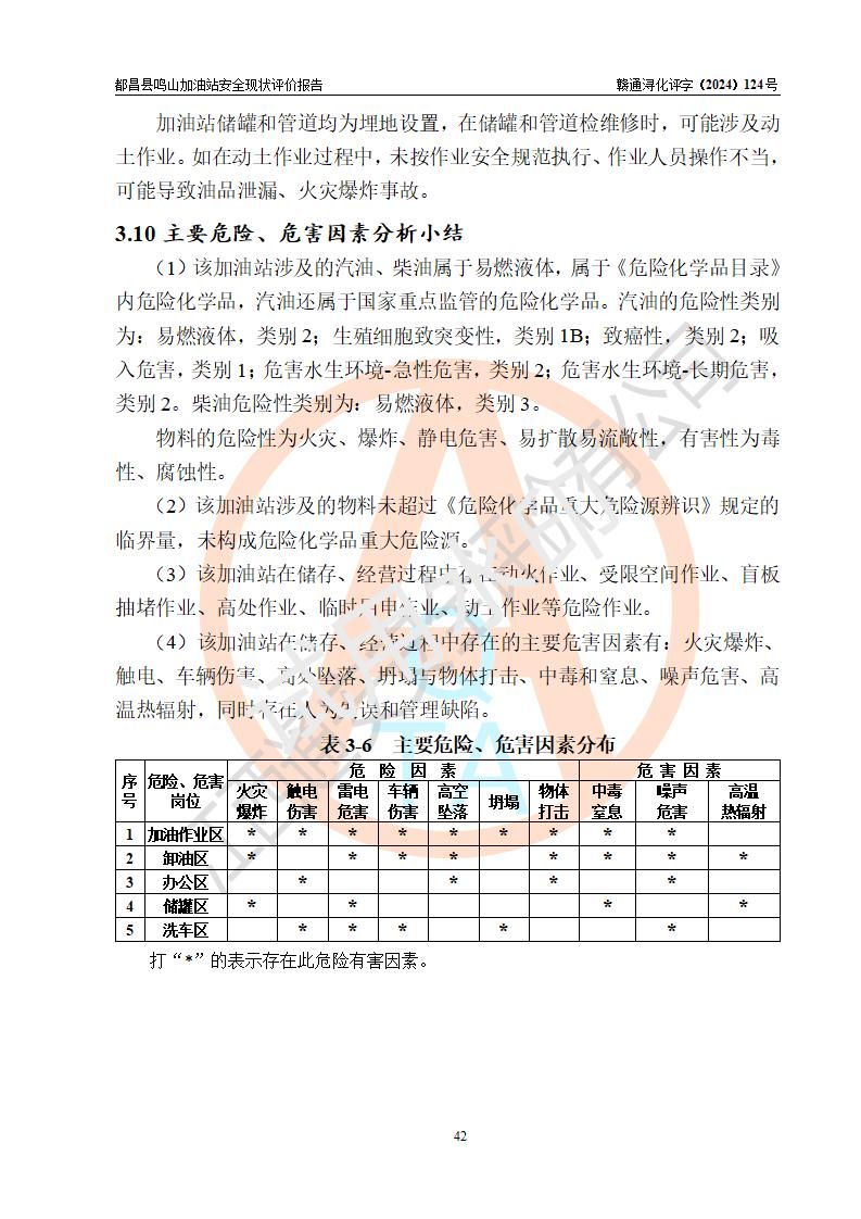 评价结论 | 都昌县鸣山加油站涉及的安全条件、安全经营条件、安全生产管理符合《危险化学品经营许可证管理办法》、《汽车加油加气加氢站技术标准》等**有关法规、标准、规范要求,能满足危险化学品经营安全条件。 | |||