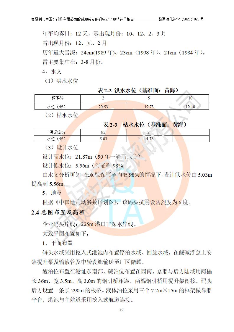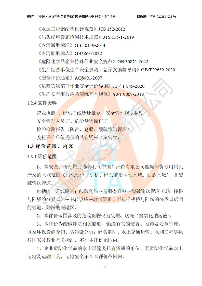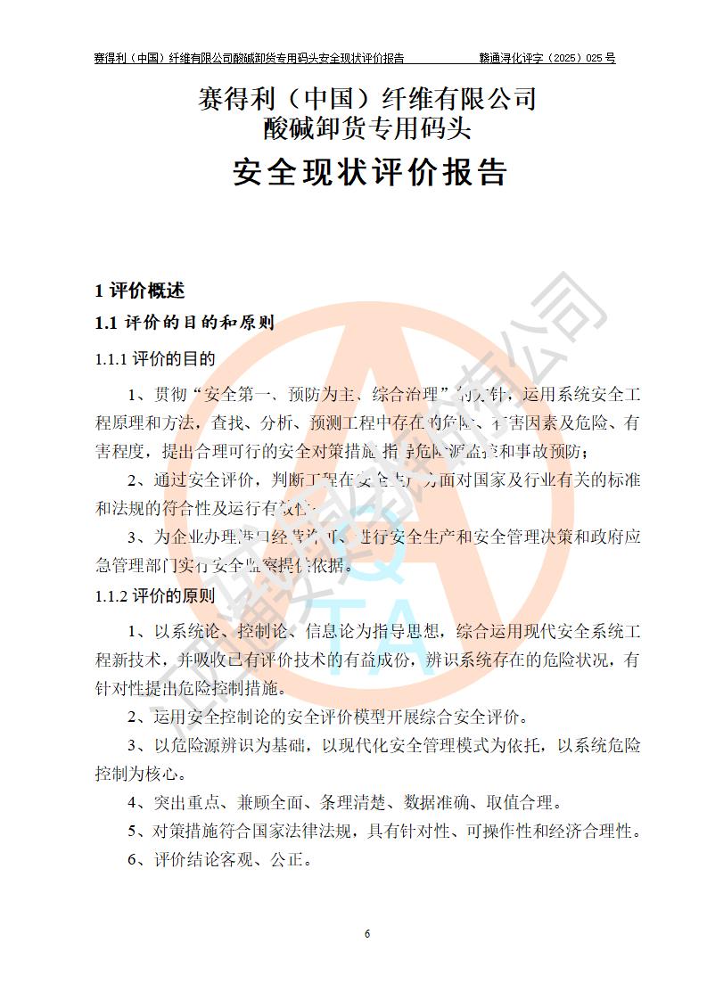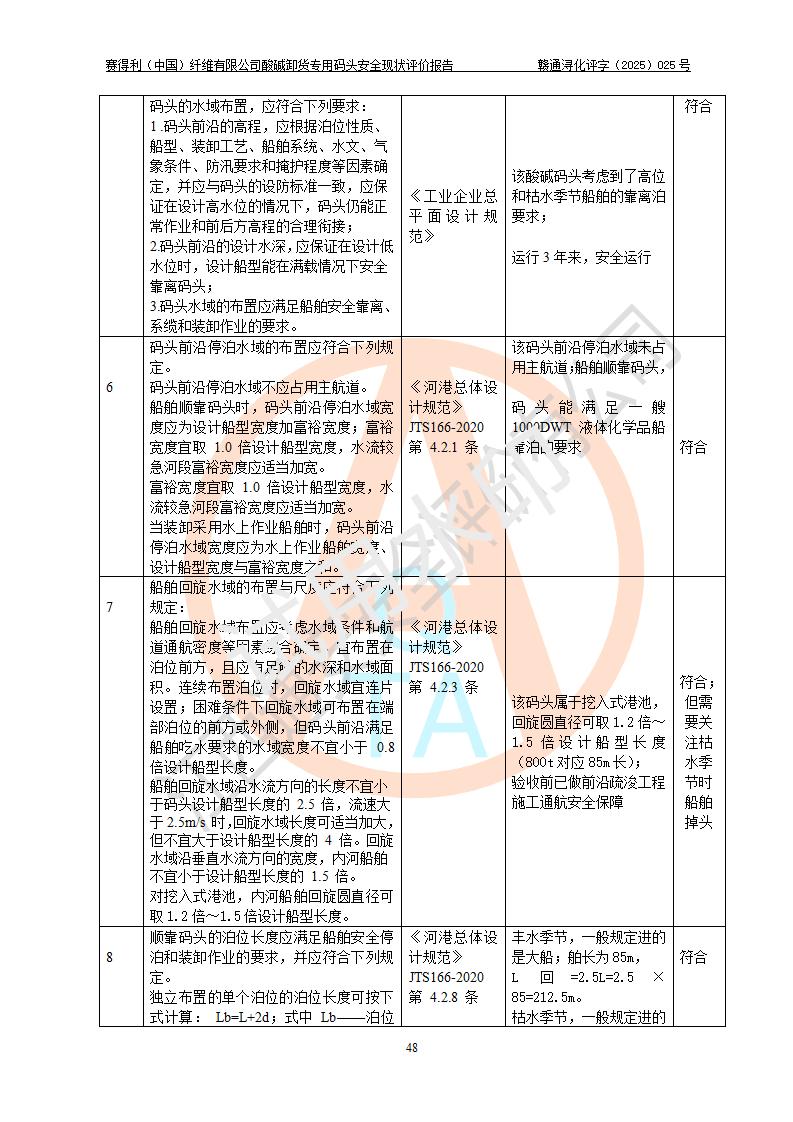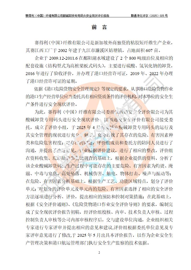 评价报告名称 | 赛得利(中国)纤维有限公司酸碱卸货**码头安全现状评价报告 | |||||