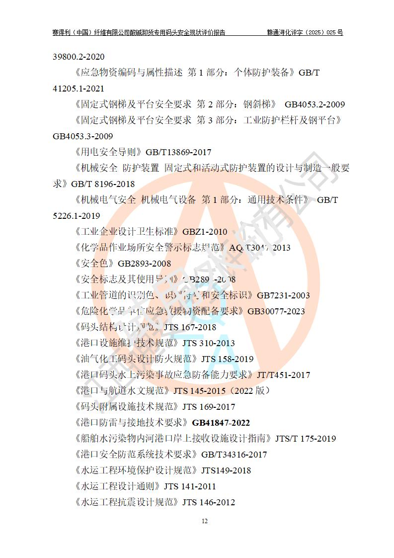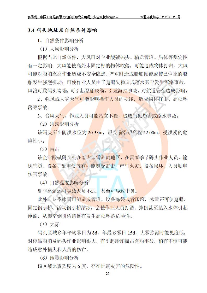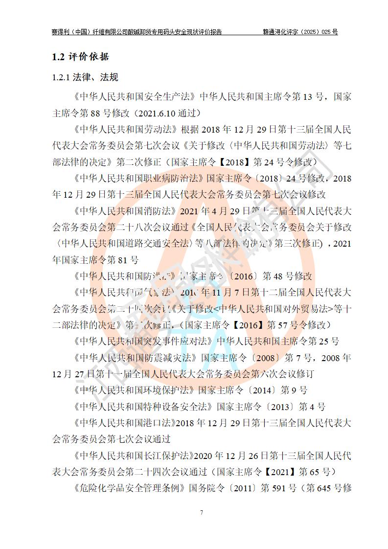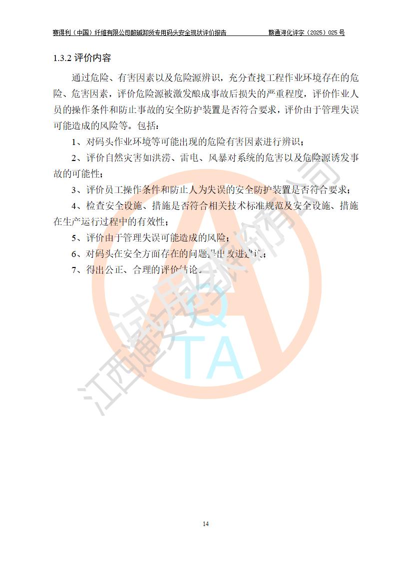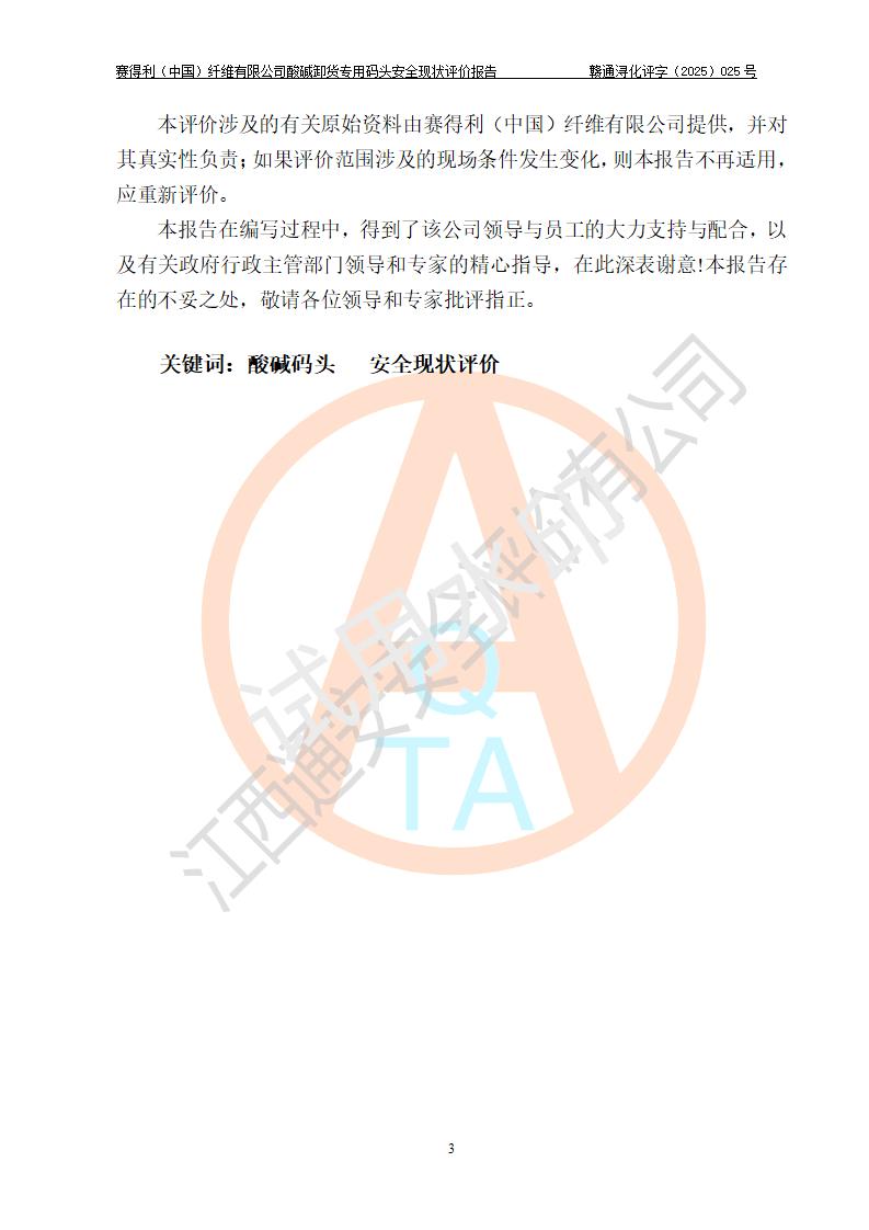 评价报告名称 | 赛得利(中国)纤维有限公司酸碱卸货**码头安全现状评价报告 | |||||