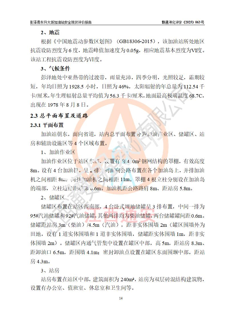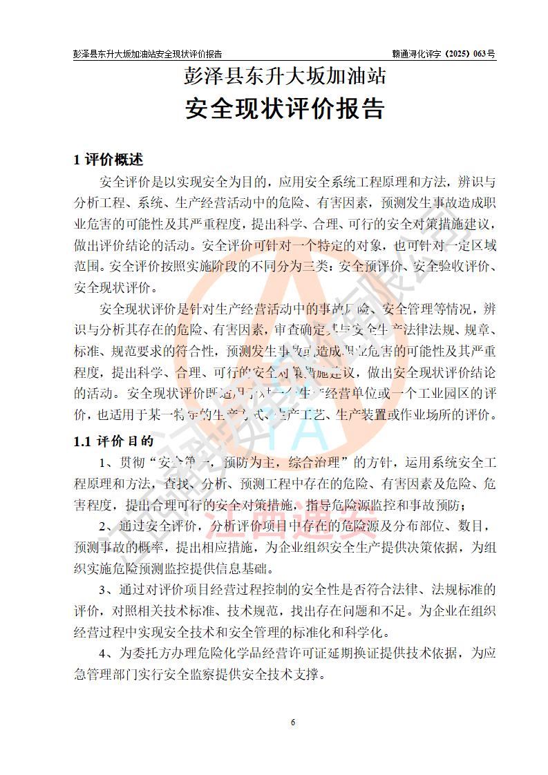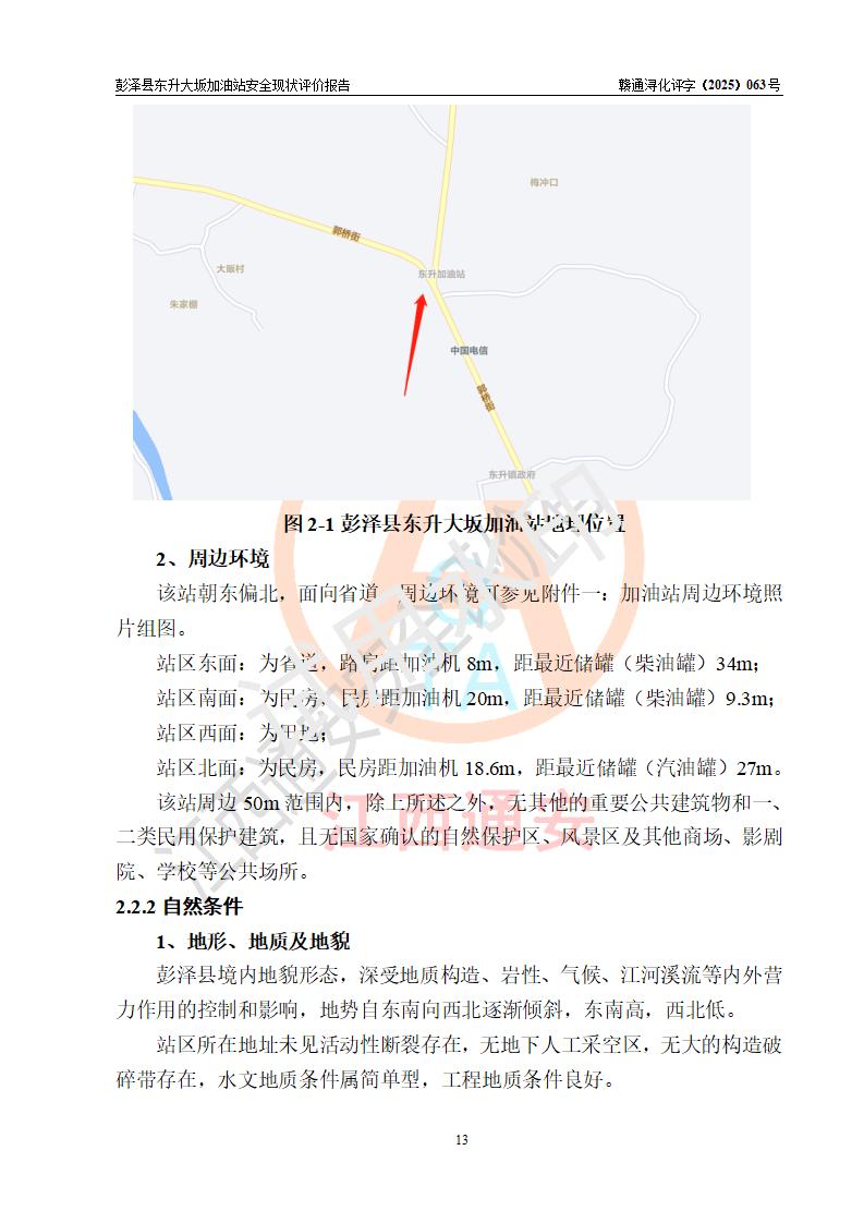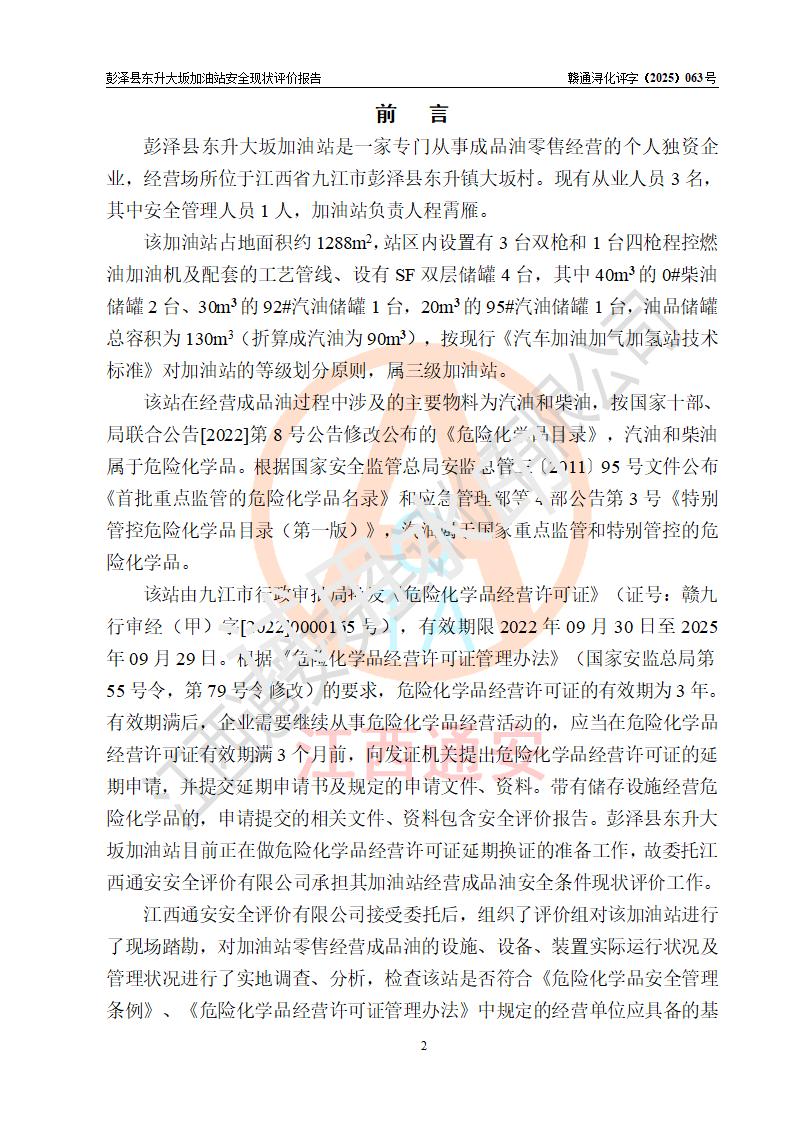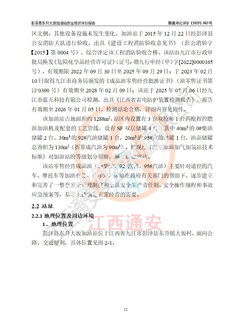 评价报告名称 | 彭泽县东升大坂加油站安全现状评价报告 | |||